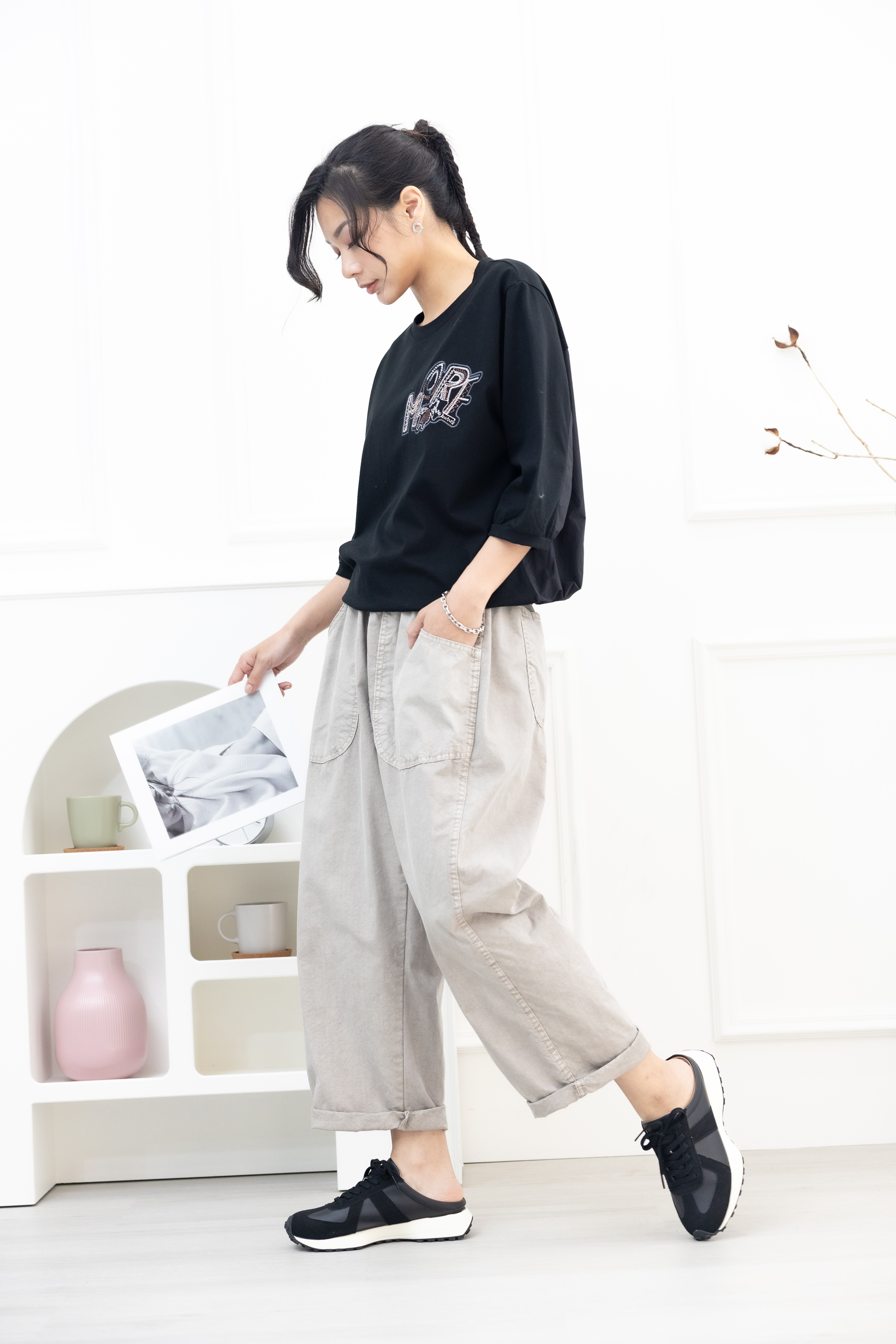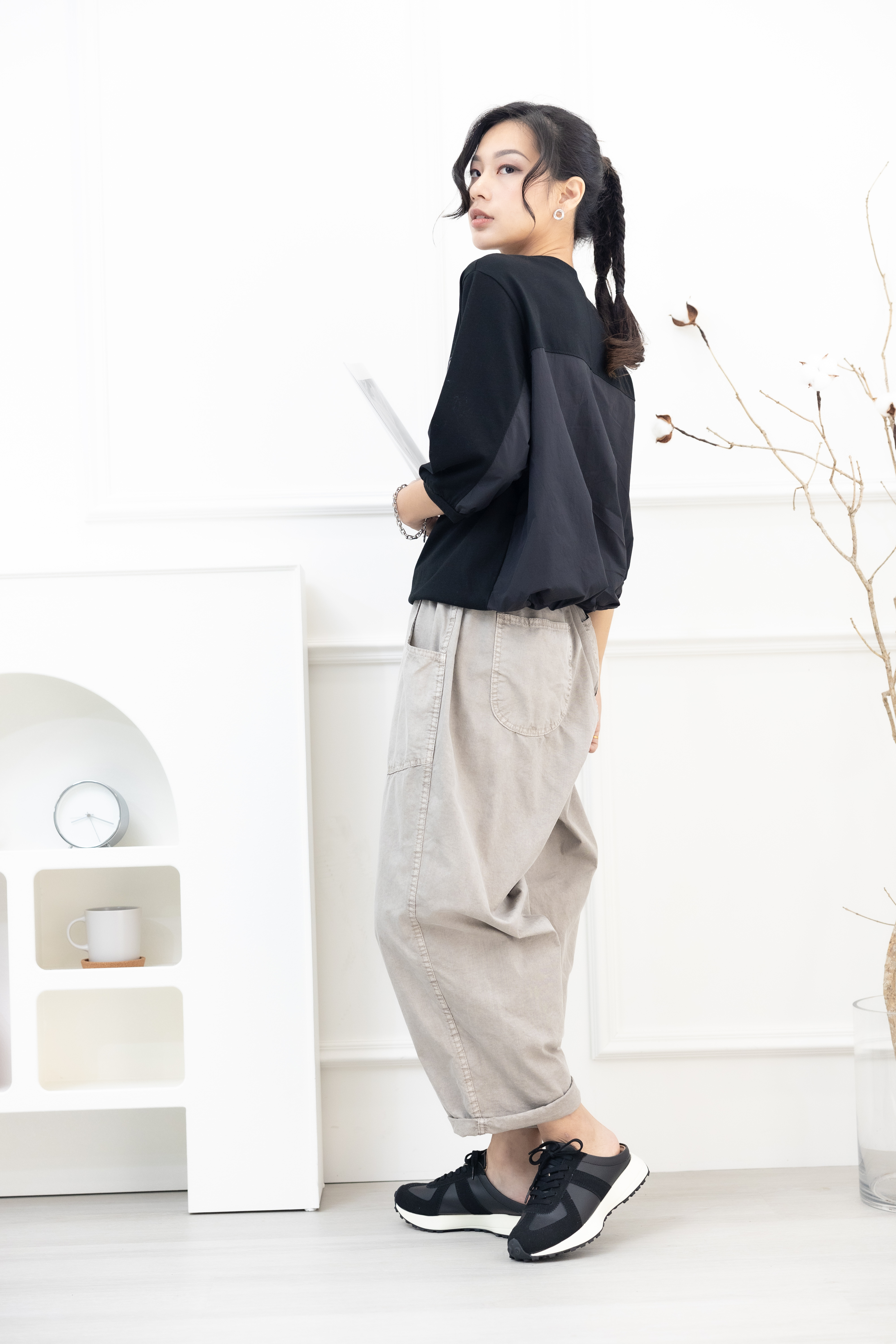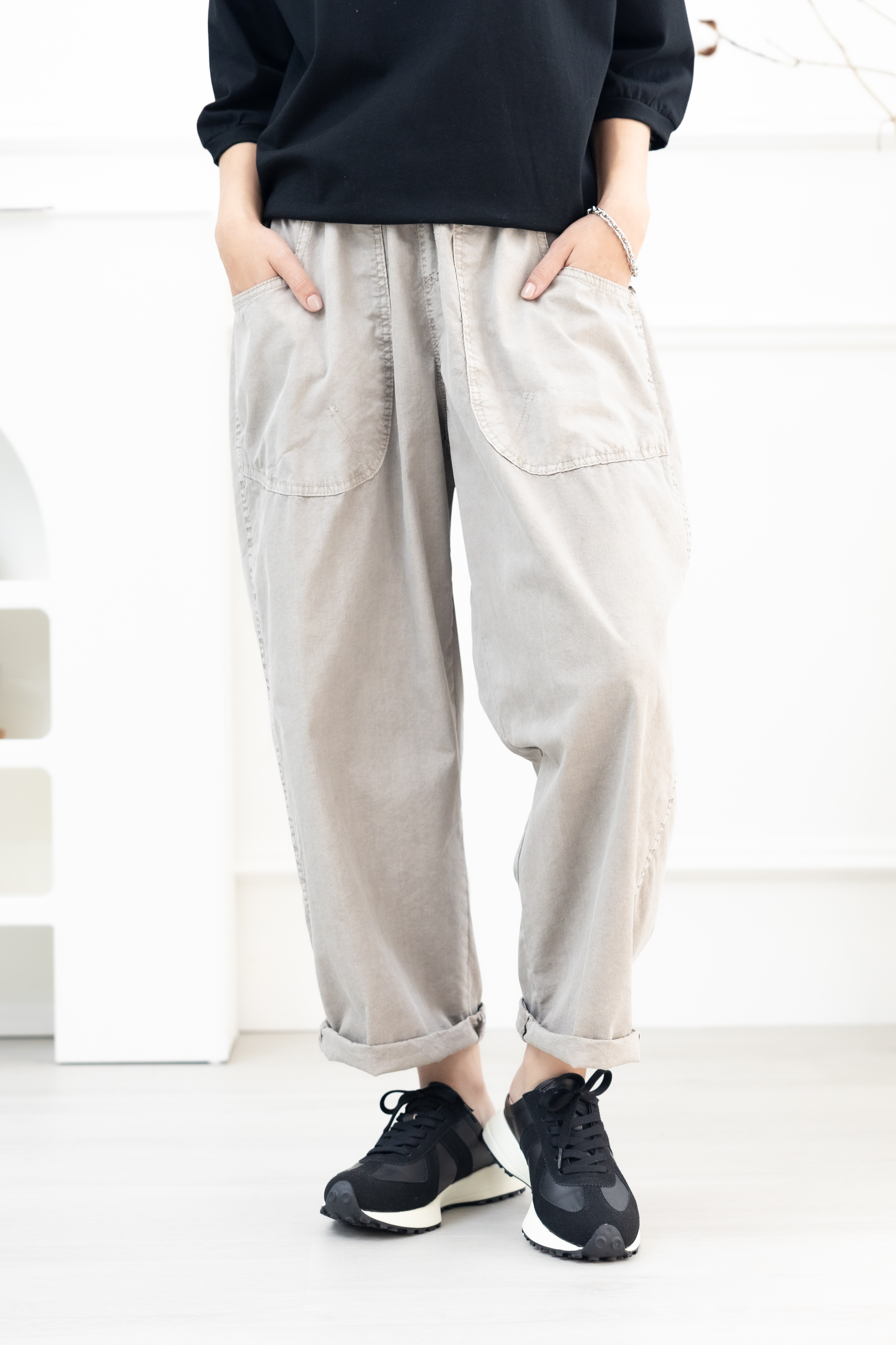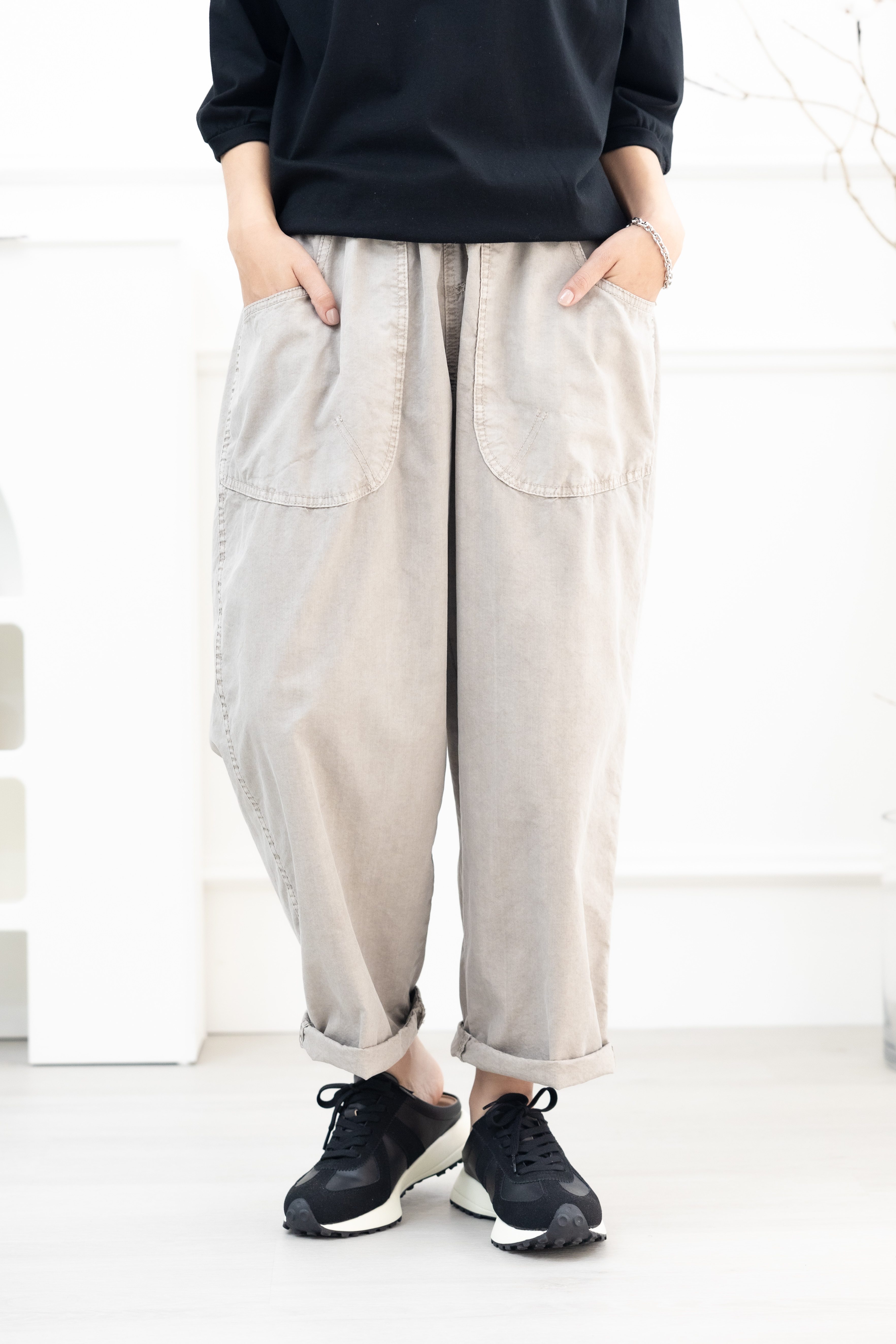 긴 바지 輕薄寬版長褲/淺卡其色
