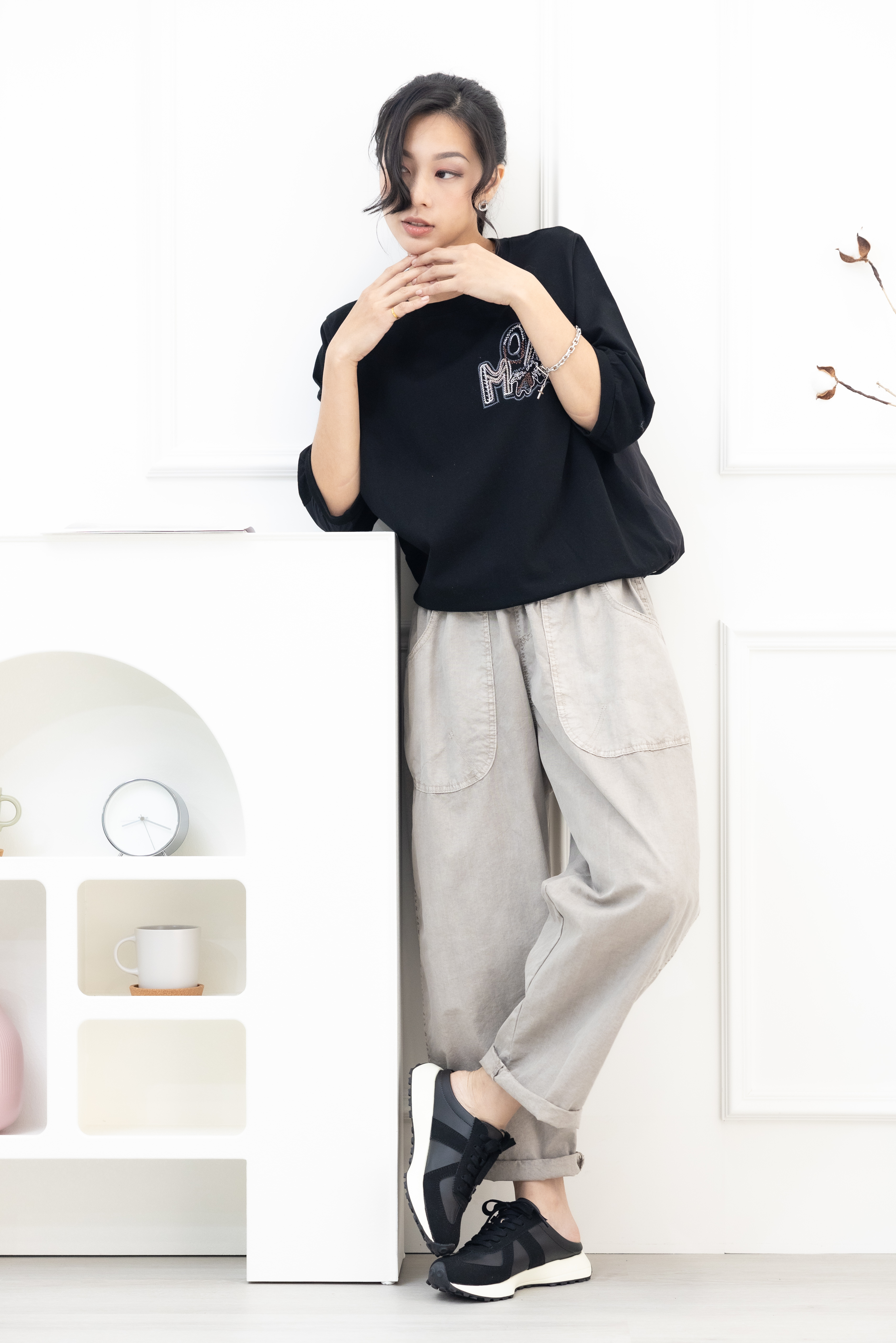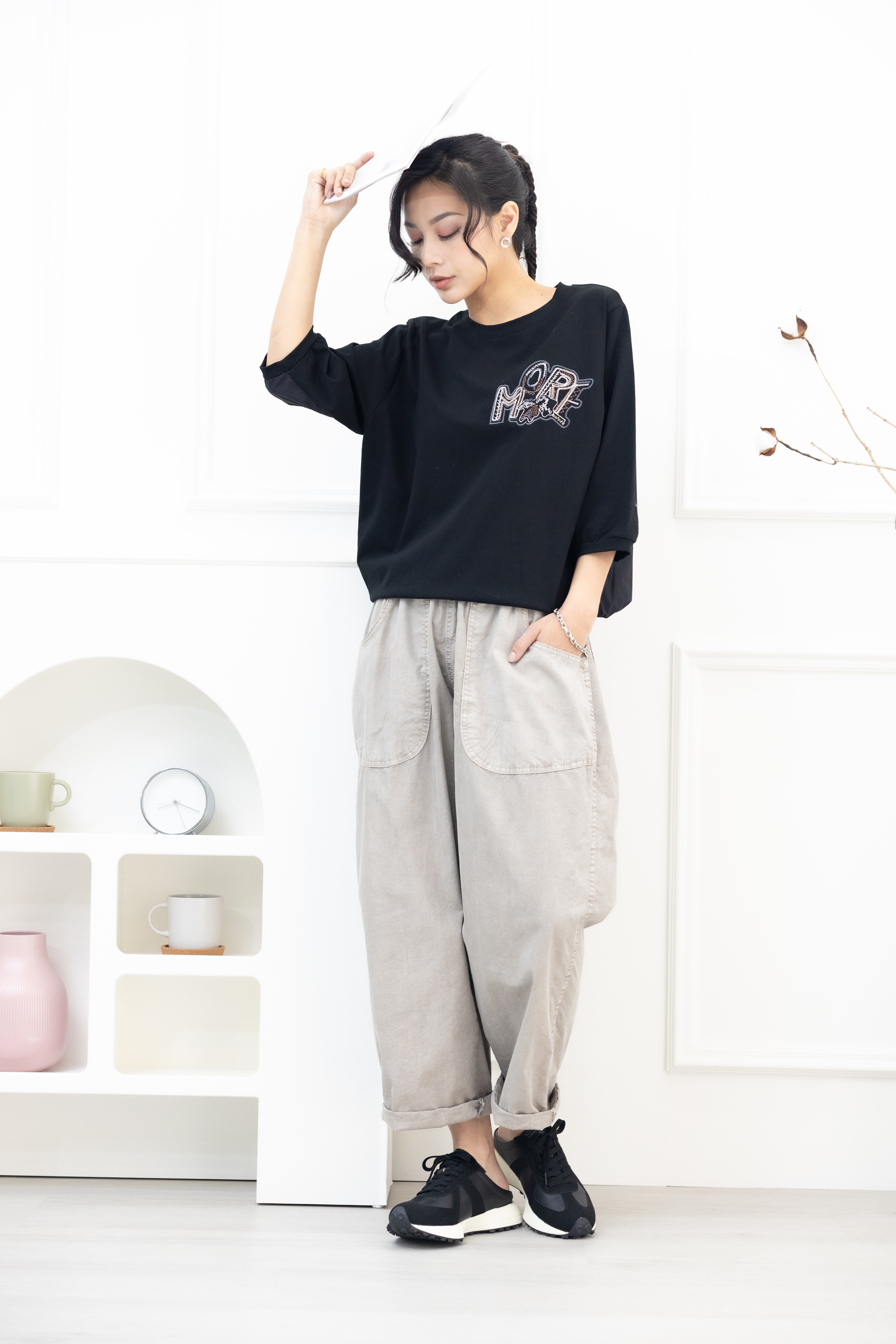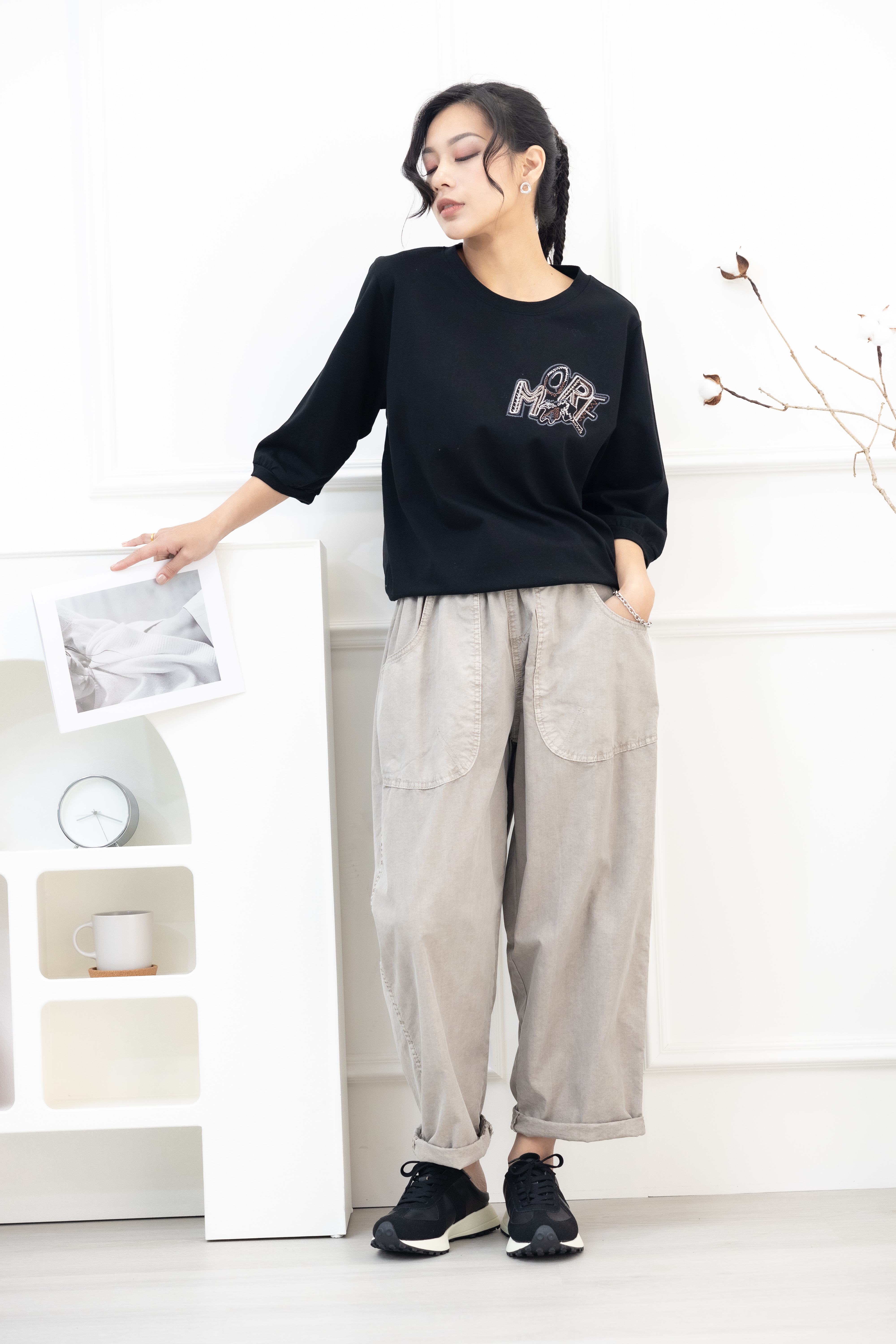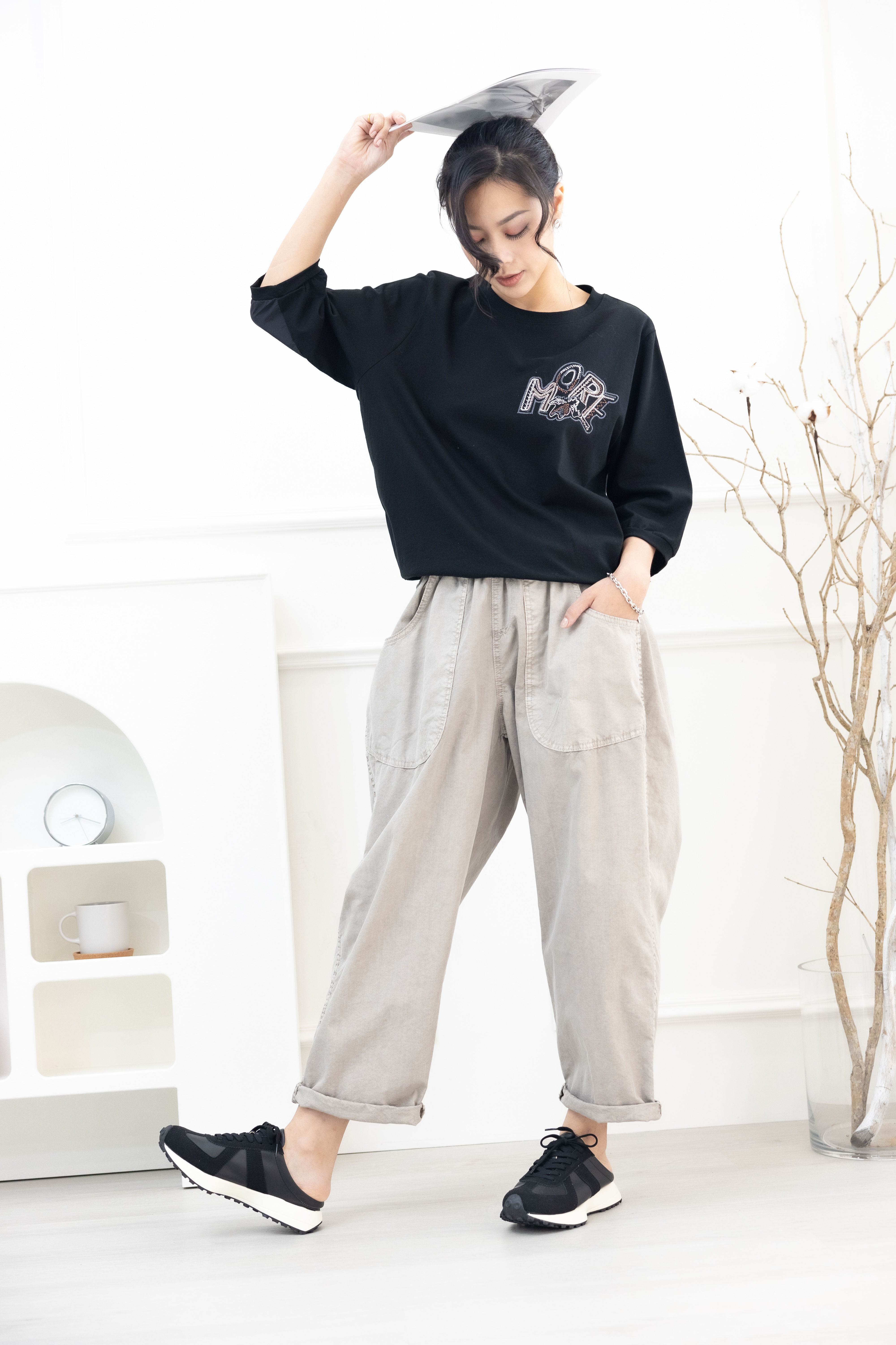 긴 바지 輕薄寬版長褲/淺卡其色