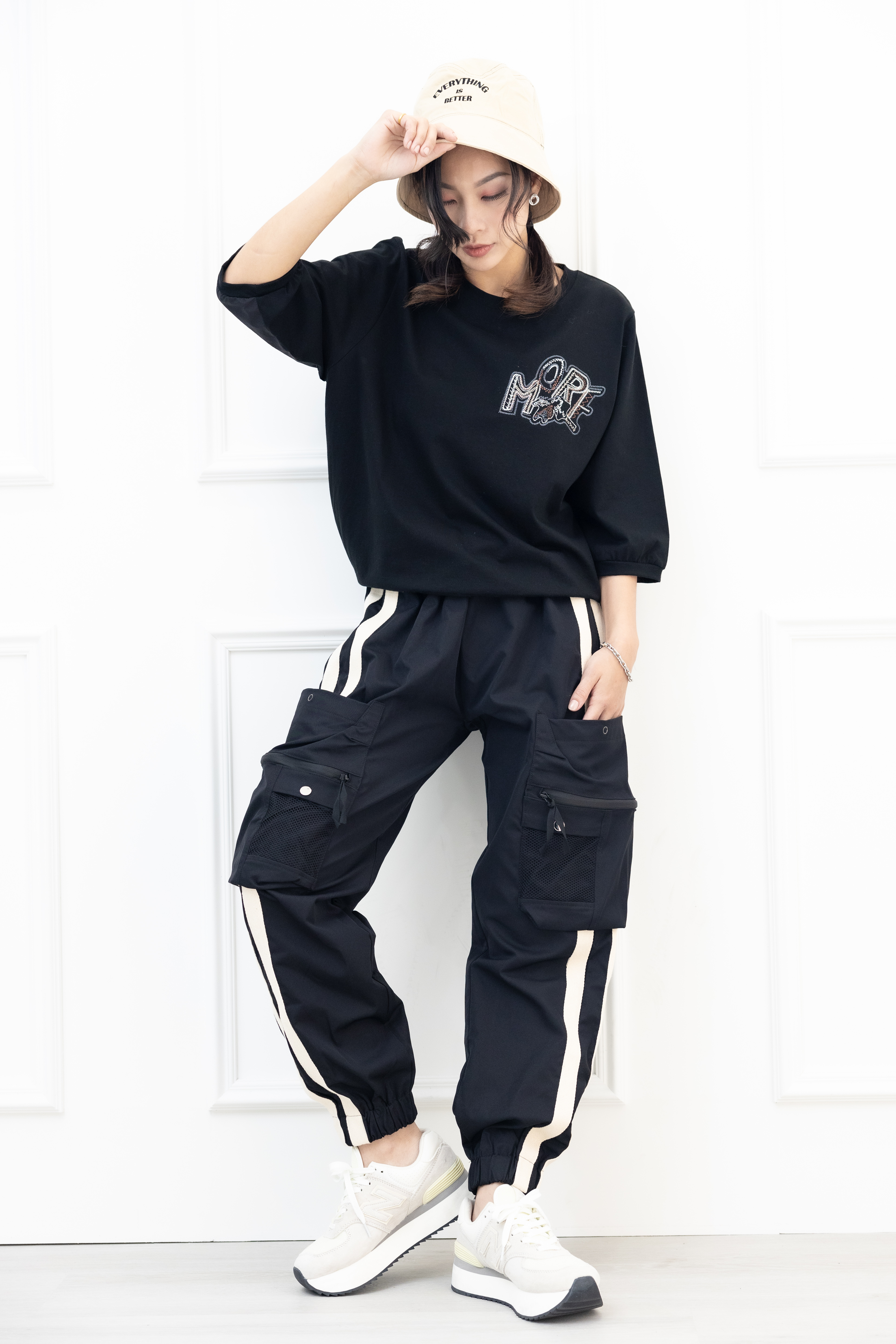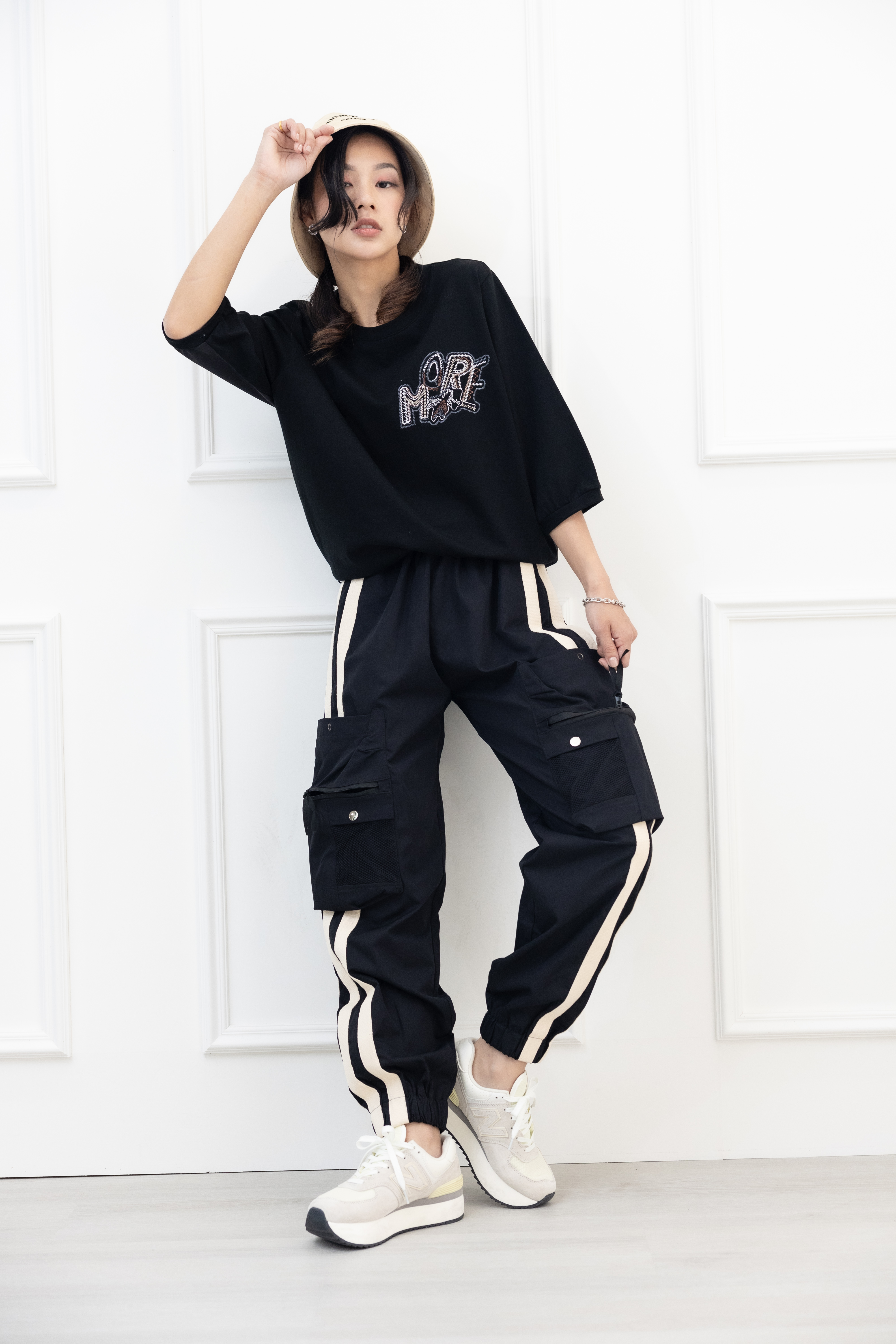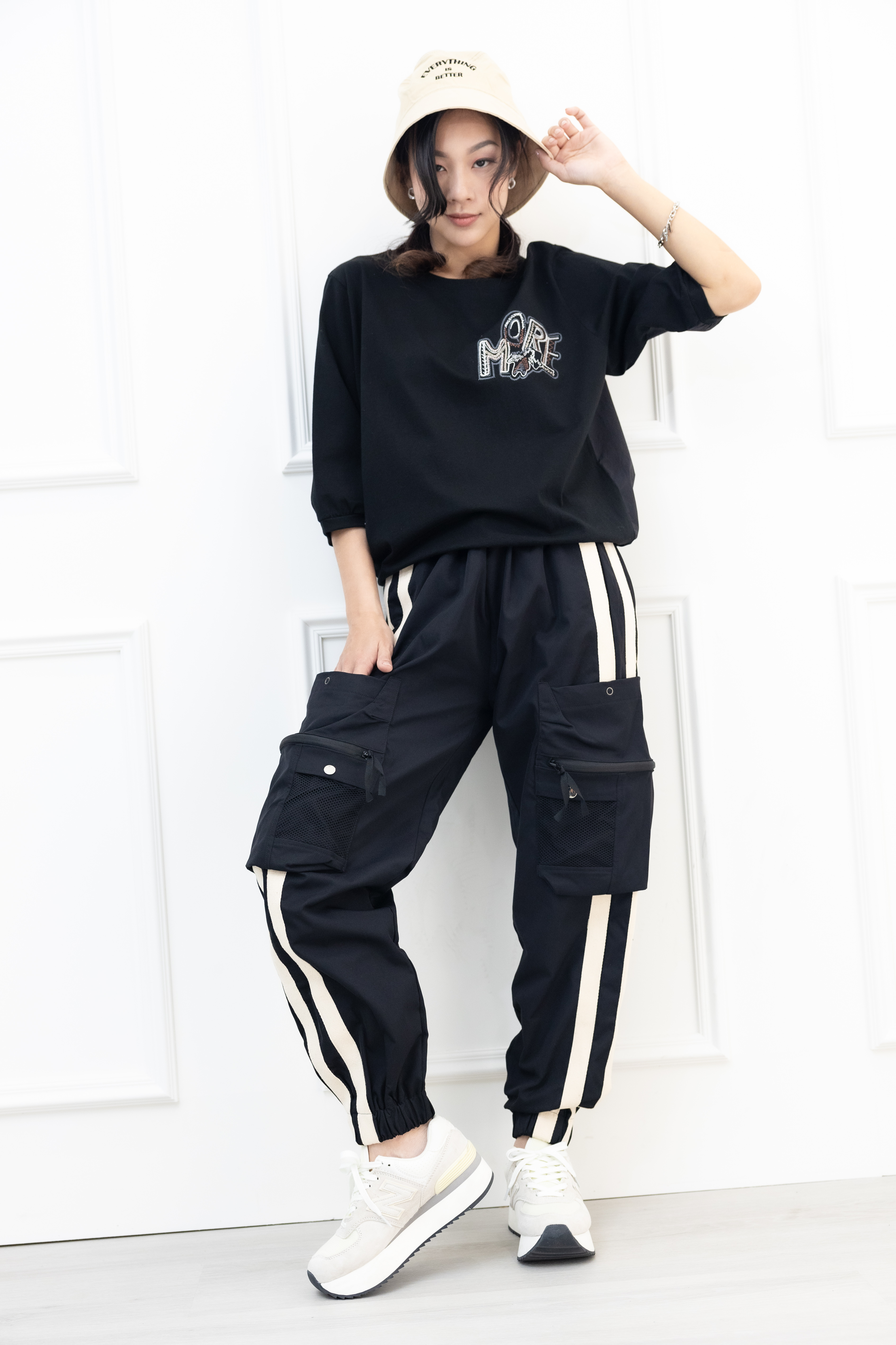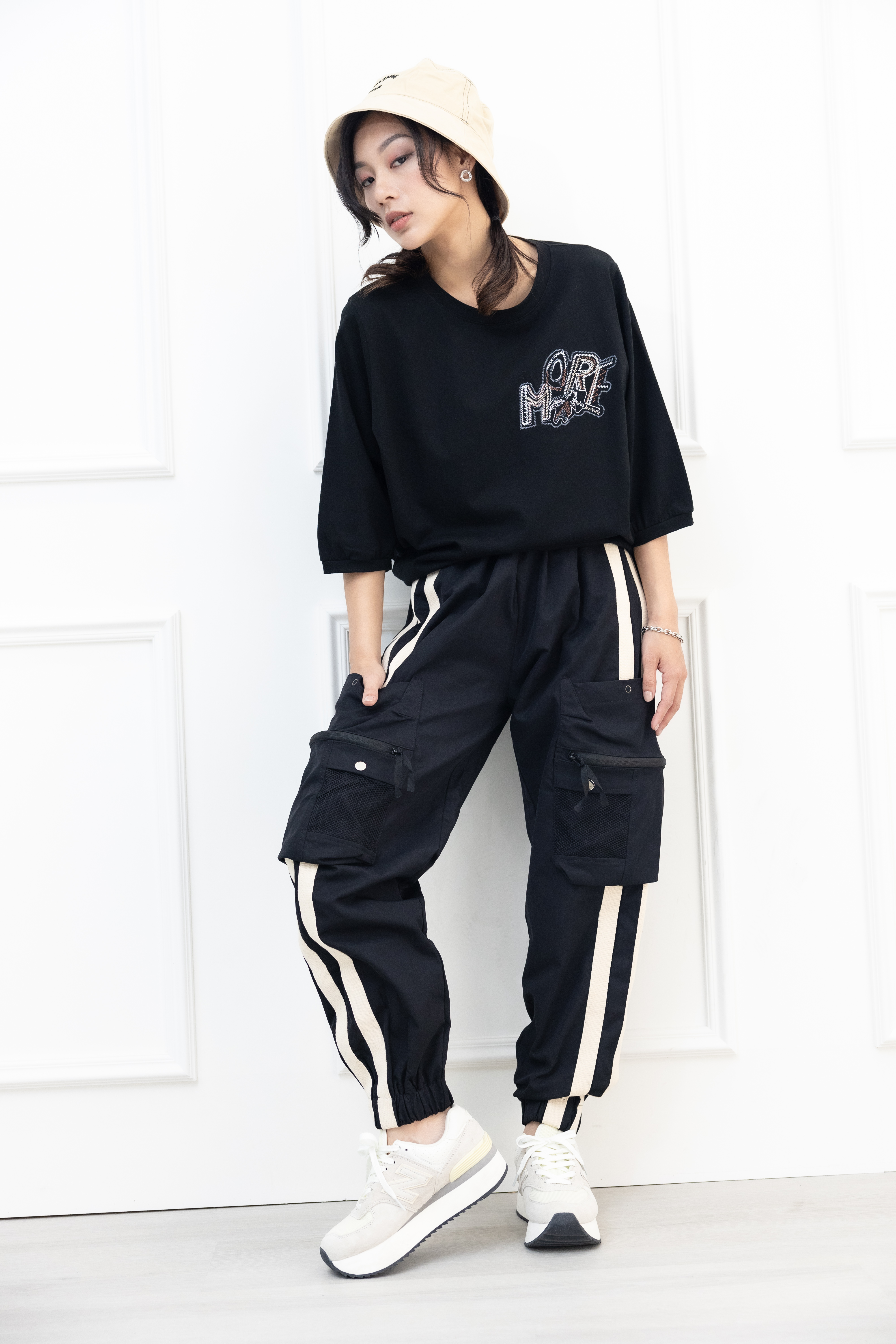 긴 바지 透氣堅挺線條長褲 / 黑色
