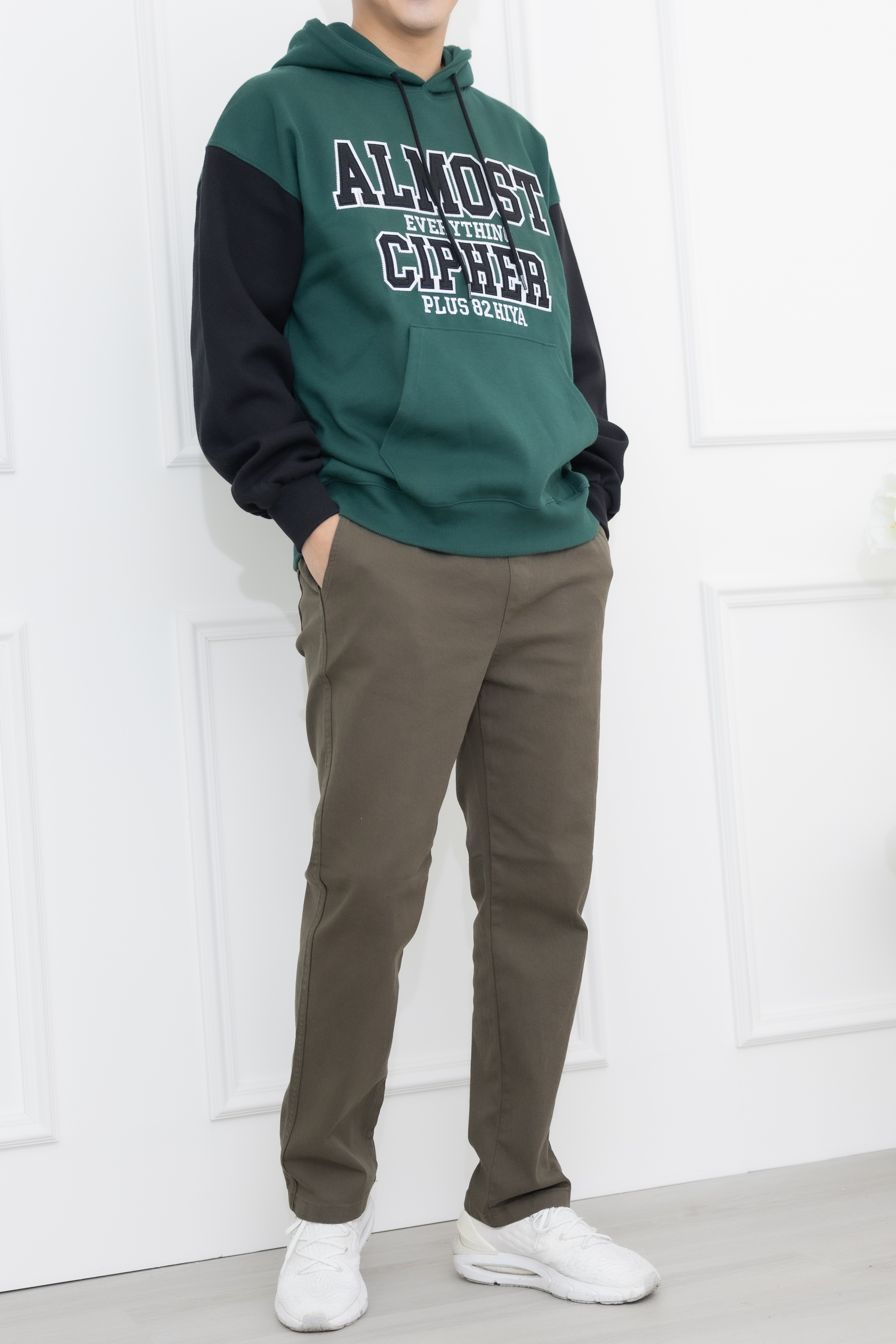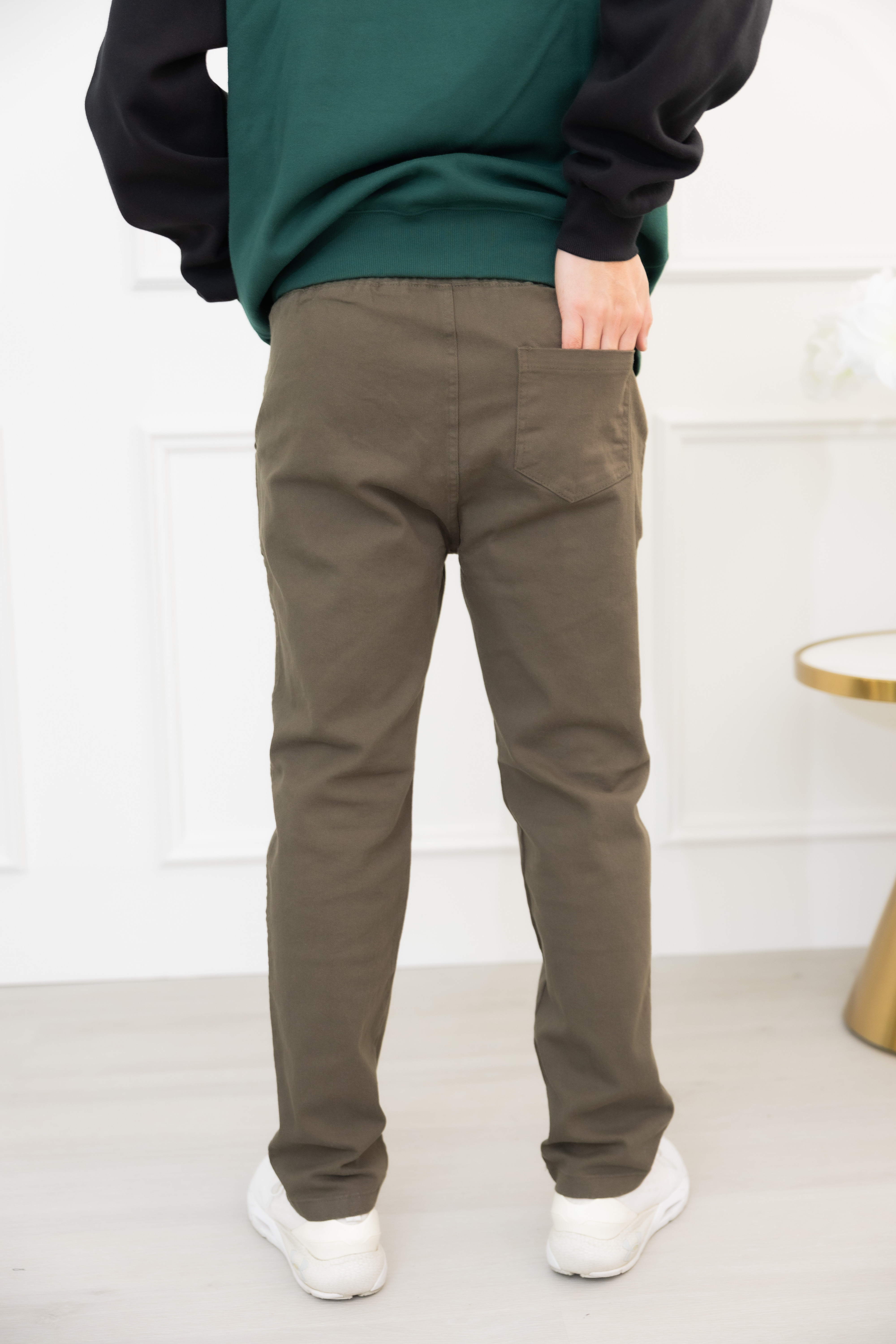 긴 바지 鬆緊合身長褲/墨綠色
