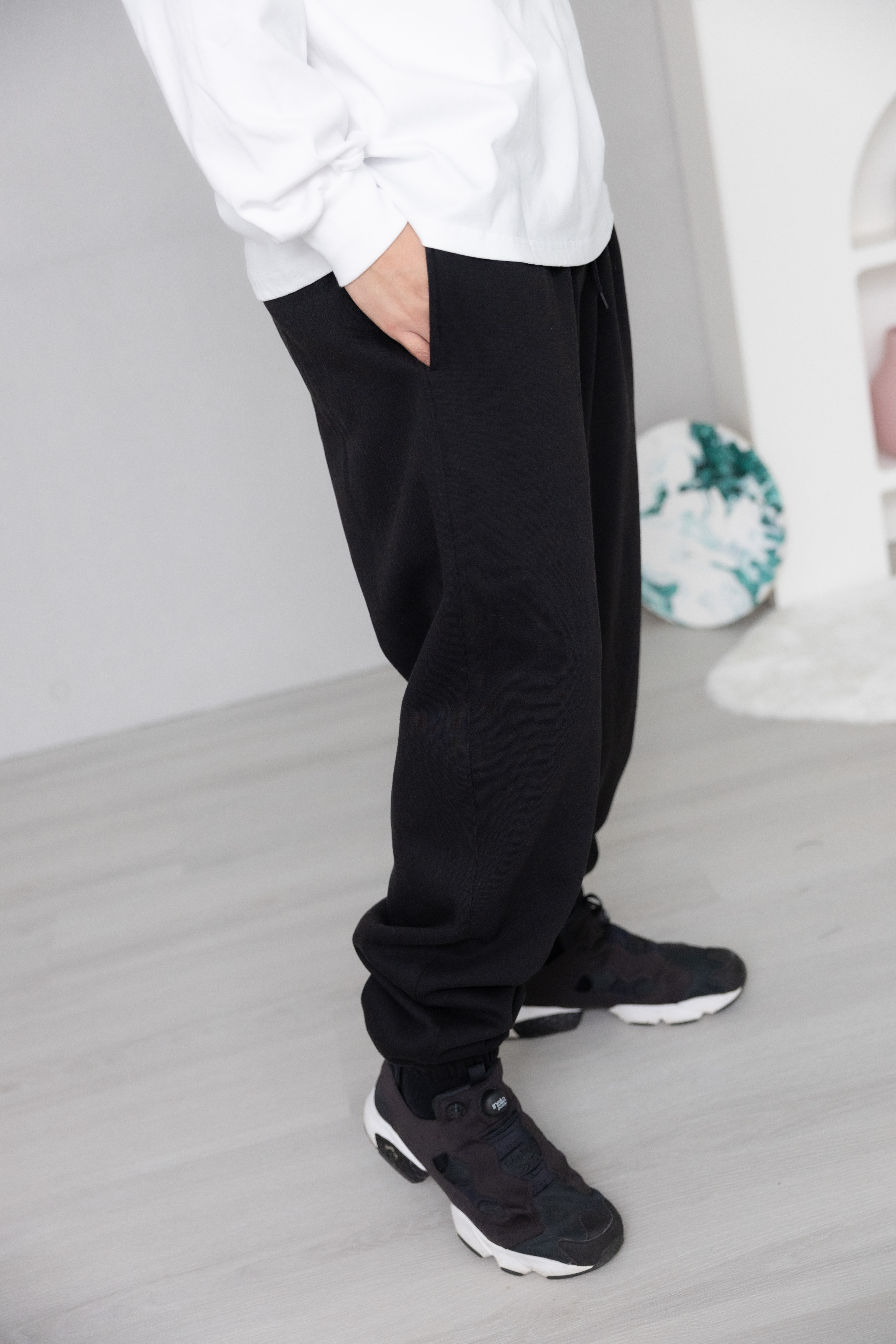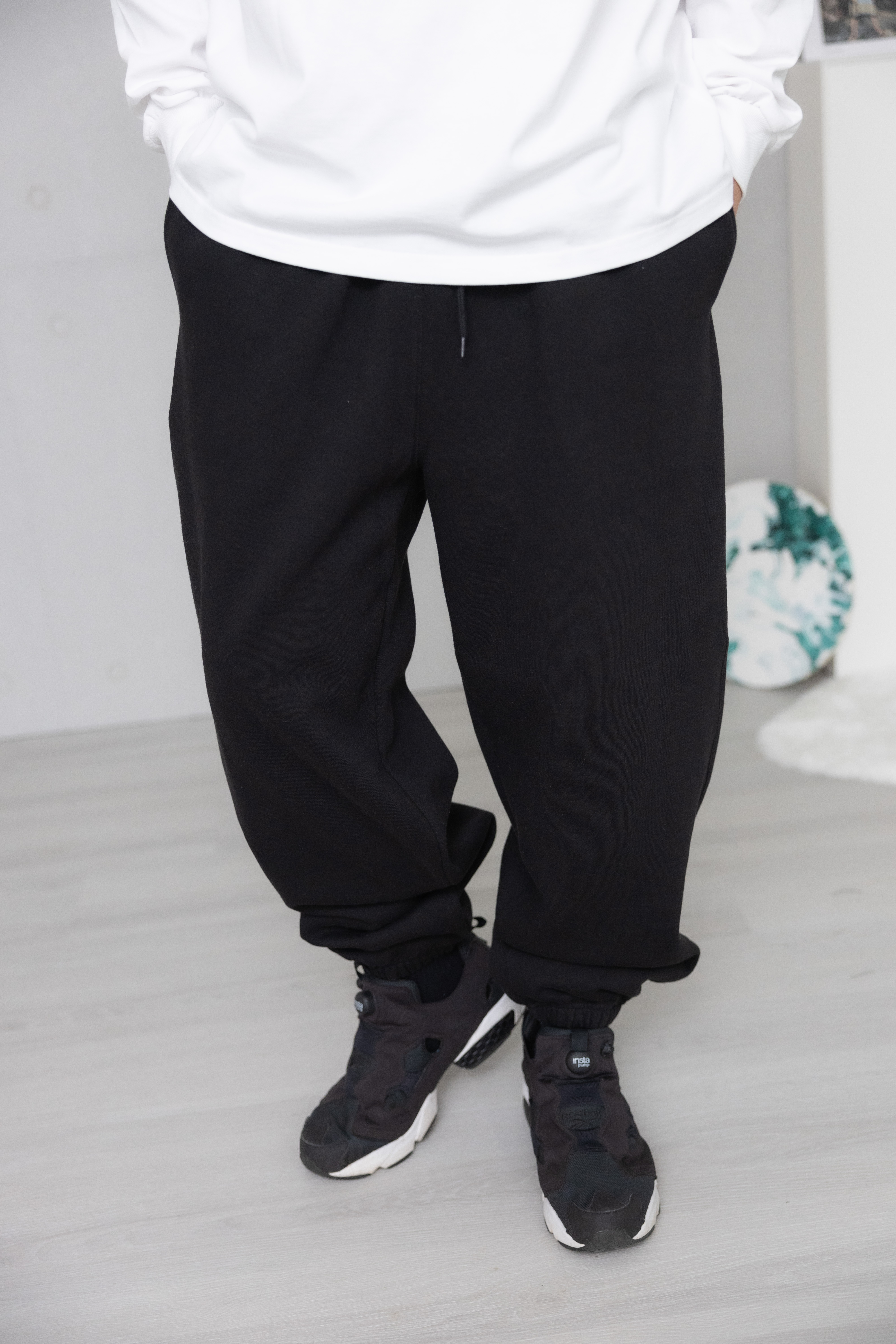 긴 바지 鬆緊褲腳棉長褲/黑色