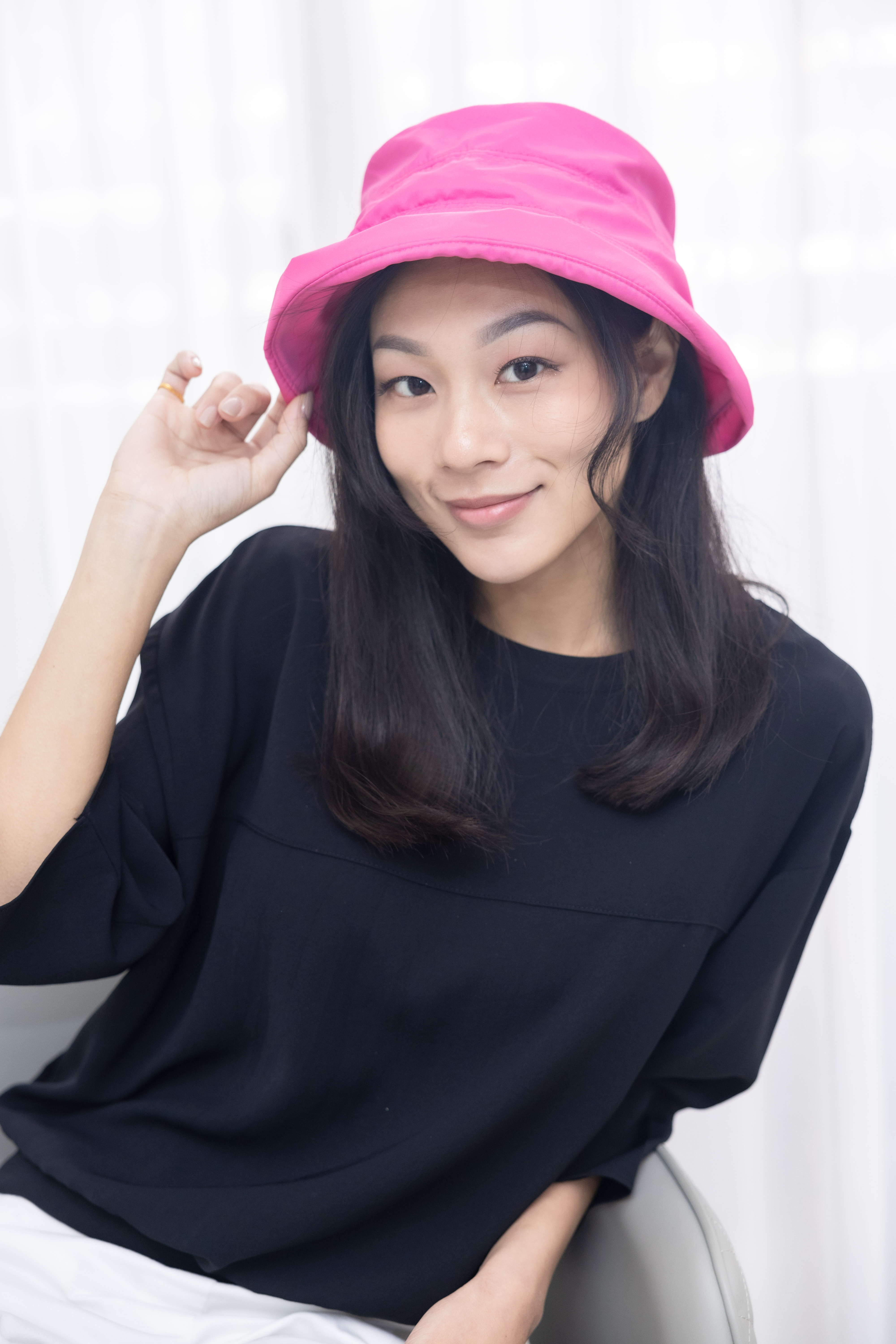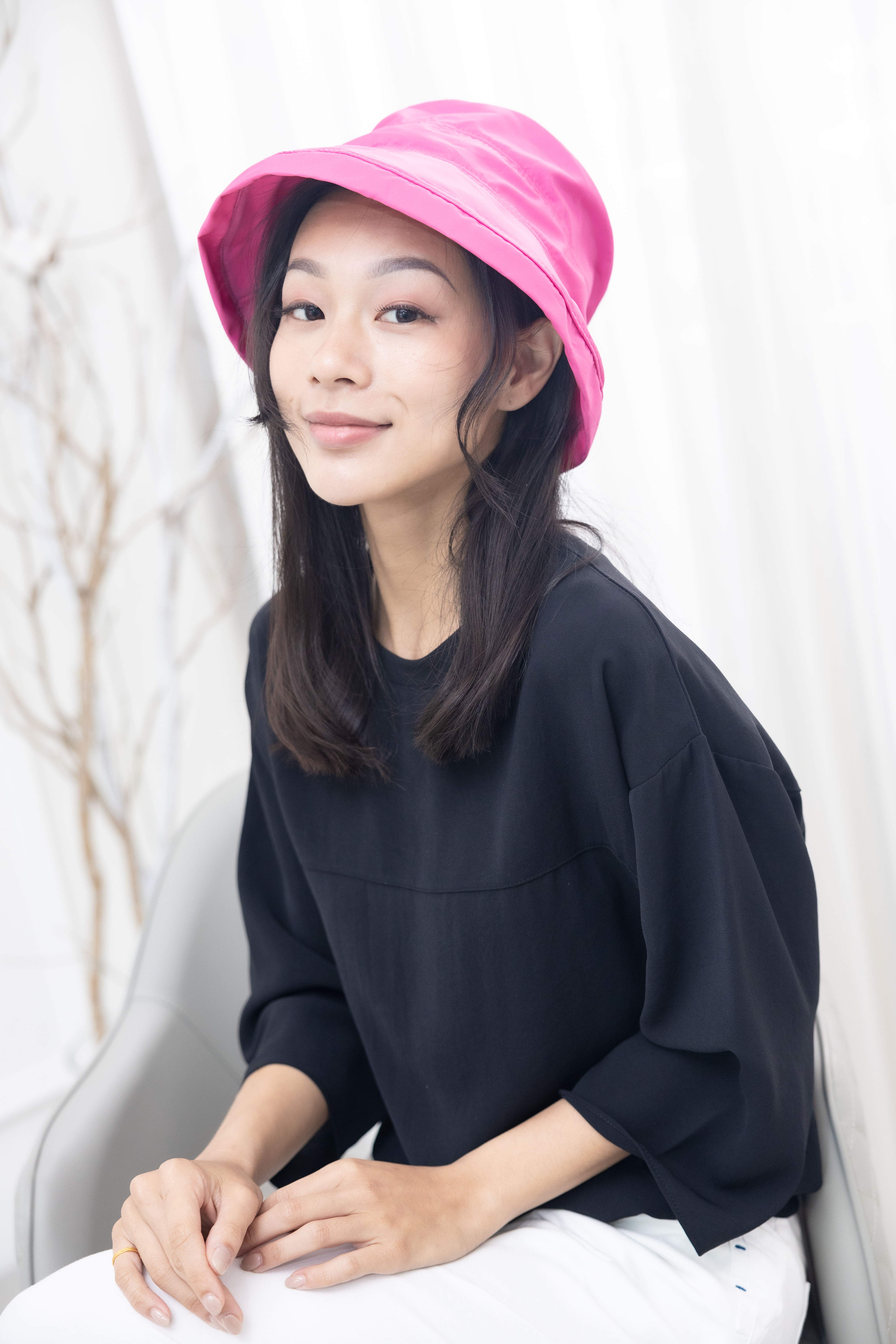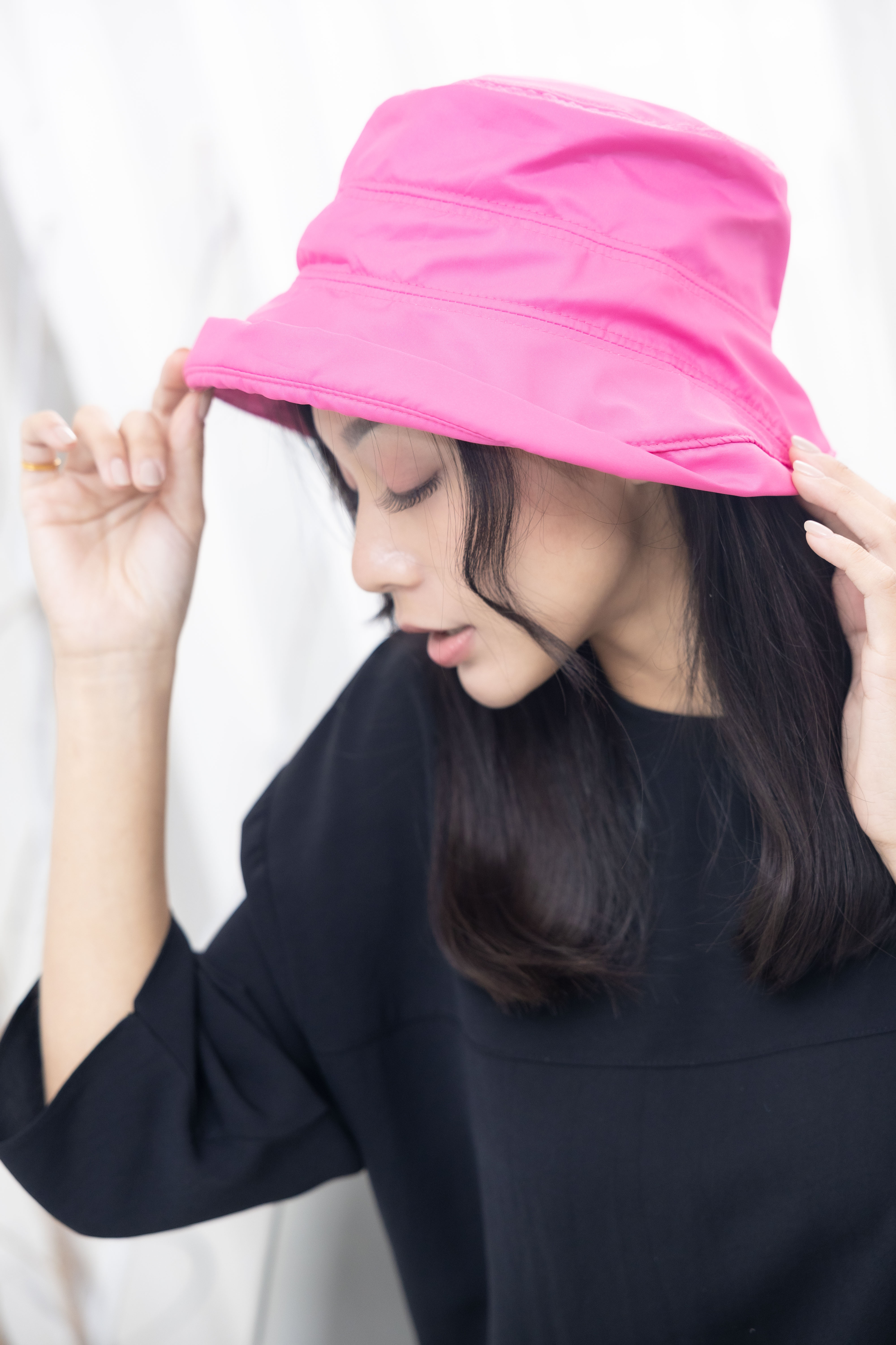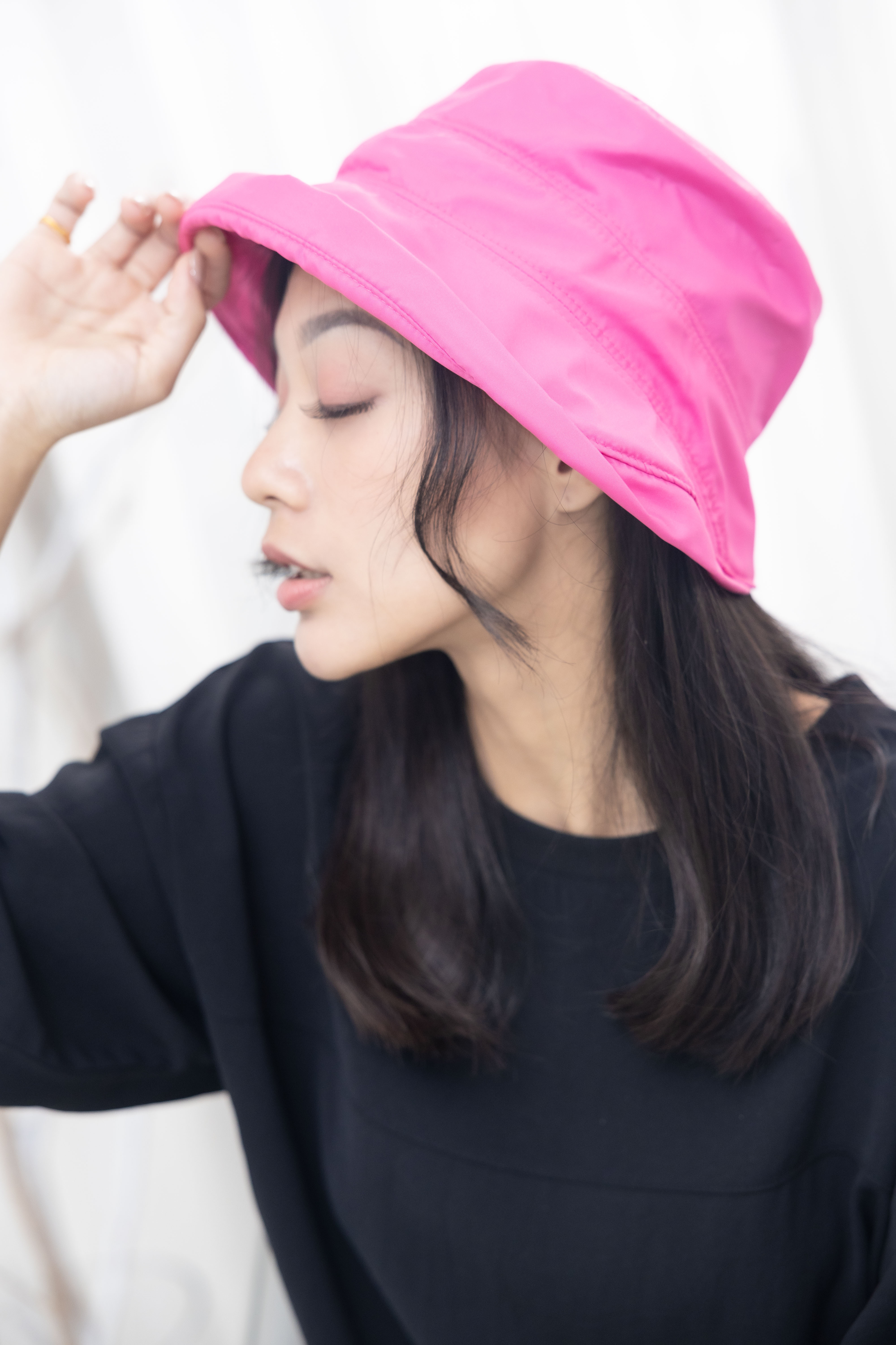 모자 拼接式漁夫帽/桃紅色