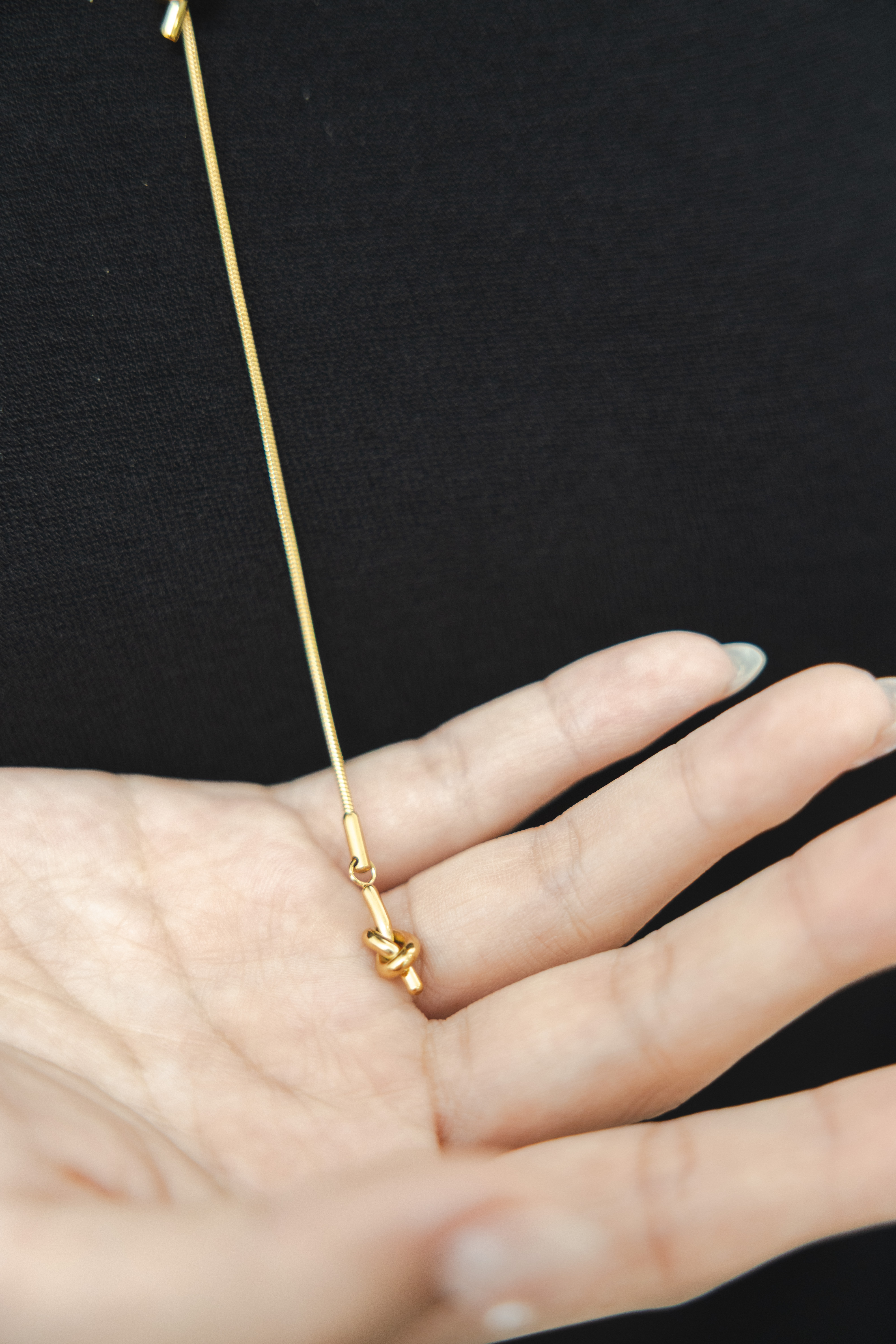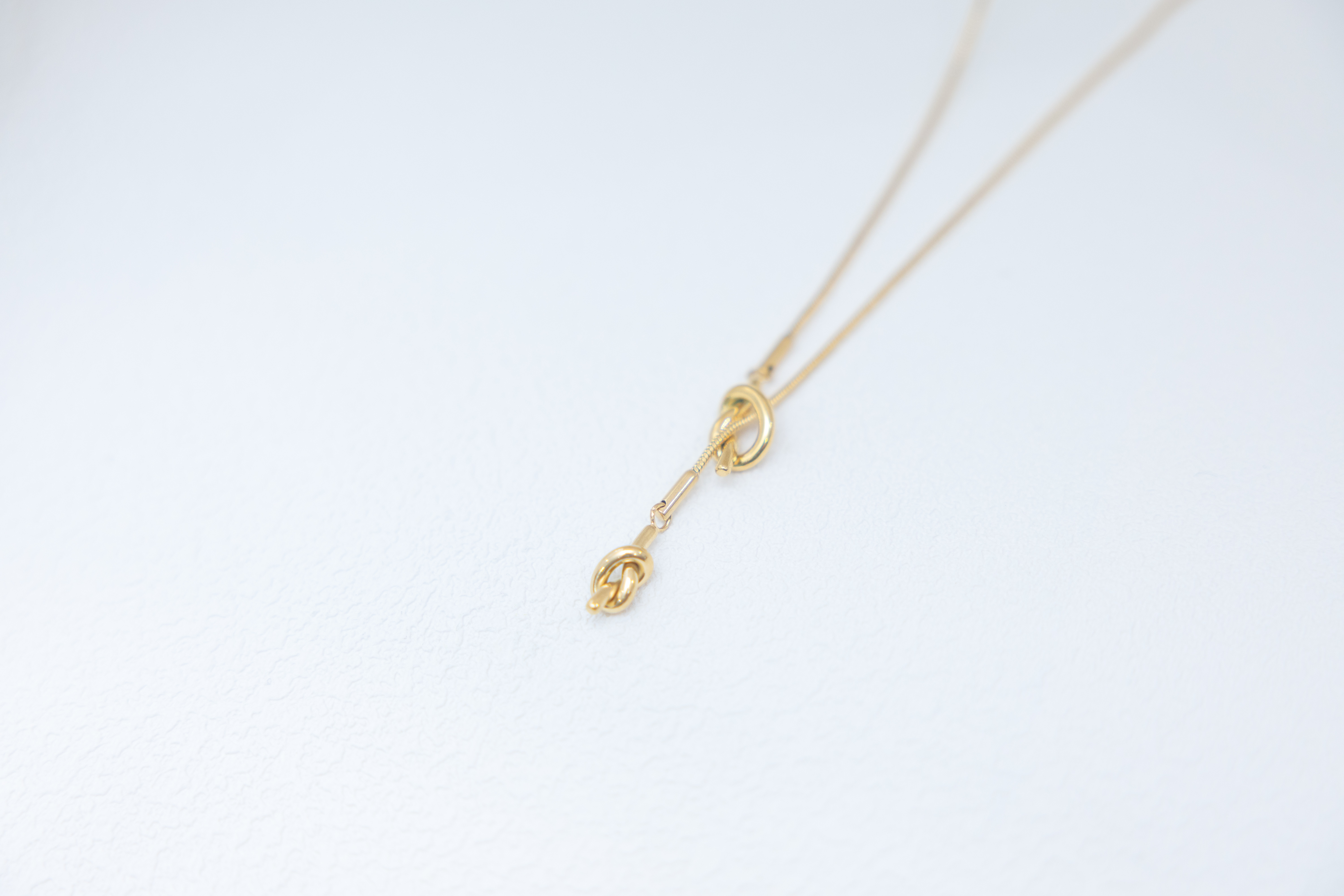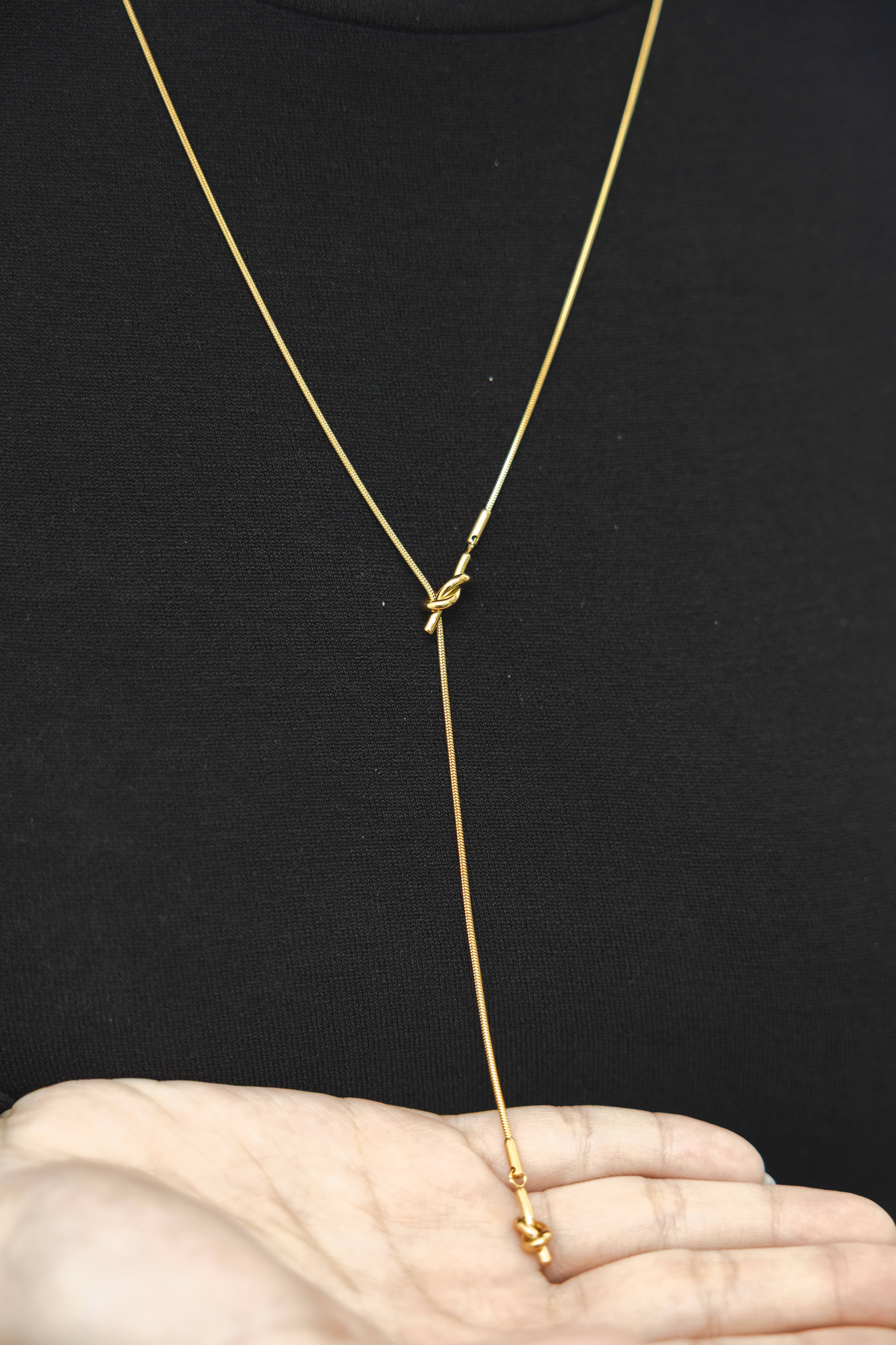 목걸이 兩扭結可調節Y字細蛇鍊項鍊 / 金色
