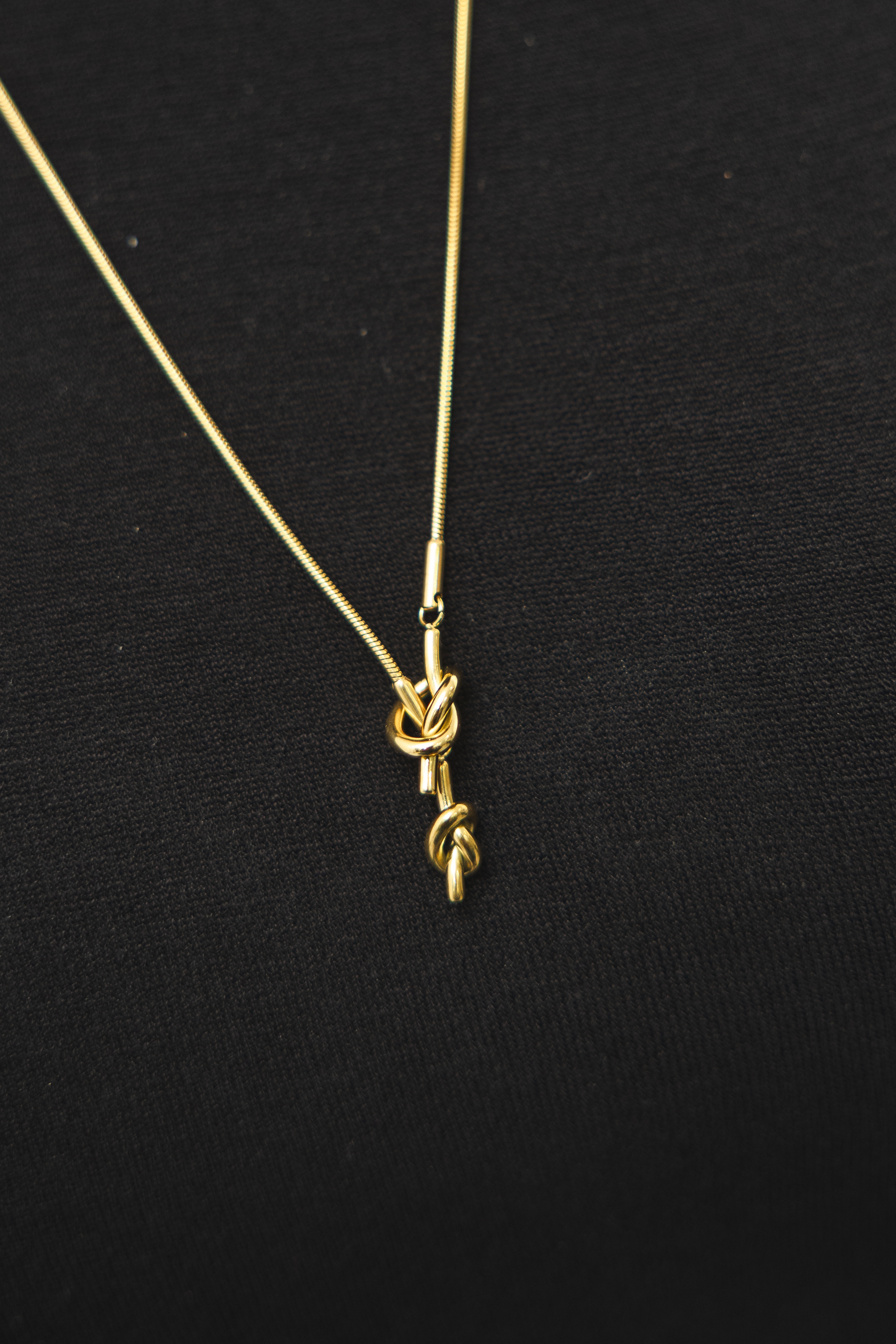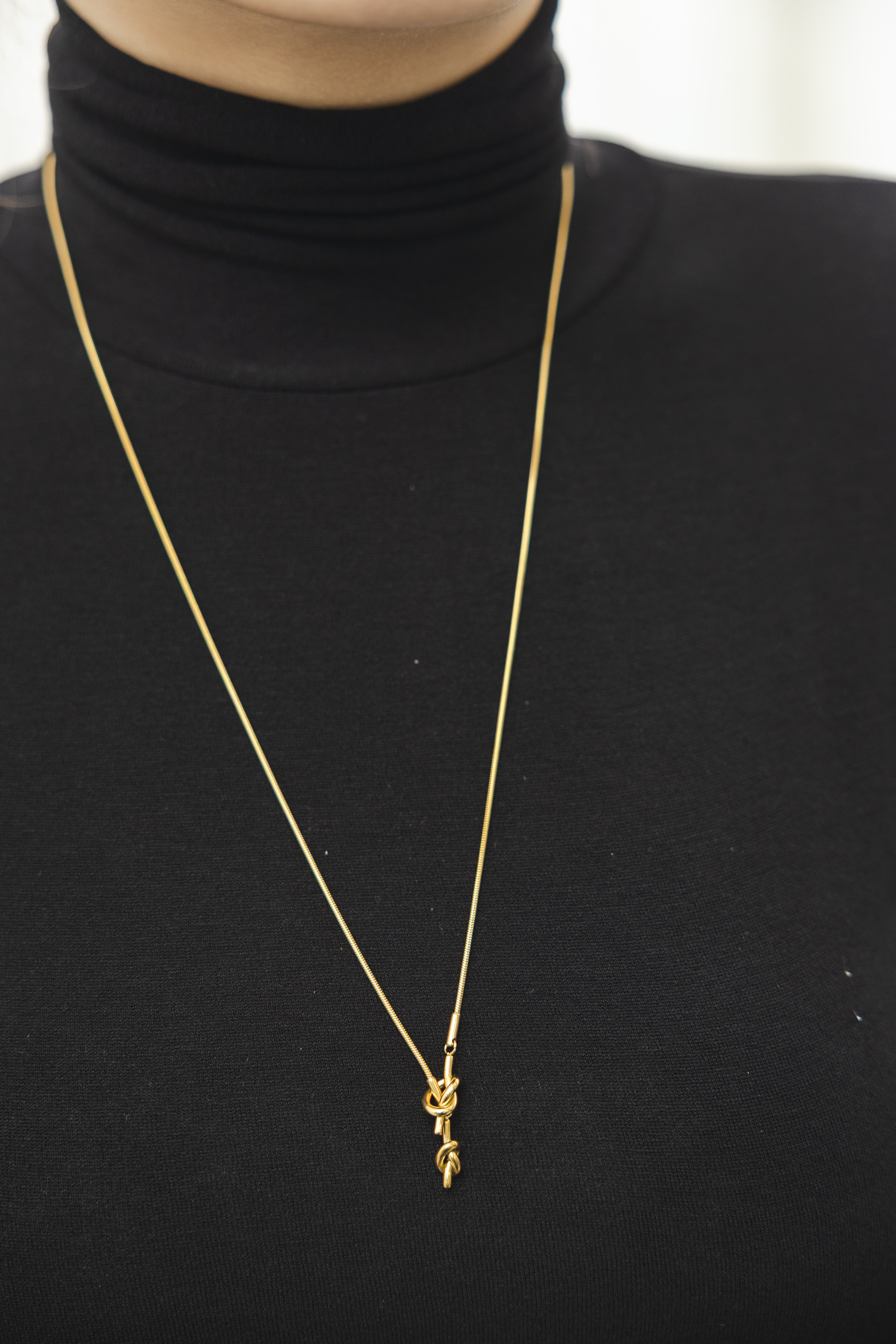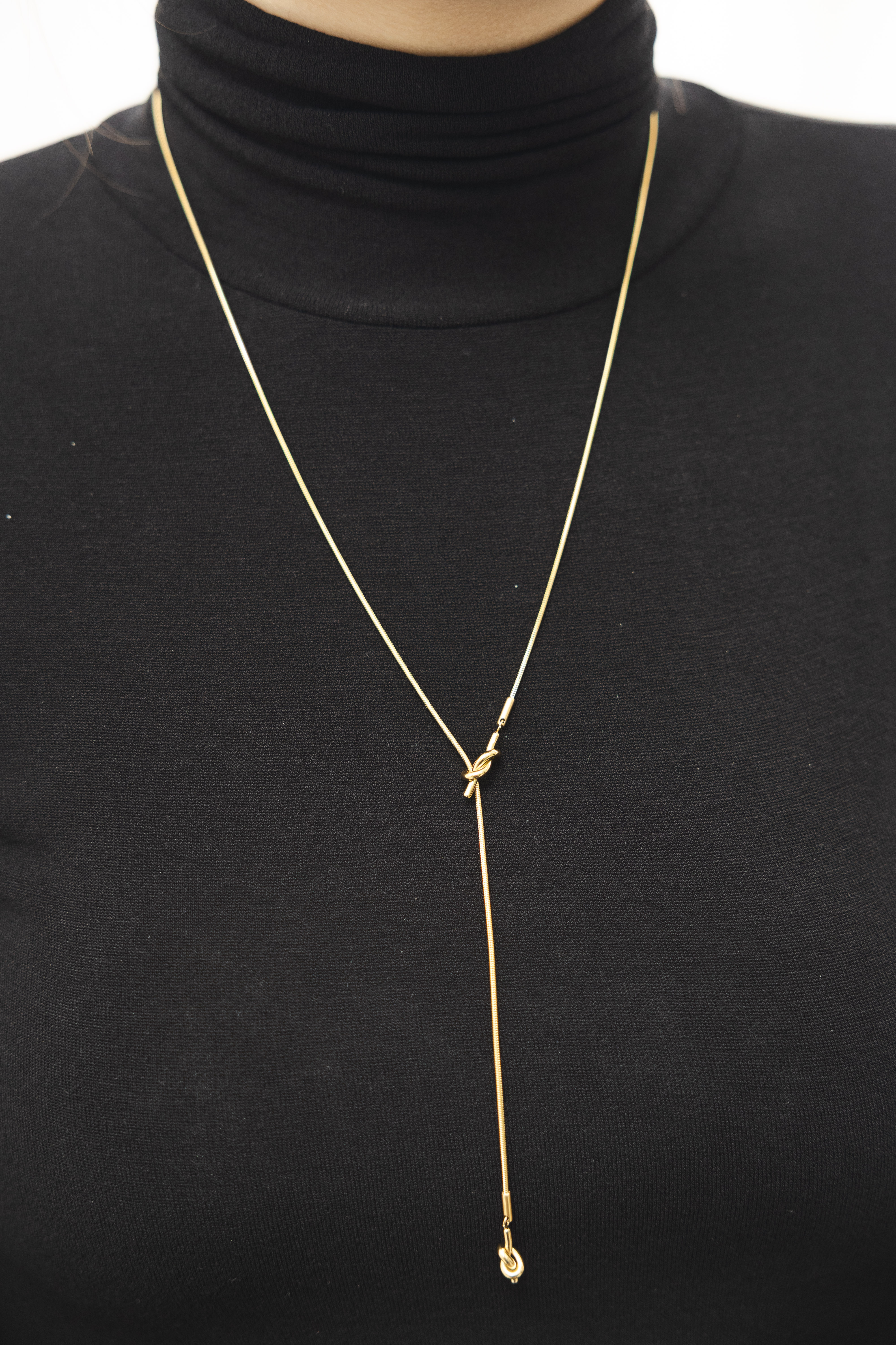 목걸이 兩扭結可調節Y字細蛇鍊項鍊 / 金色