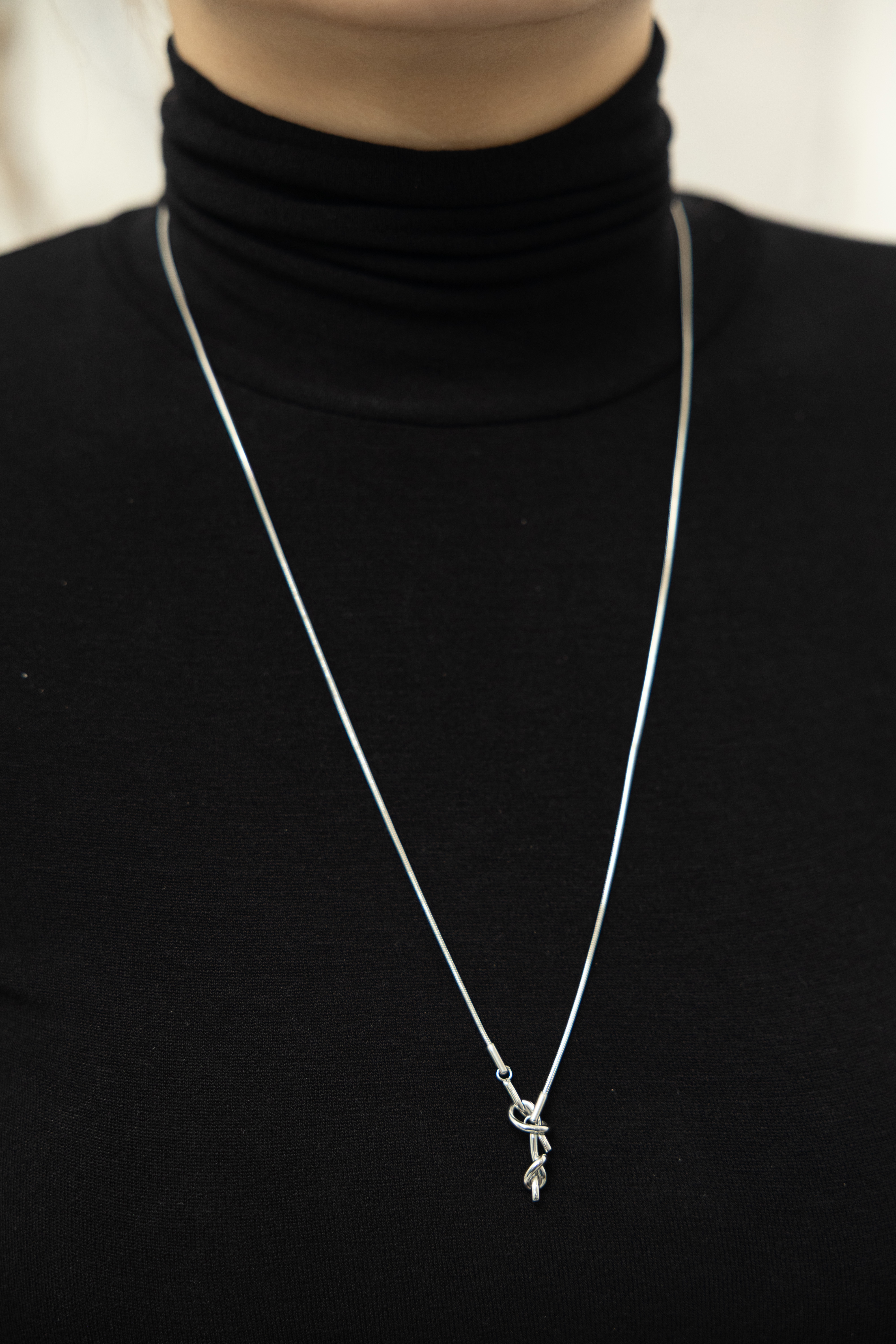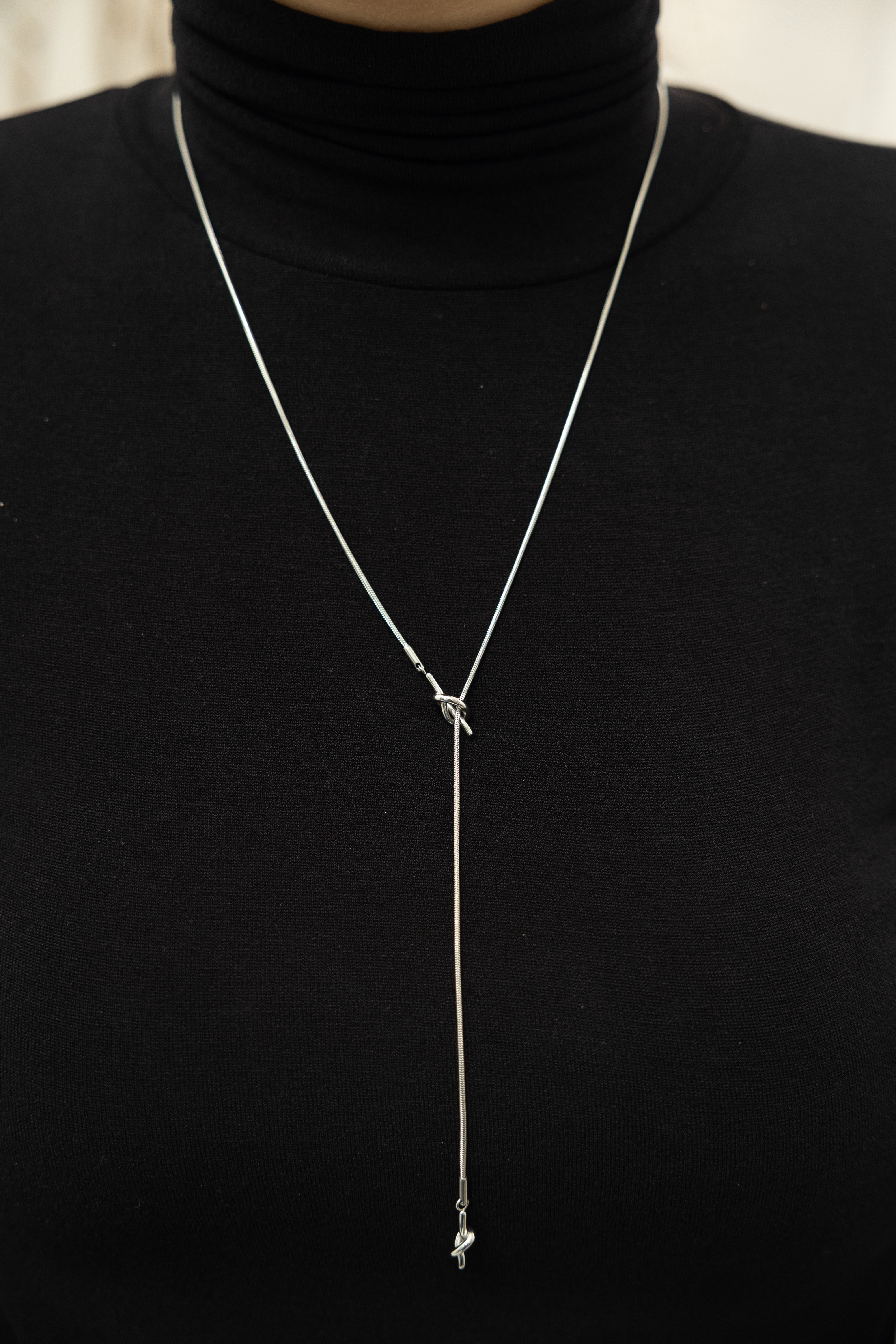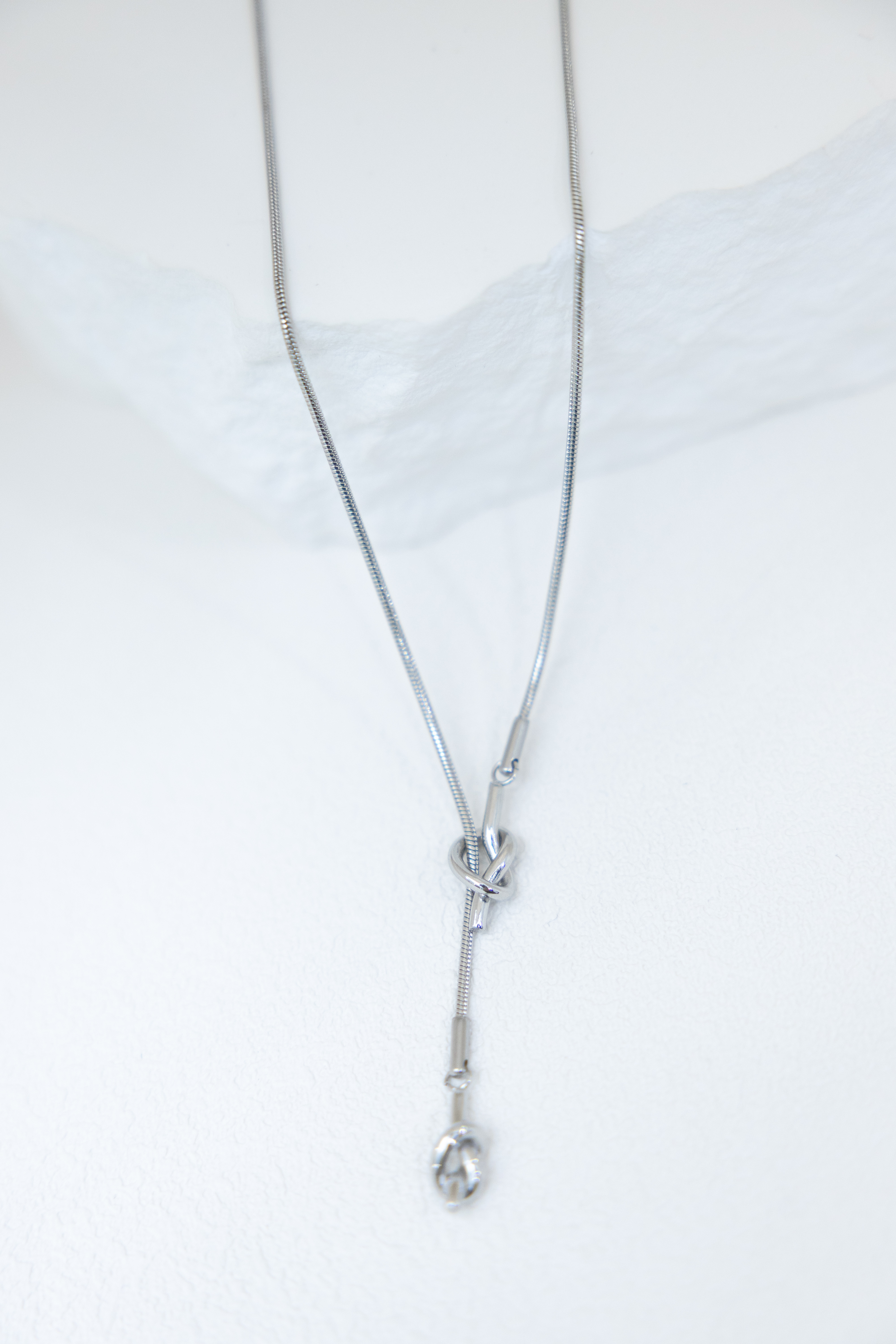 목걸이 兩扭結可調節Y字細蛇鍊項鍊 / 銀色