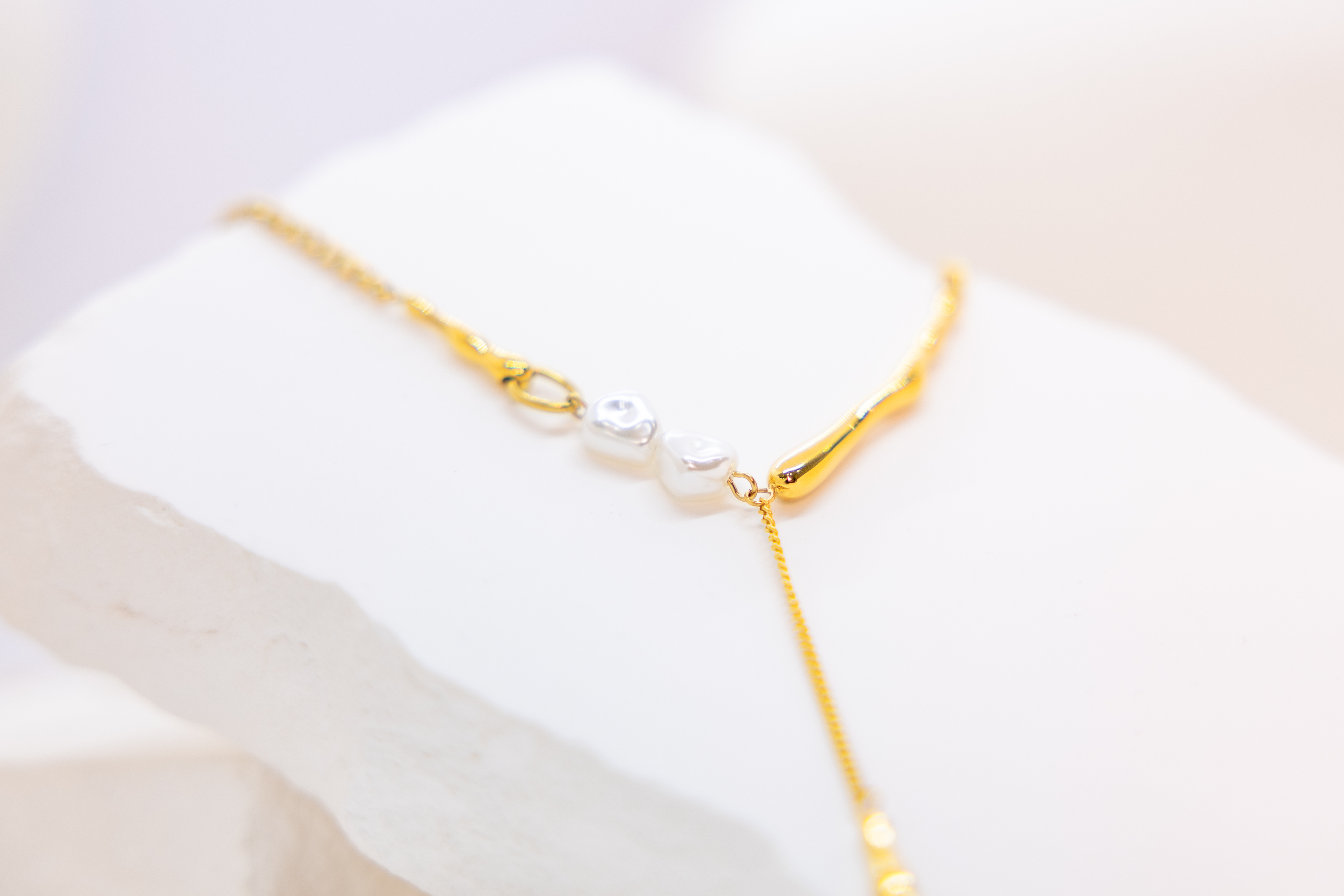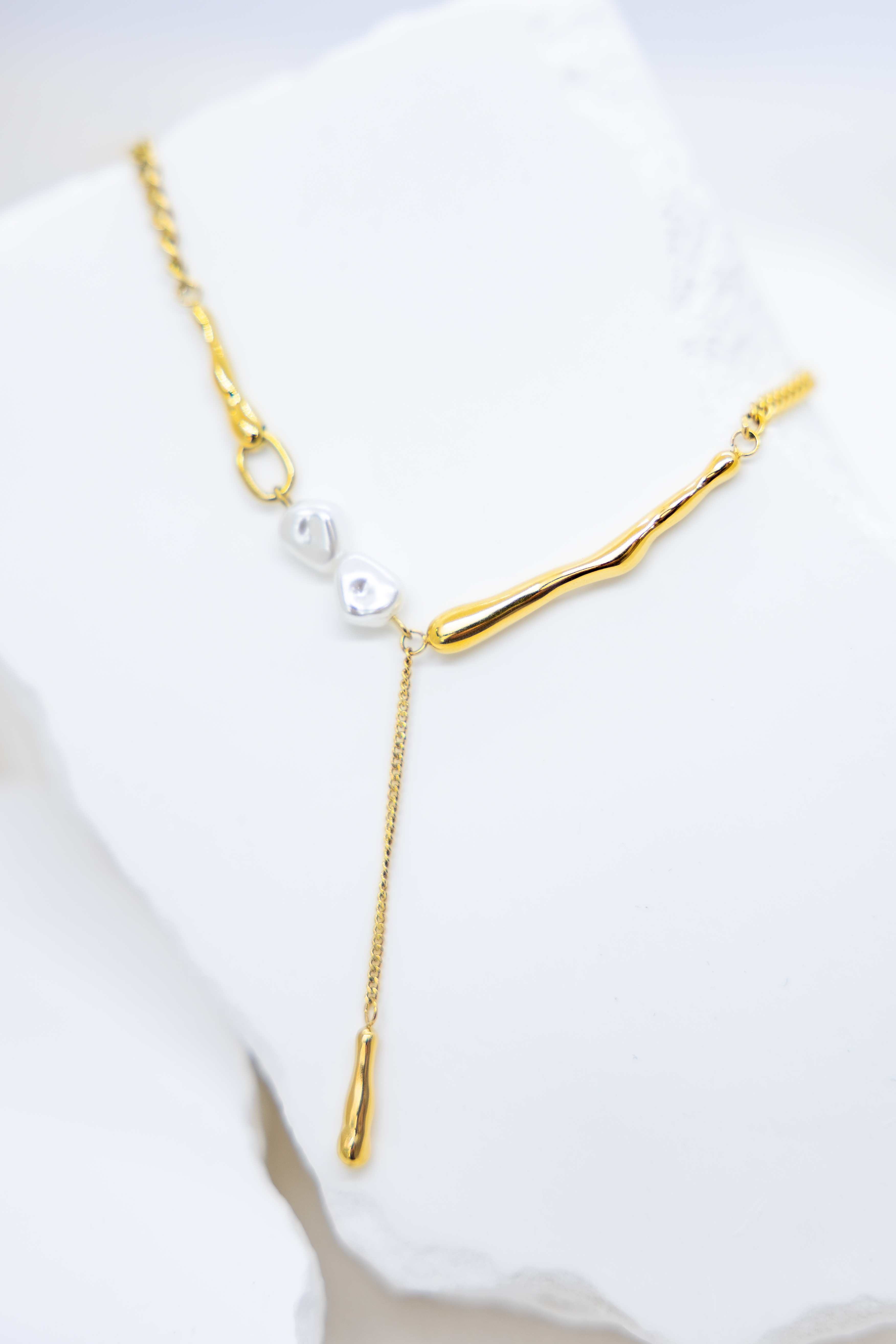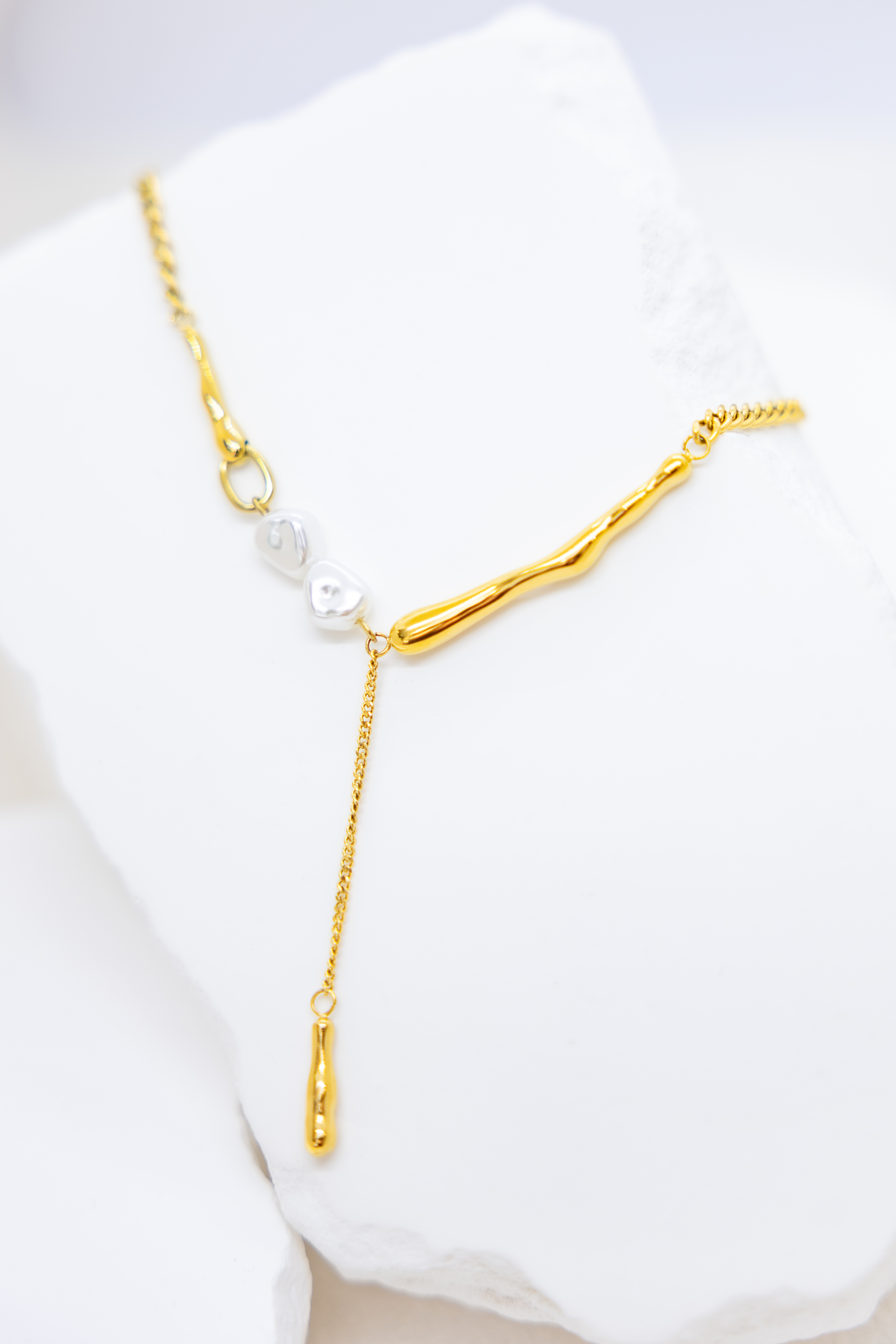 목걸이 小珍珠固定式短Y字鍊墜小柱體喜平鍊 / 金色