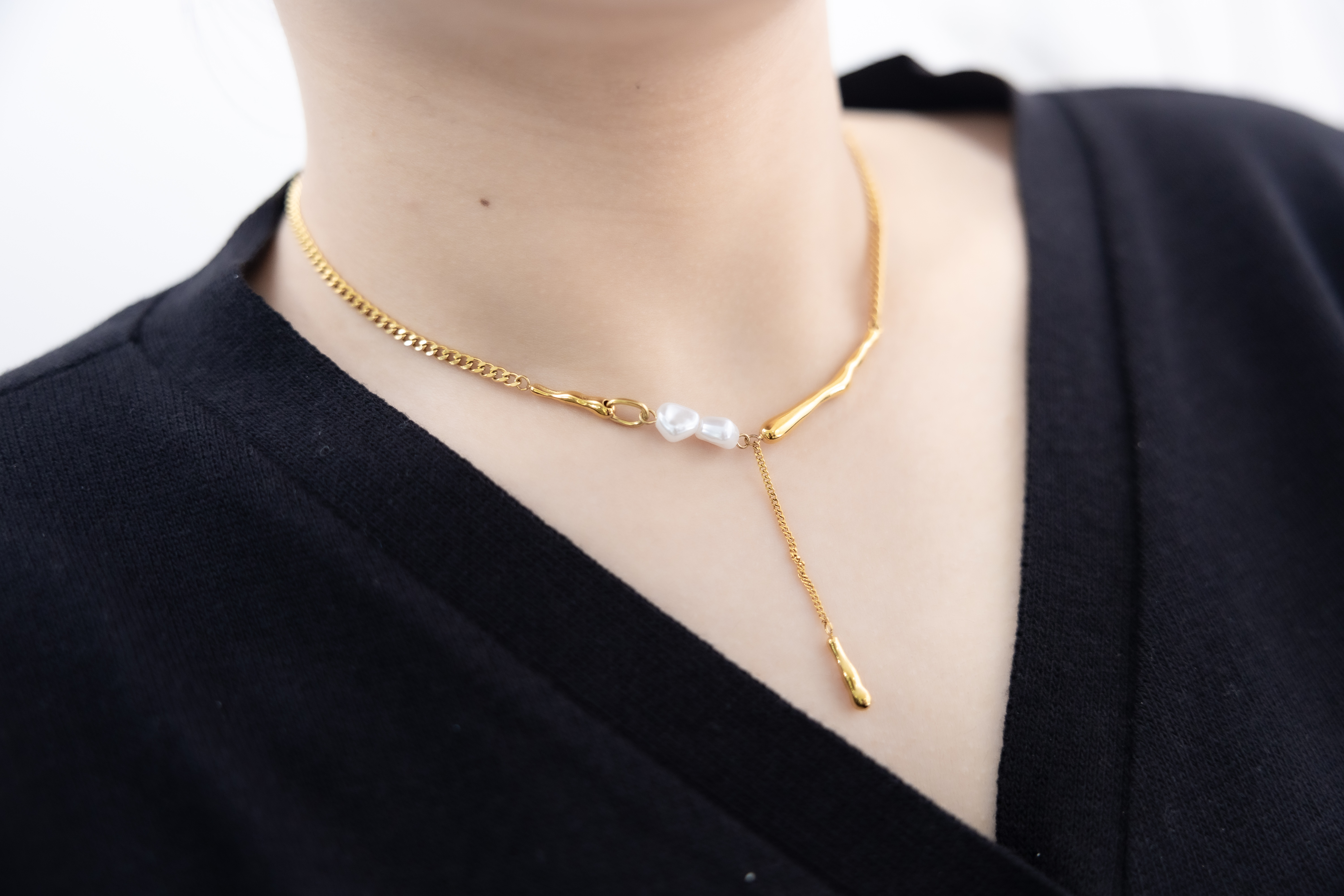 小珍珠固定式短Y字鍊墜小柱體喜平鍊