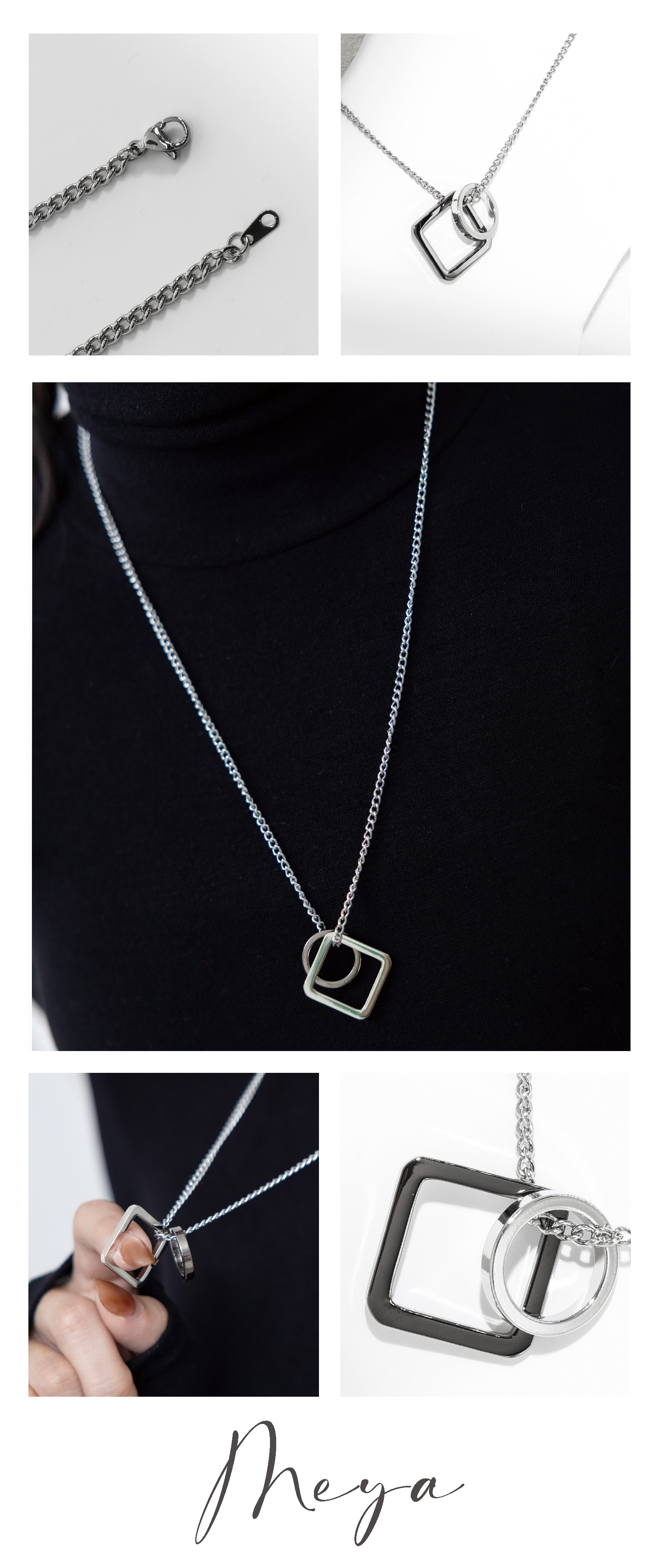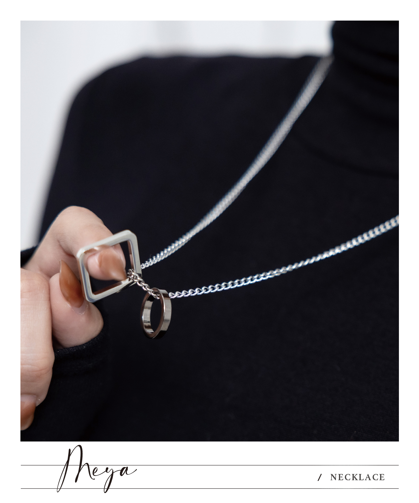목걸이 幾何環墜項鍊   / 銀色