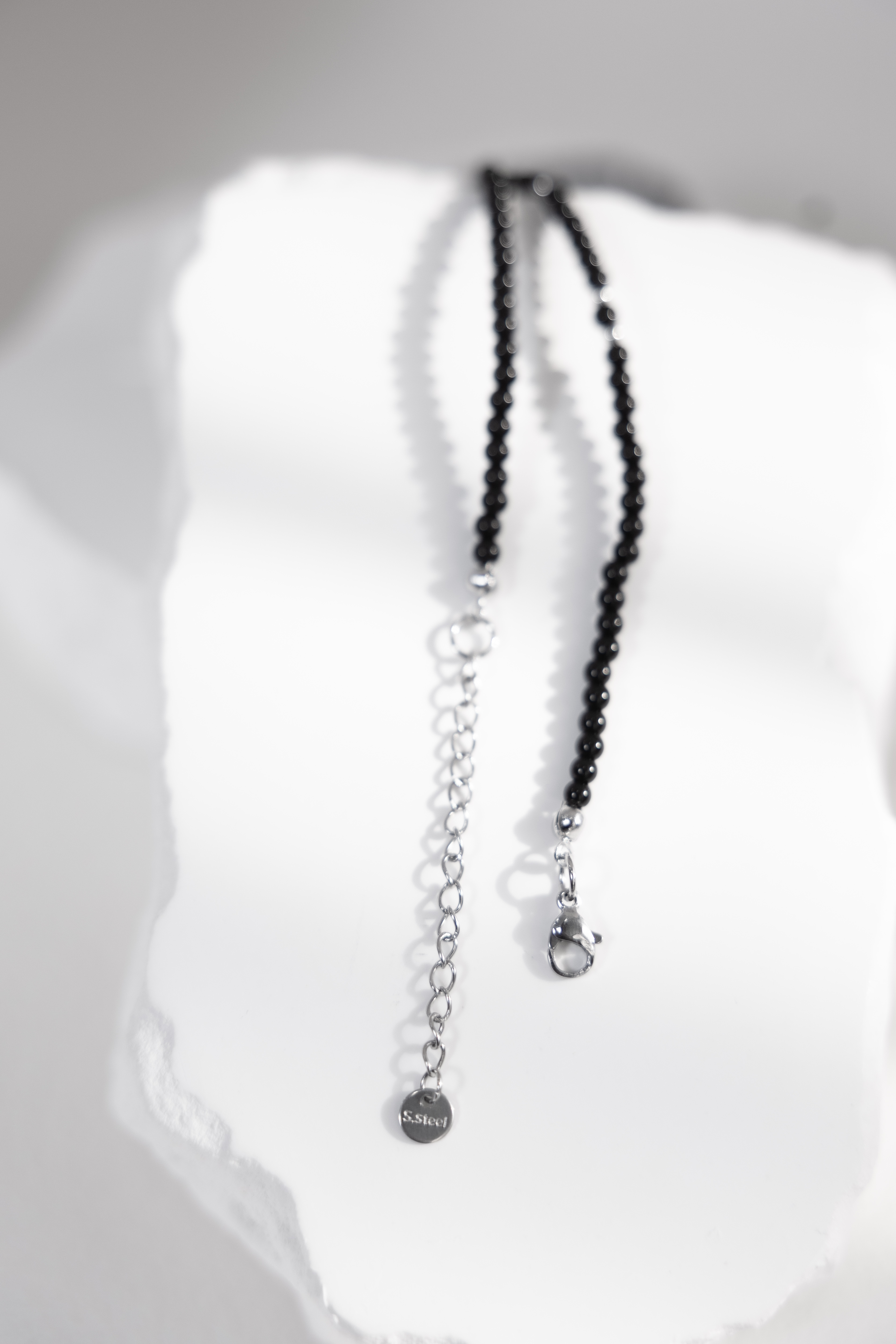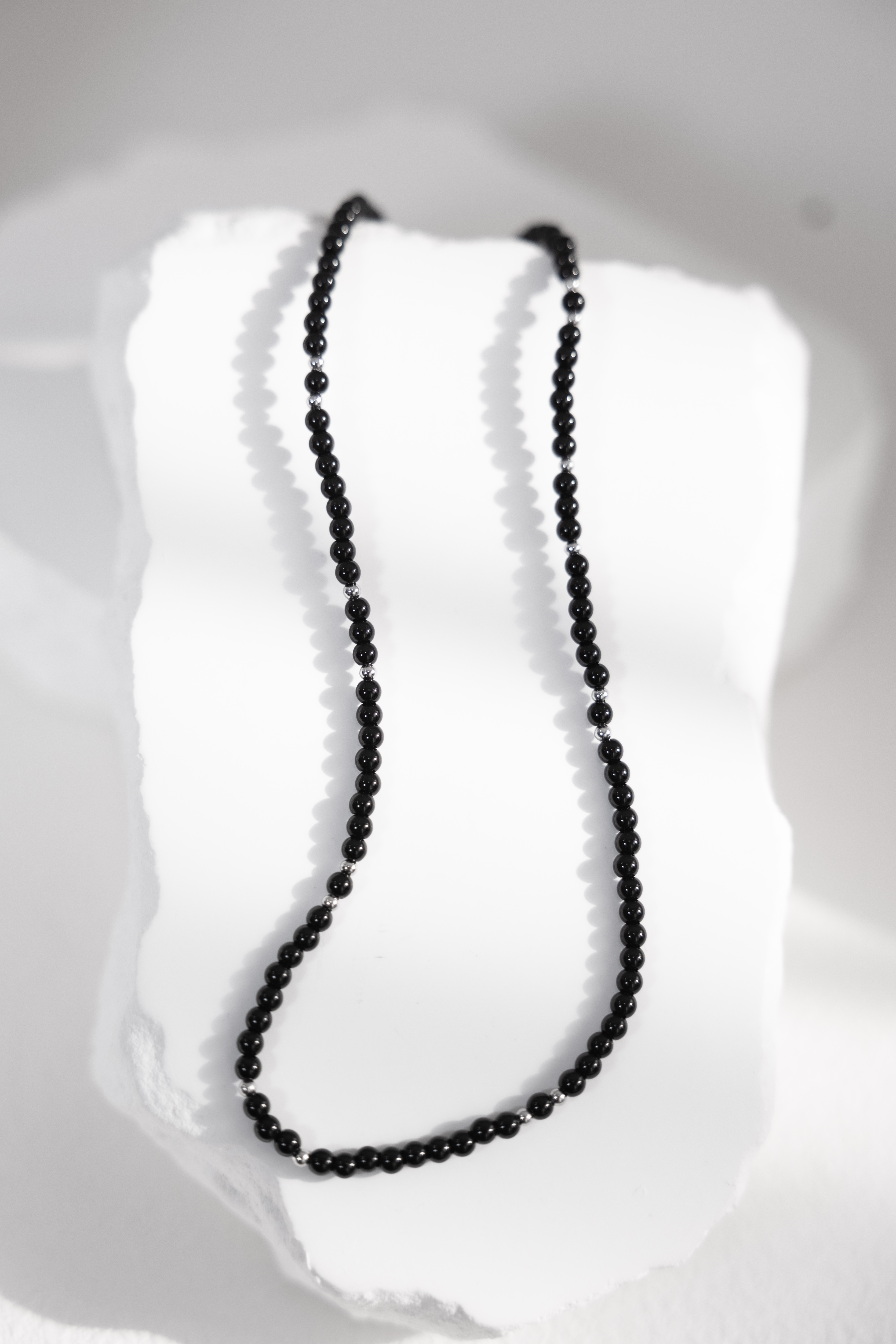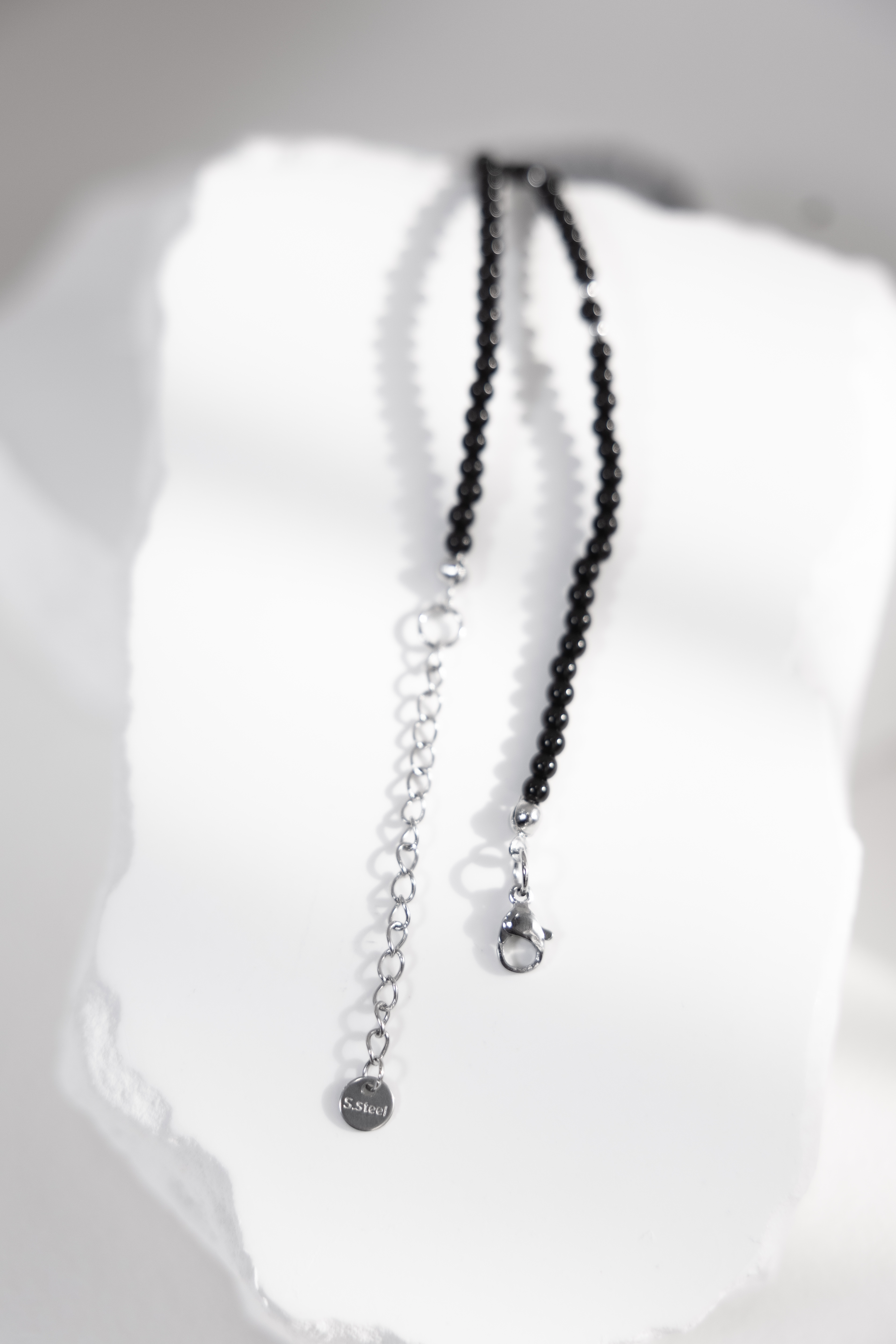 목걸이 瑪瑙圓珠間隔銀色小圓珠項鍊 / 黑色