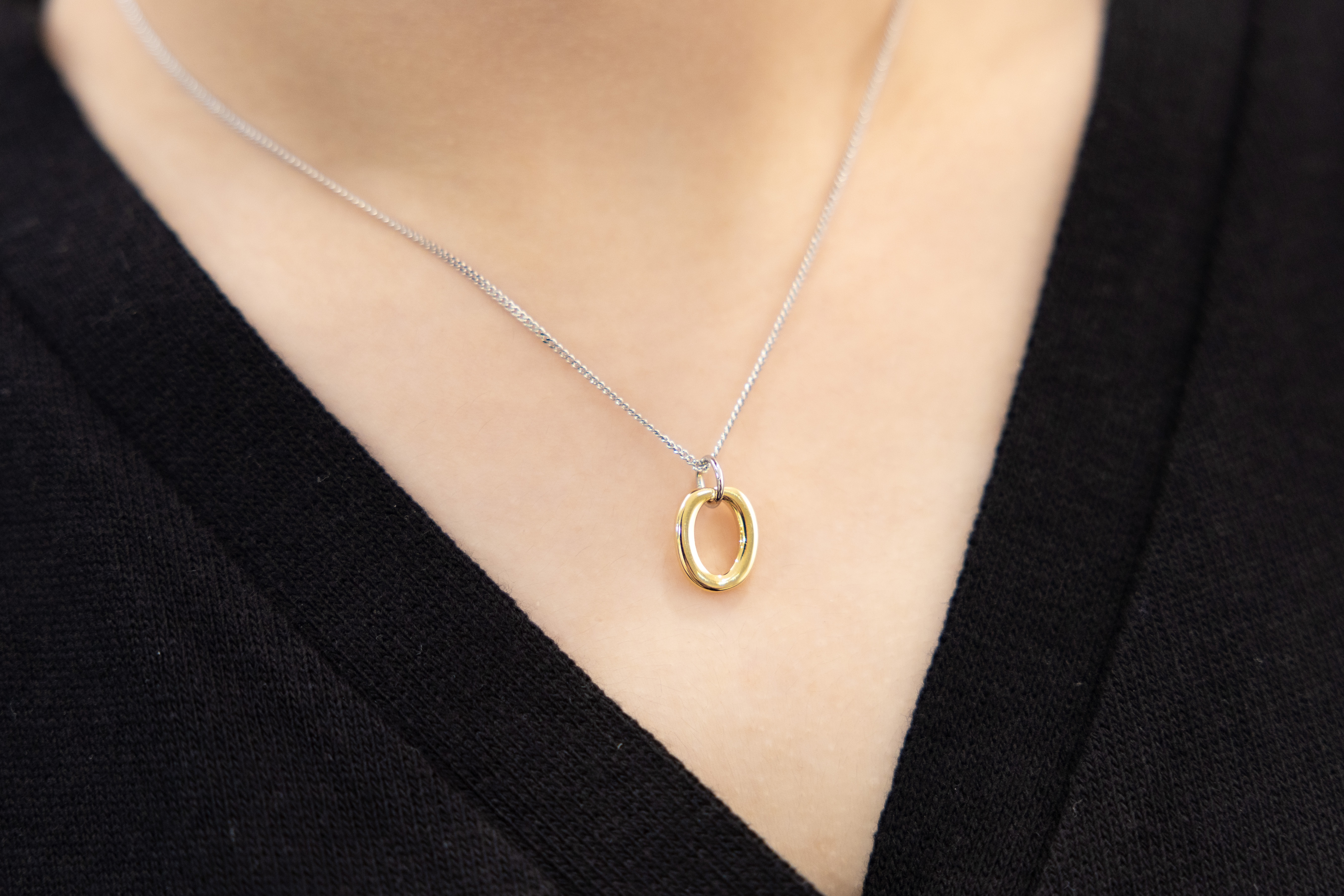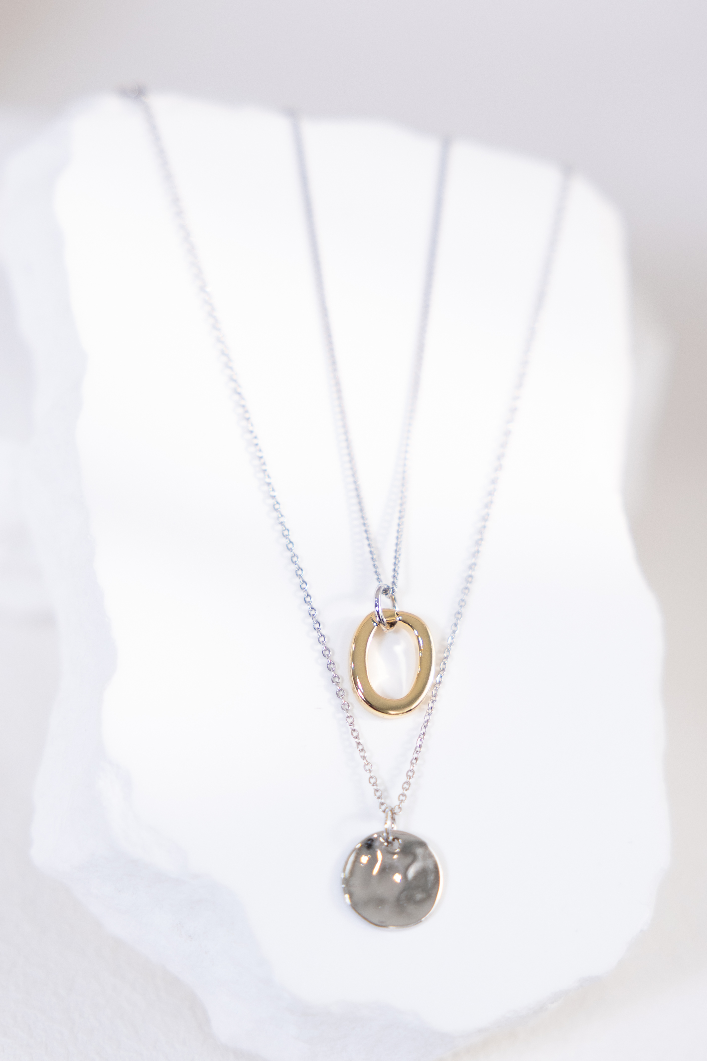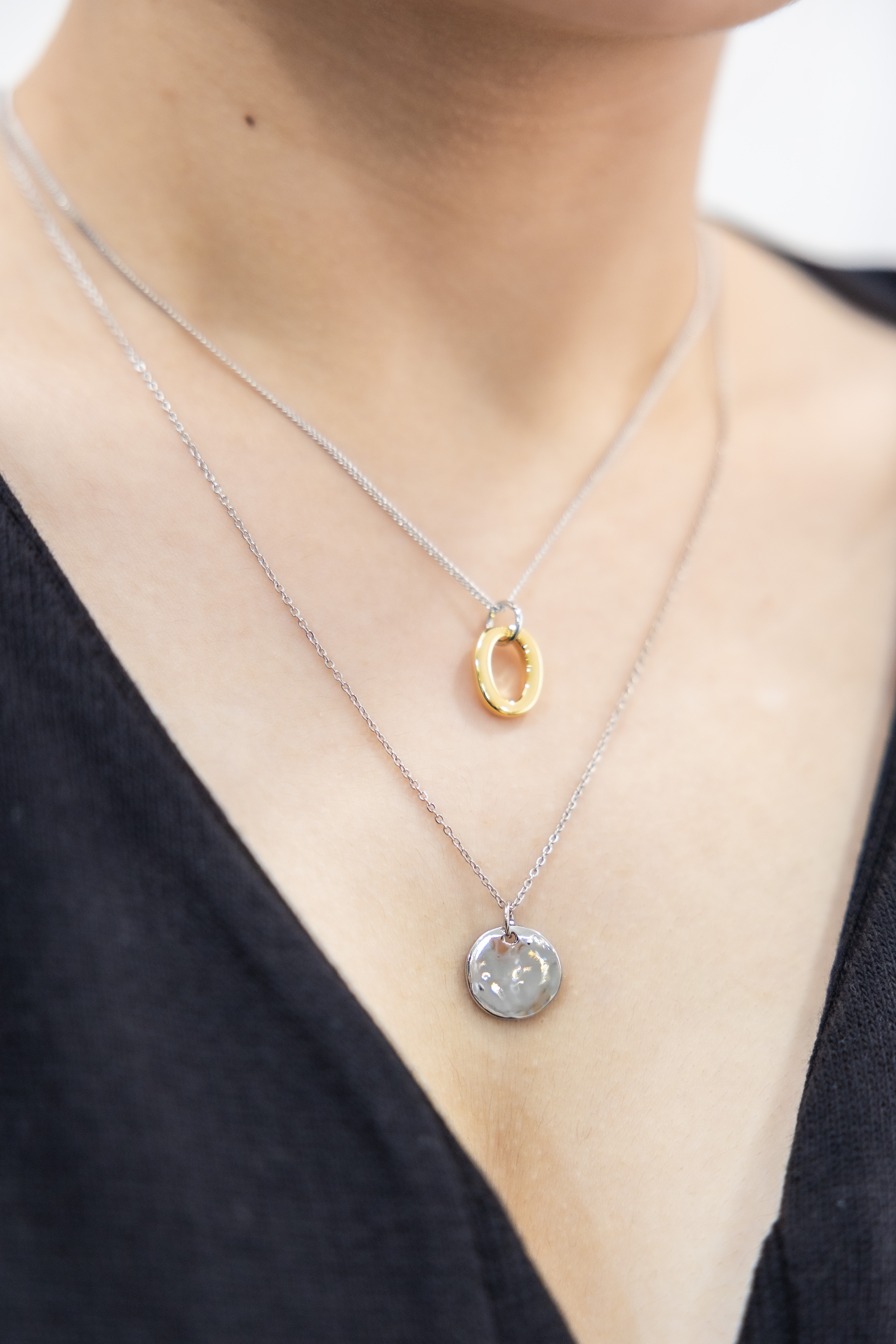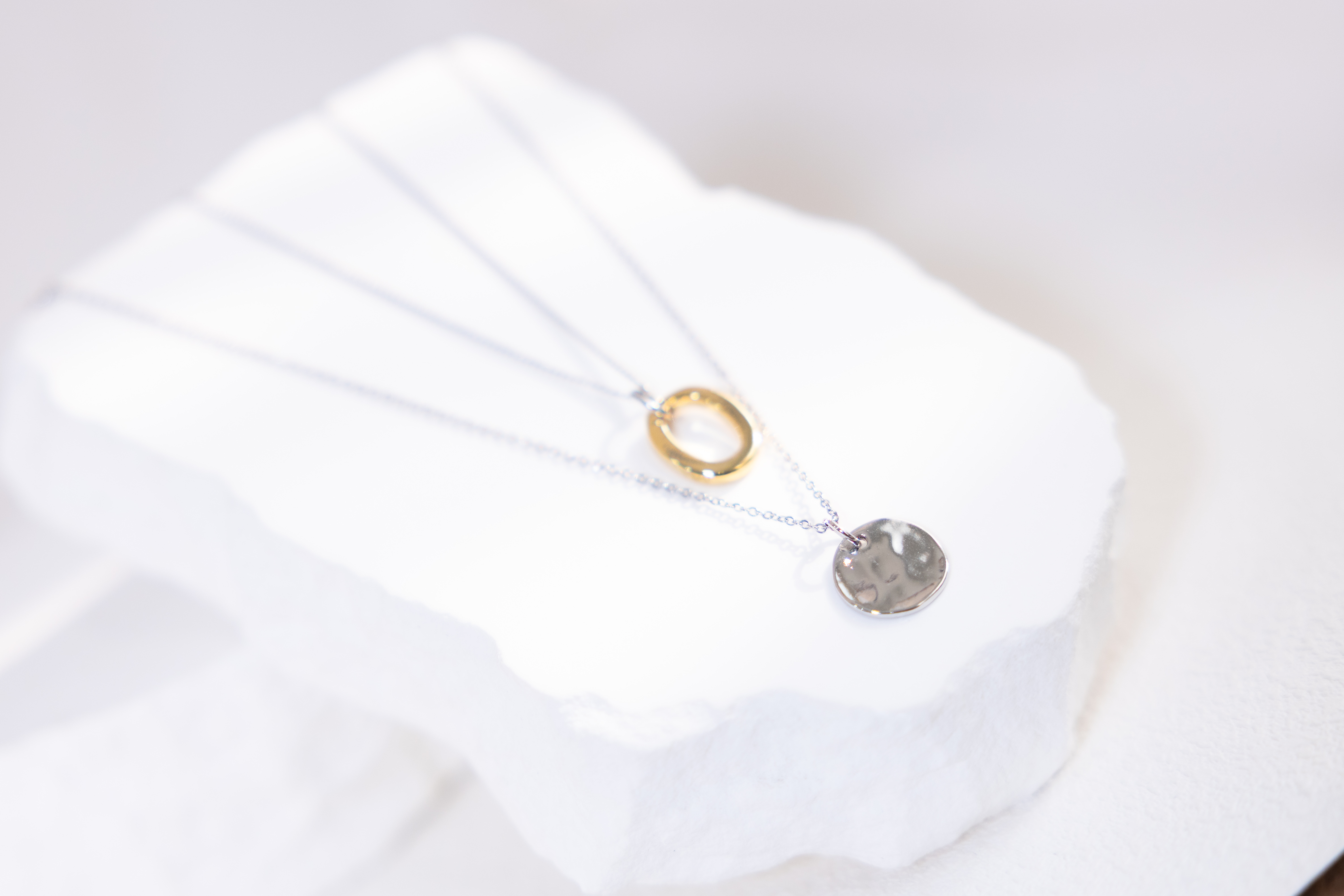 목걸이 金銀雙色橢圓圈細喜平鍊凹凸扁圓小豆鍊雙鍊