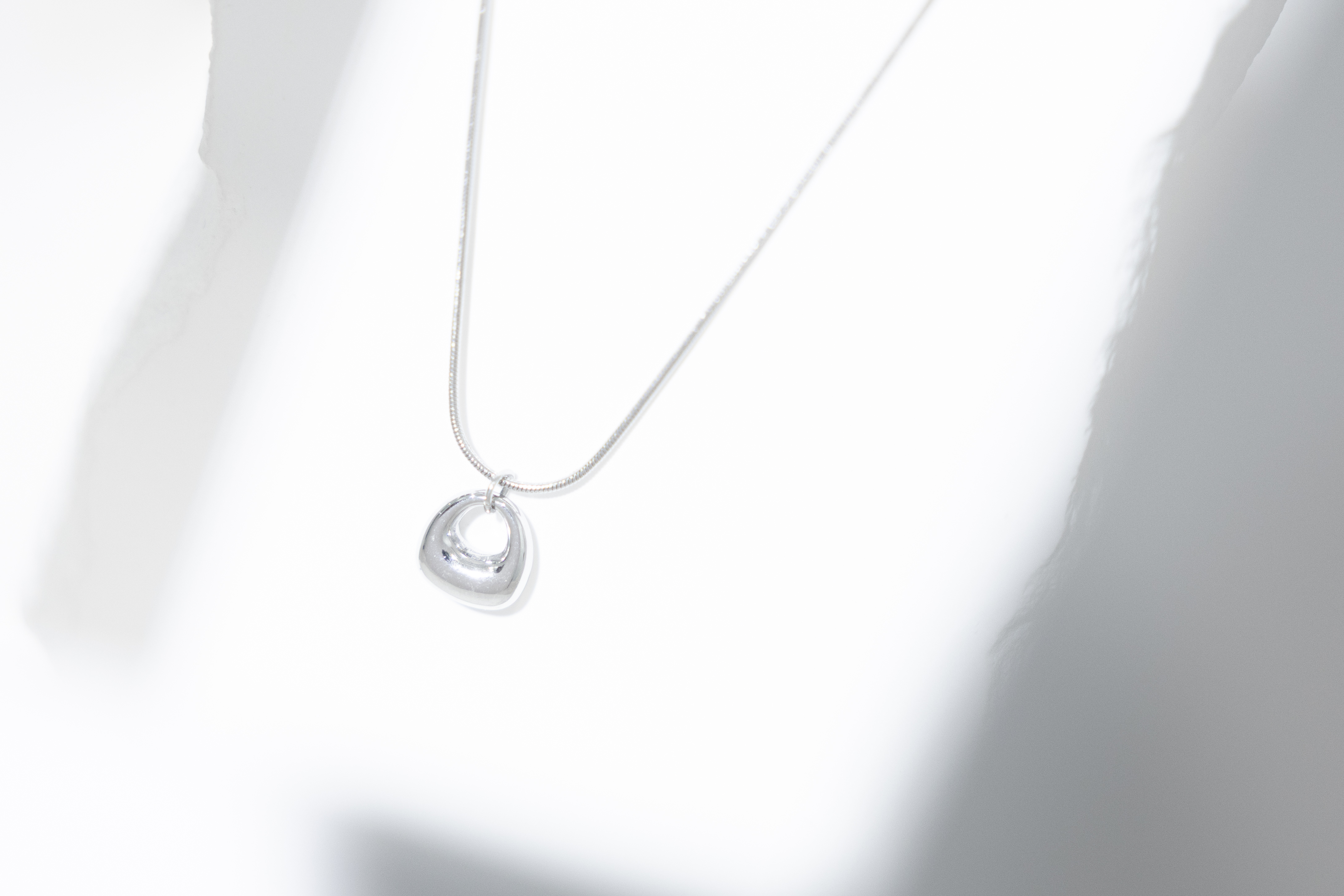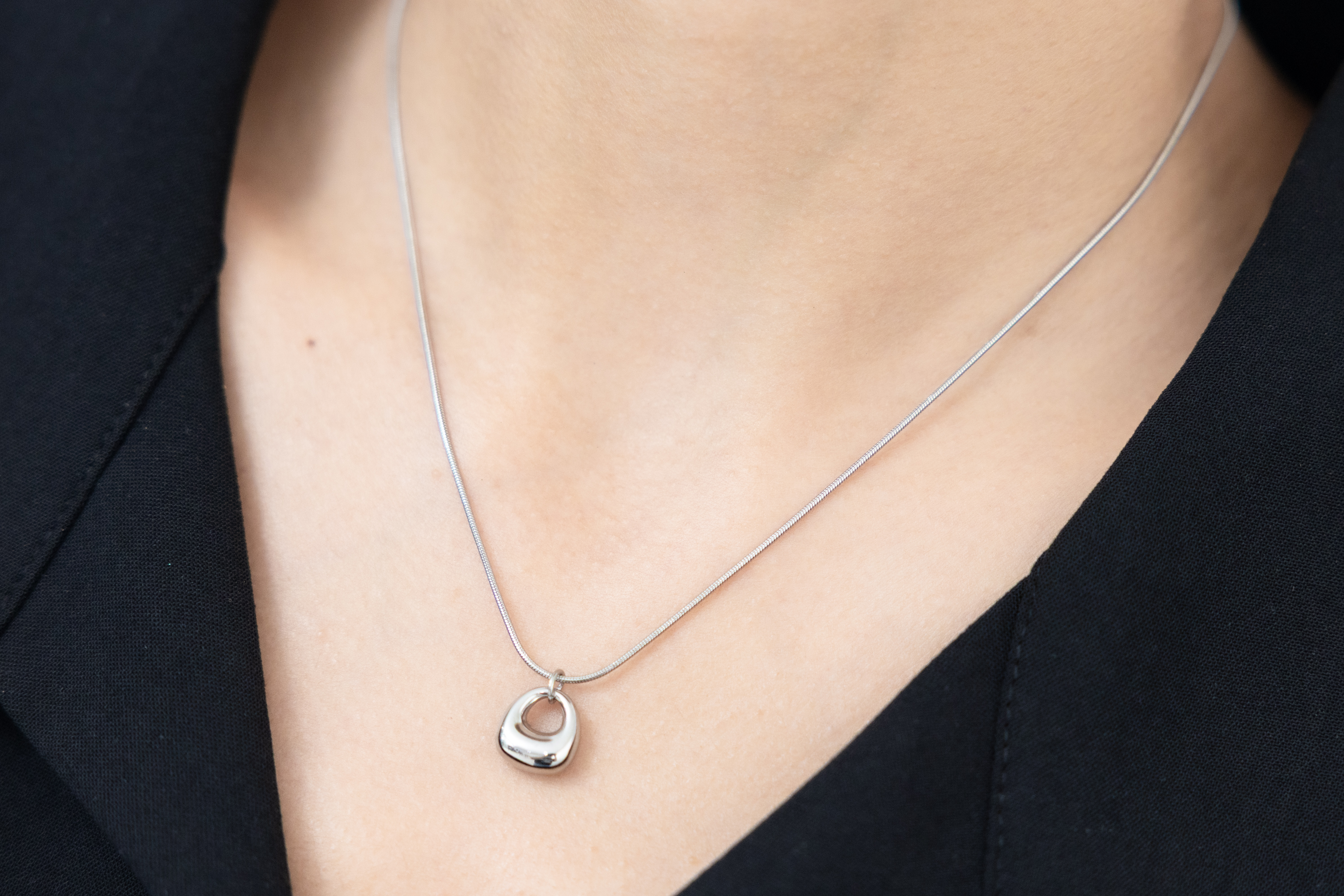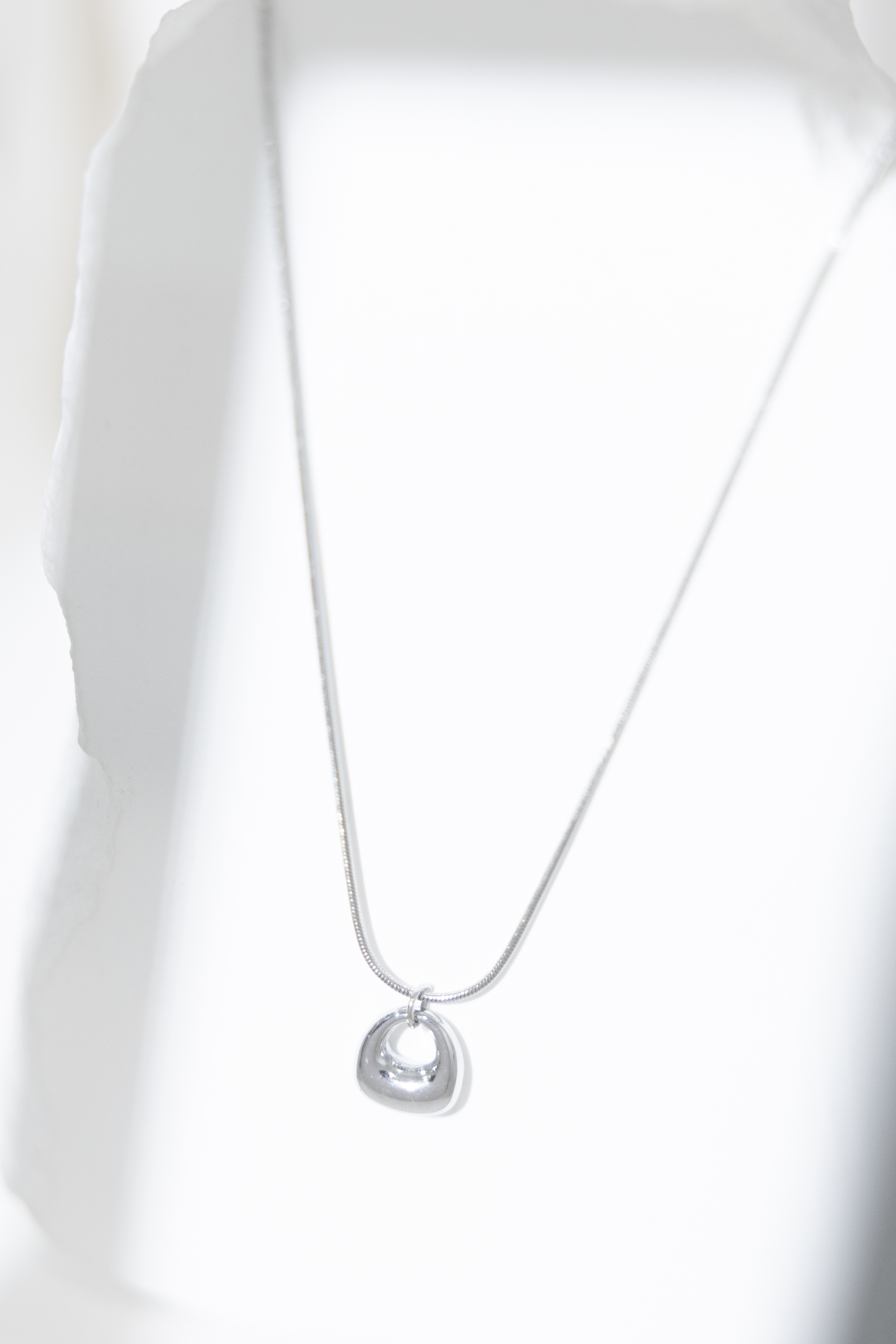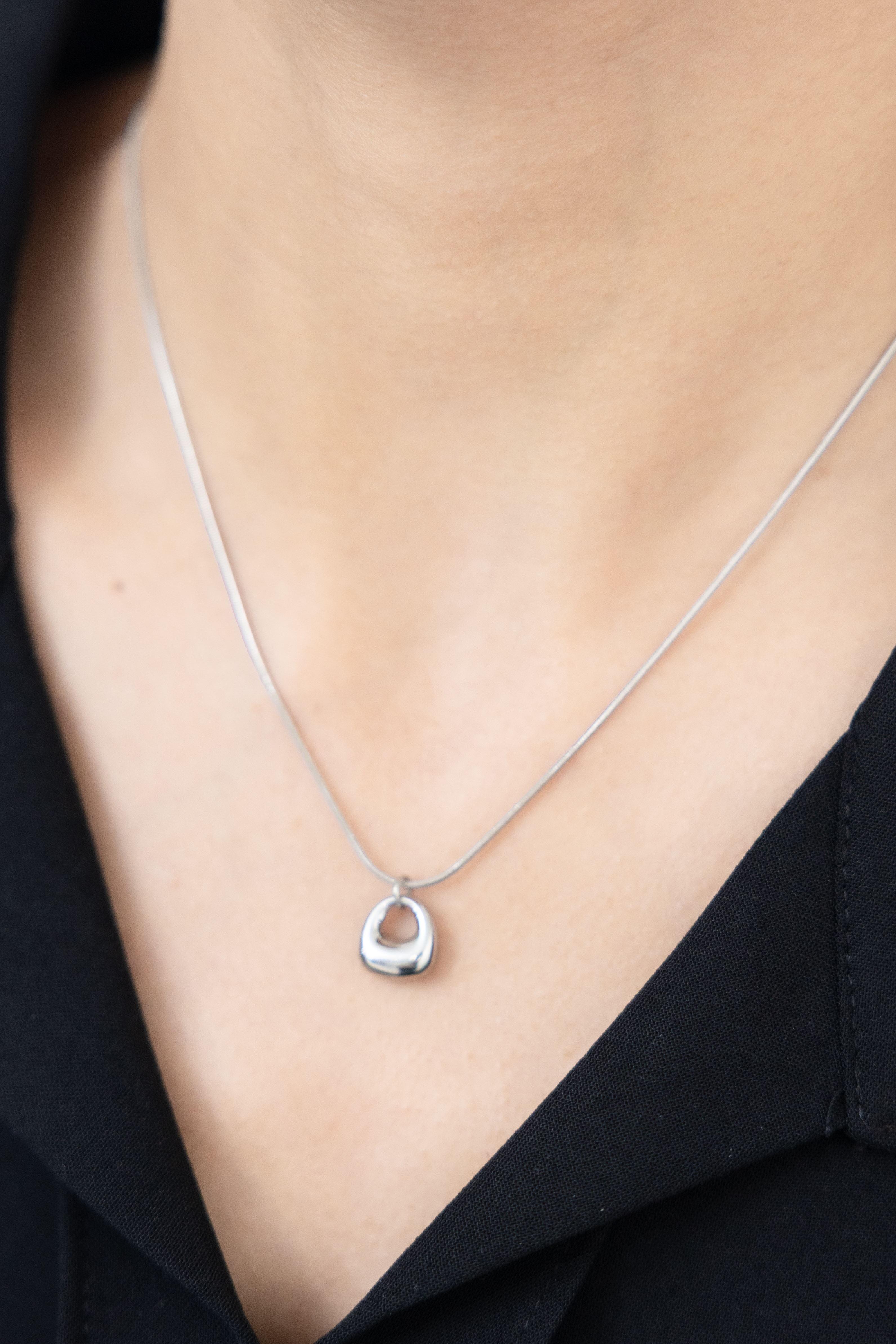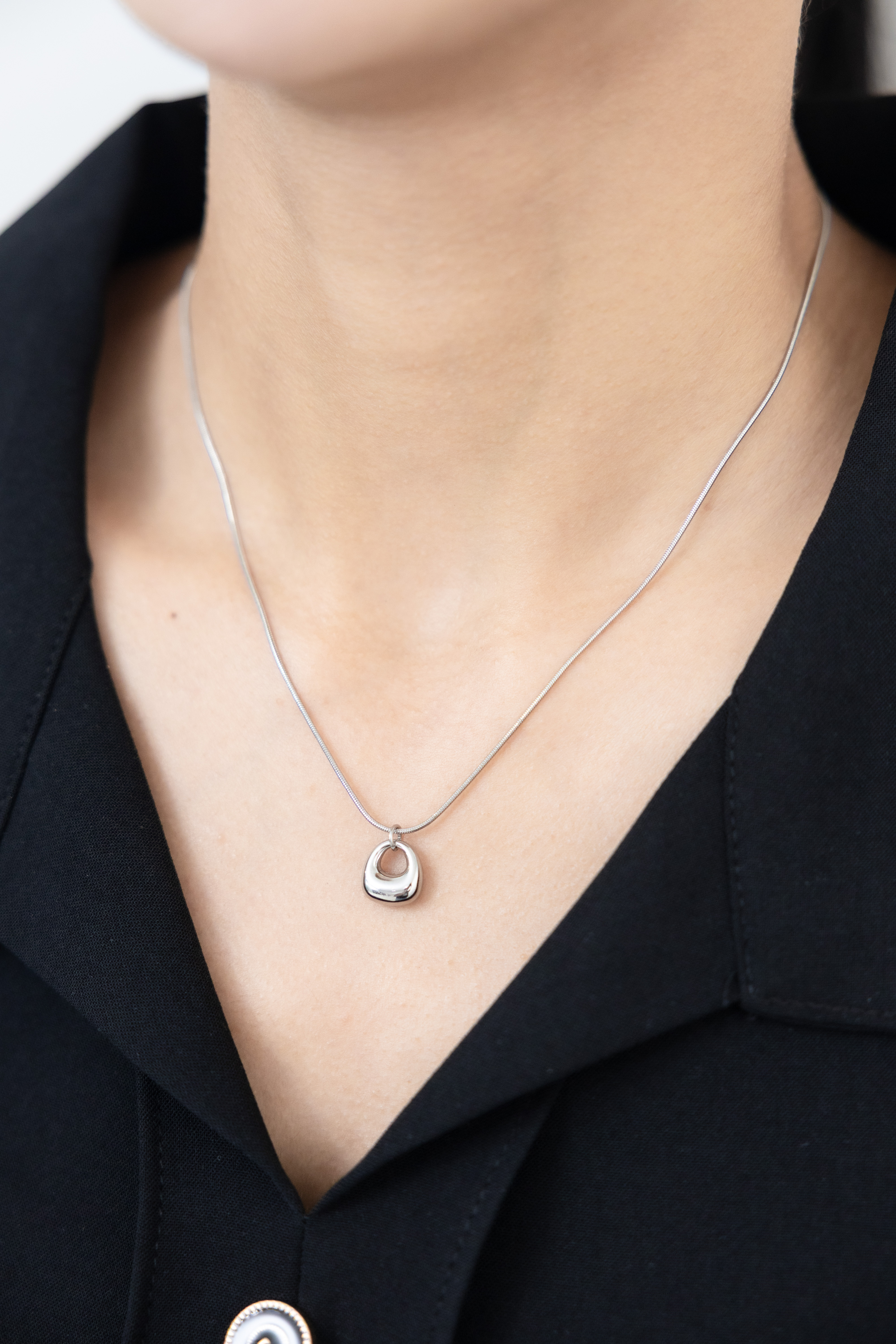 목걸이 鈴環項鍊 中空不規則吊墜/ 銀色