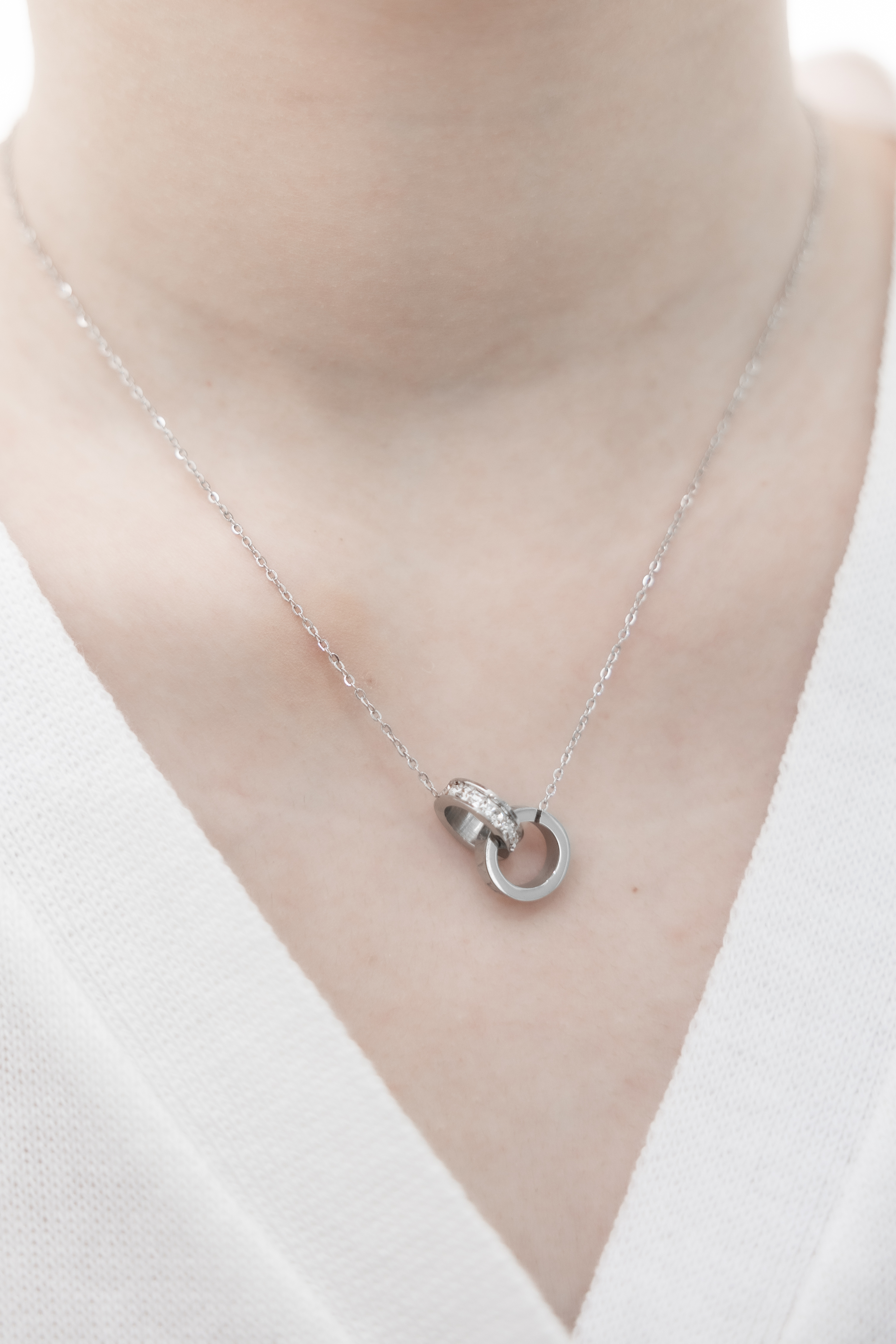 목걸이 雙圈相扣羅馬數字項鍊 / 銀色
