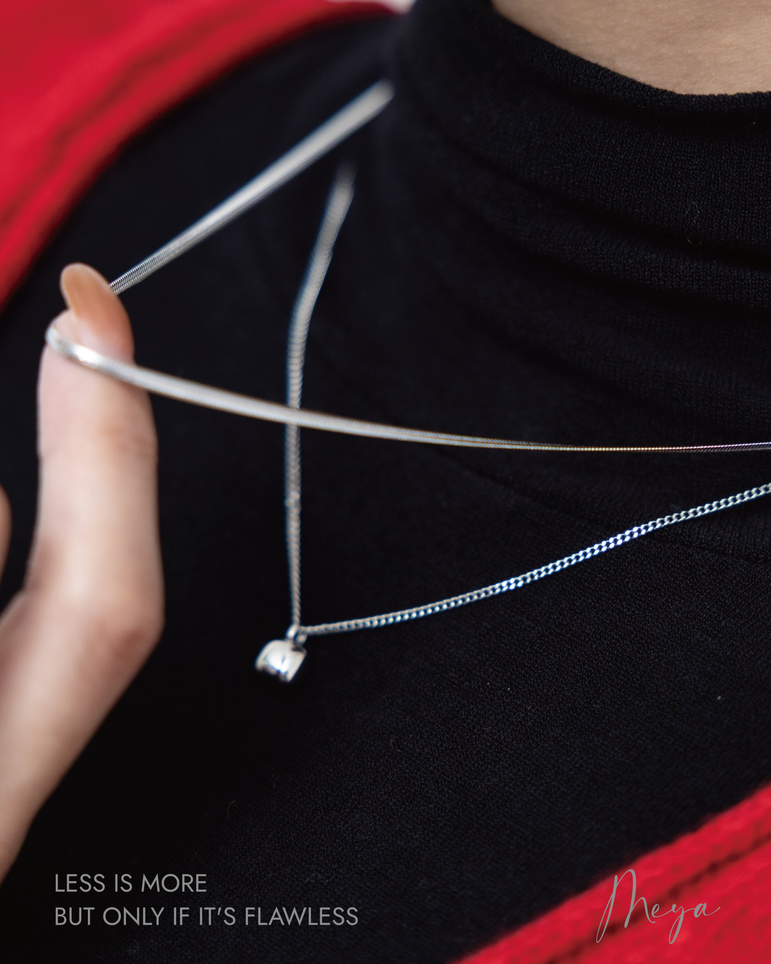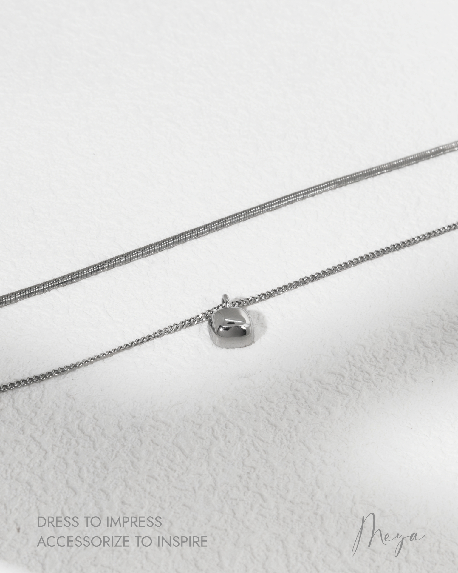 목걸이 雙層空心方晶項鍊 / 銀色