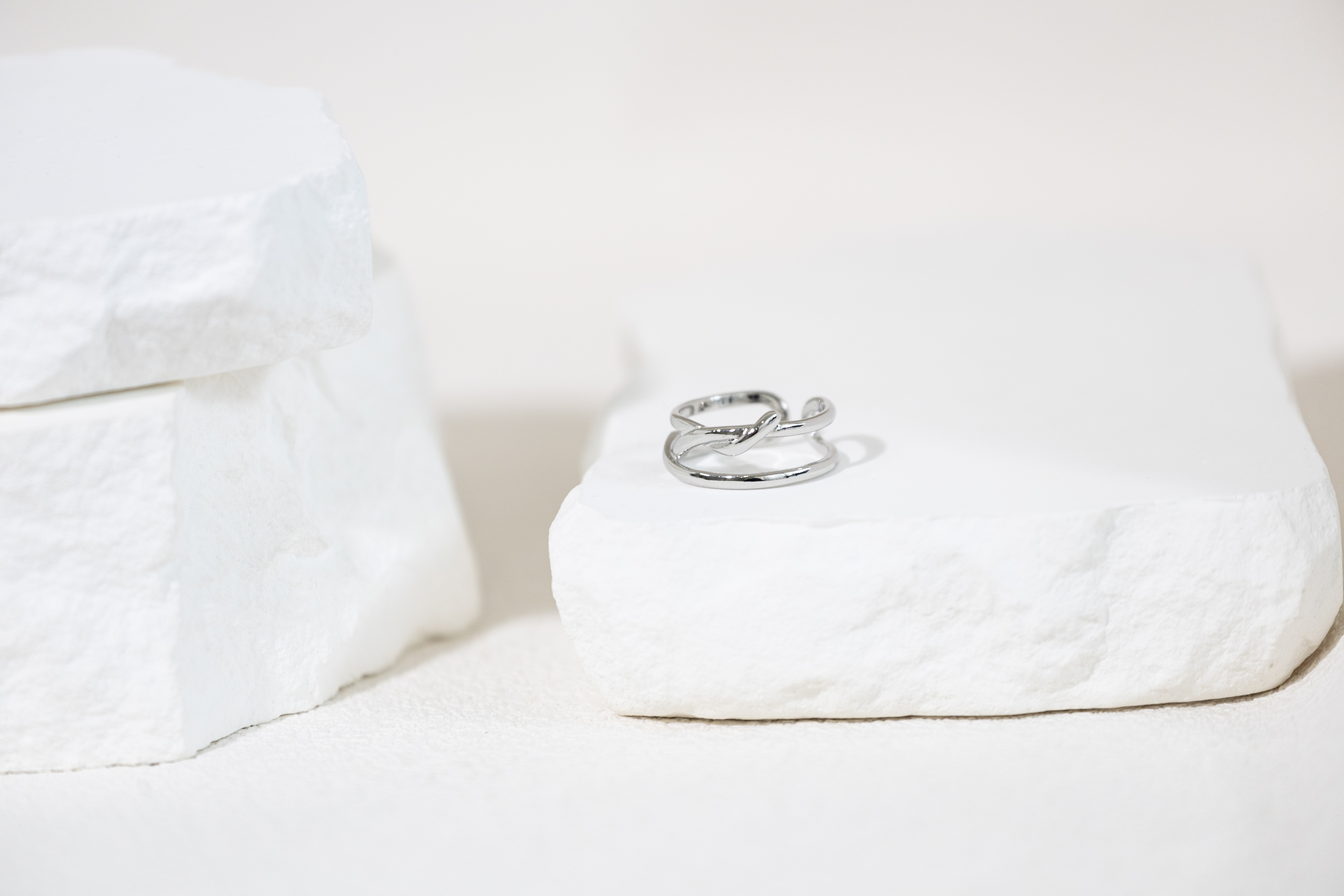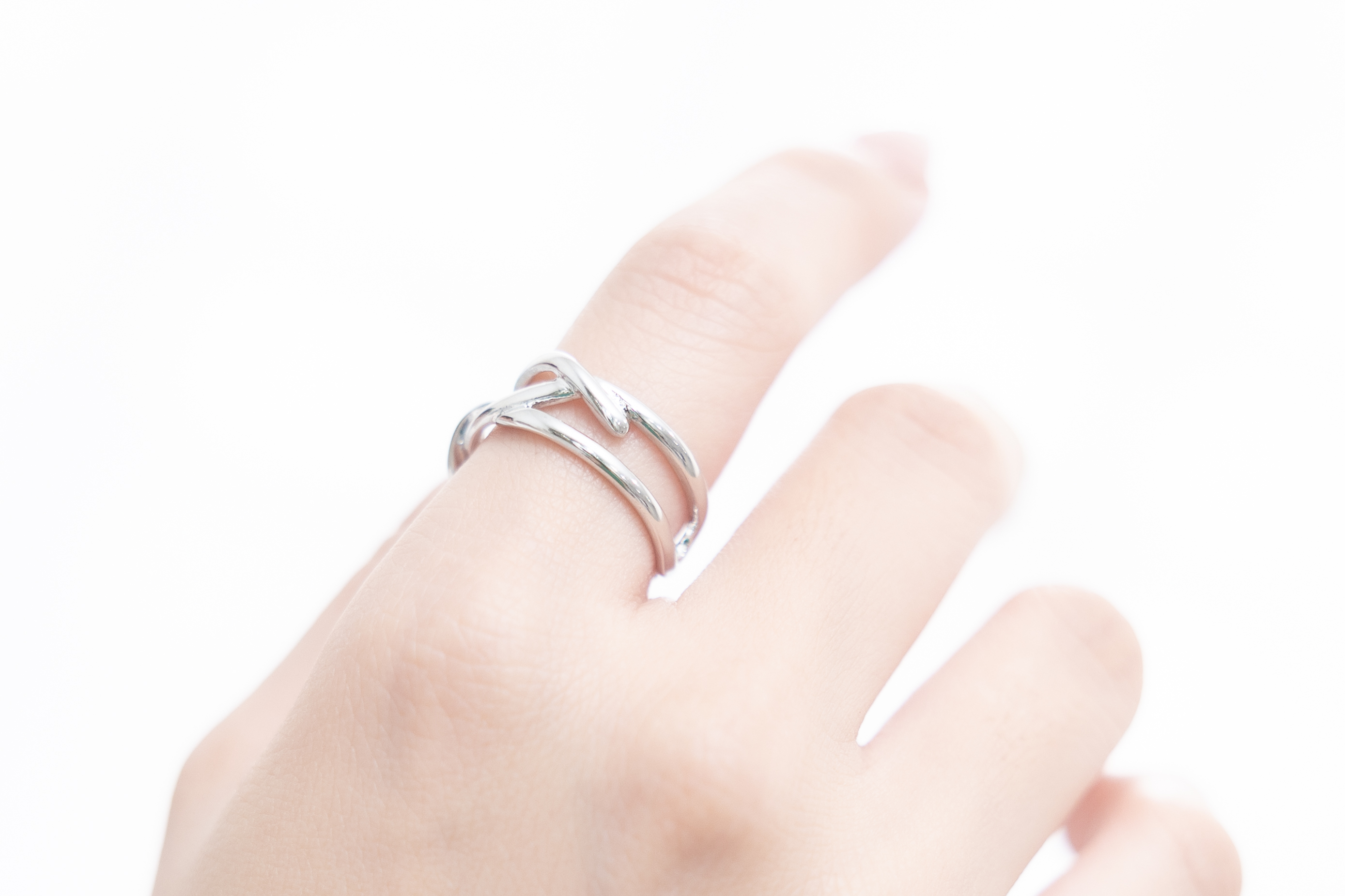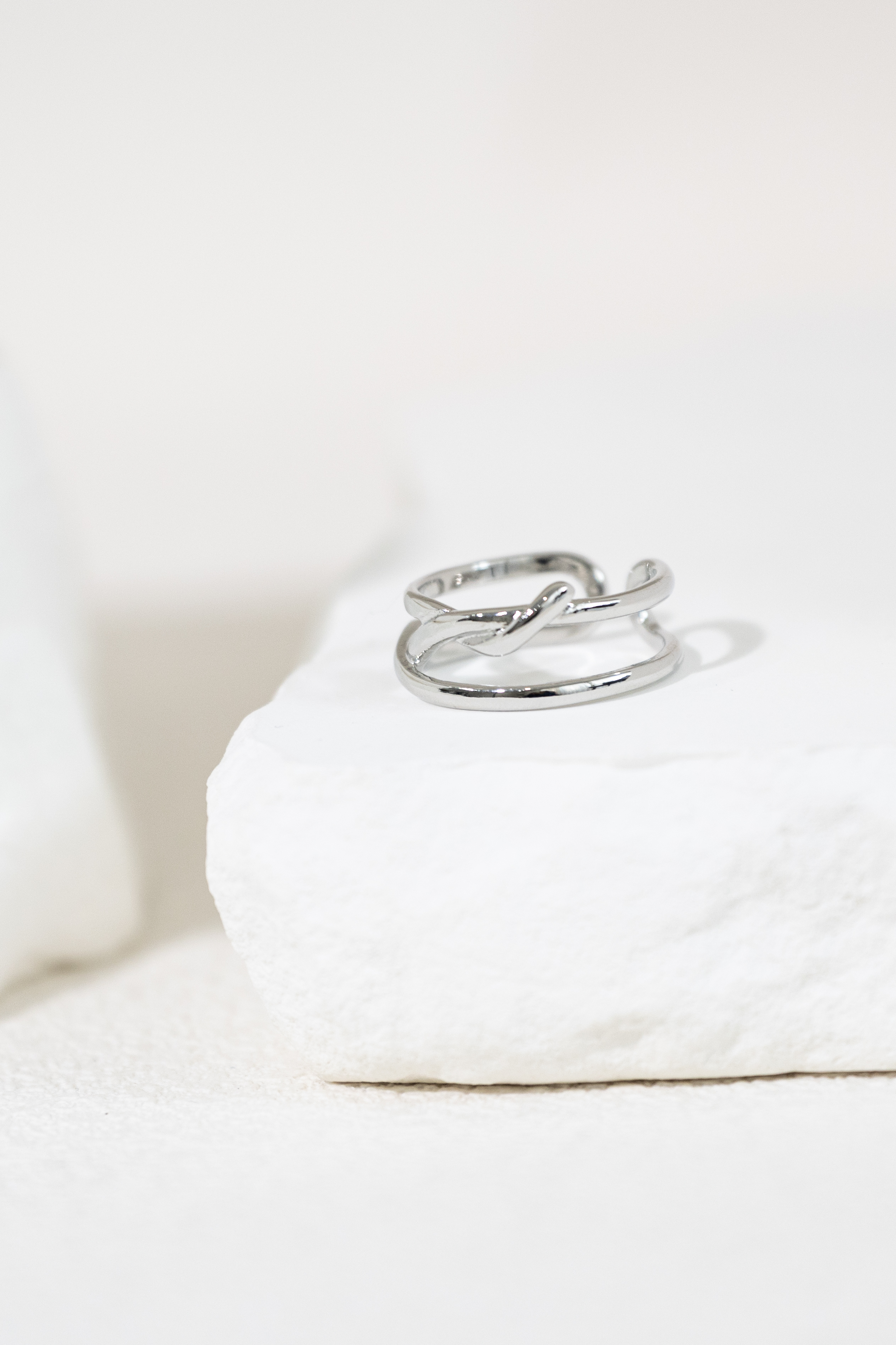 반지 雙層纏繞相連開口式戒指 / 銀色