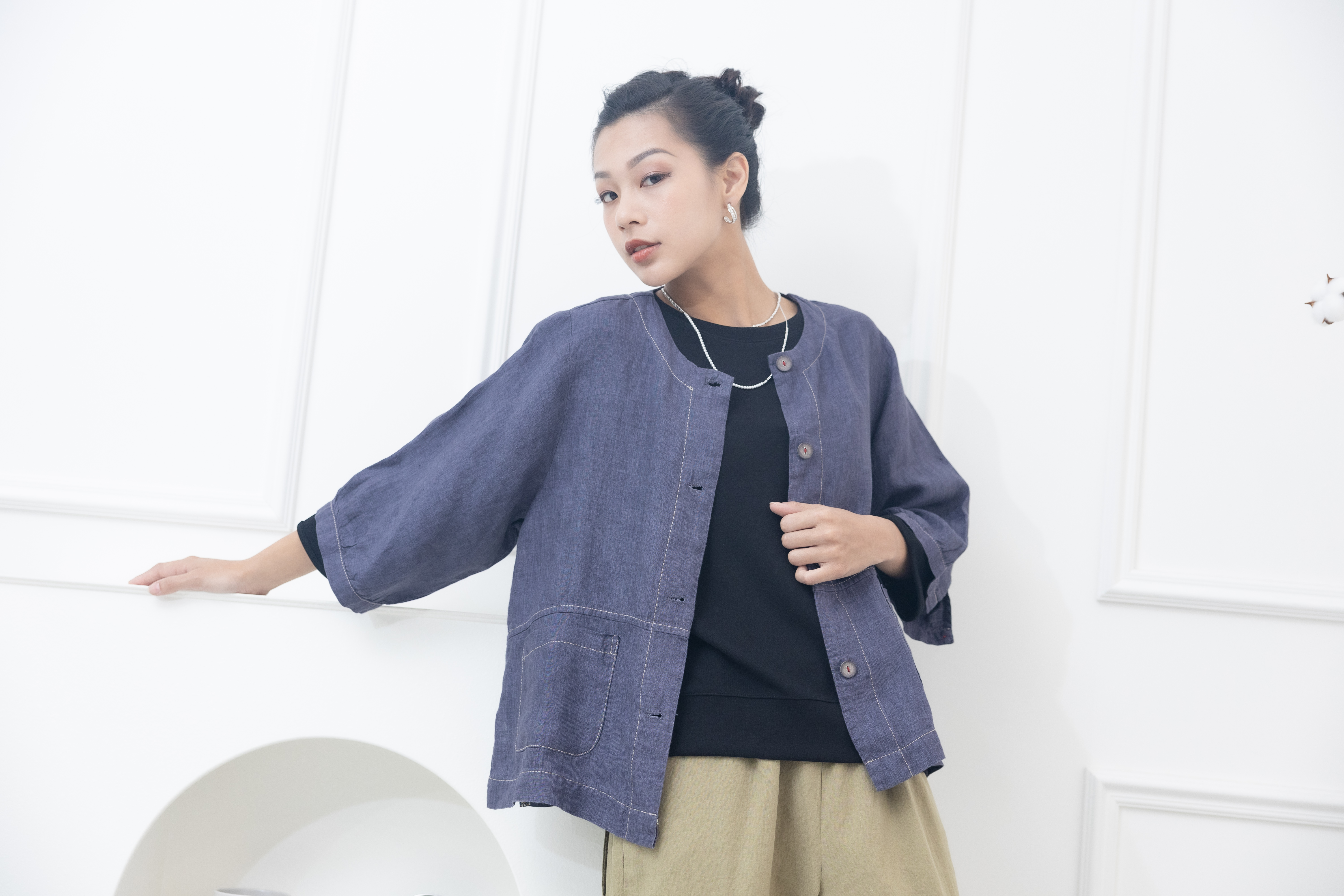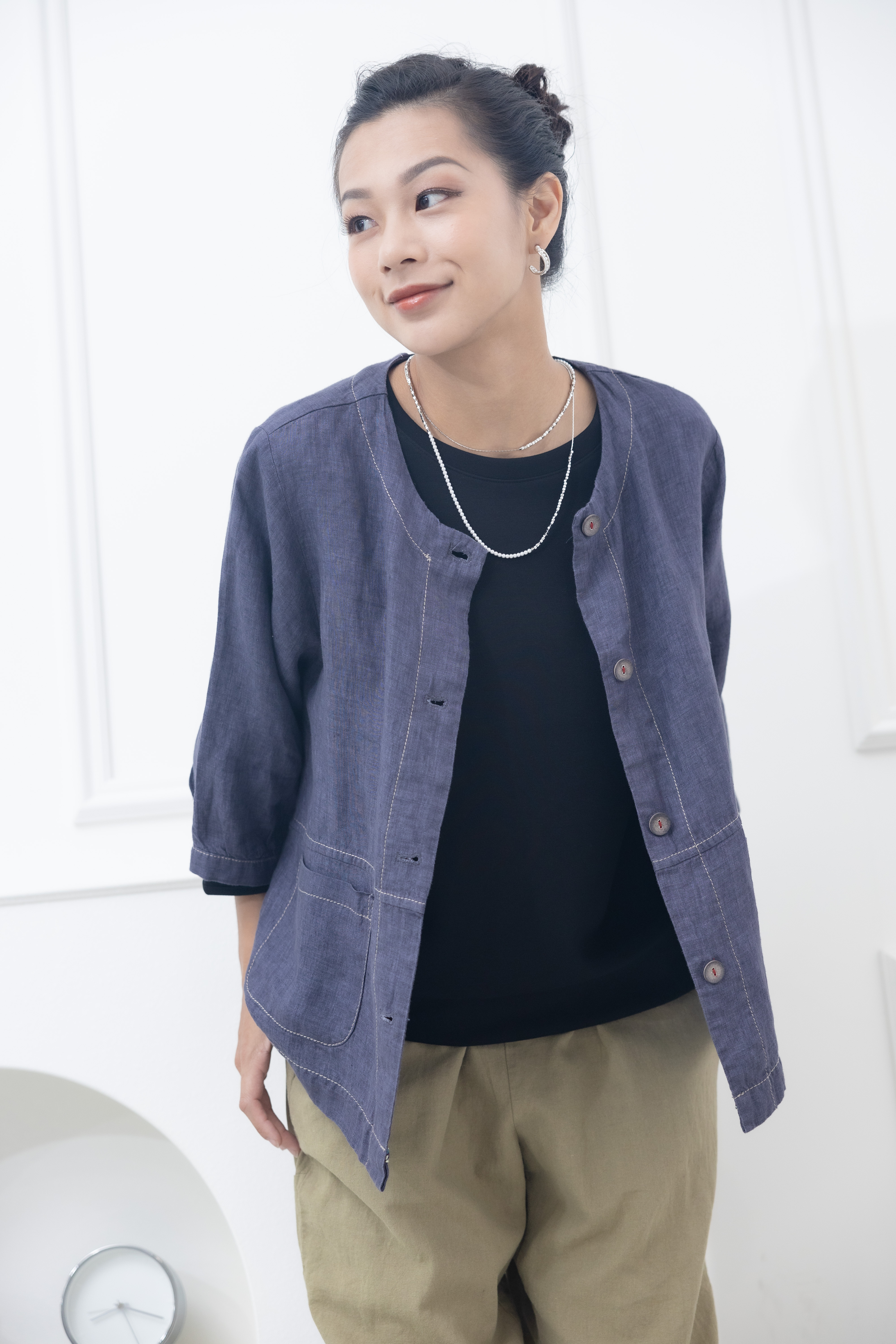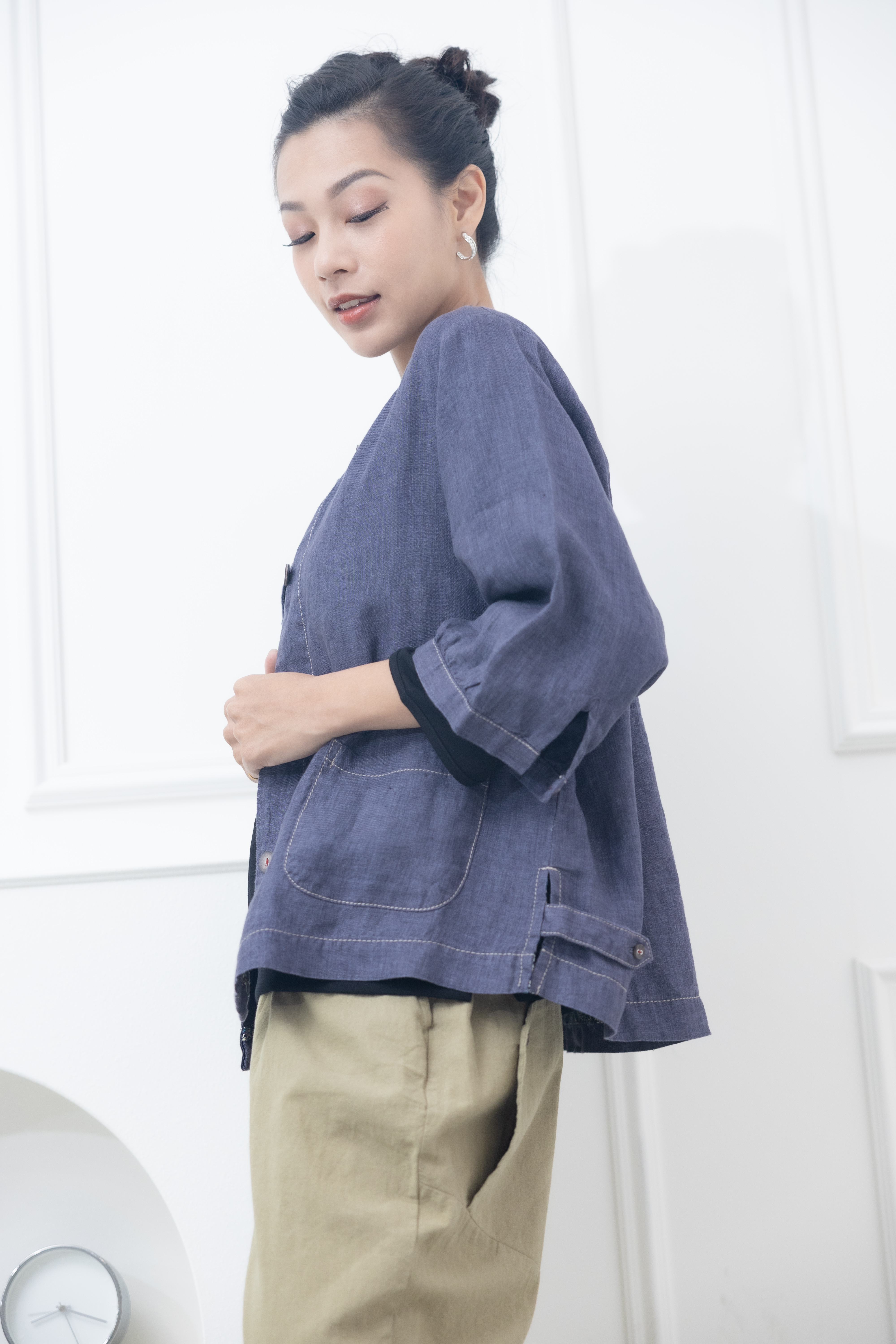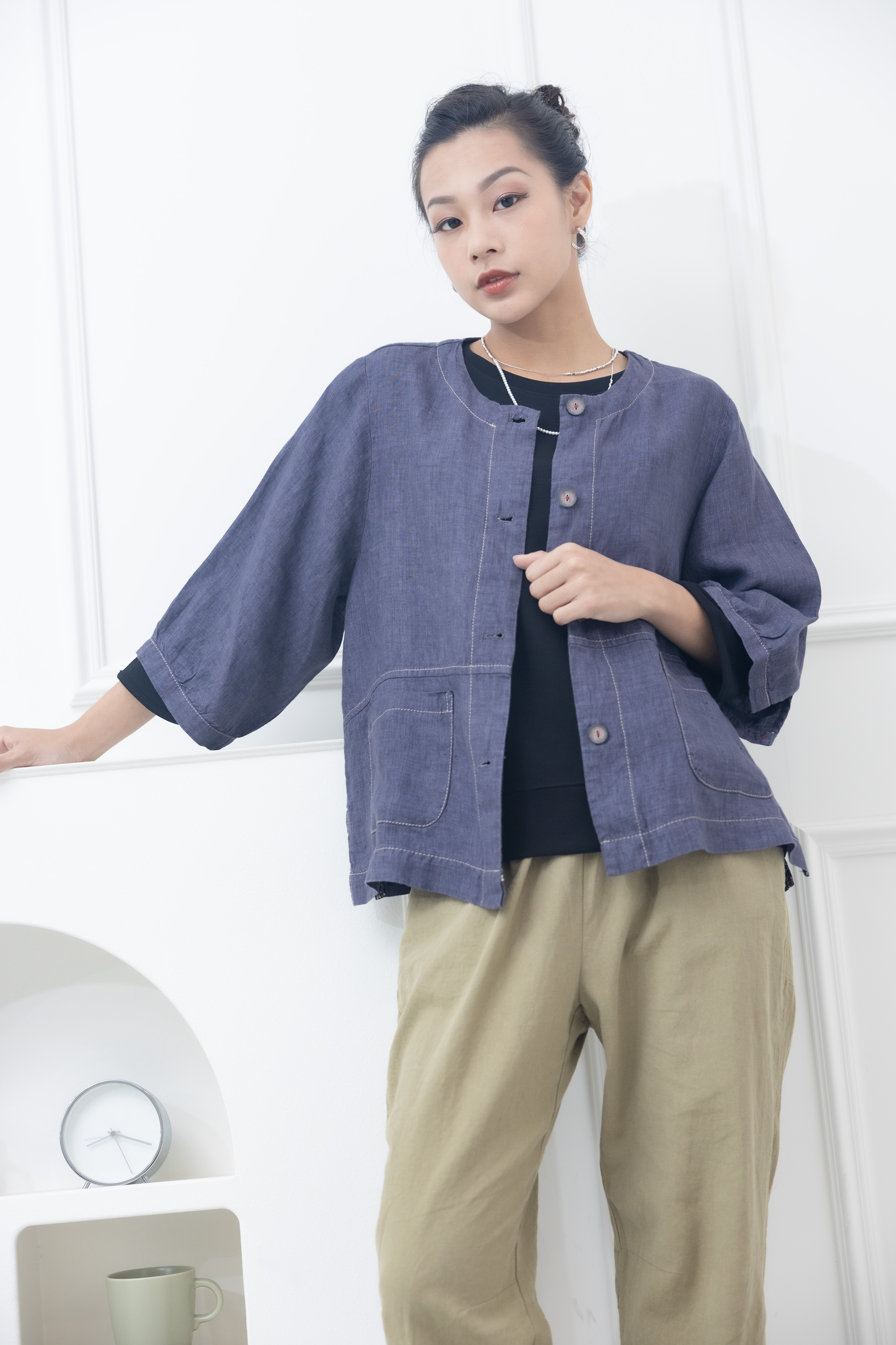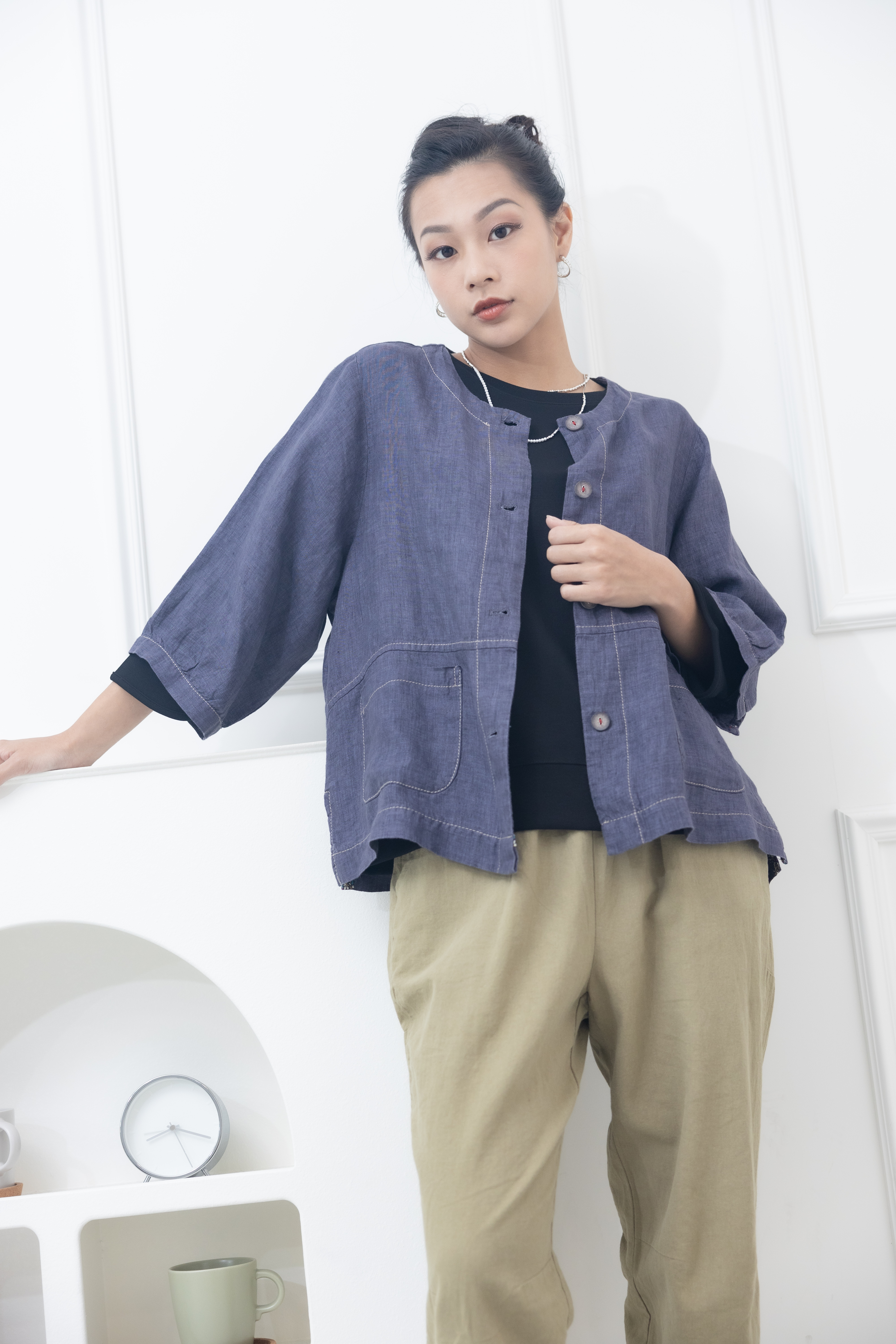 반팔 全開扣口袋短袖上衣 / 淡紫色