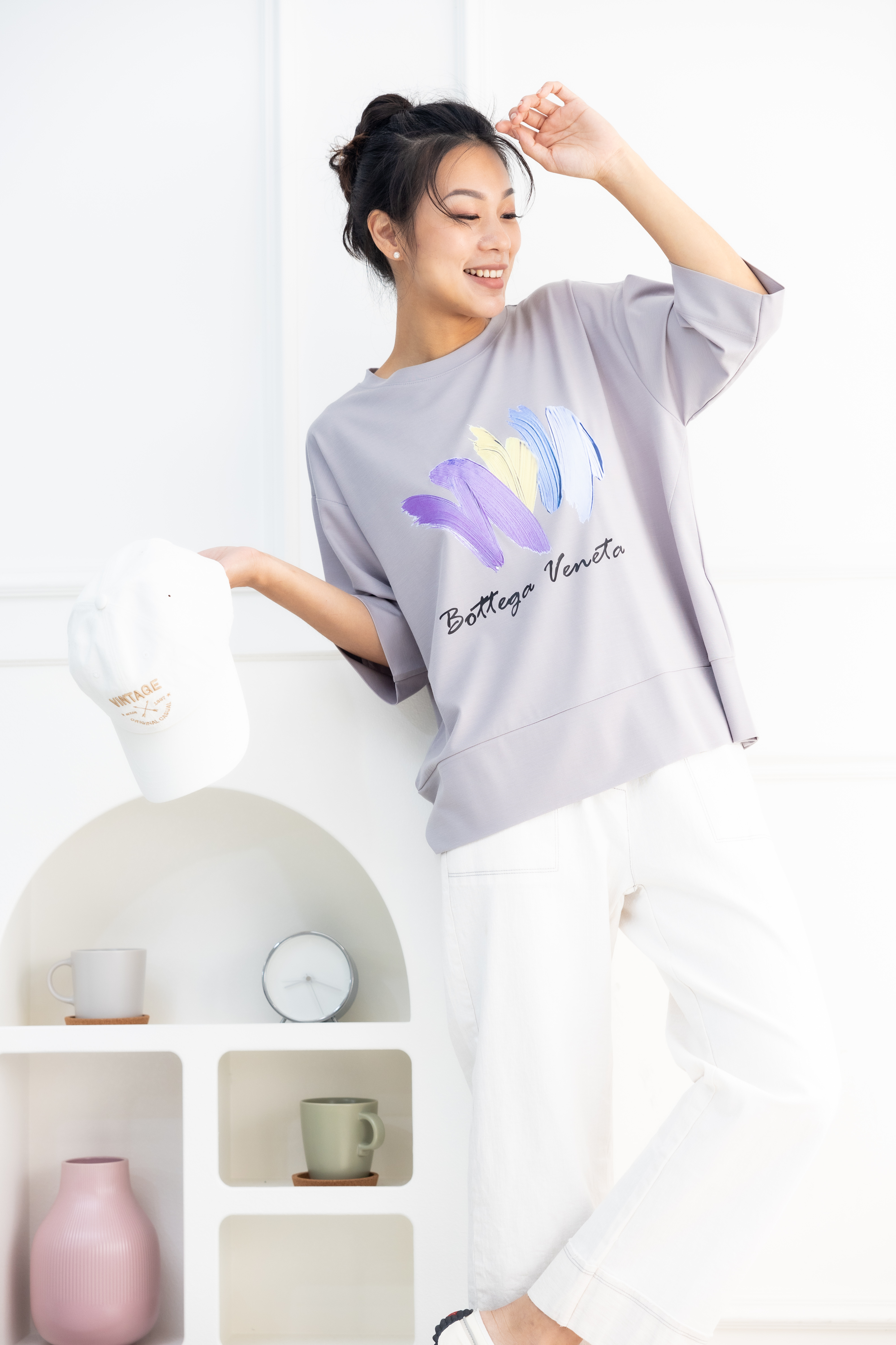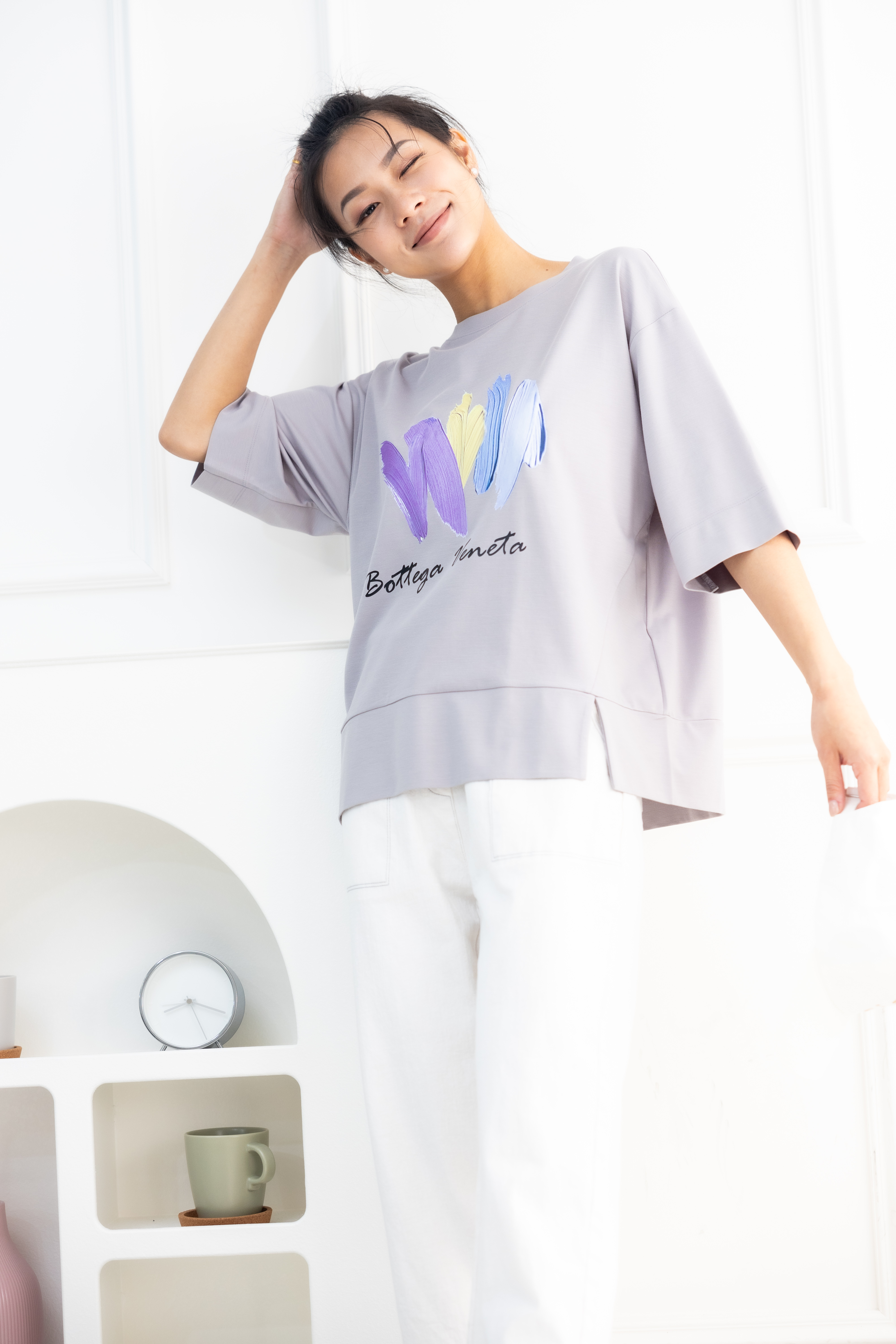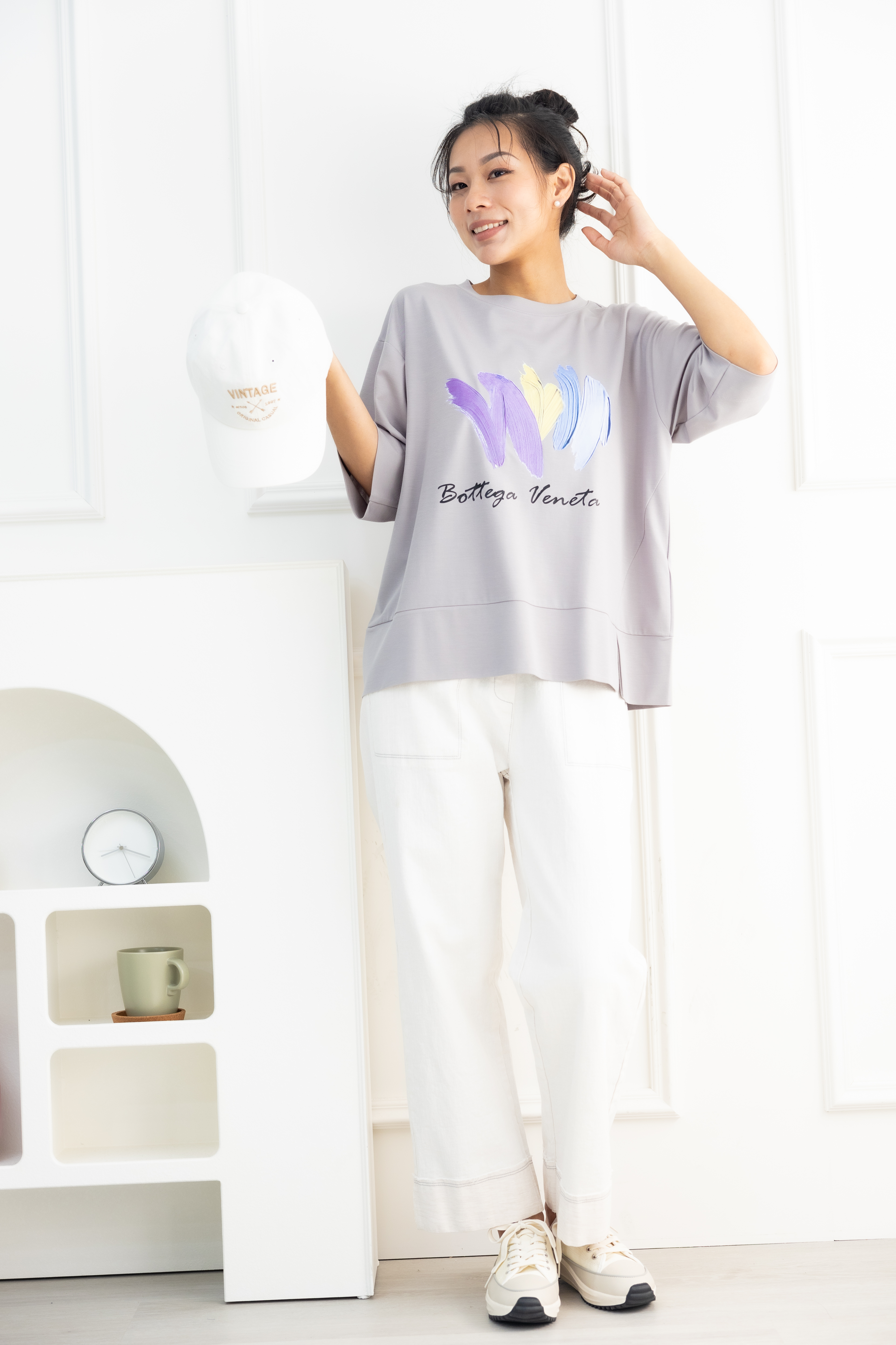 반팔 筆刷畫痕短袖上衣/灰色