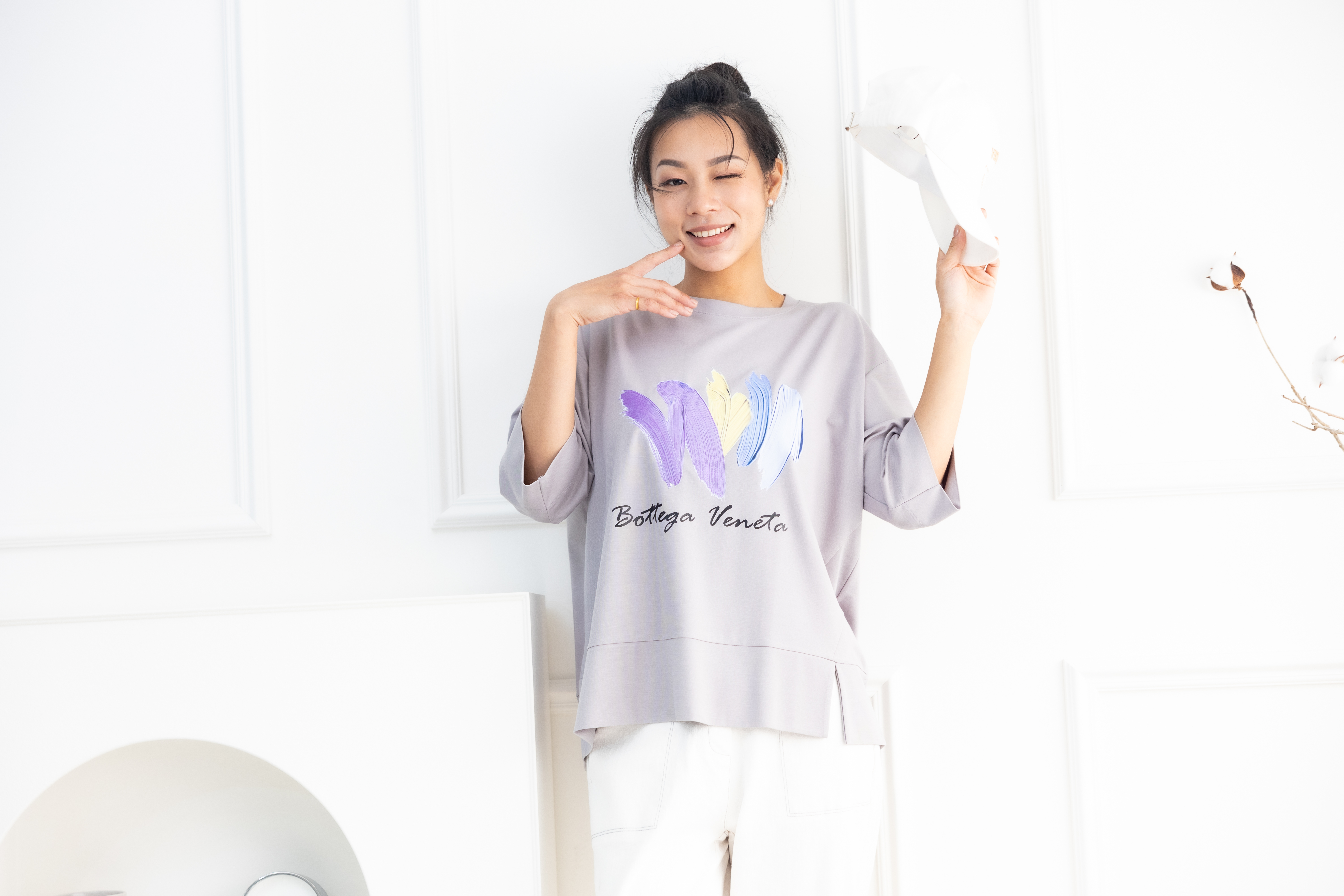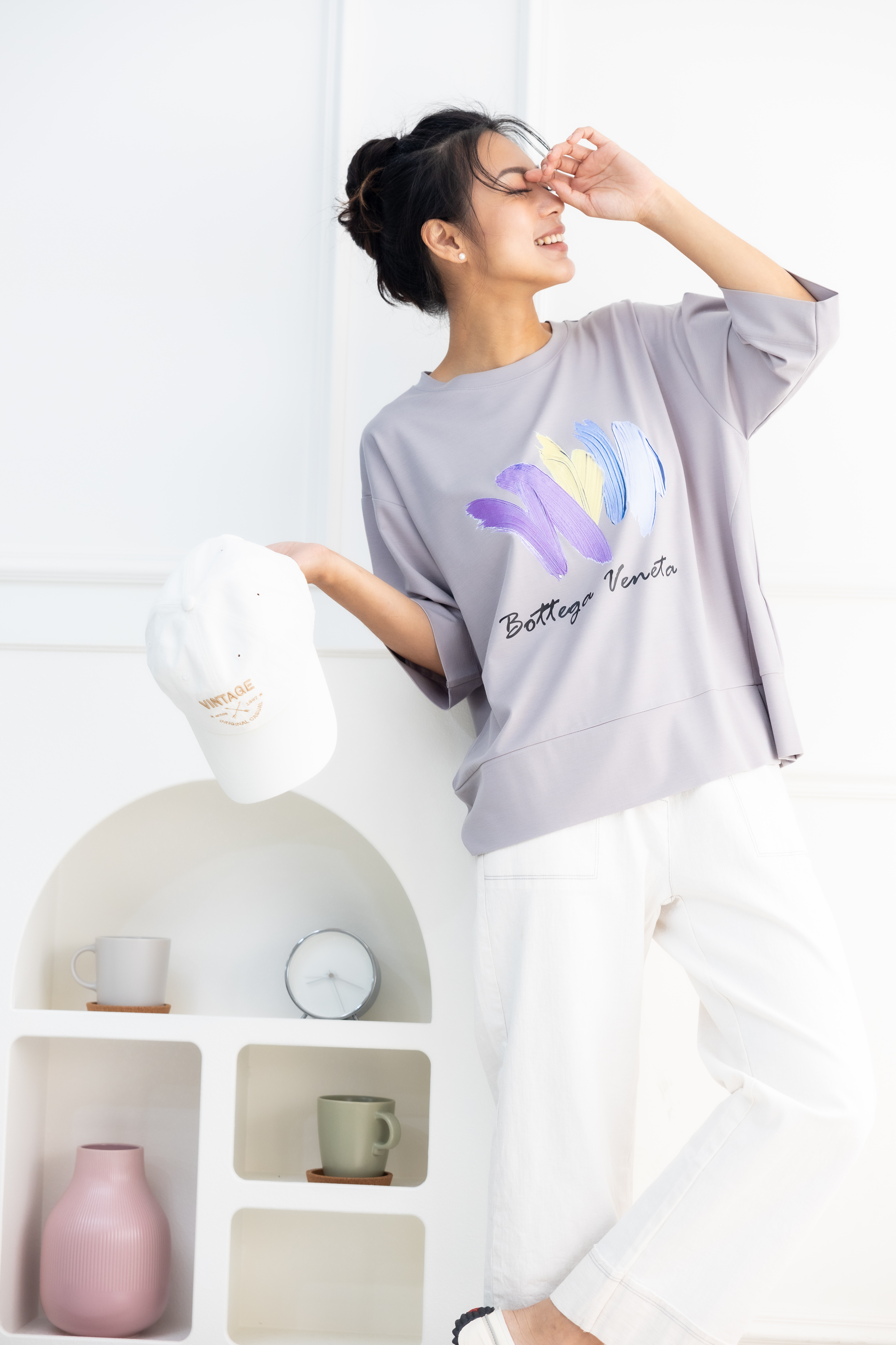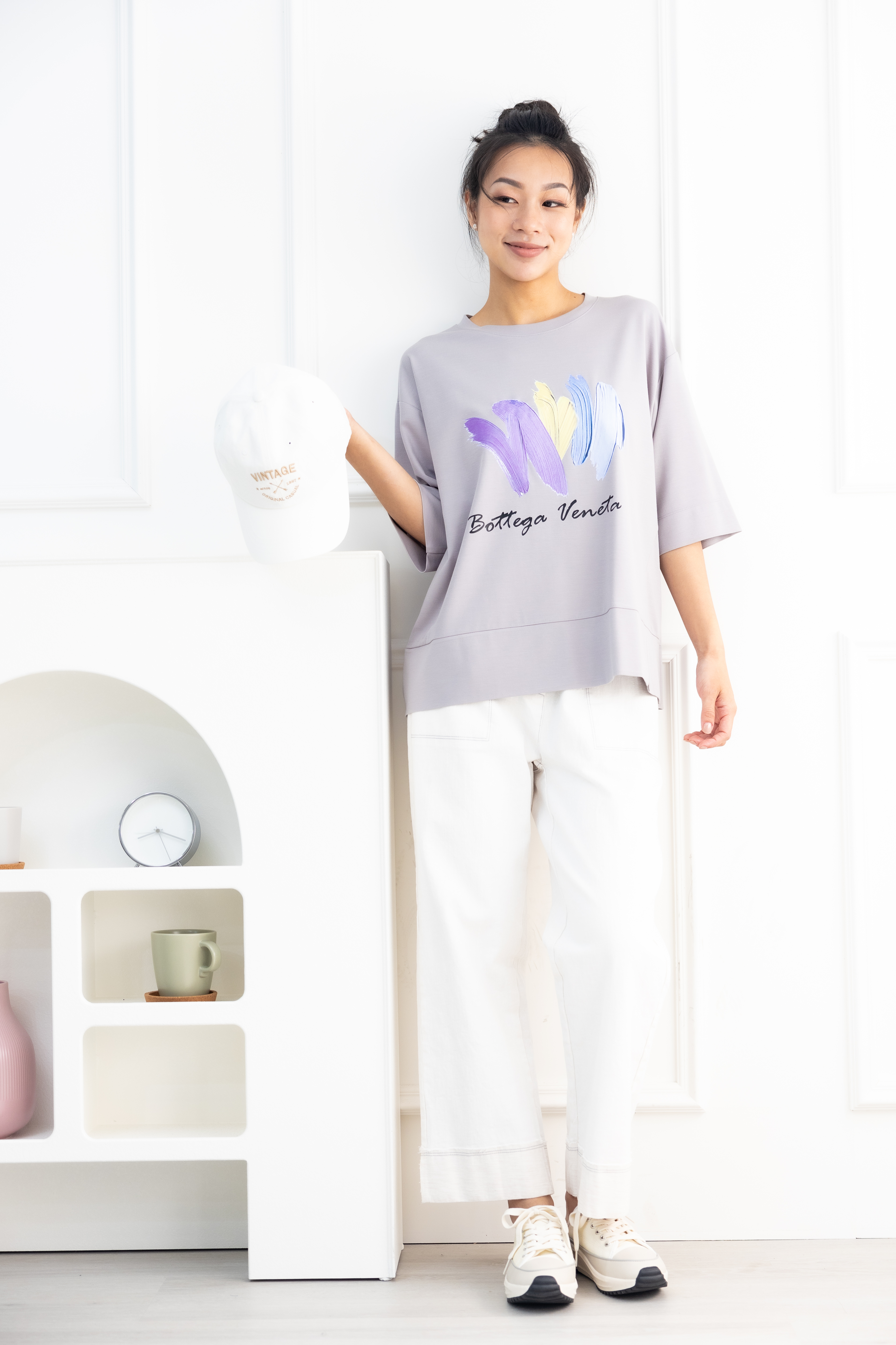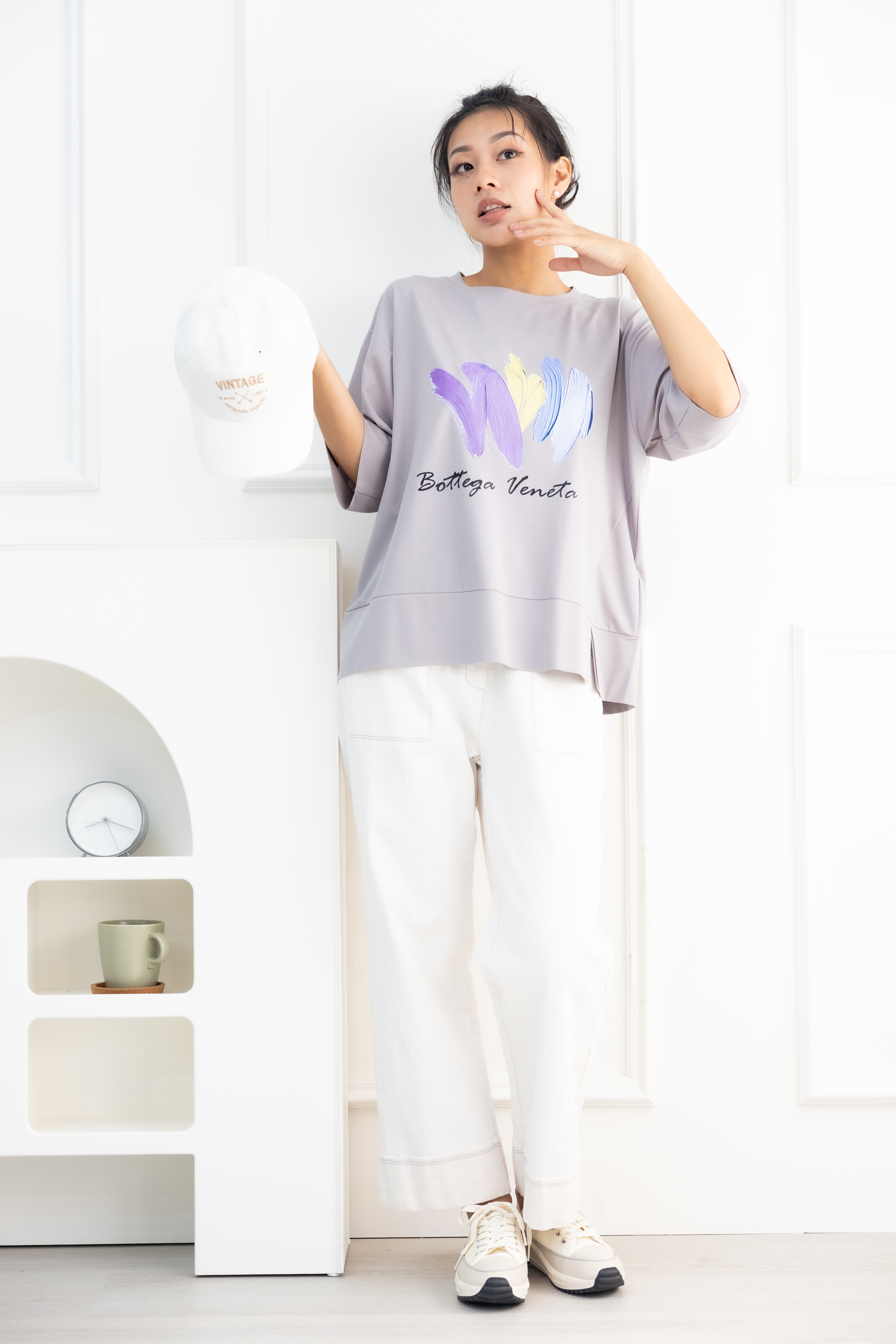 반팔 筆刷畫痕短袖上衣/灰色