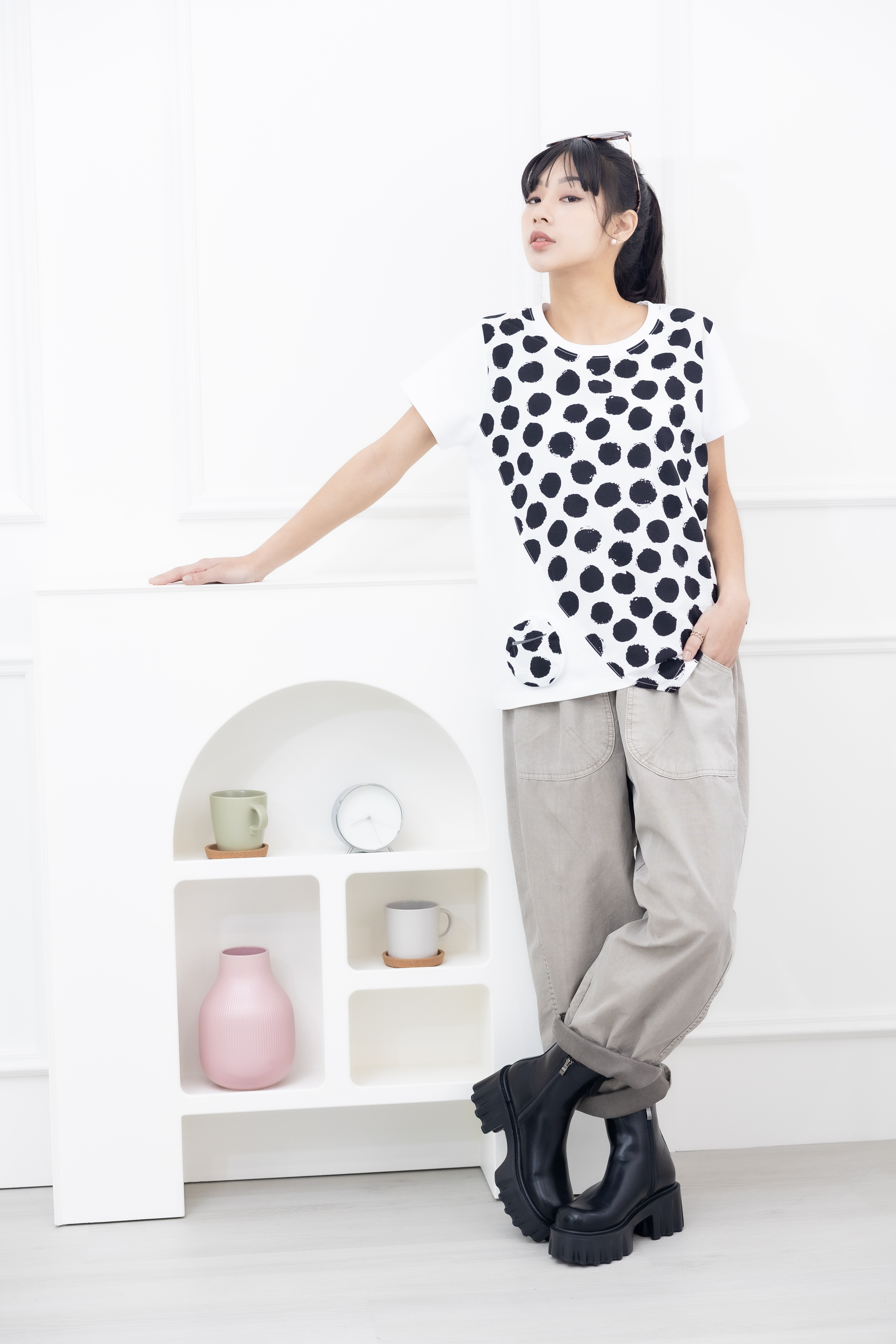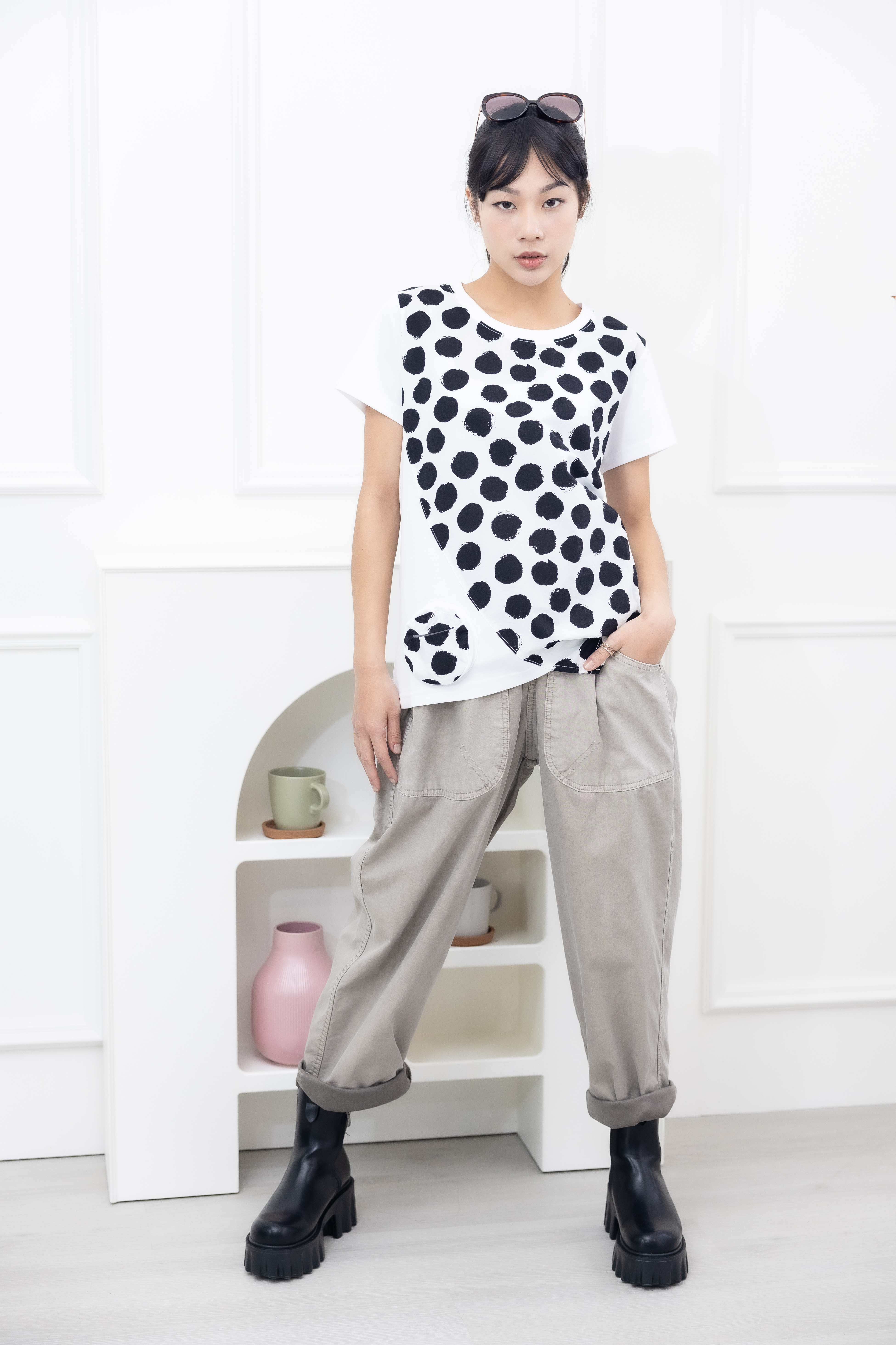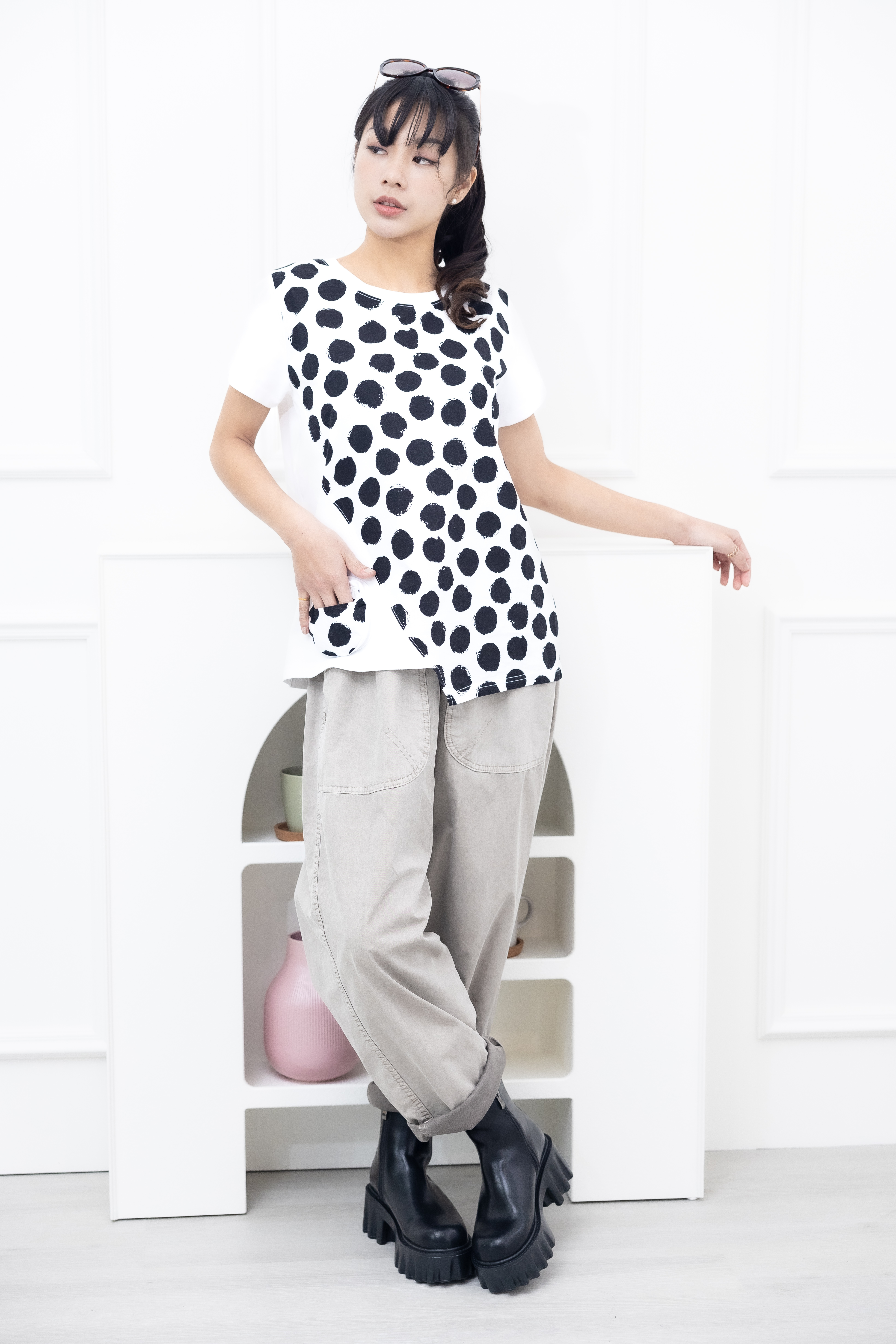 반팔 黑點短袖上衣 / 白色