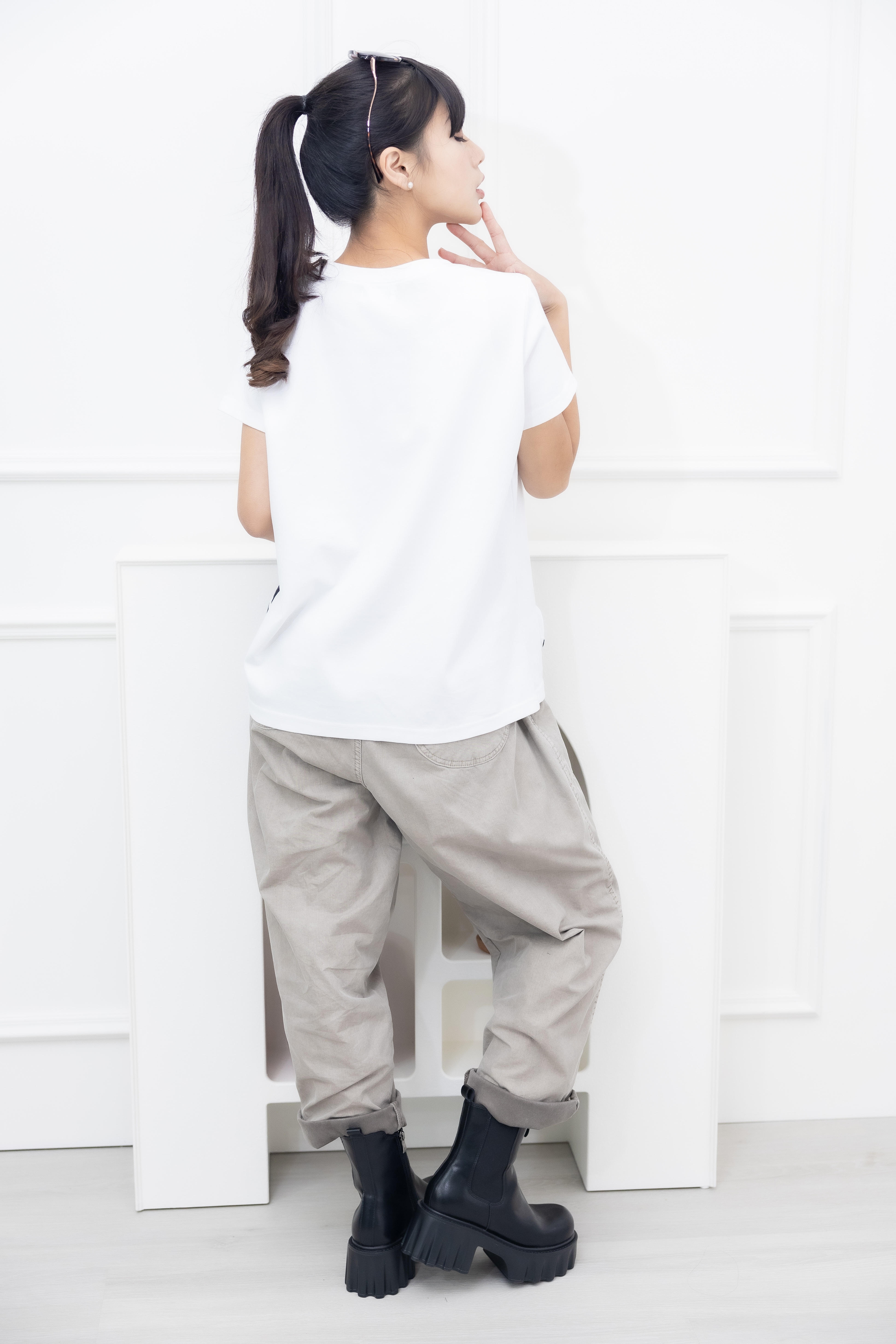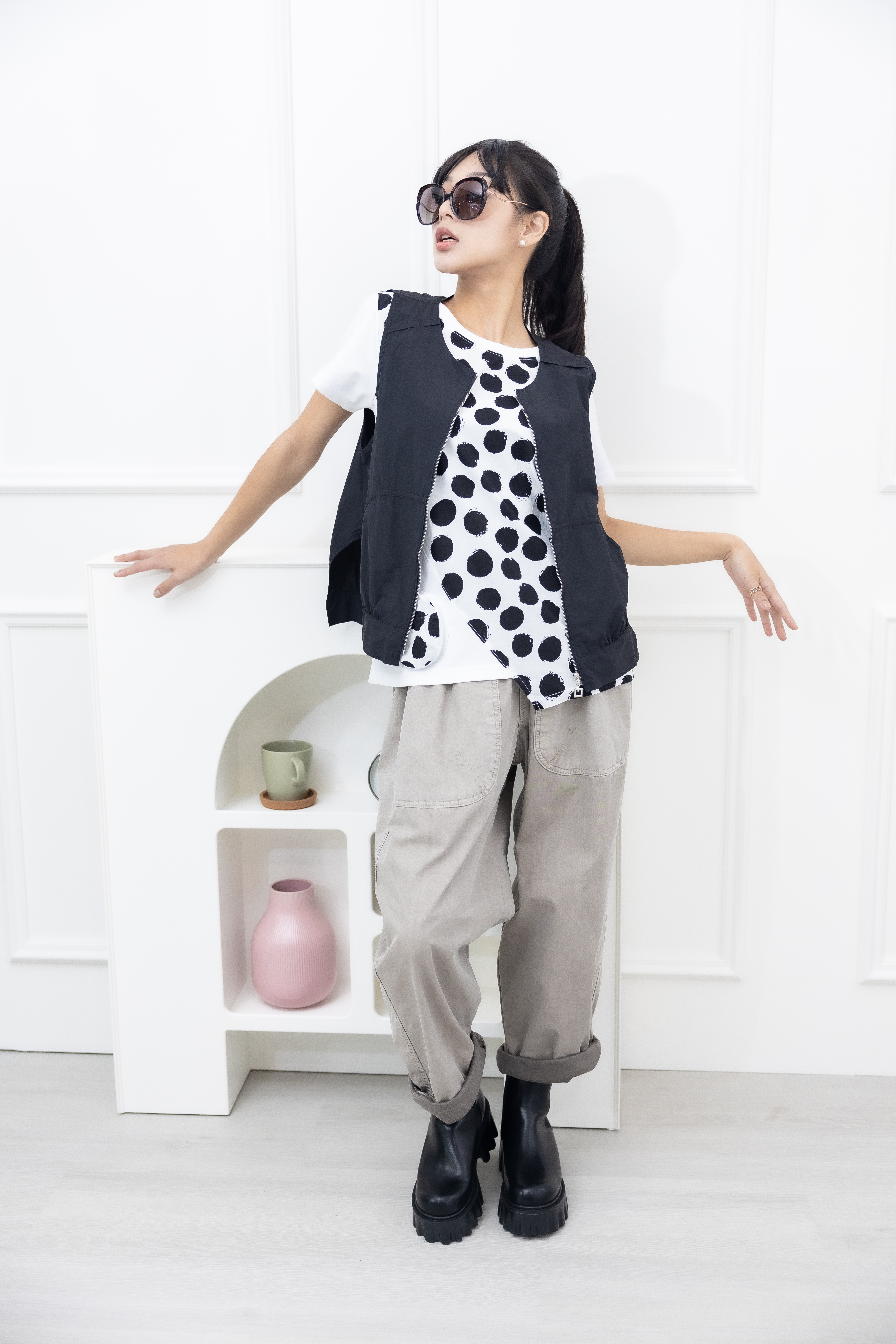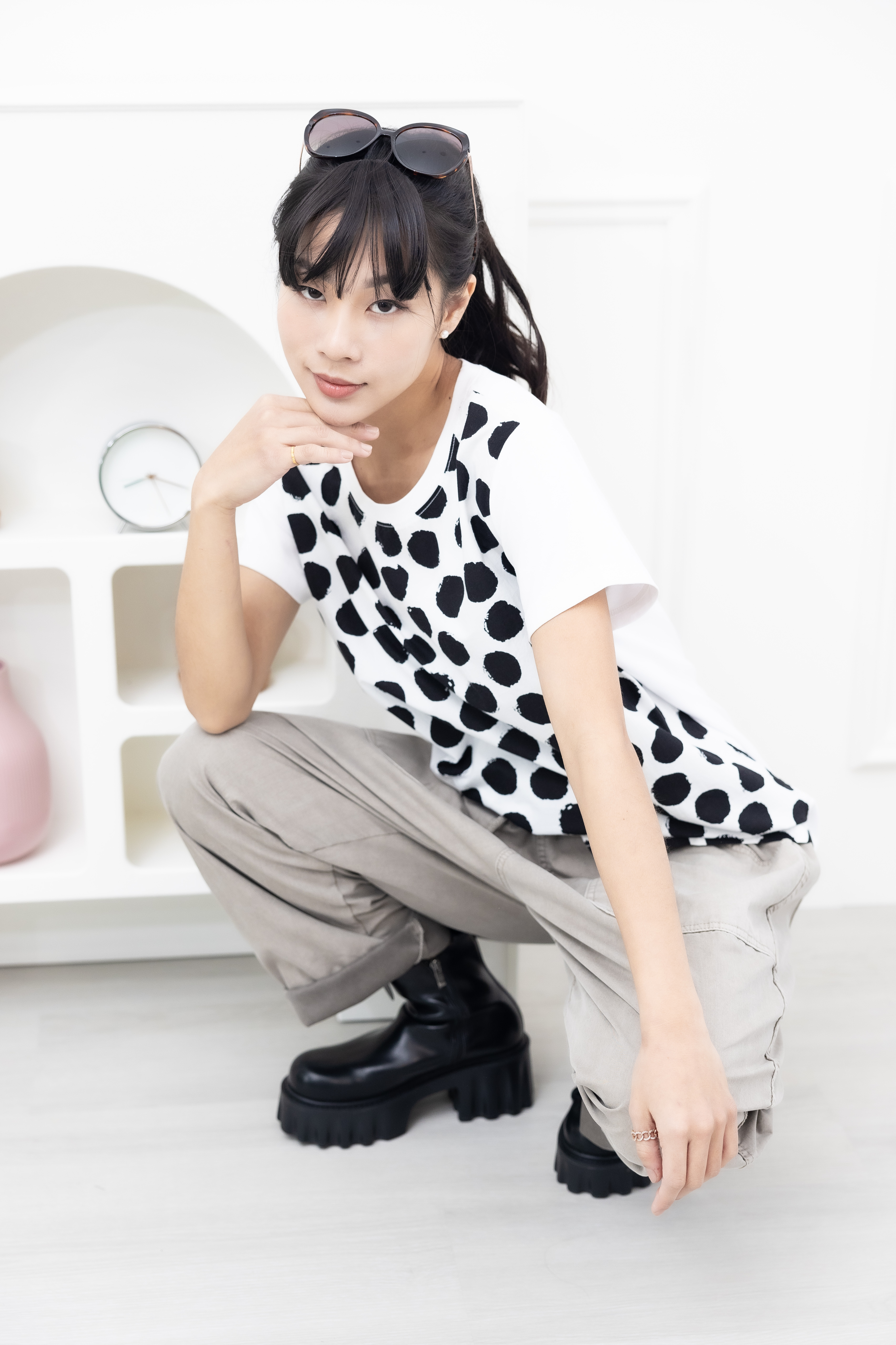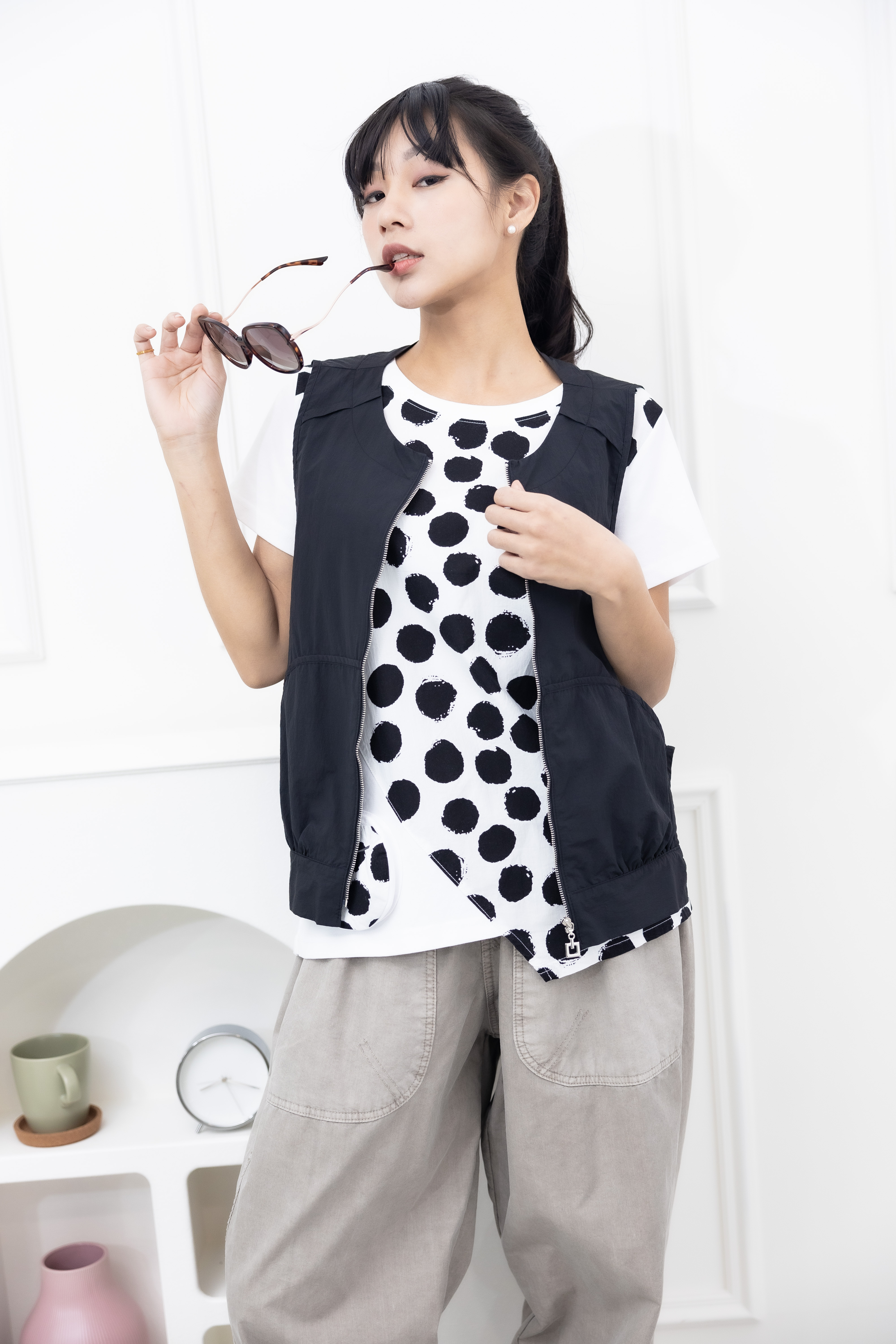 반팔 黑點短袖上衣 / 白色