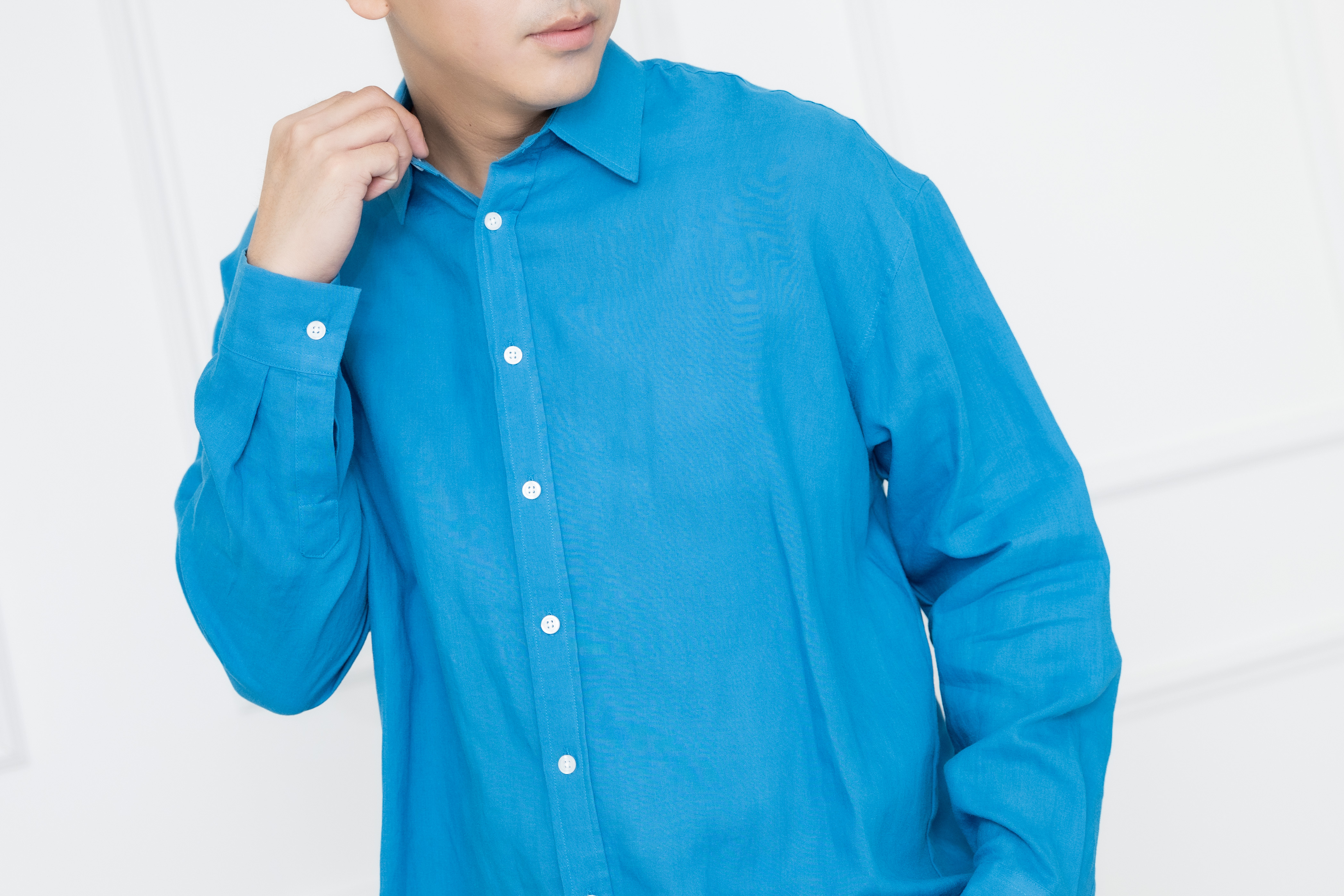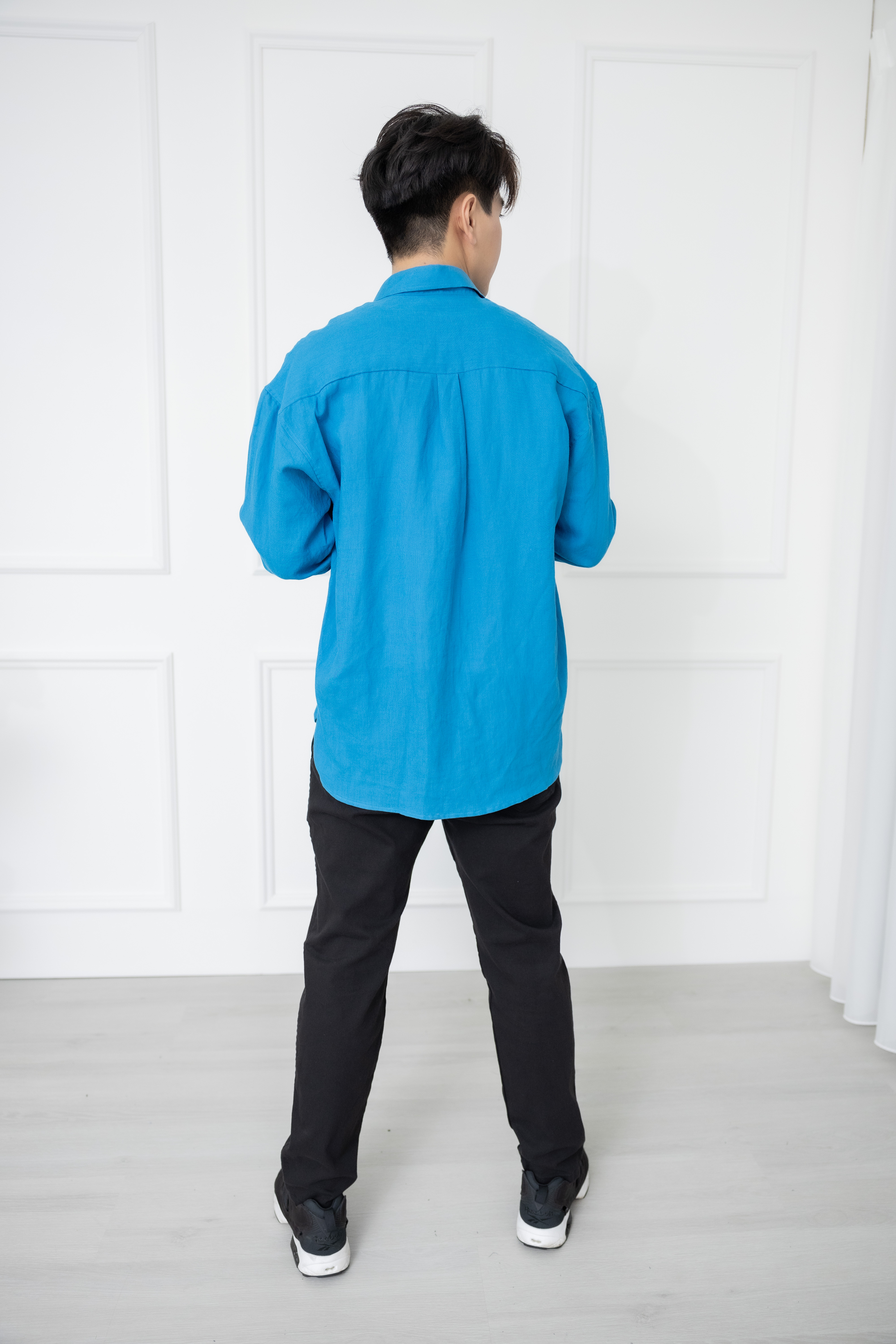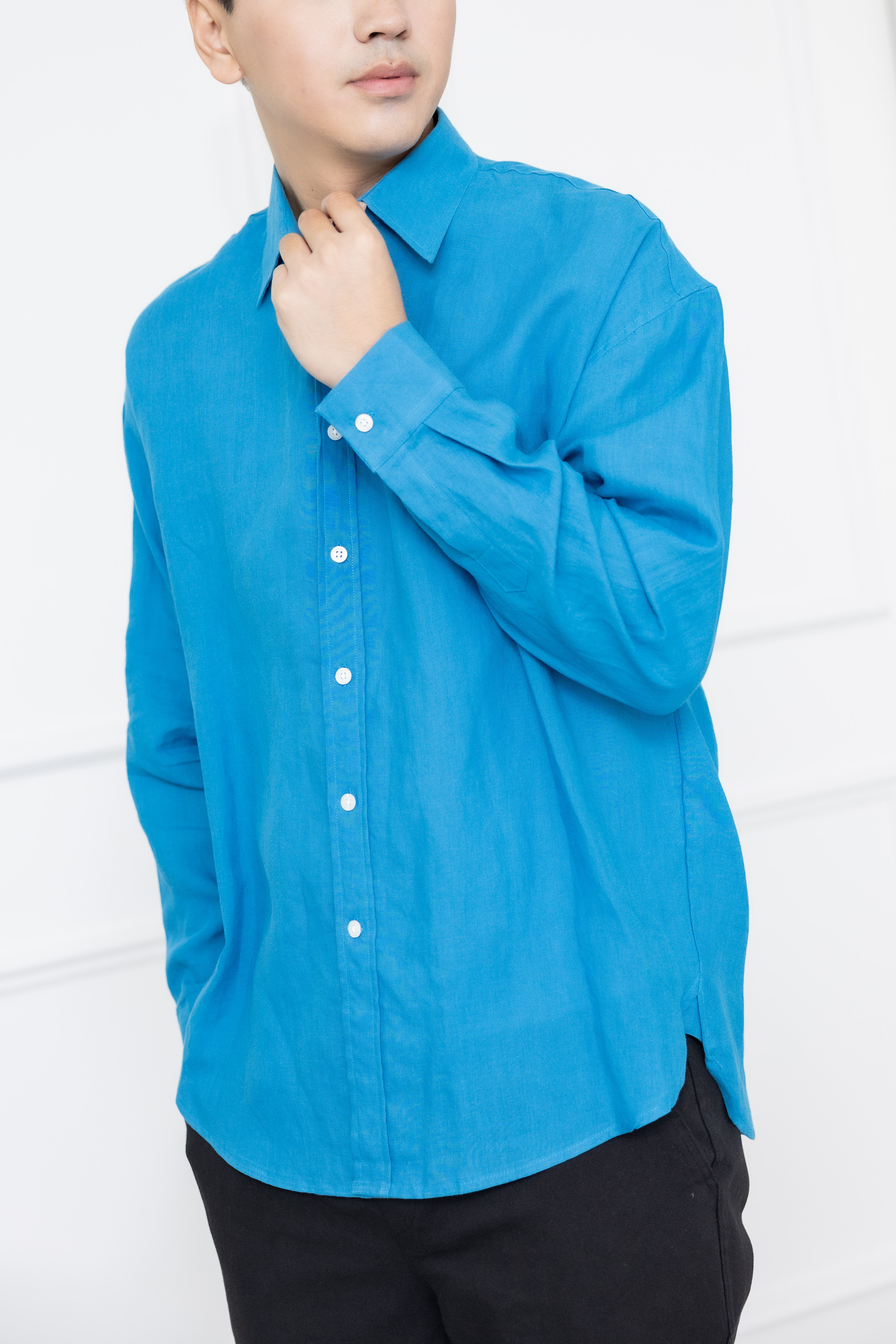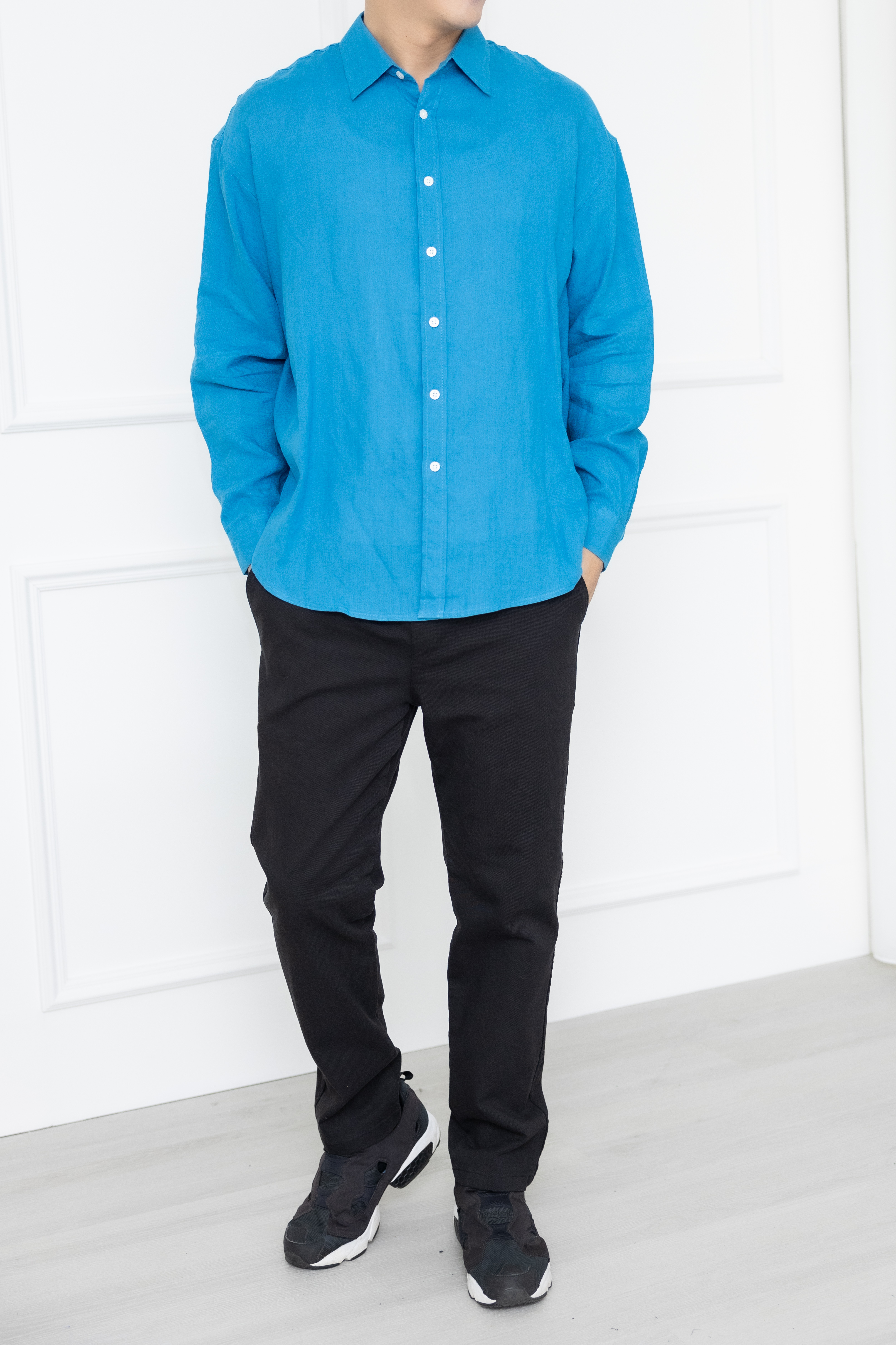 셔츠 立領全開襯衫長袖上衣 /藍色
