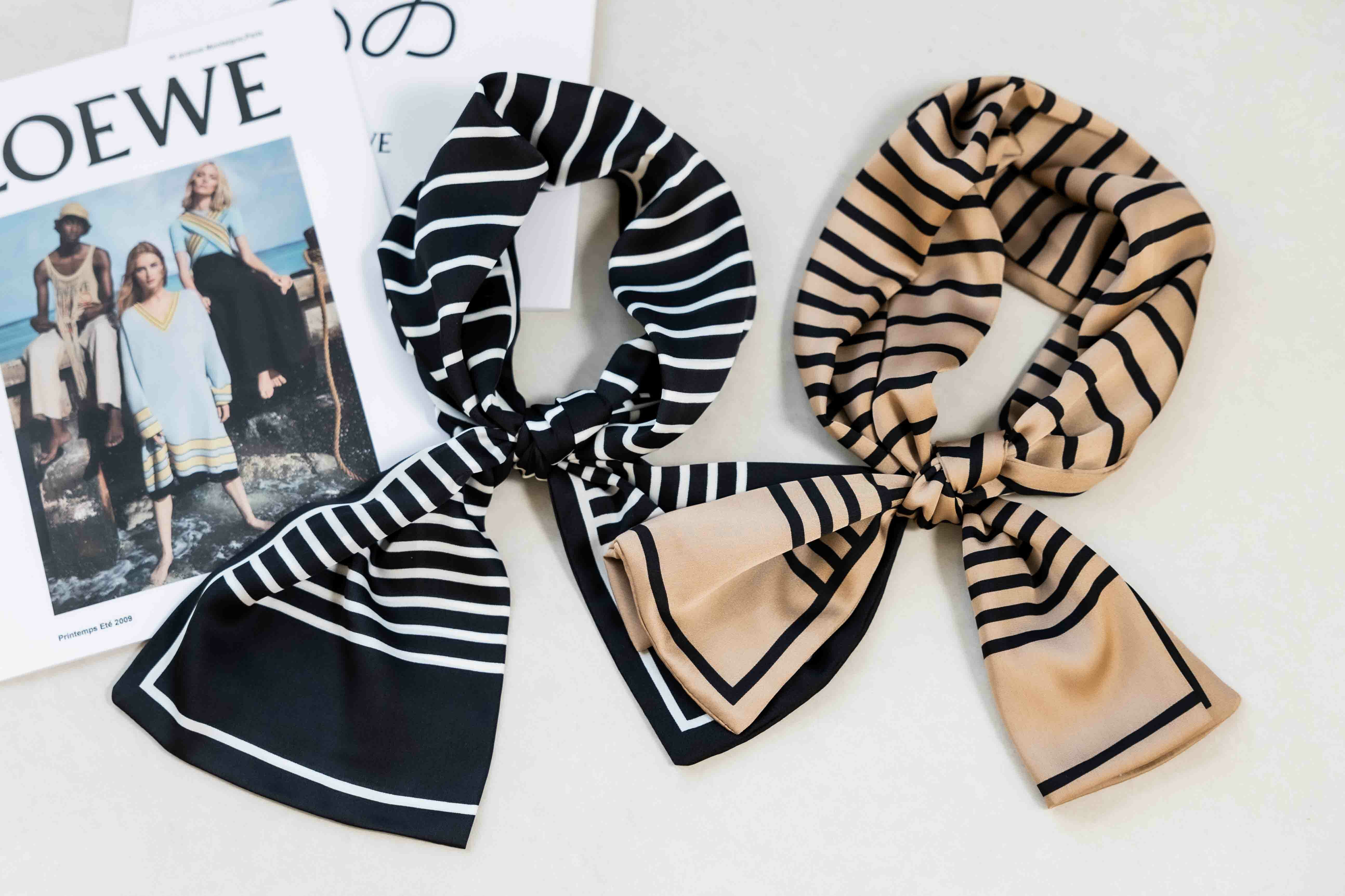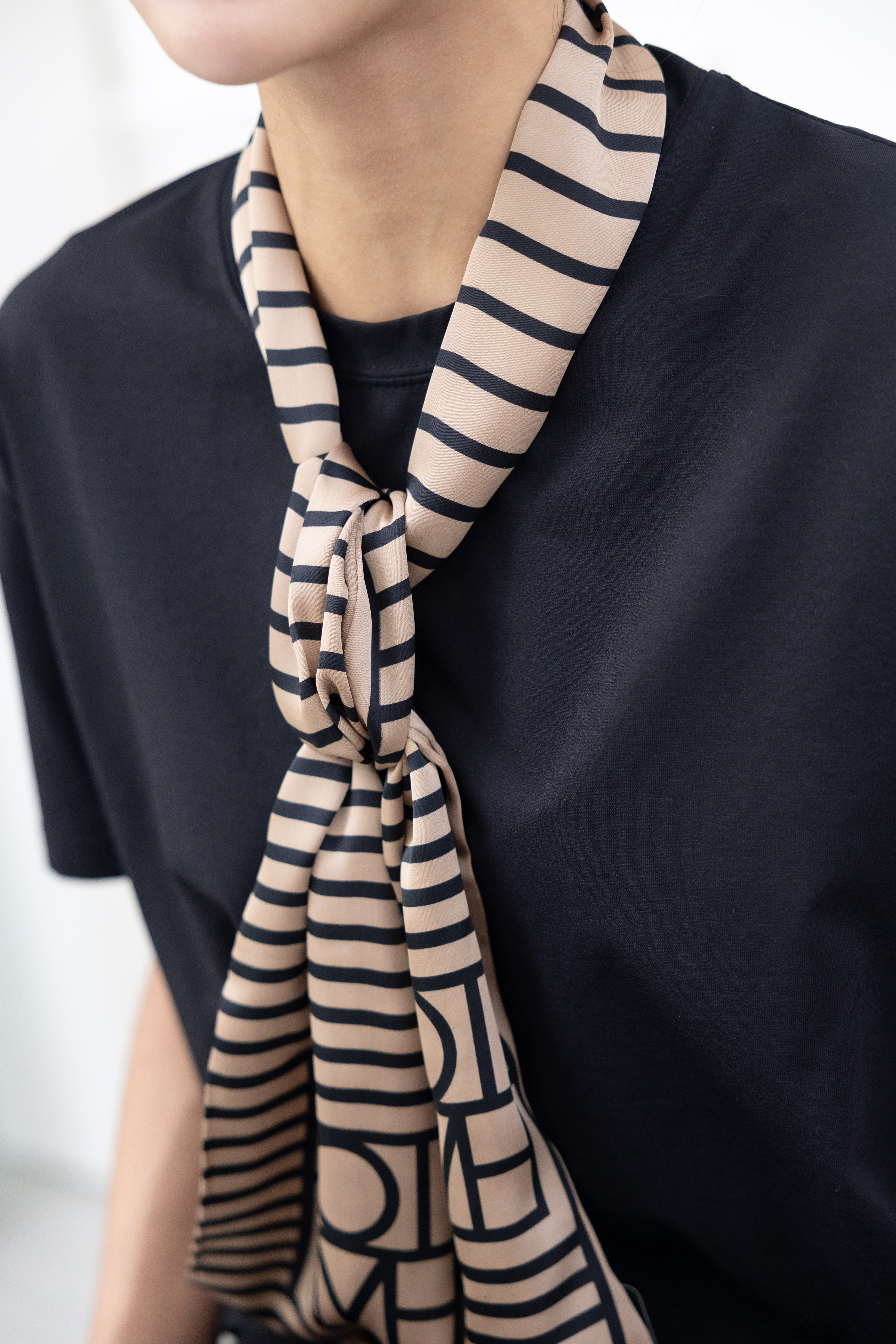 스카프 黑色線條幾何方形圖樣長圍巾 / 淺棕底色