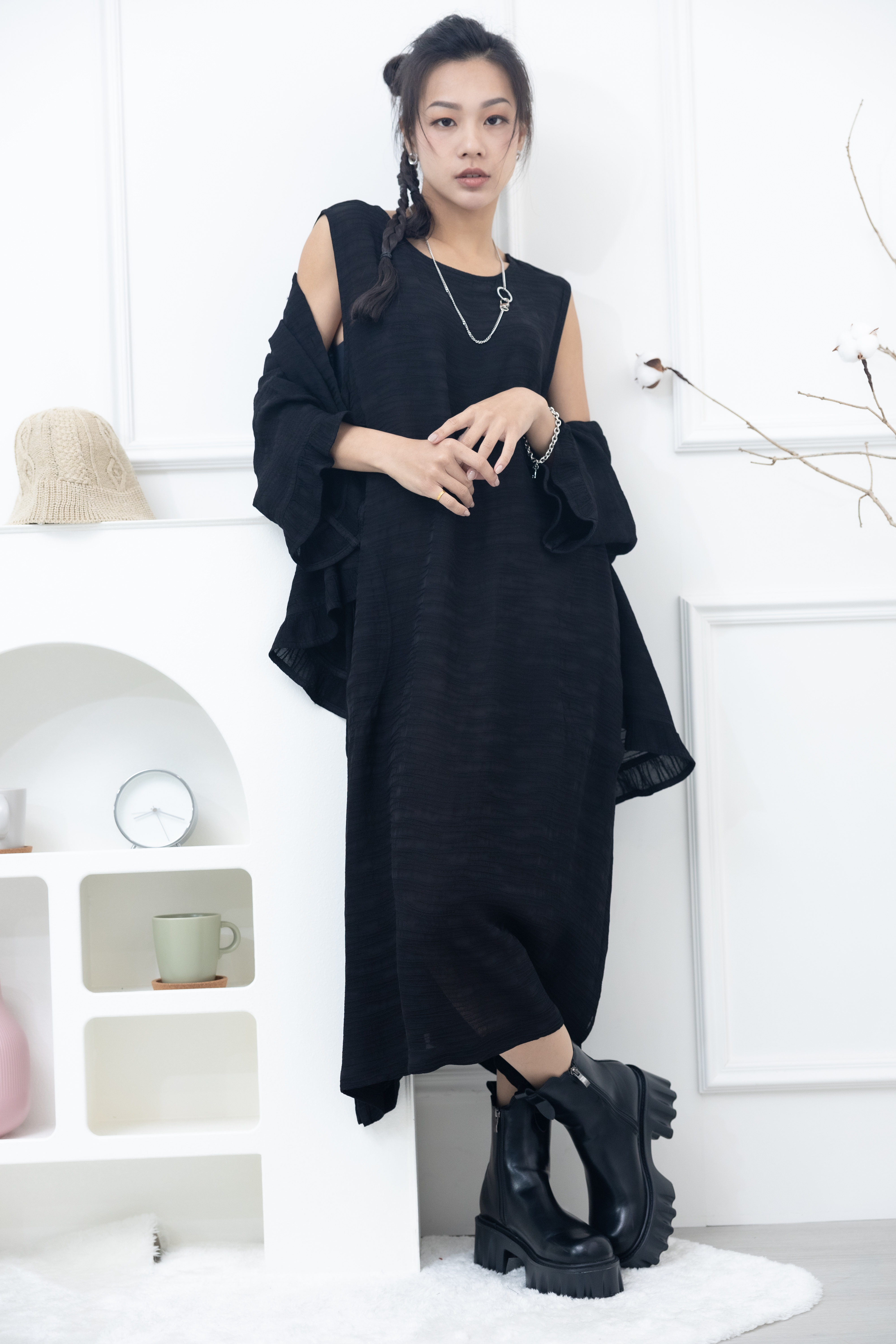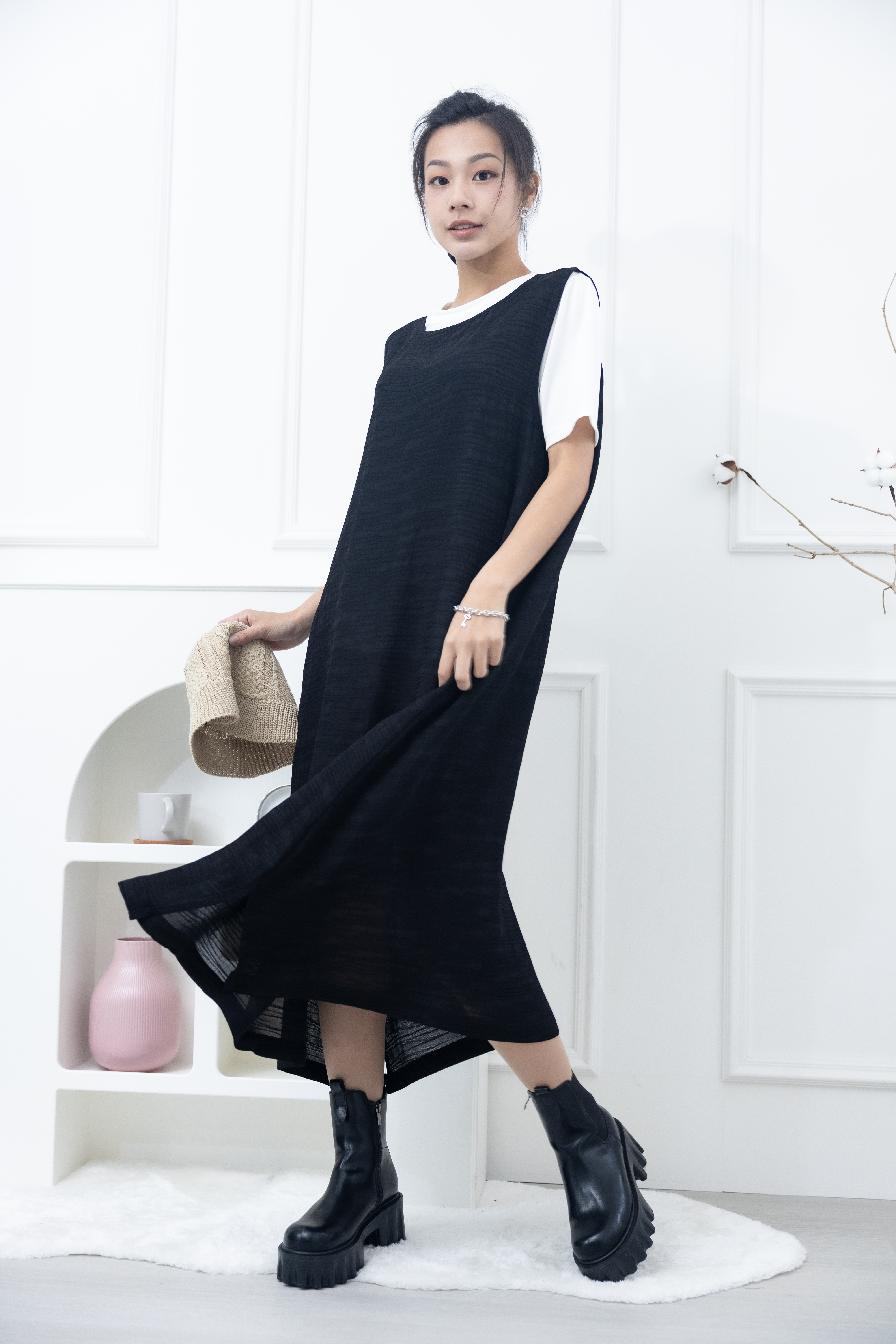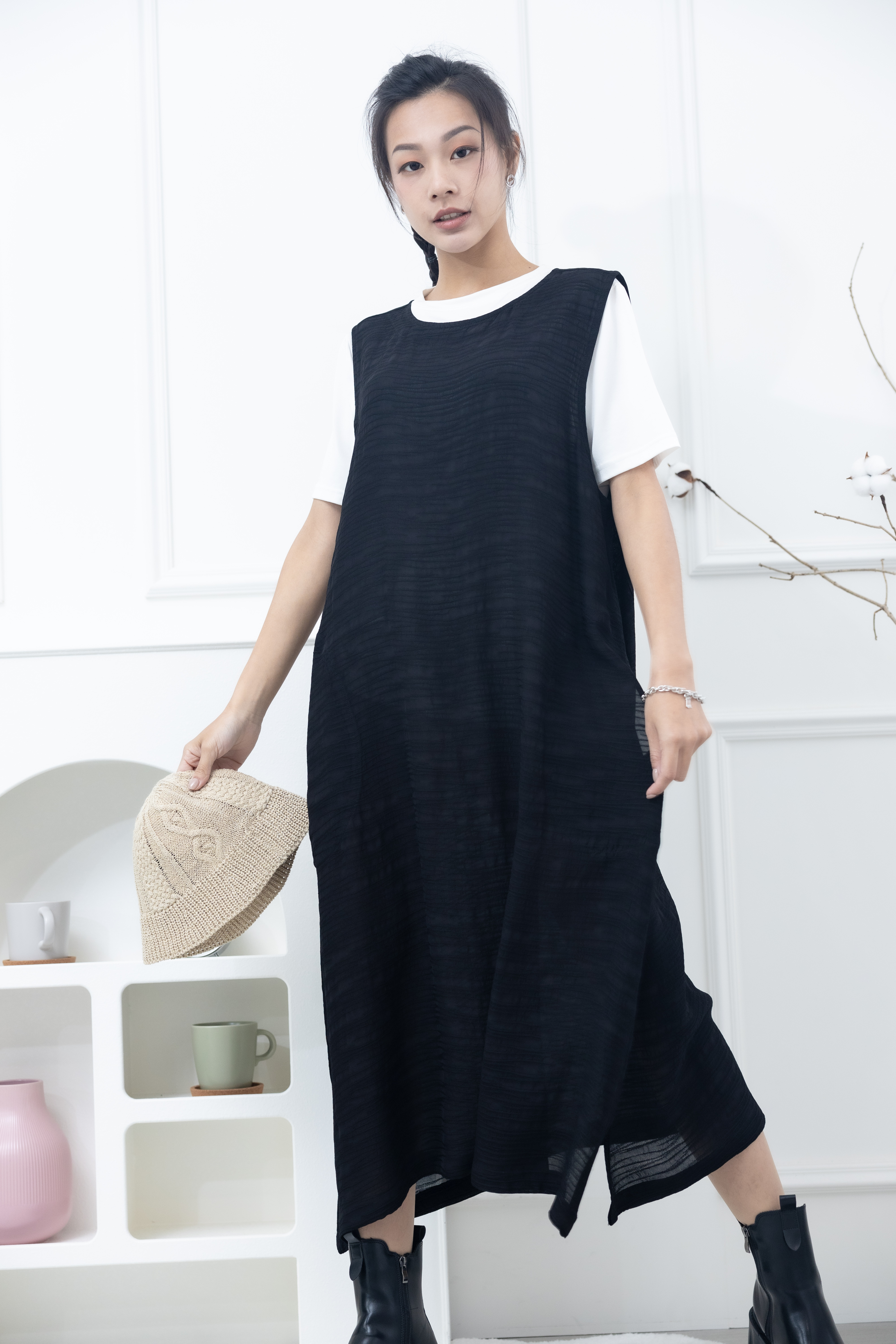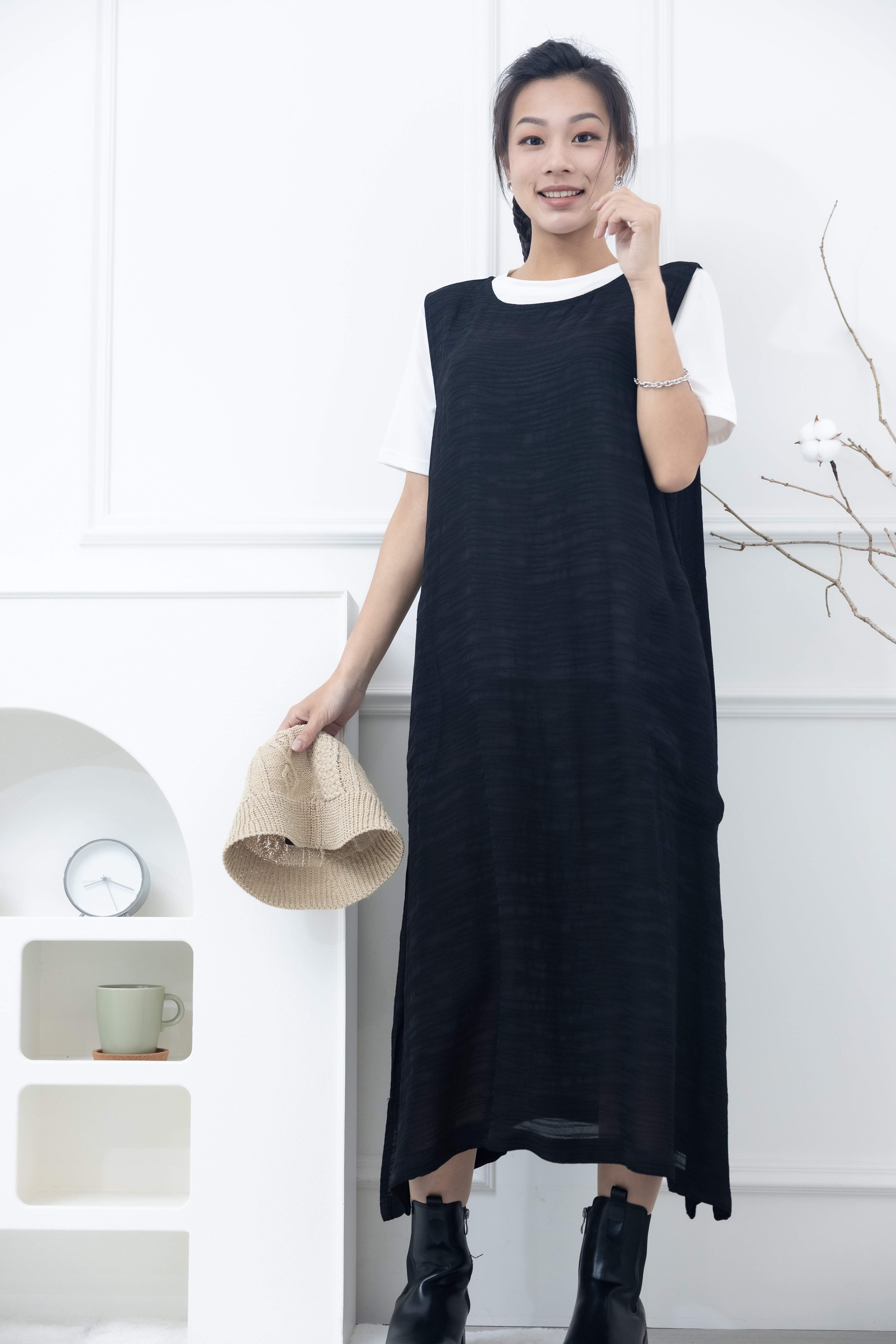 원피스 不規則橫織暈染感無袖洋裝 / 黑色