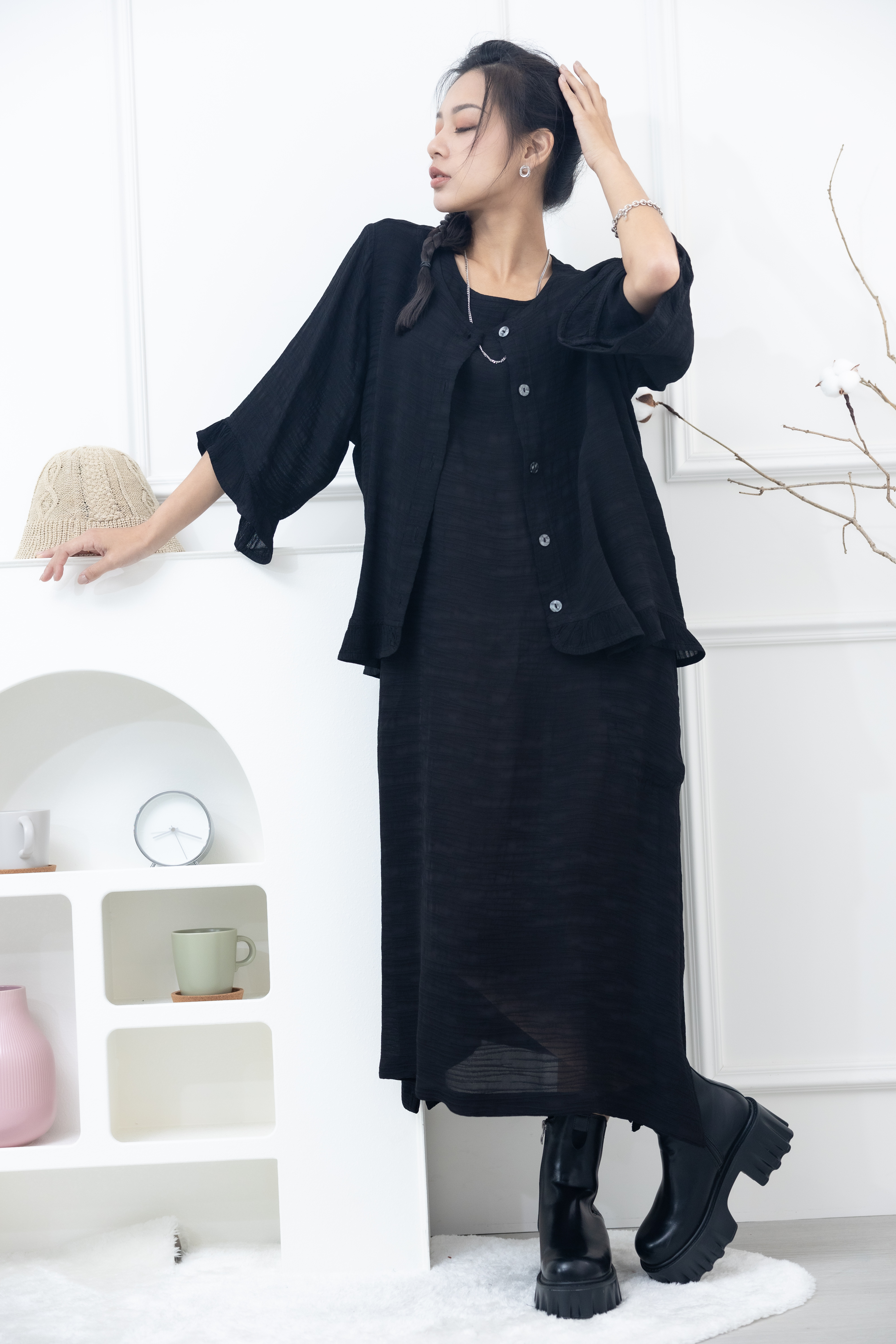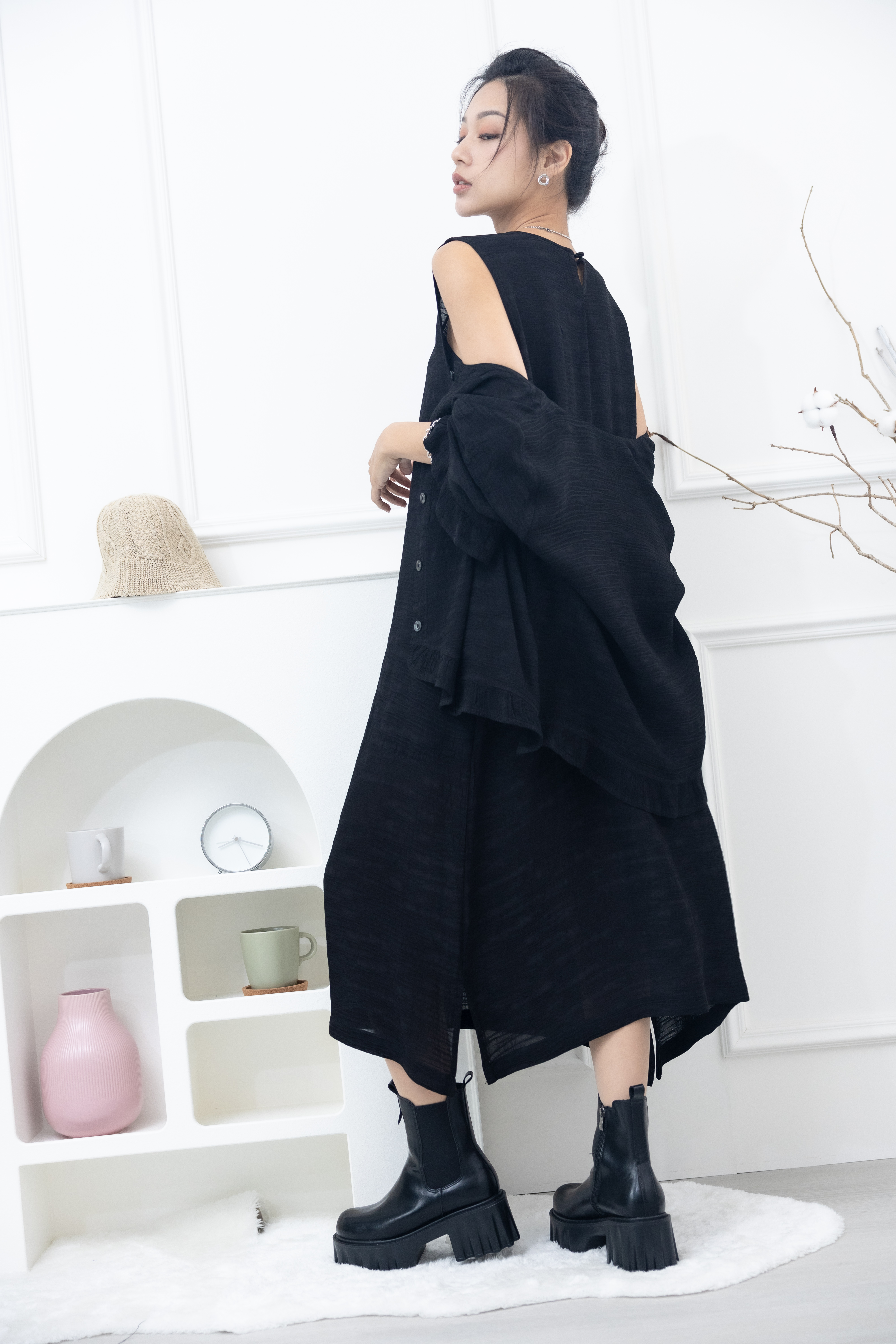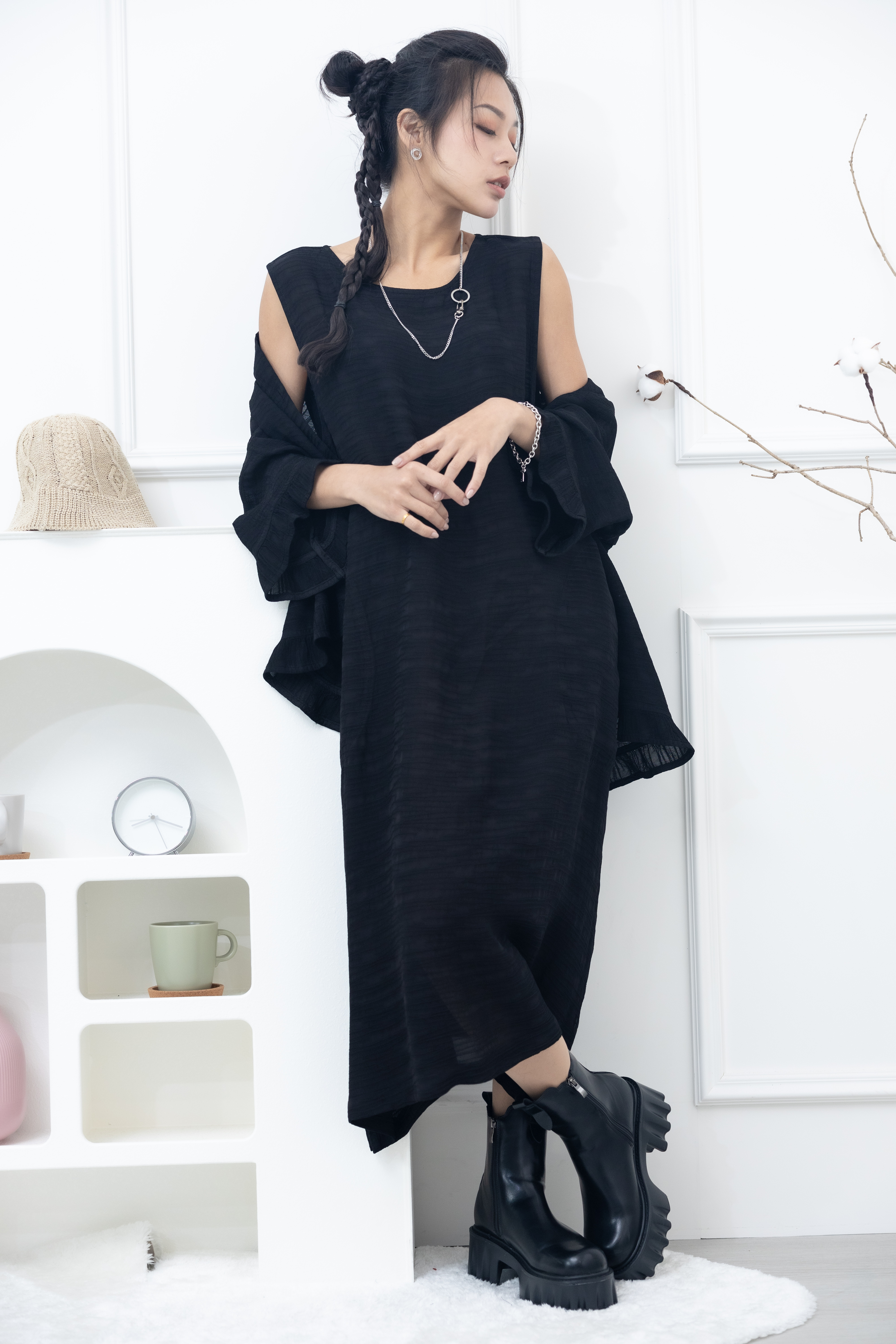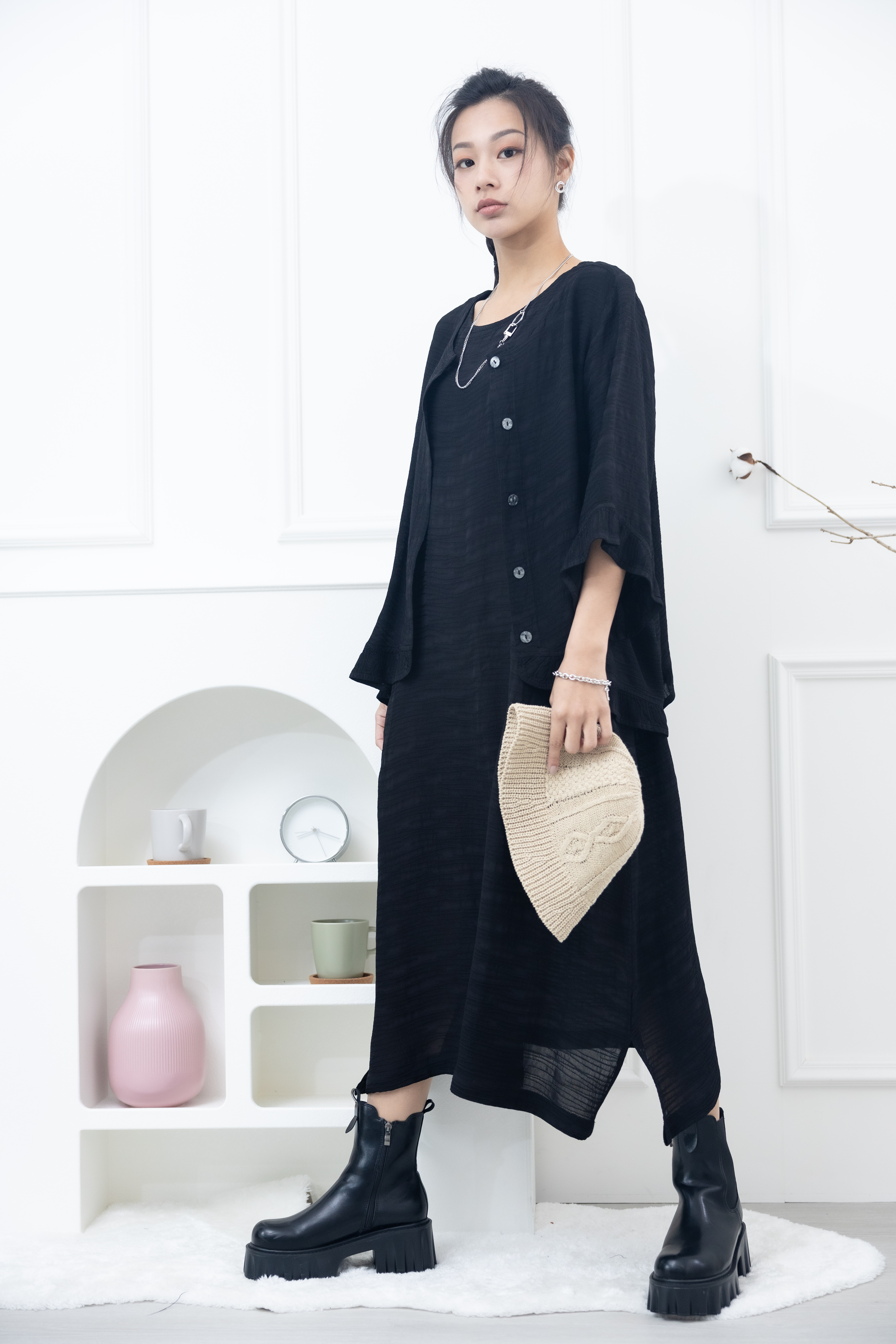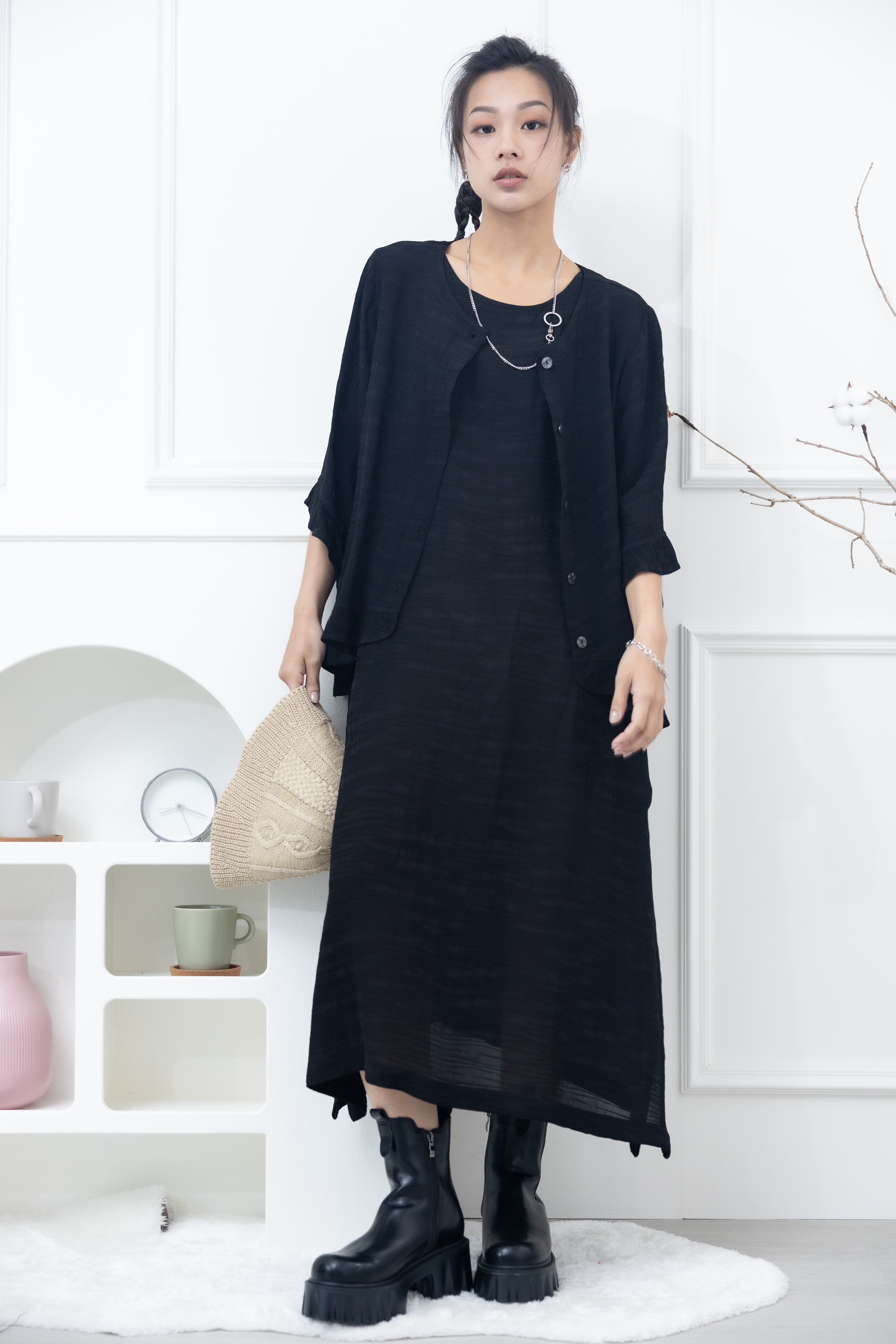 원피스 不規則橫織暈染感無袖洋裝 / 黑色