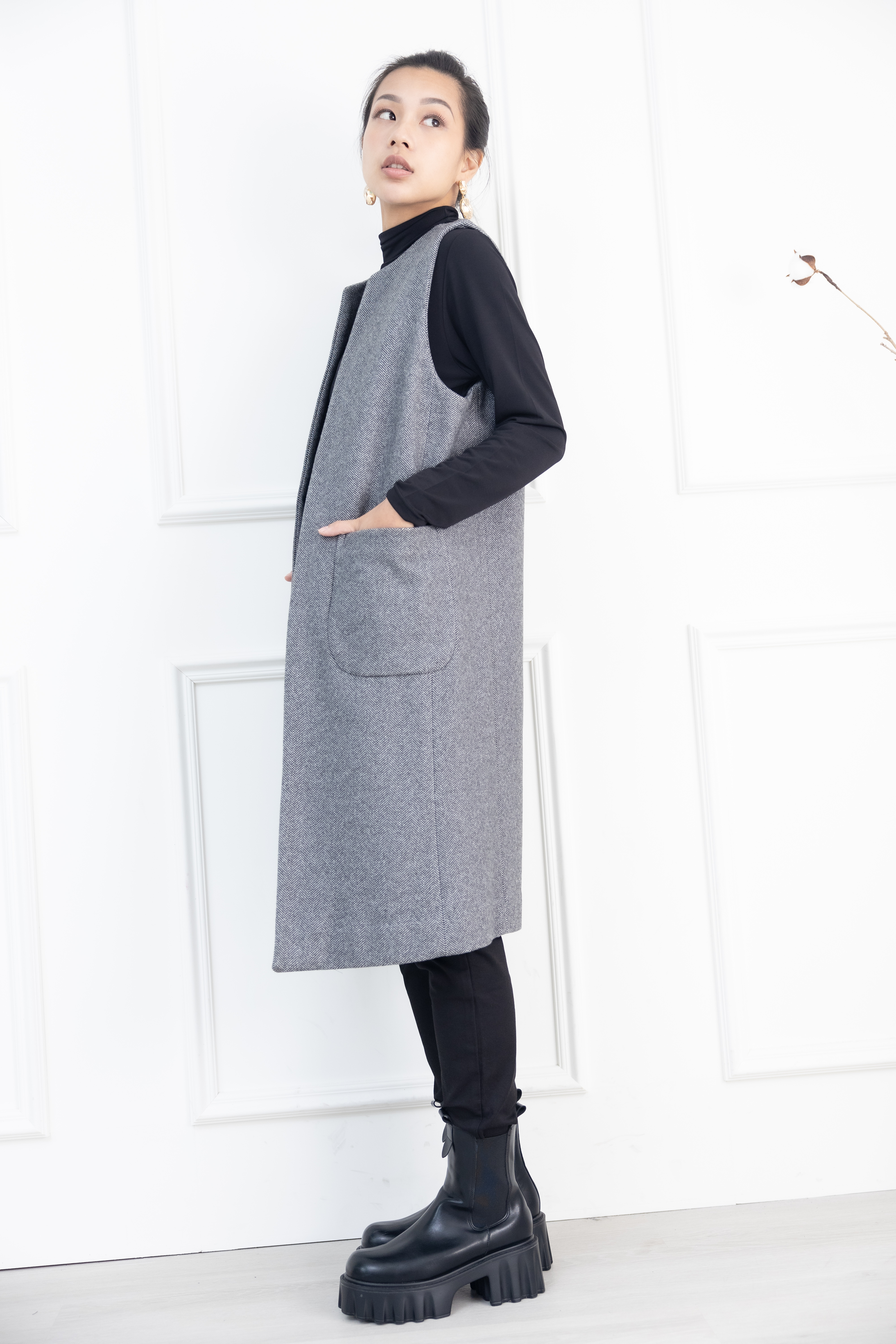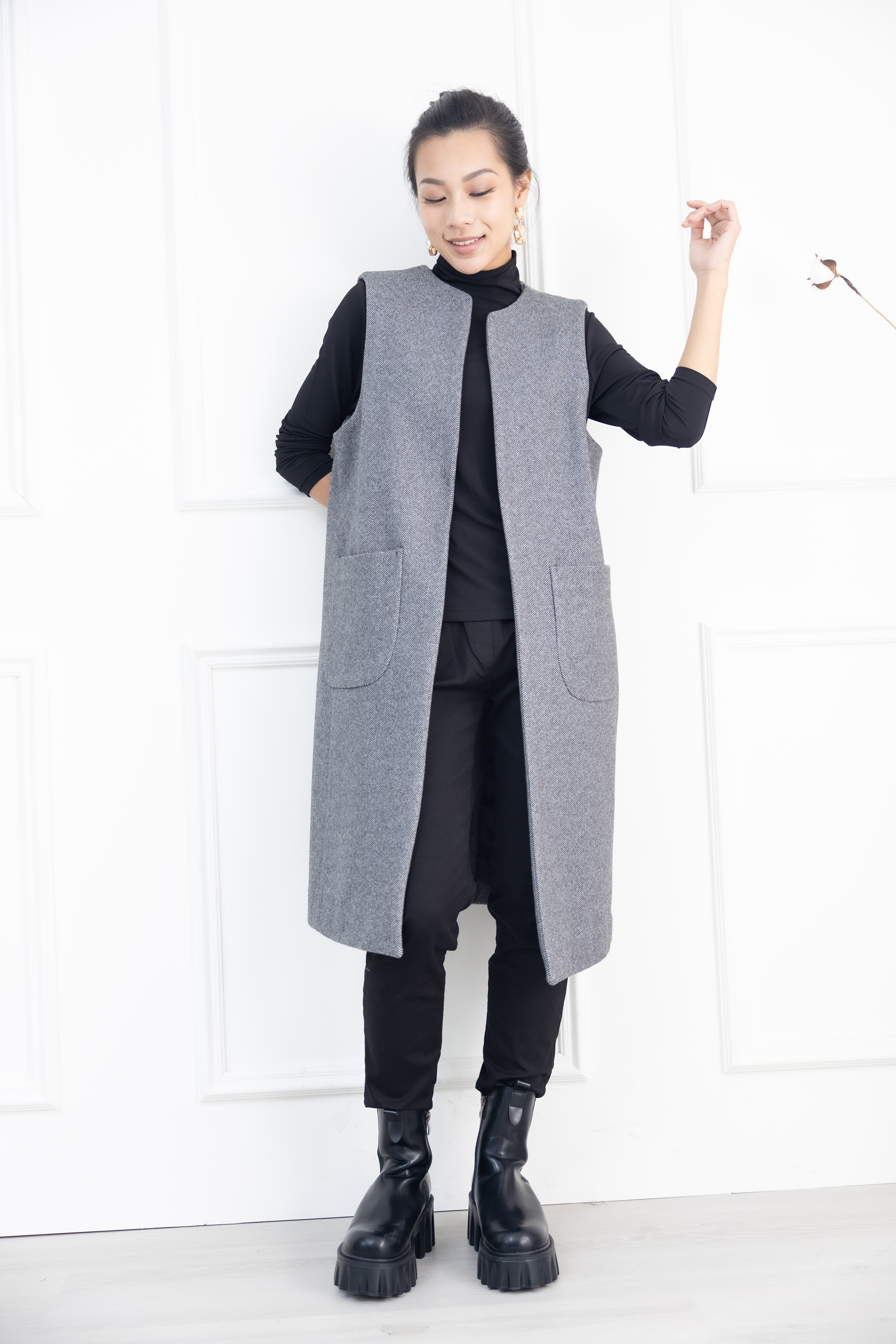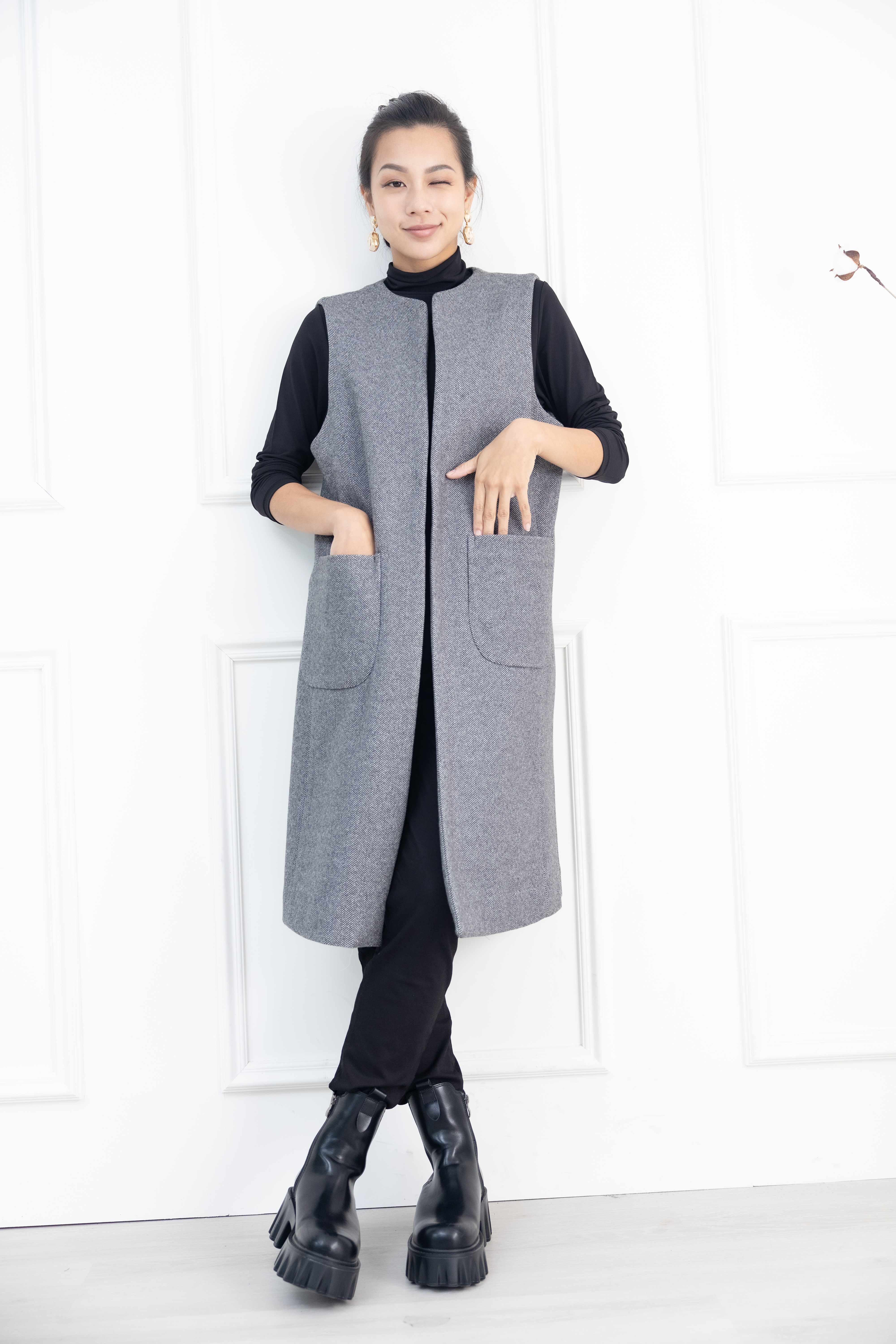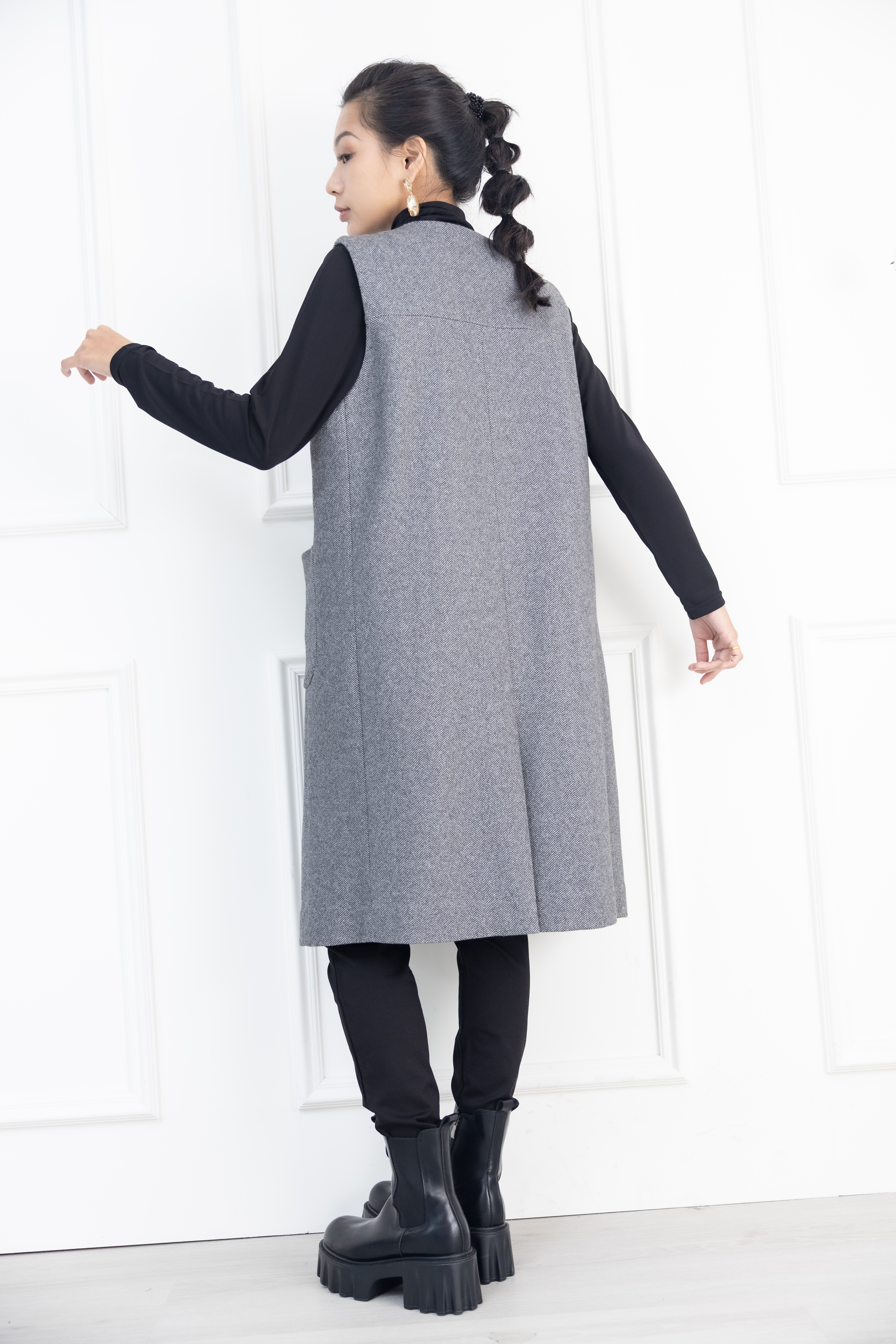 조끼 箭紋羊毛背心外套 / 黑白條紋