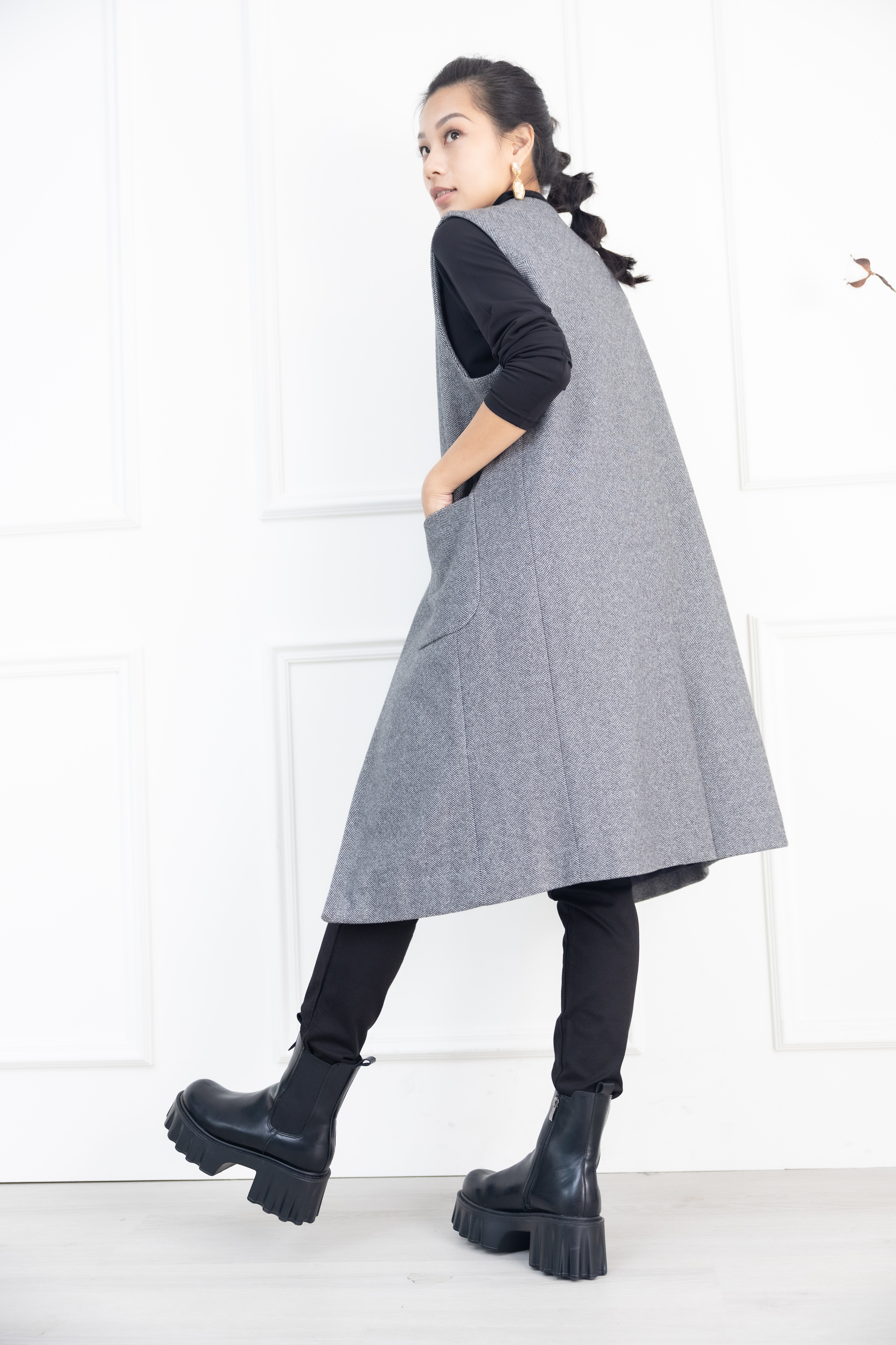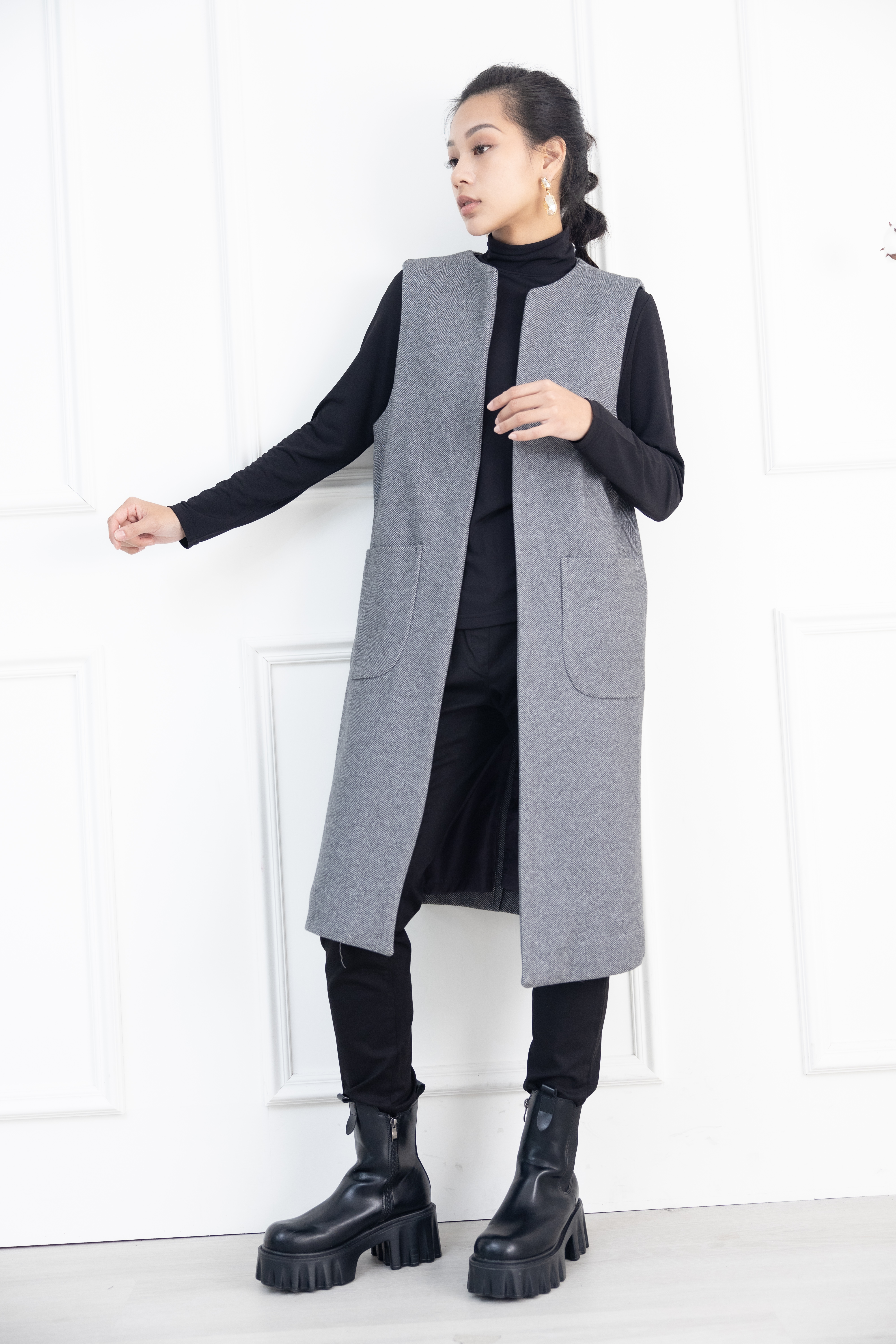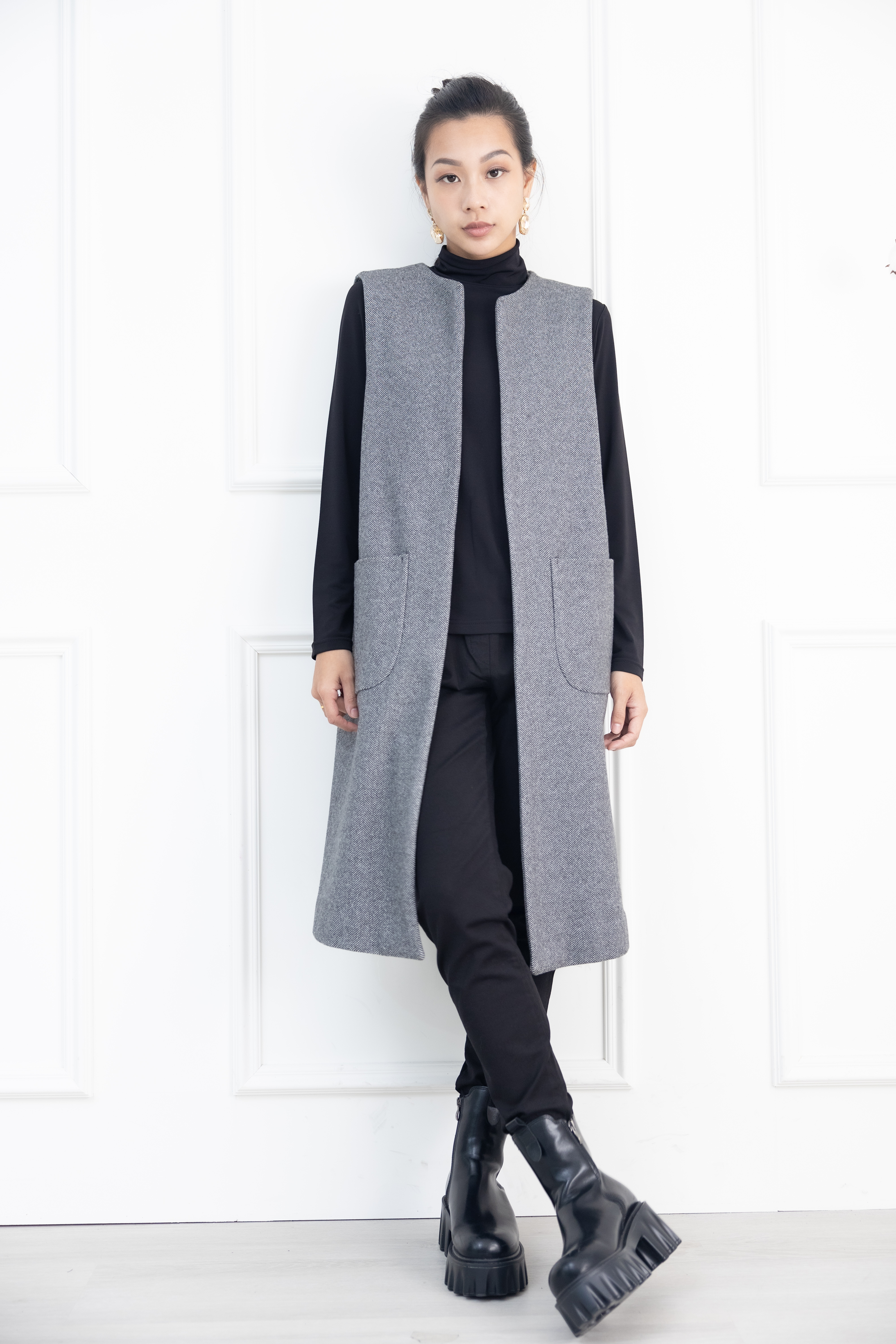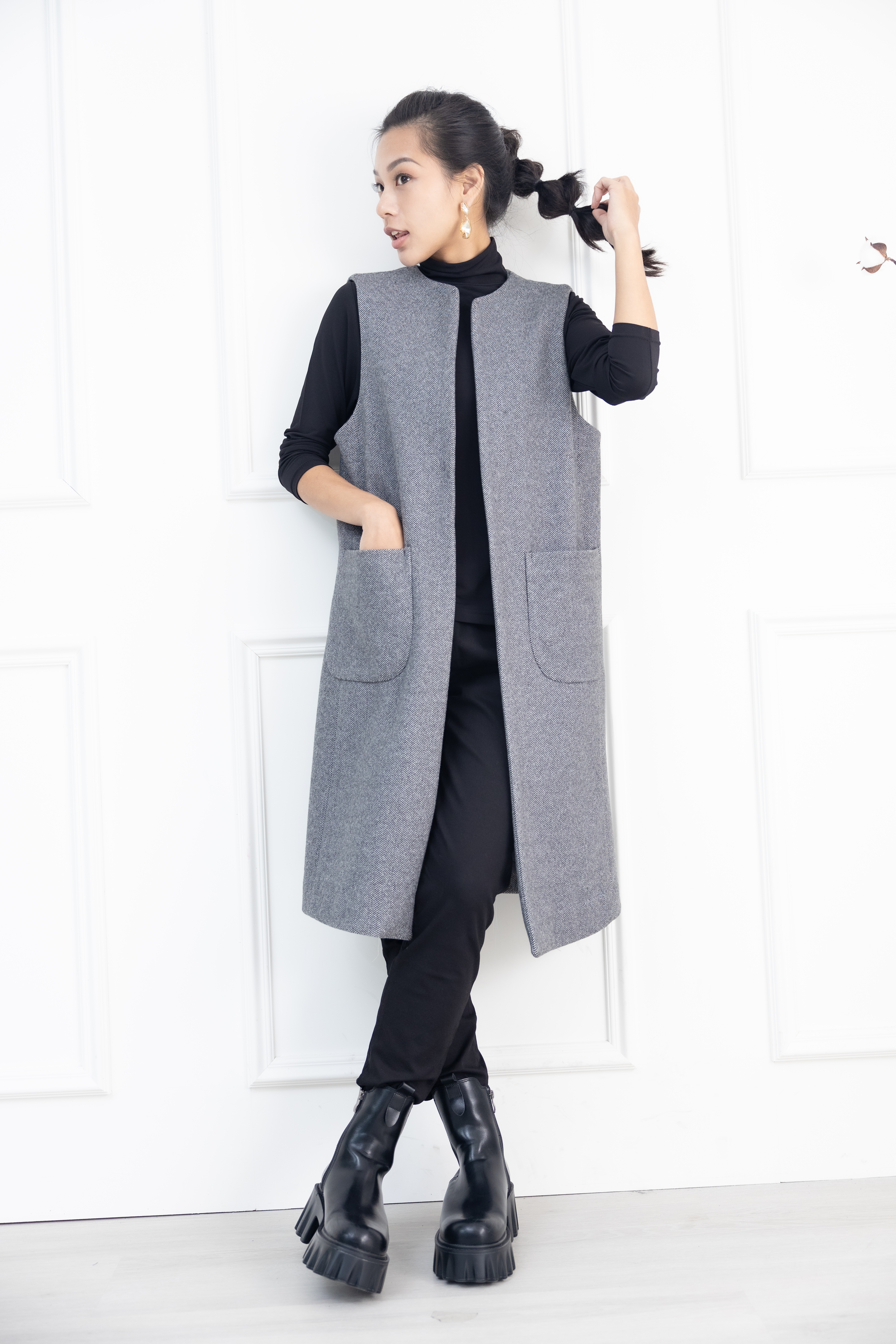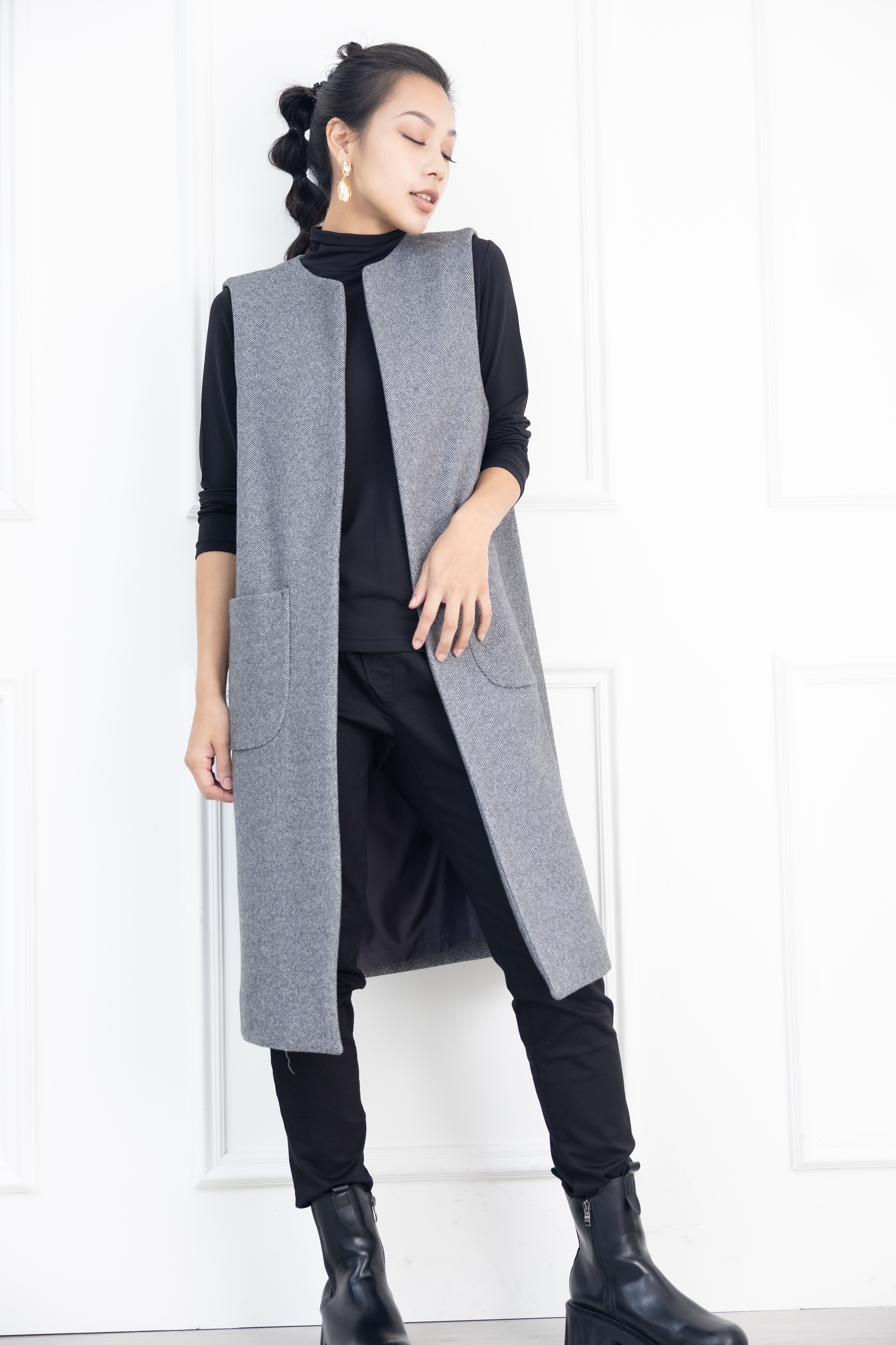 조끼 箭紋羊毛背心外套 / 黑白條紋