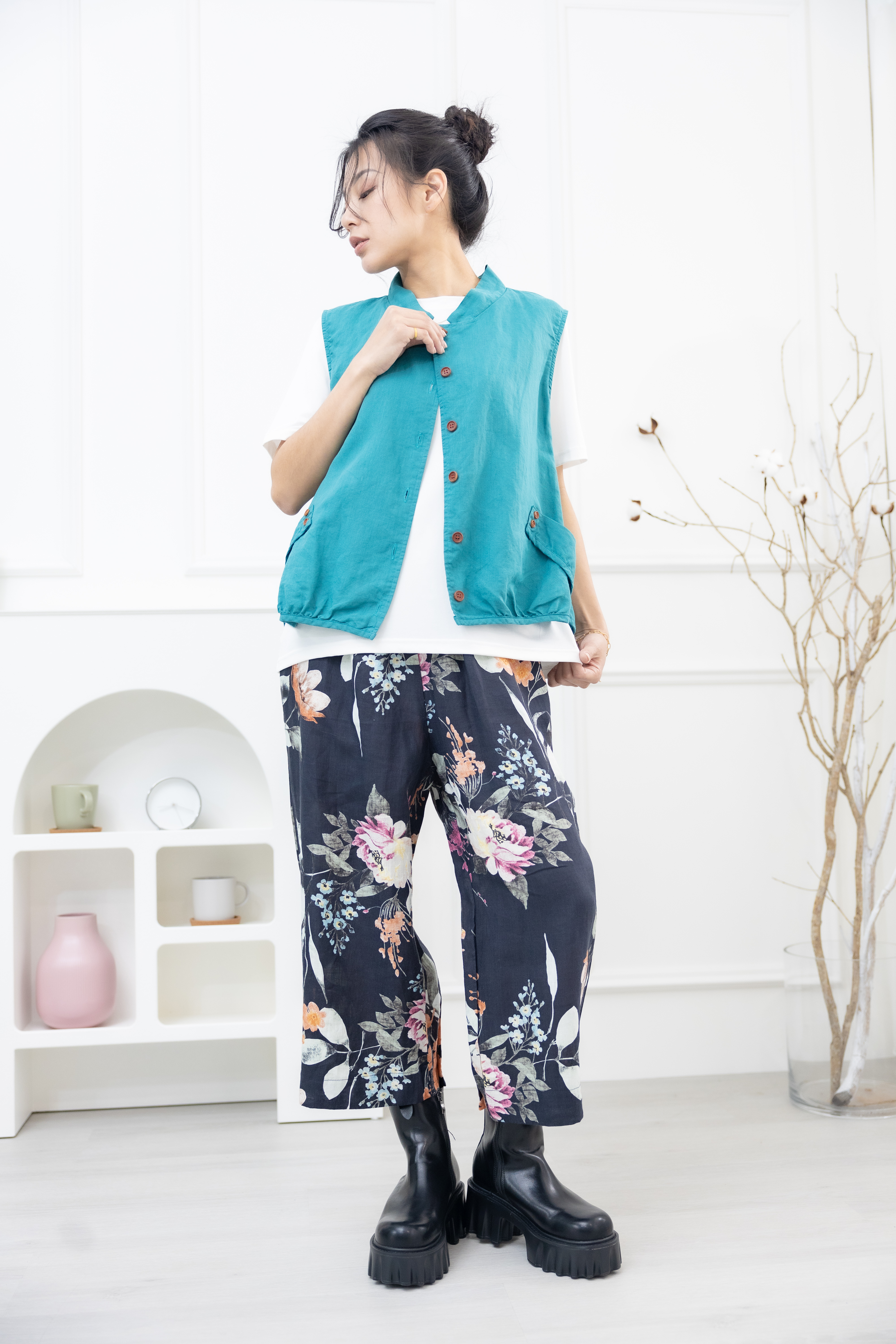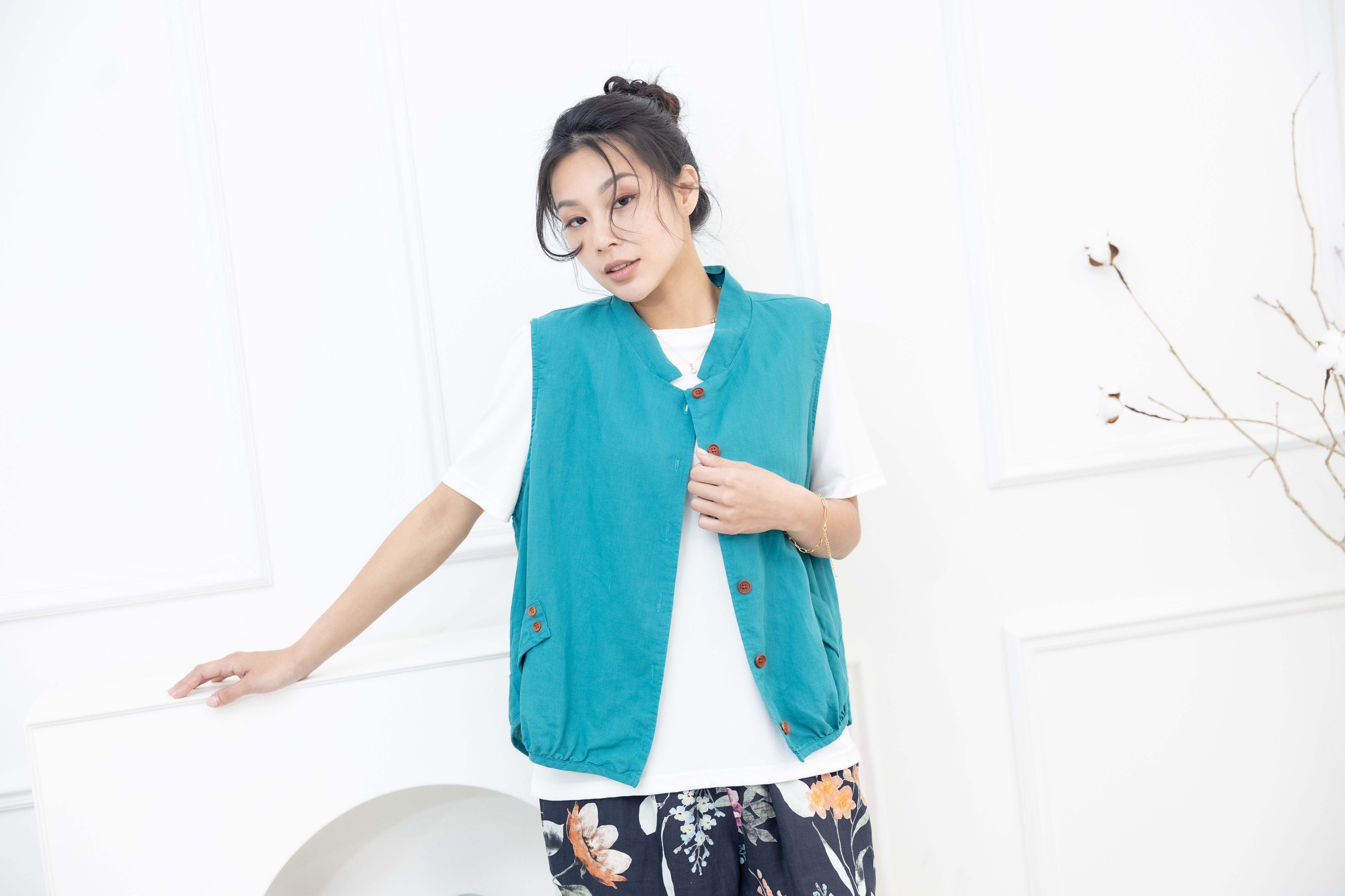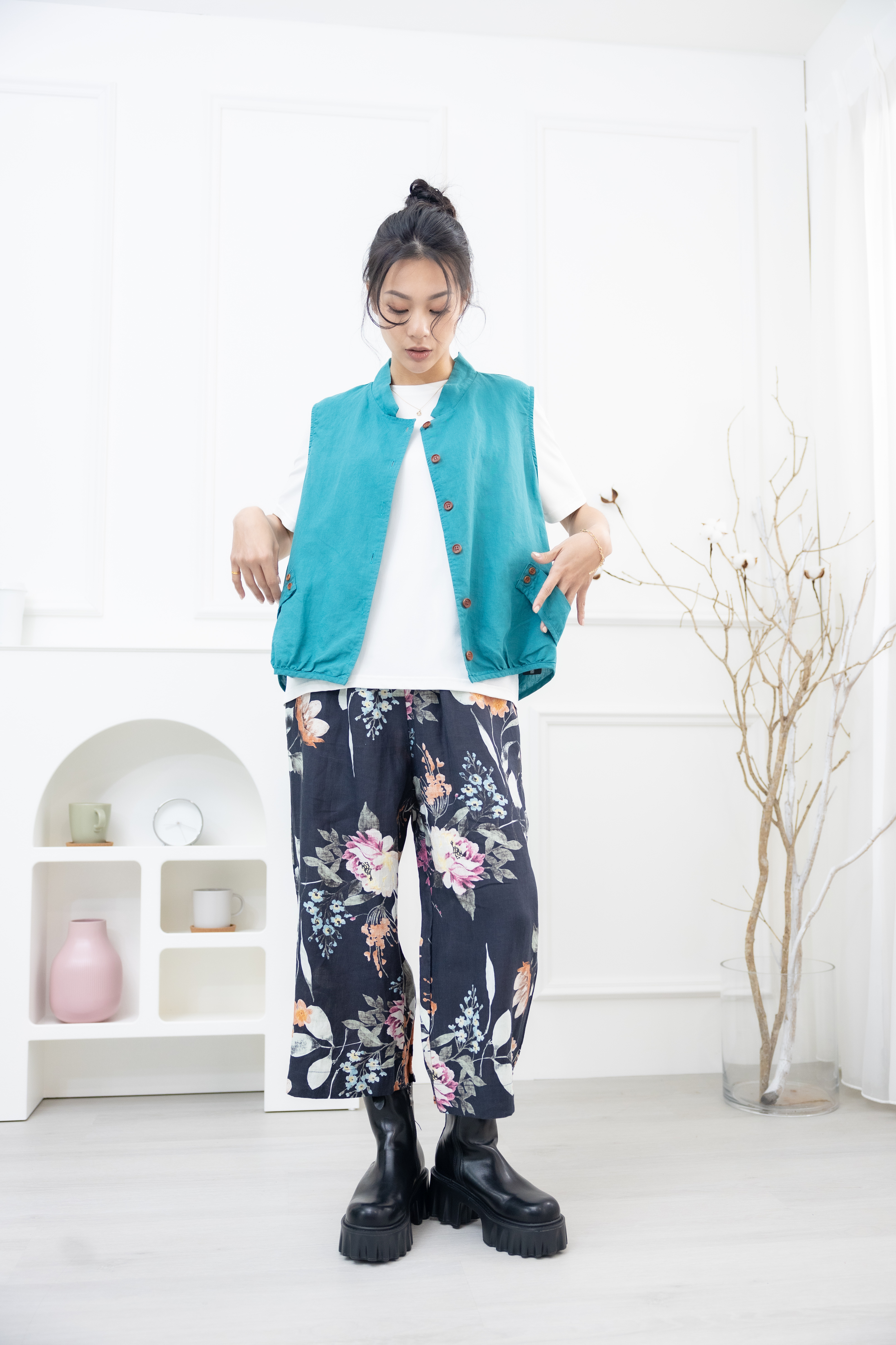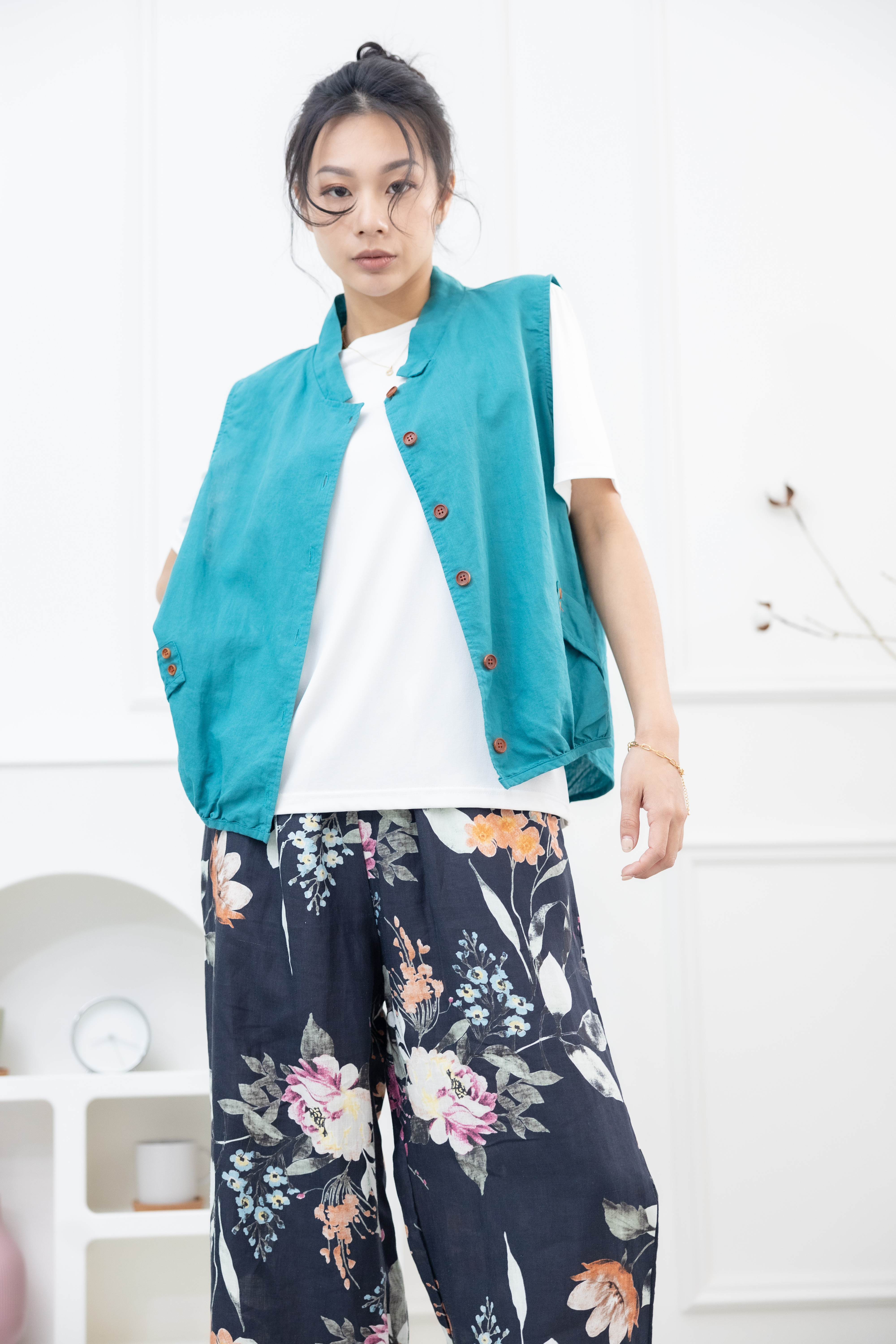 조끼 腰側口袋背心 / 湖藍色