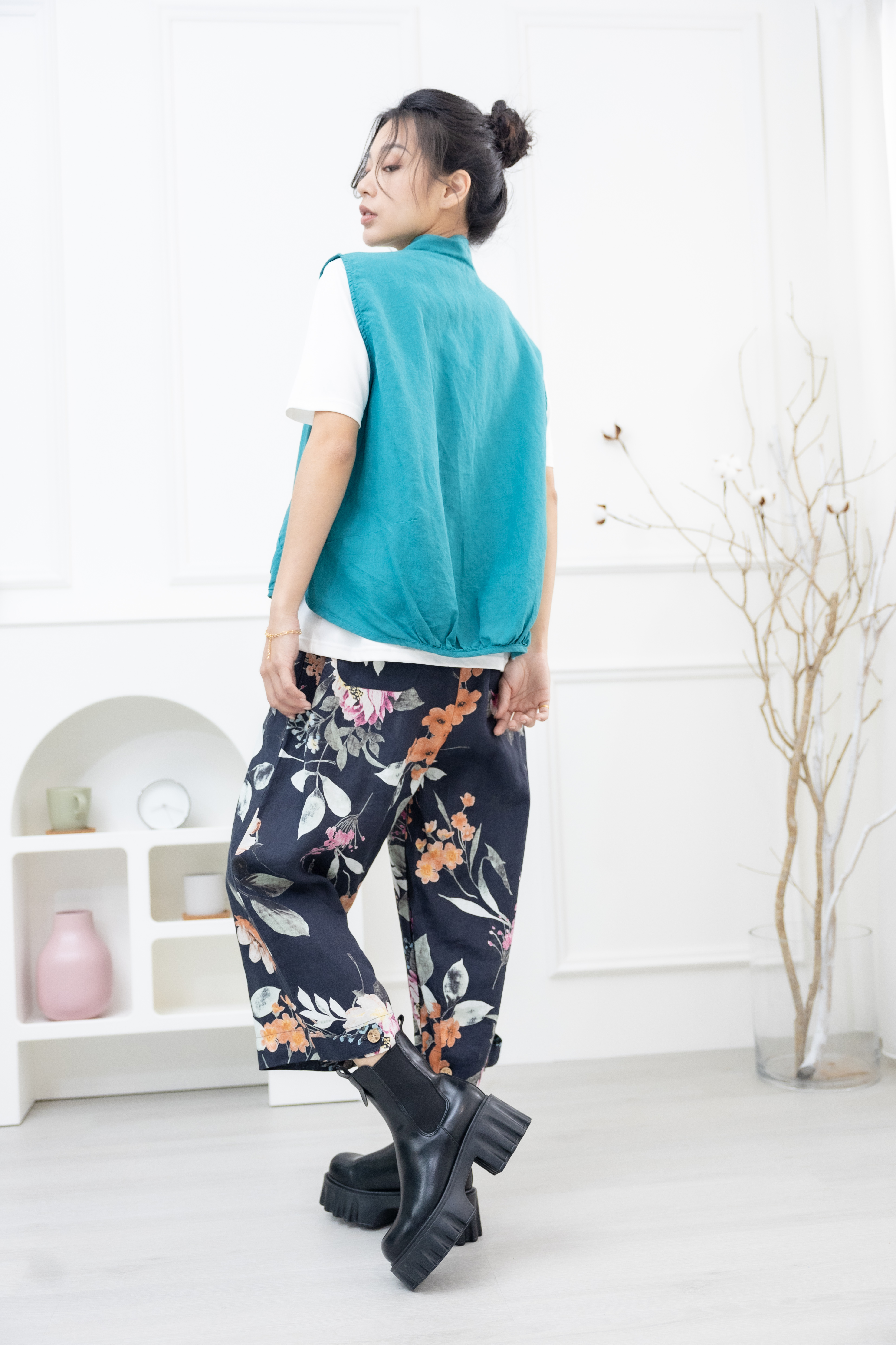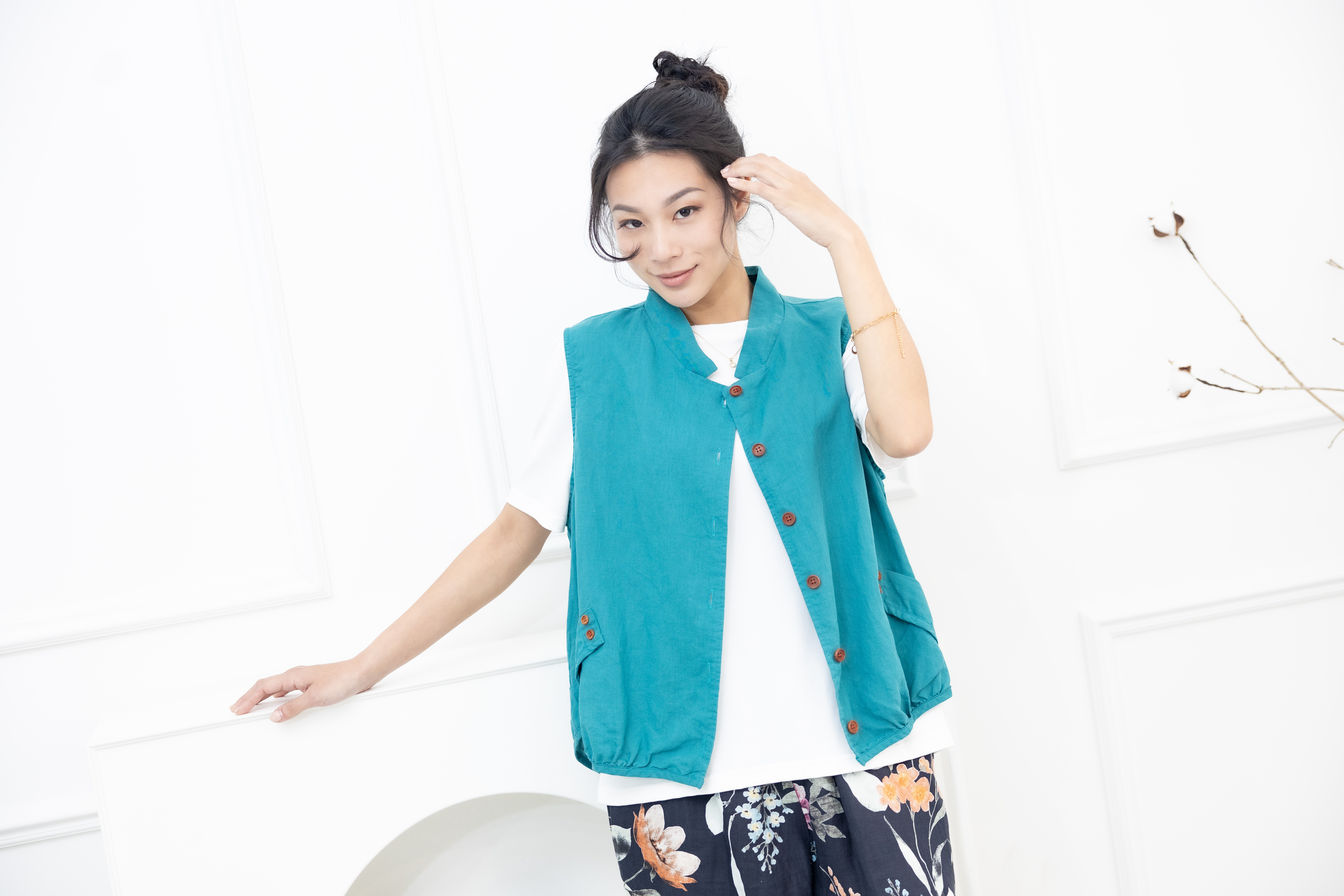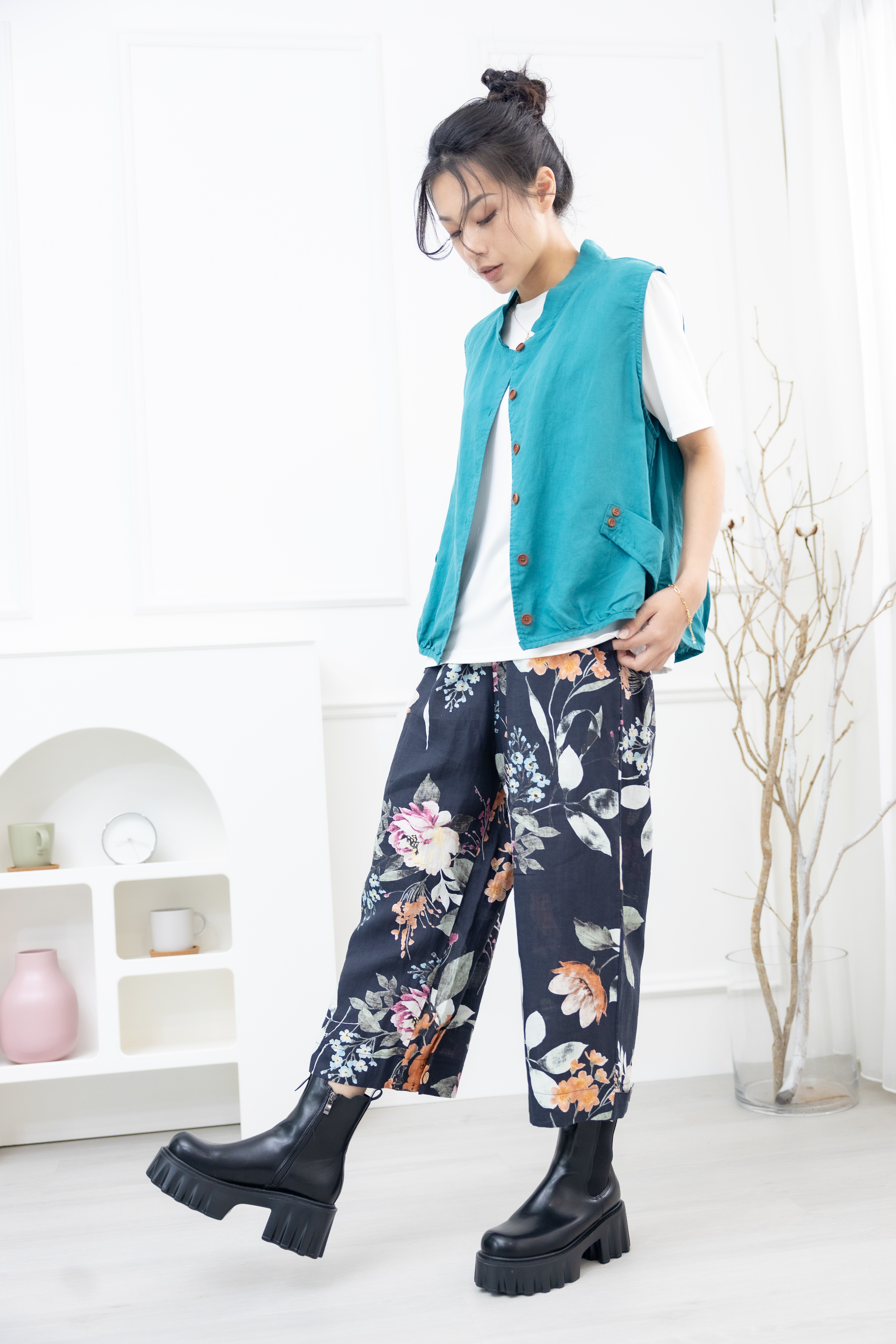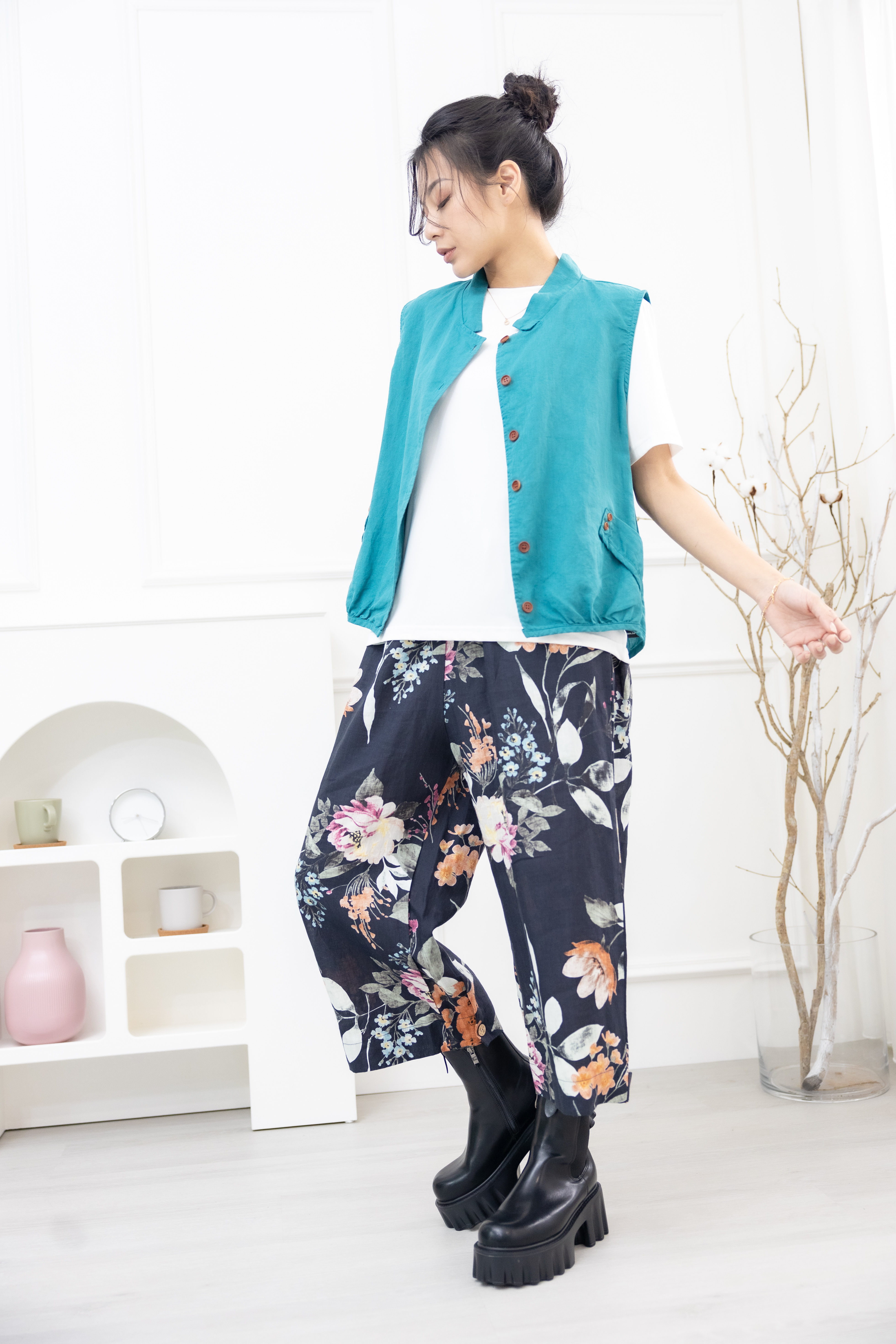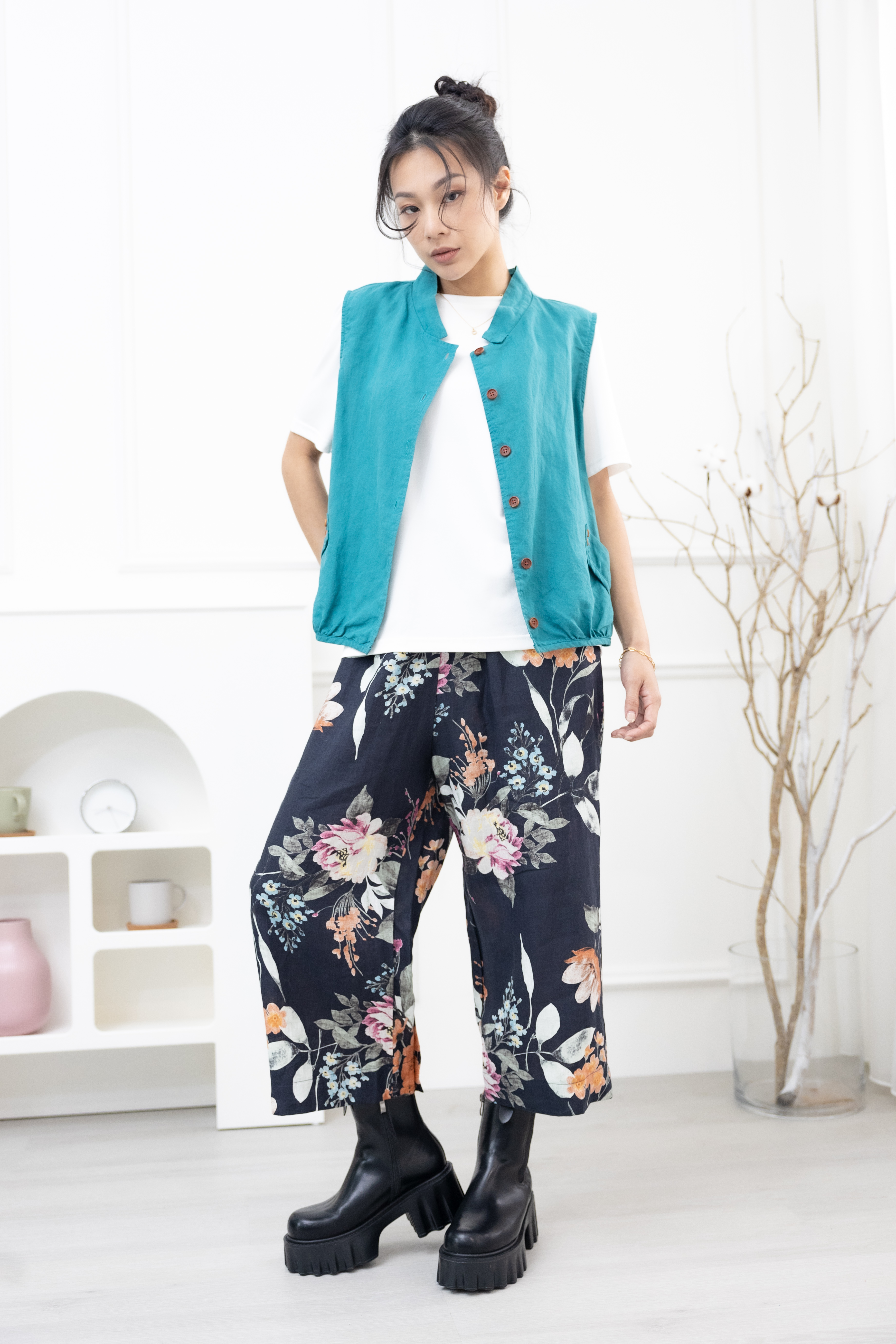 조끼 腰側口袋背心 / 湖藍色