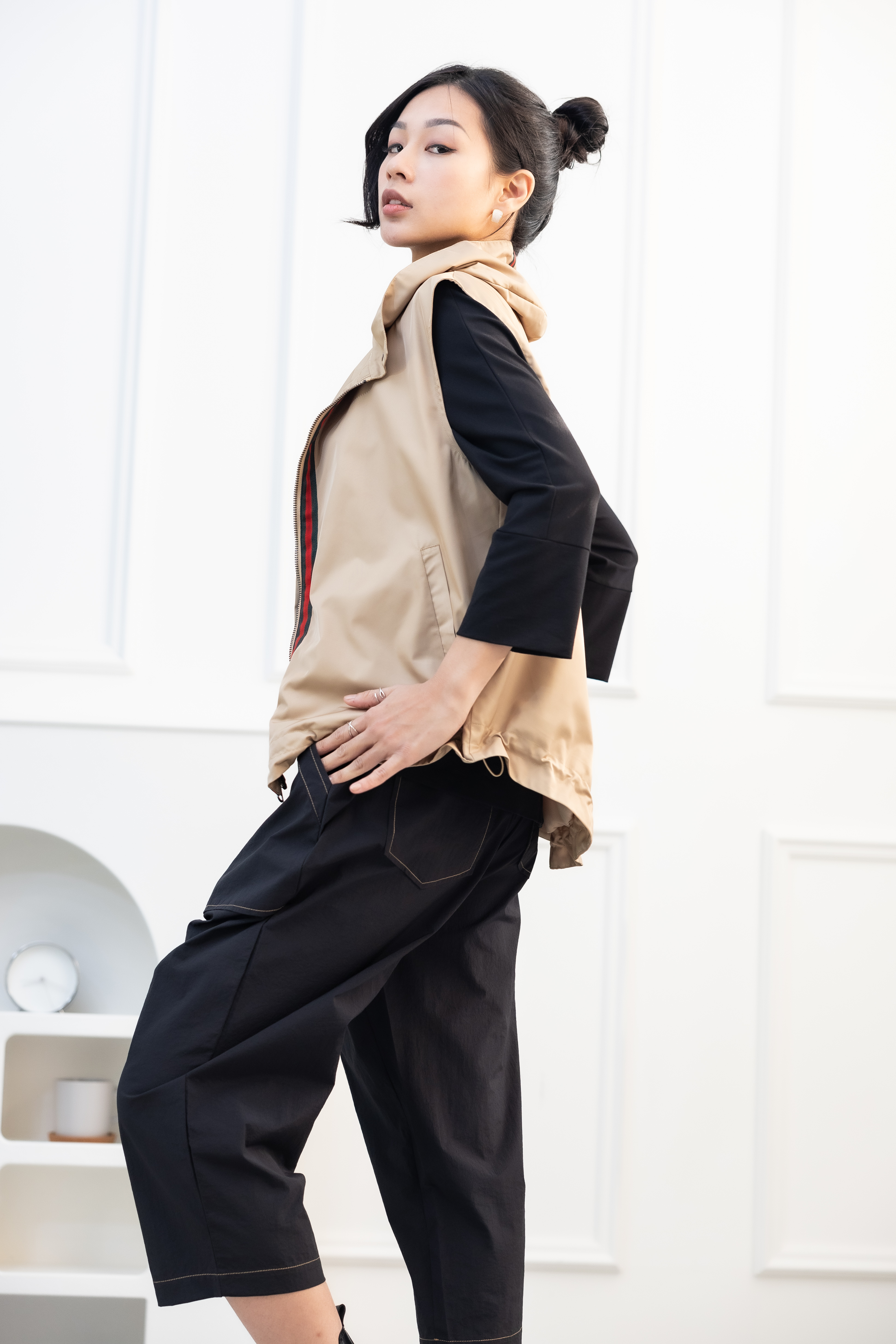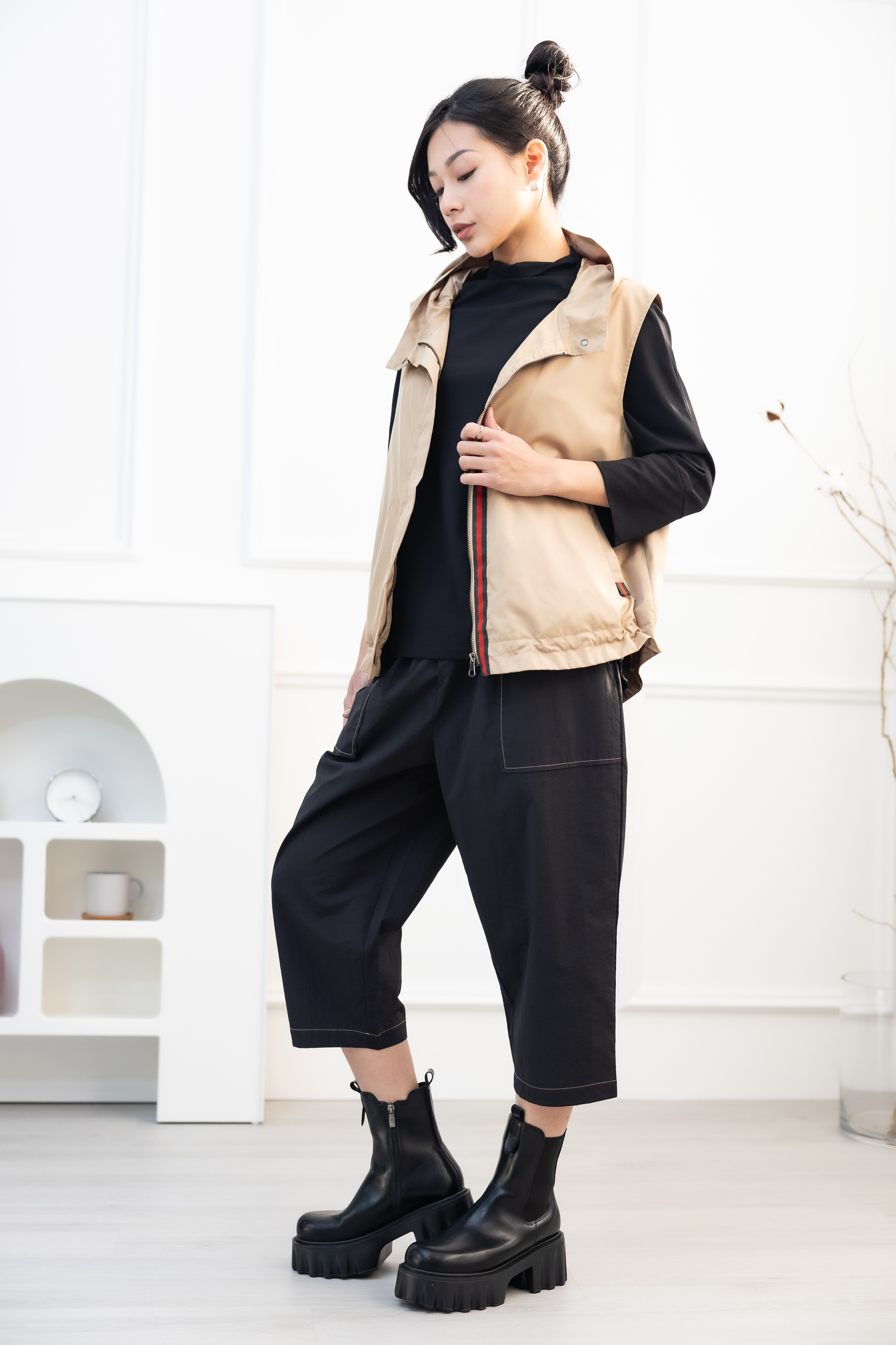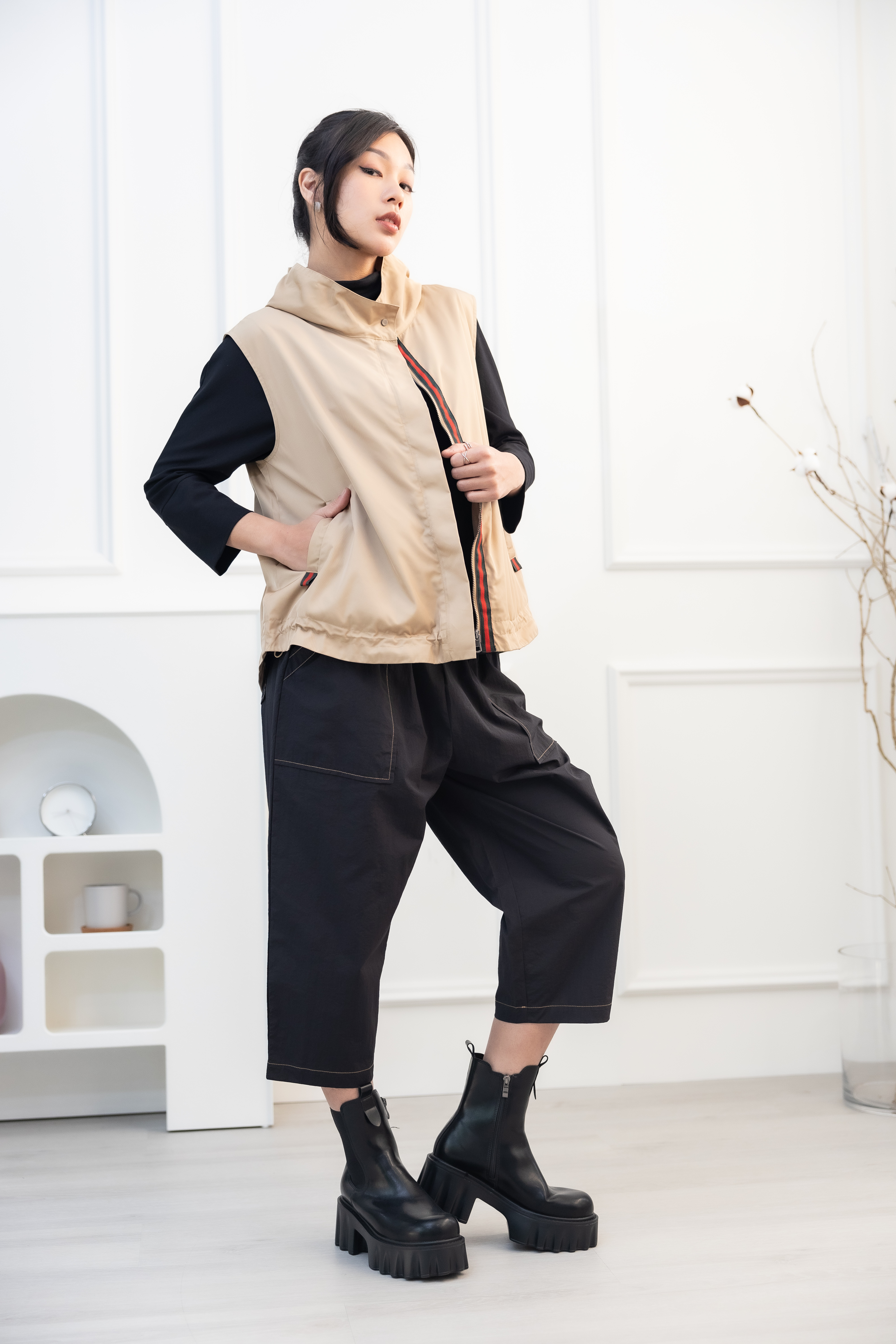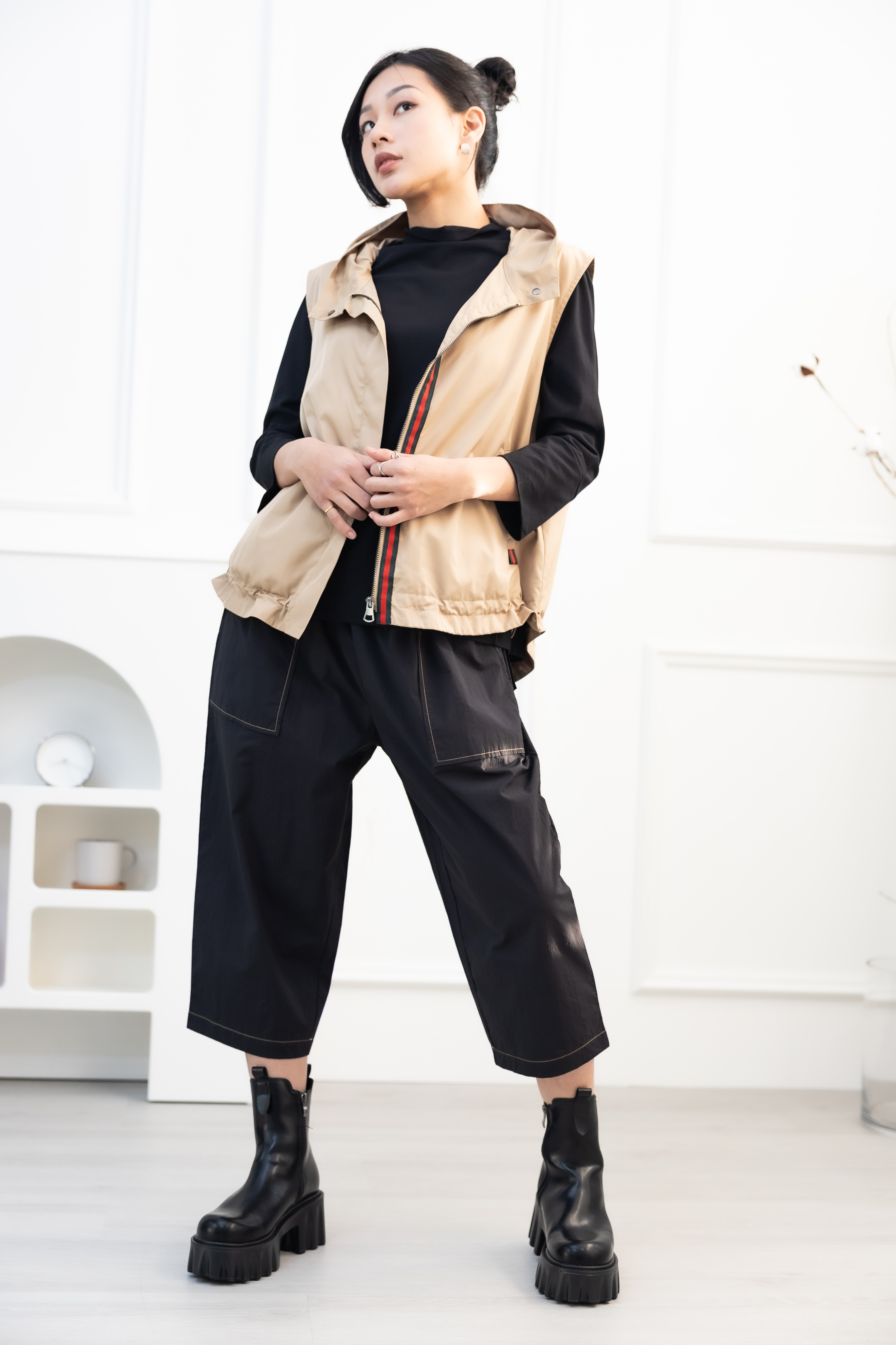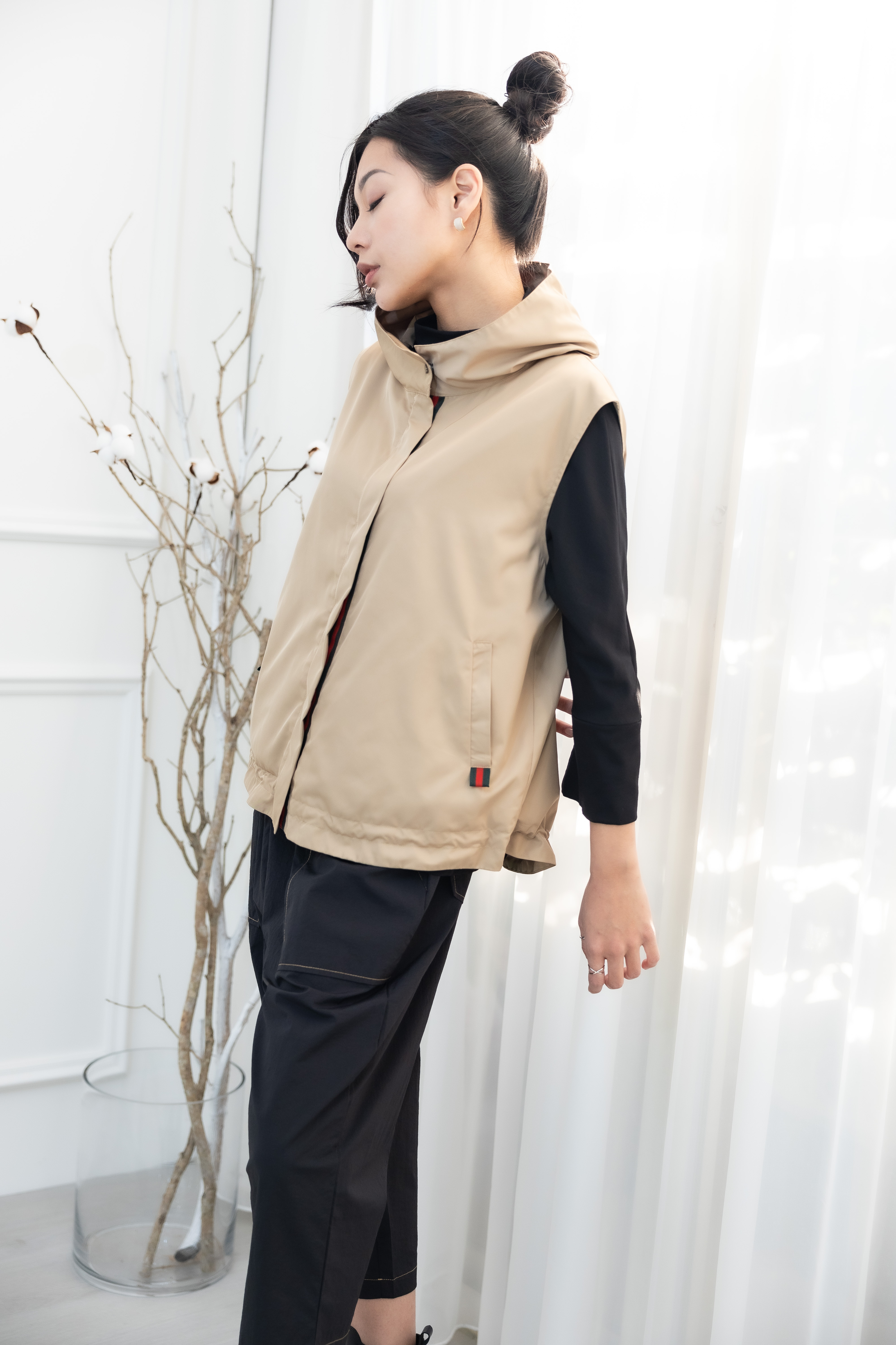 조끼 造型領風衣背心 / 卡其色