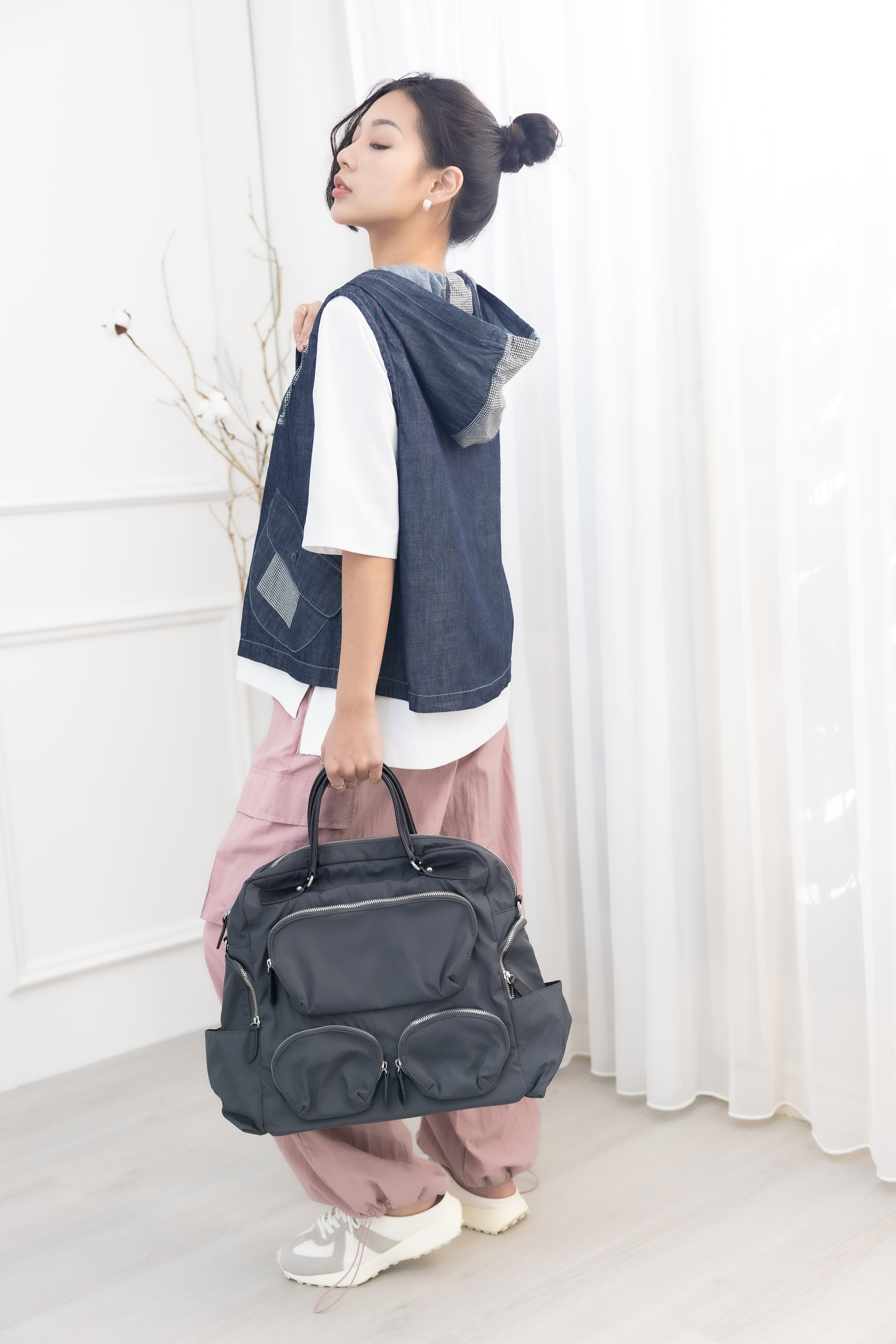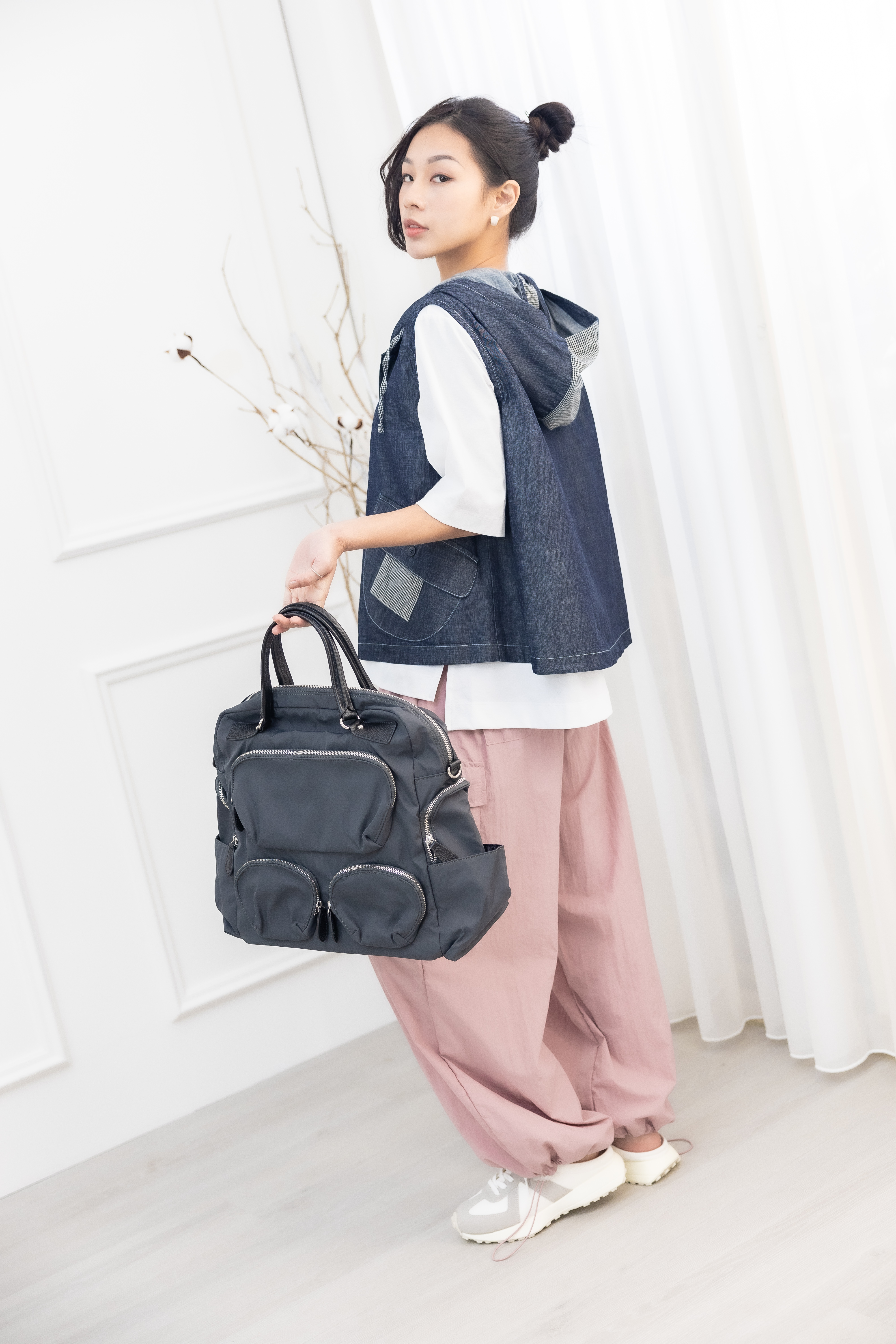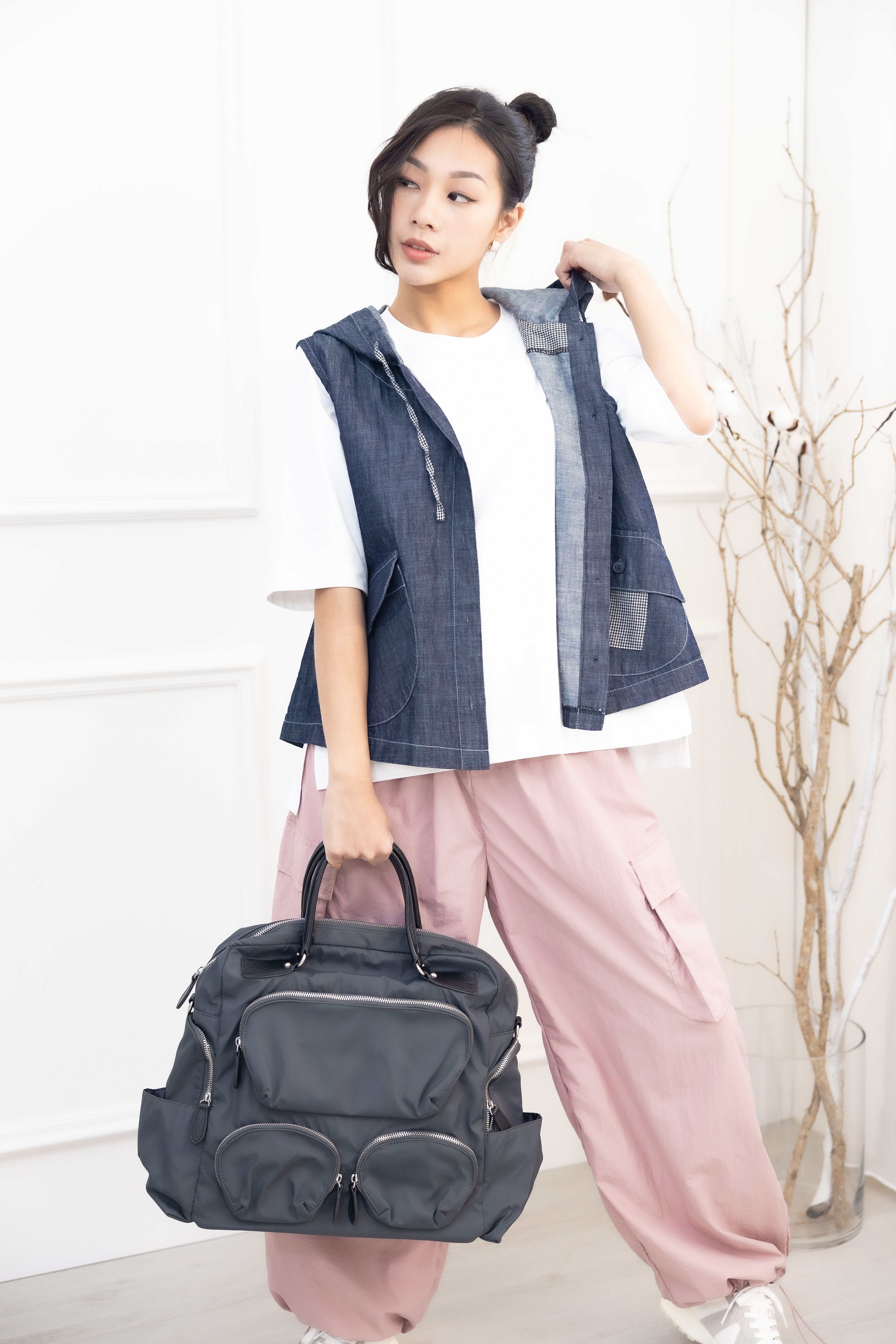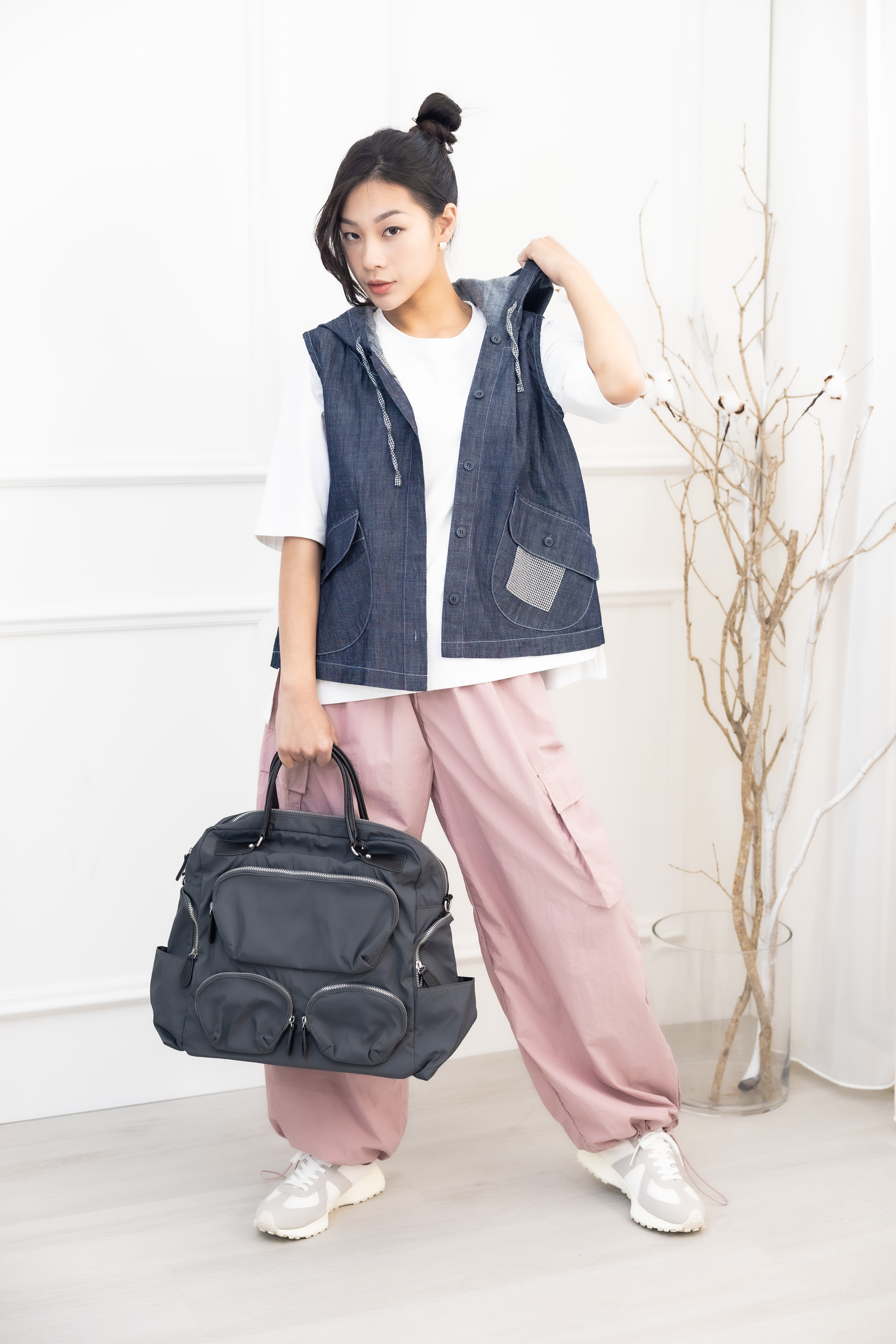 조끼 連帽造型口袋牛仔背心 / 深藍色