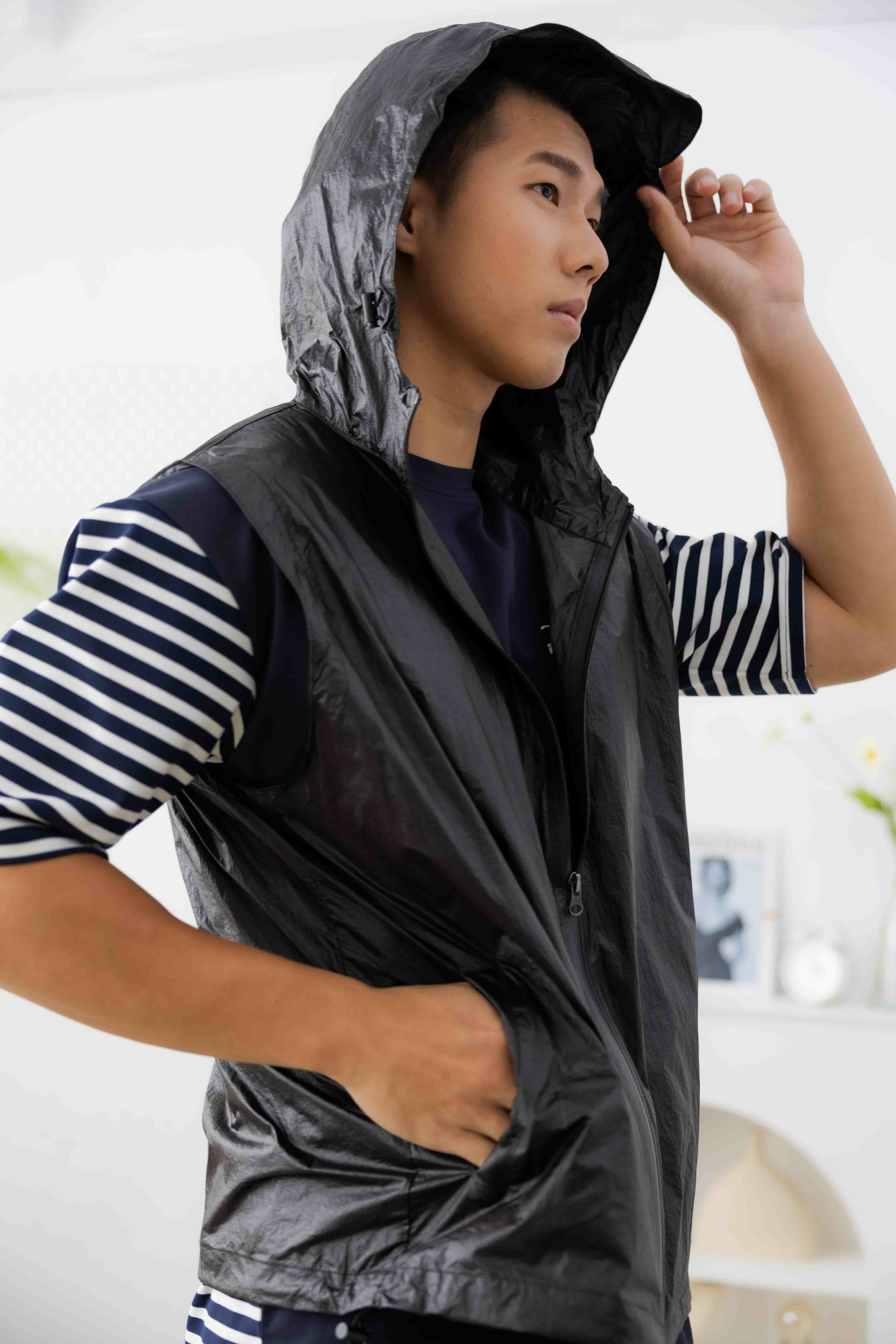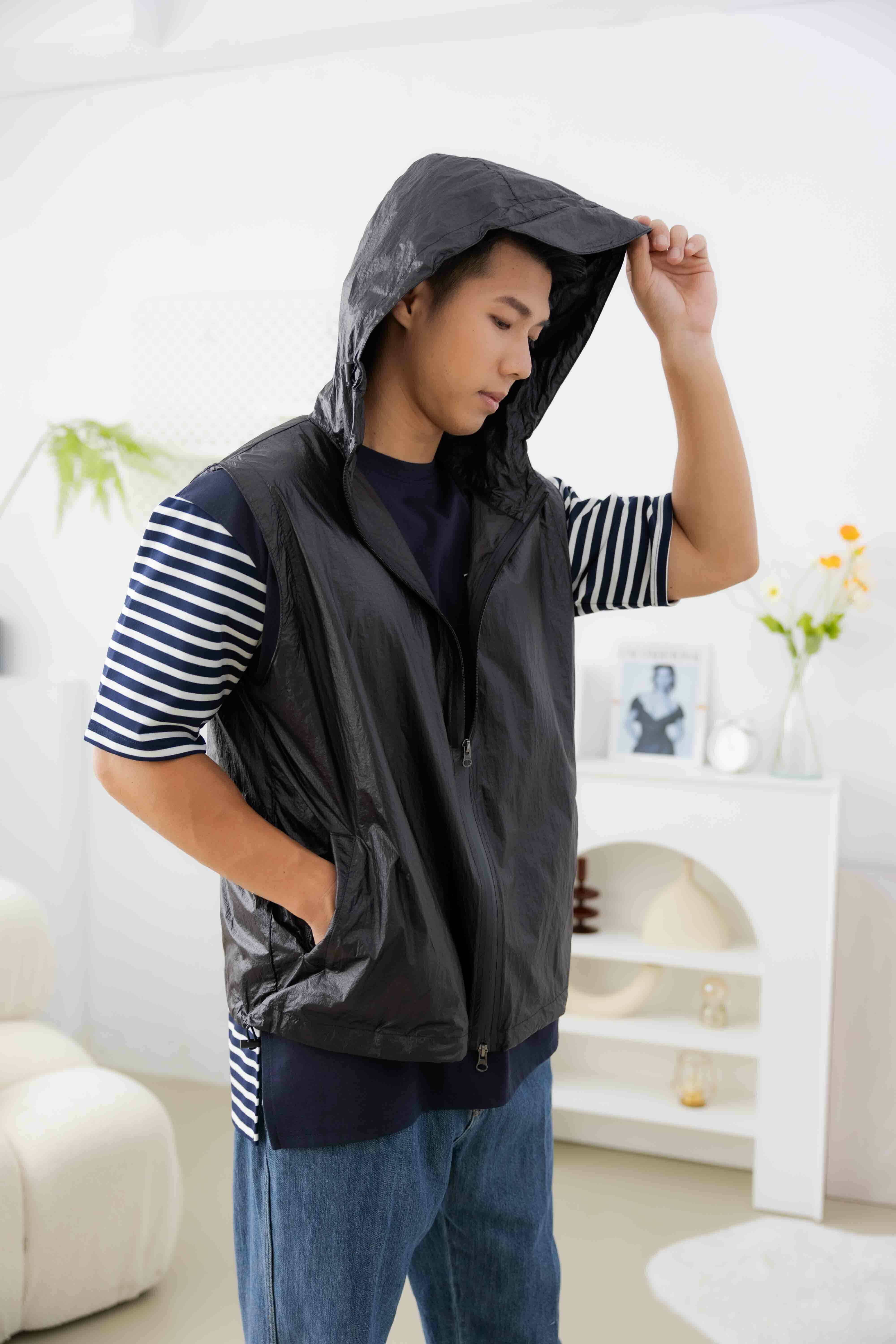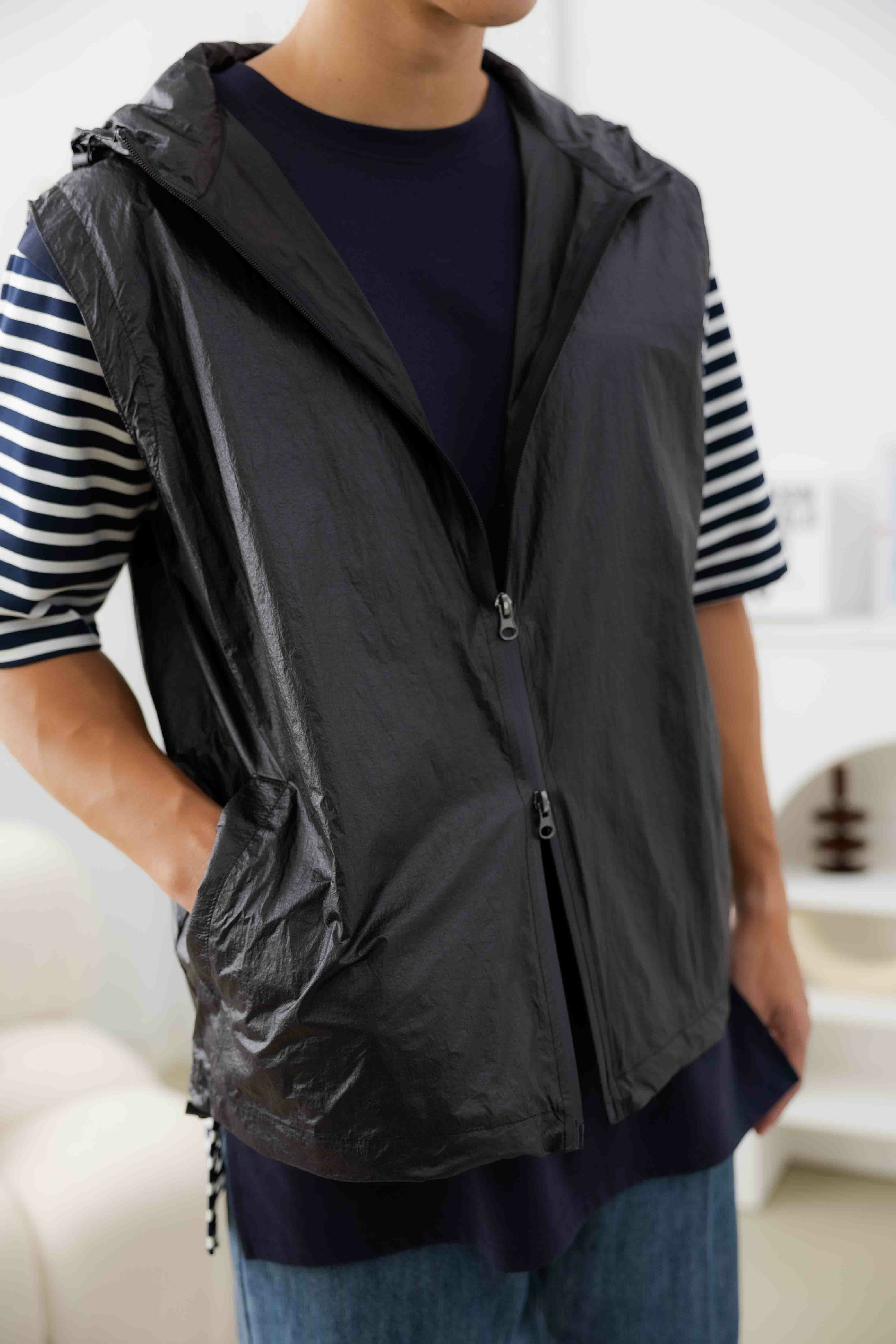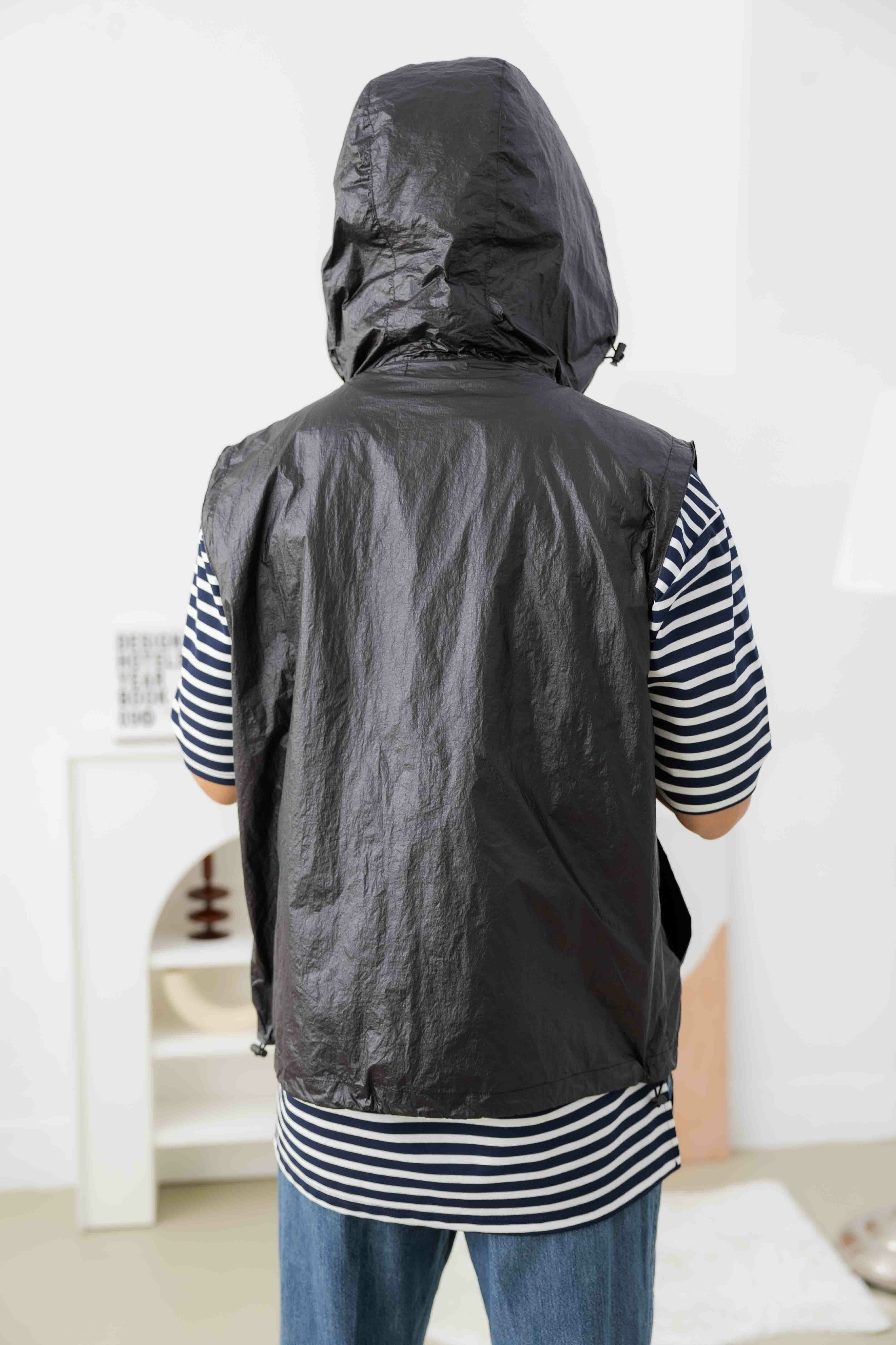 조끼 防潑水輕薄連帽背心/黑色