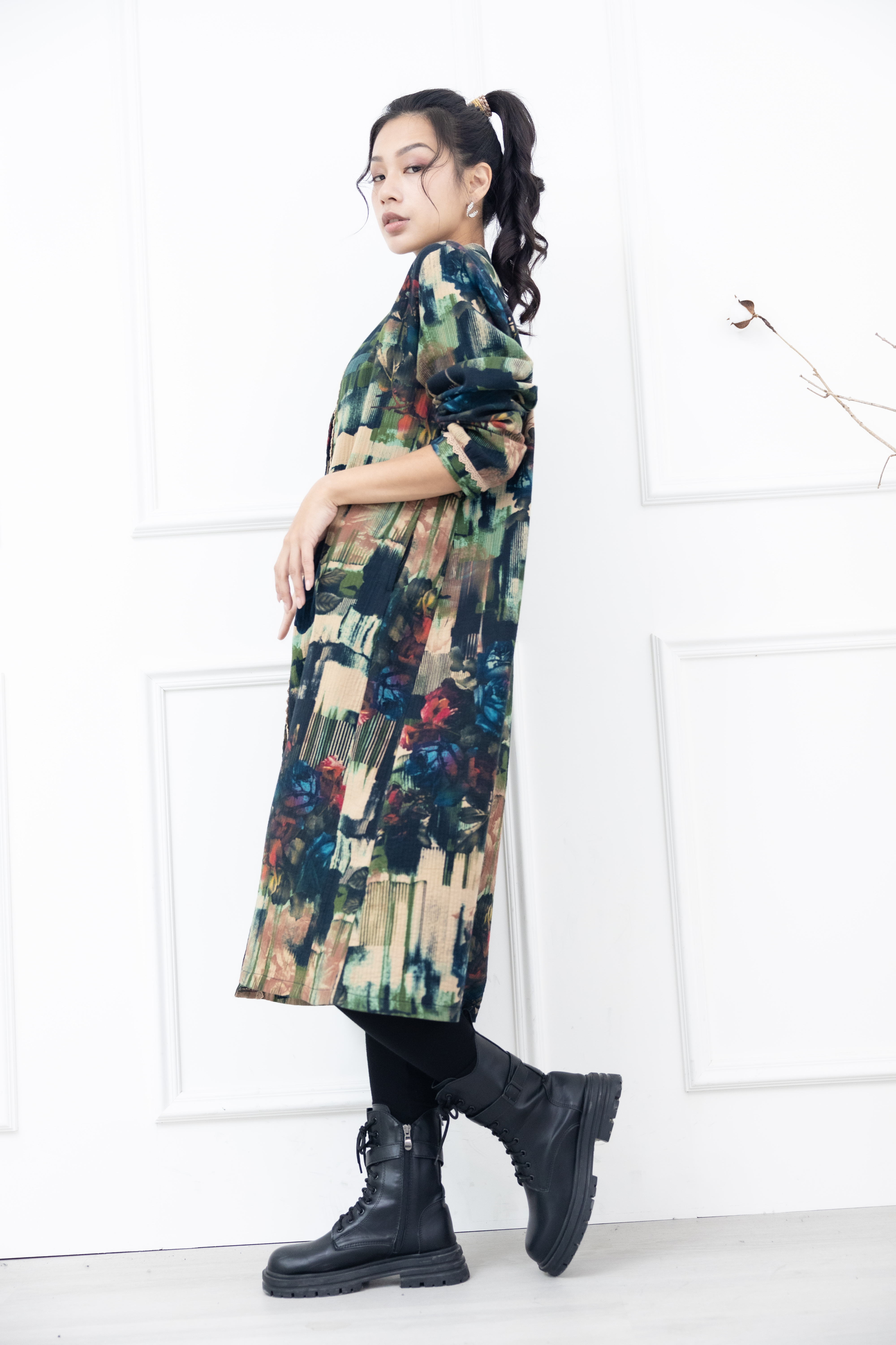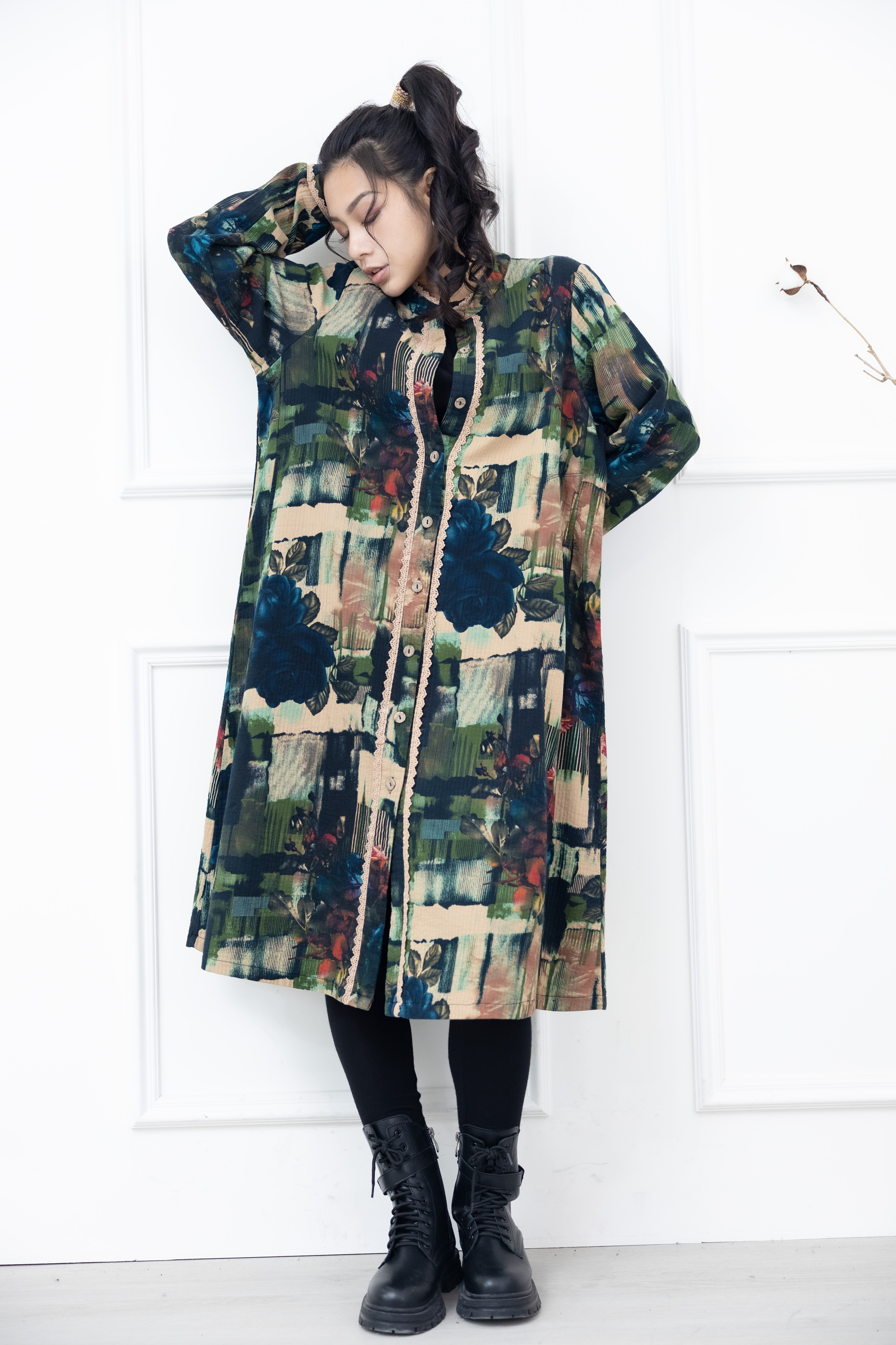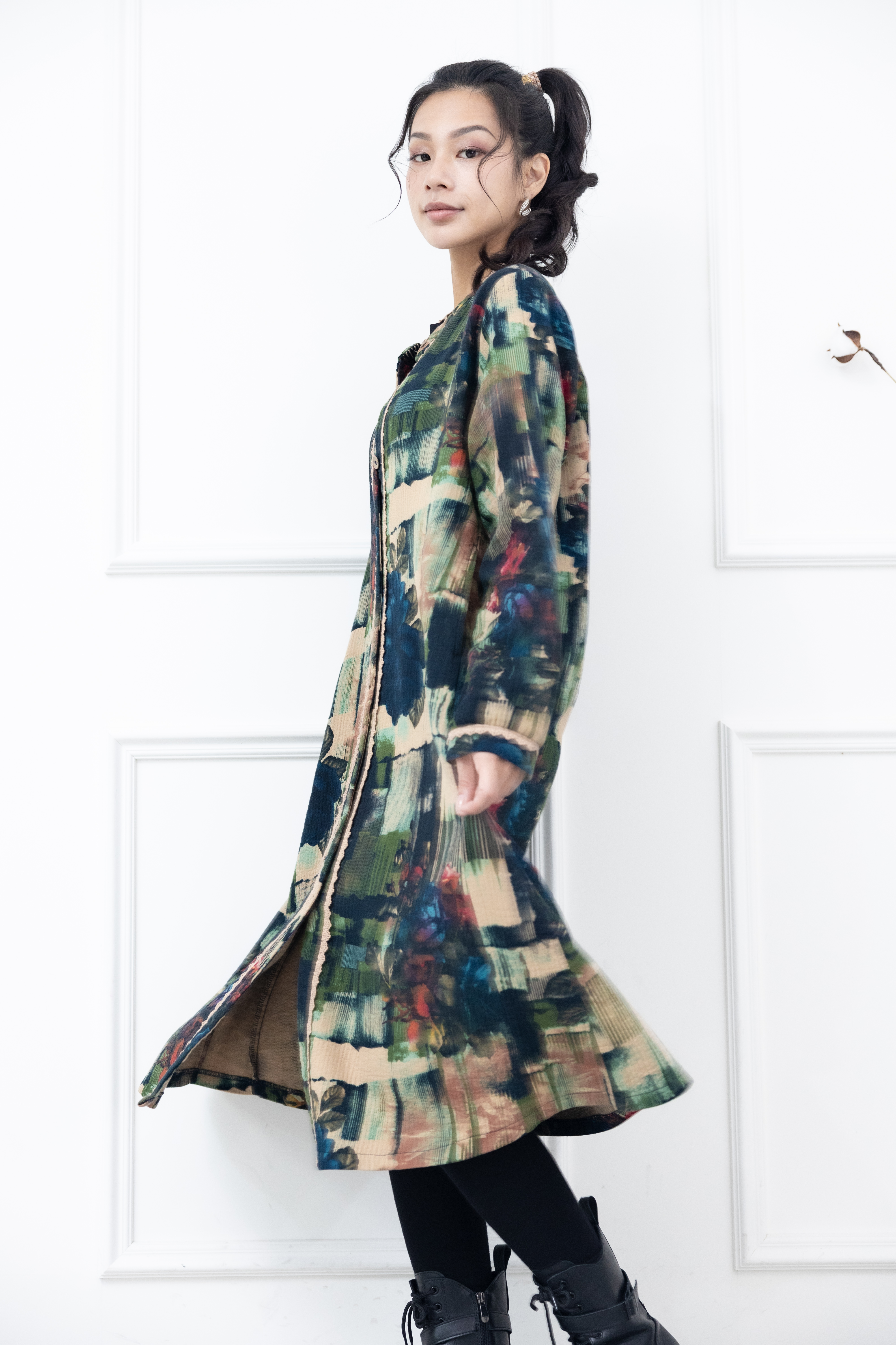 코트 中山領布蕾絲滾邊外套 / 幾何色塊大藍玫瑰
