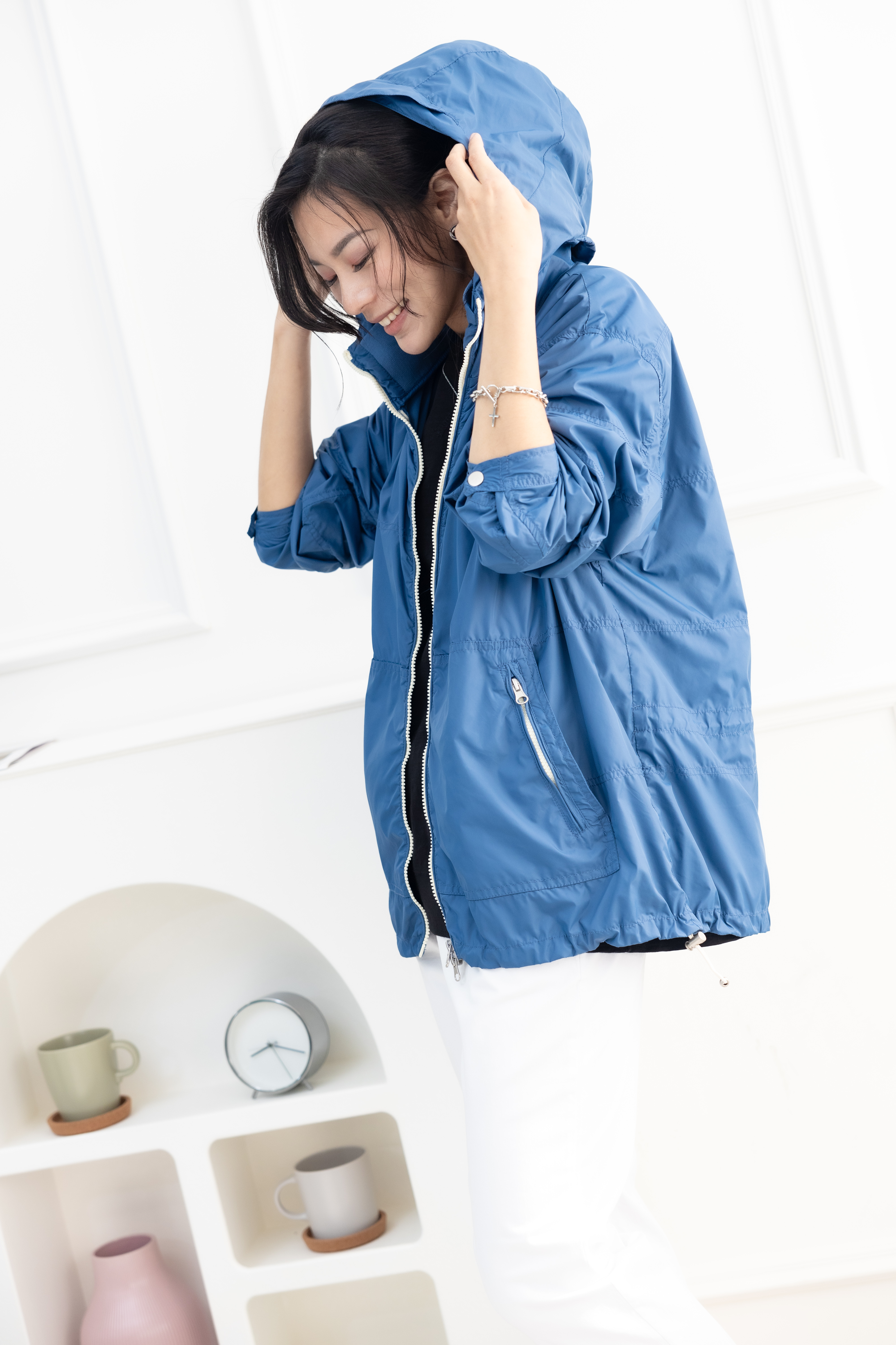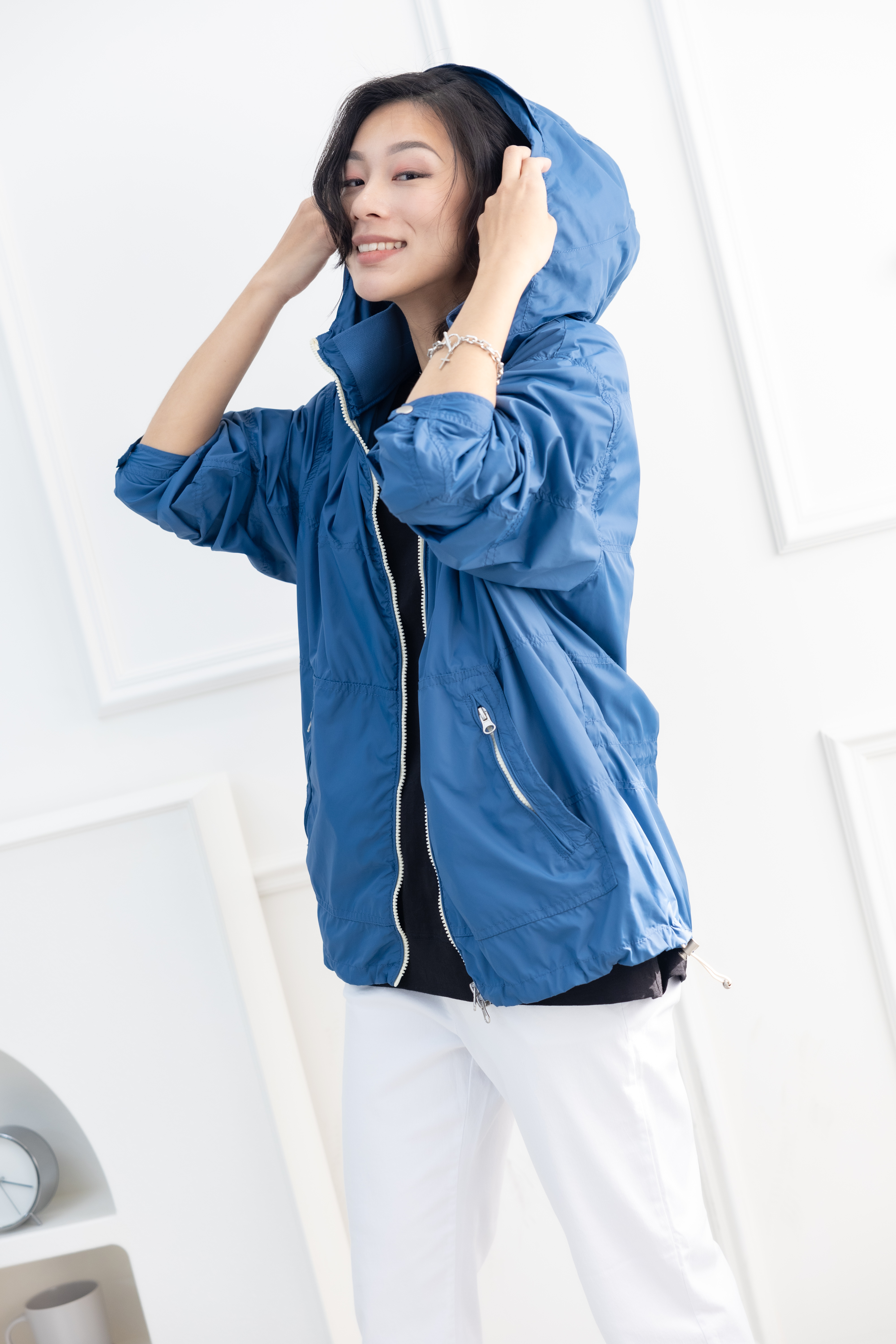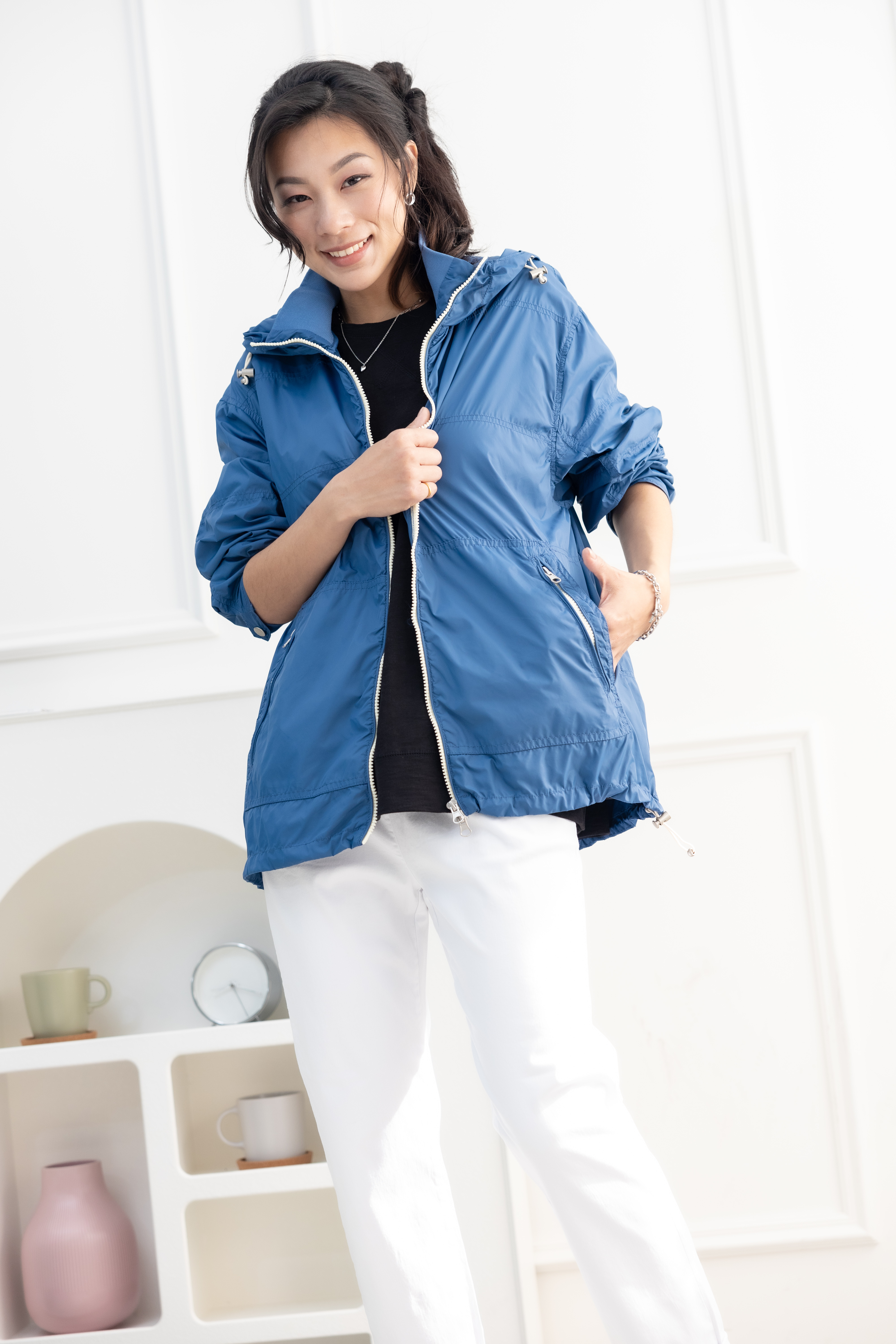코트 多層次連帽長袖外套 / 藍色