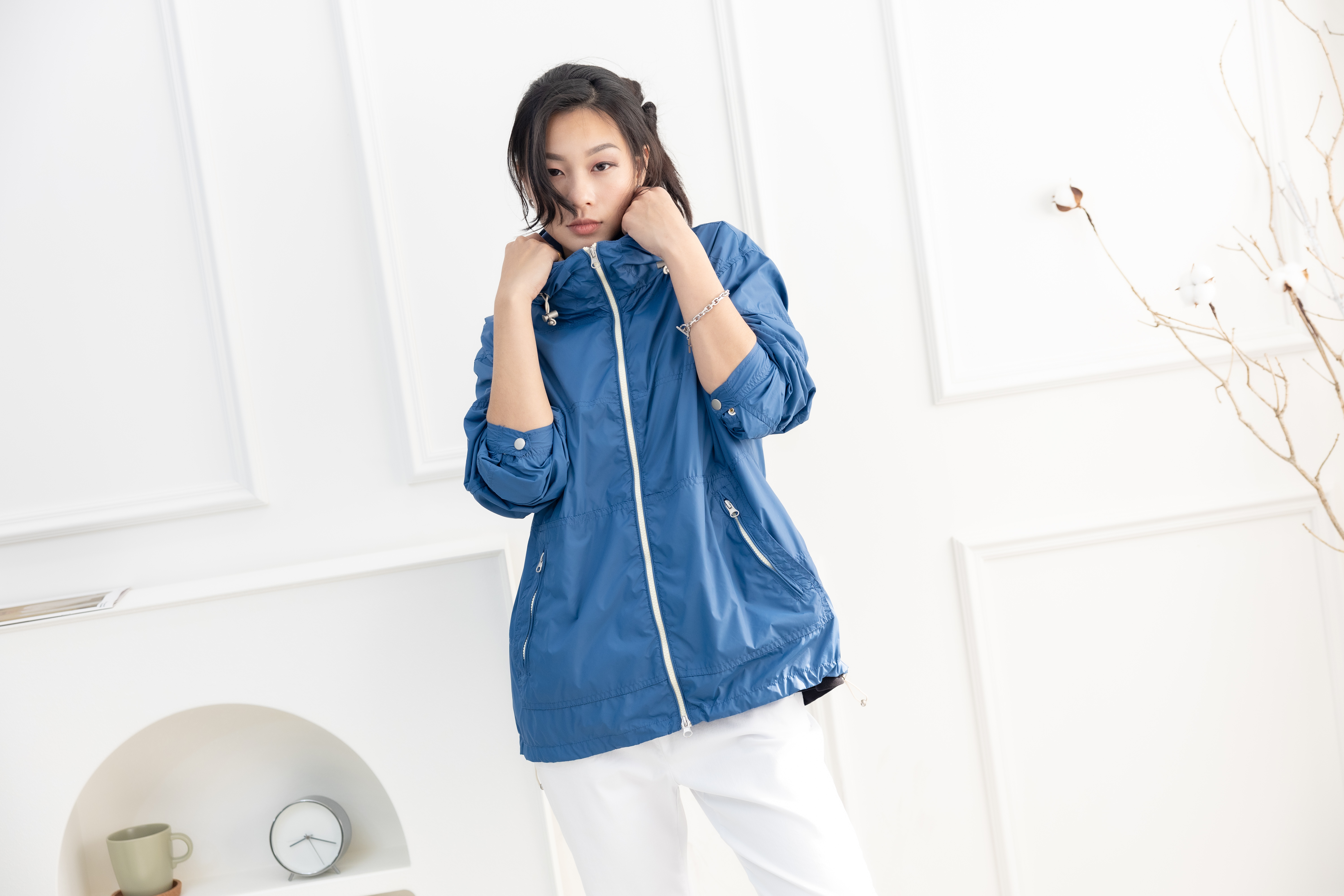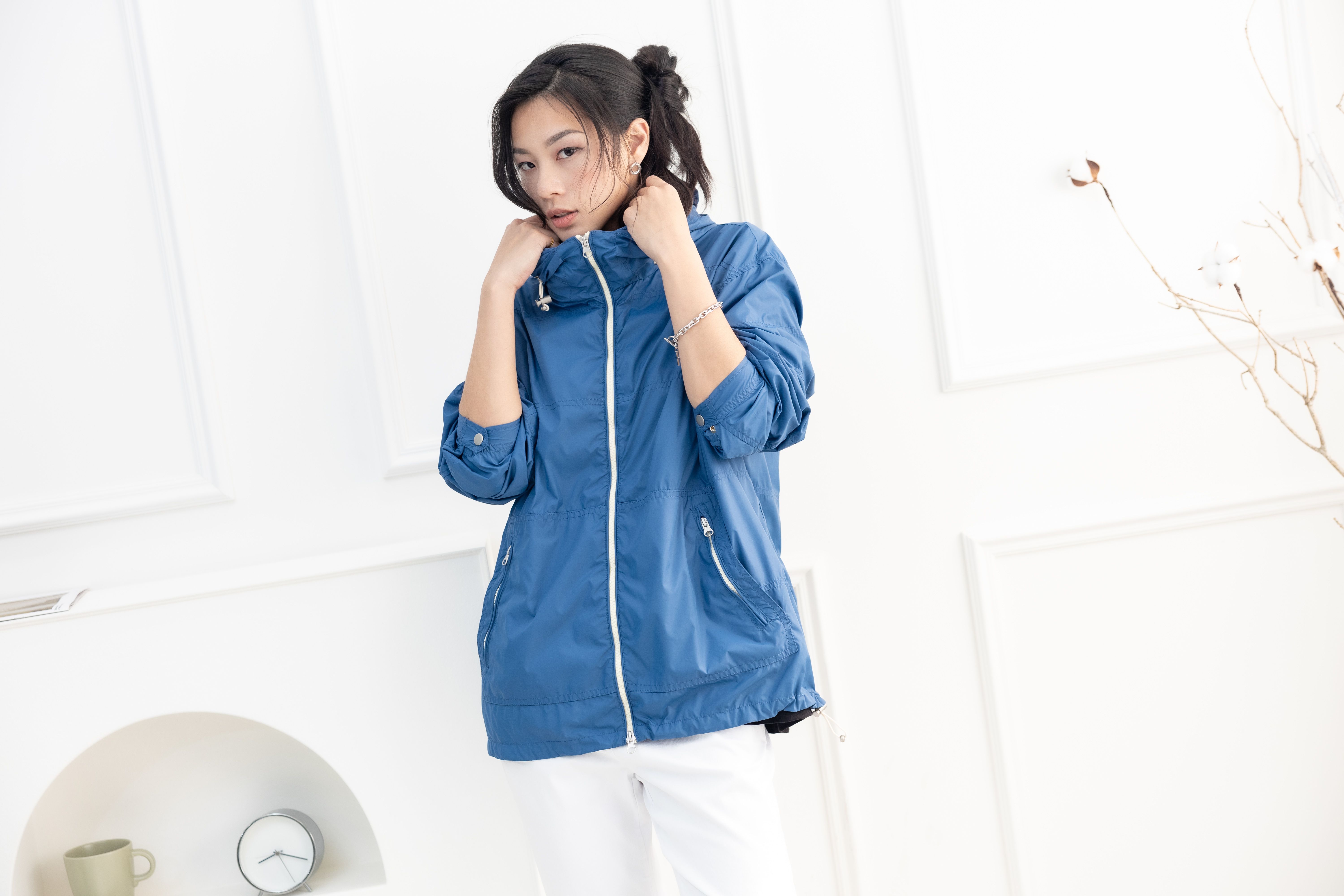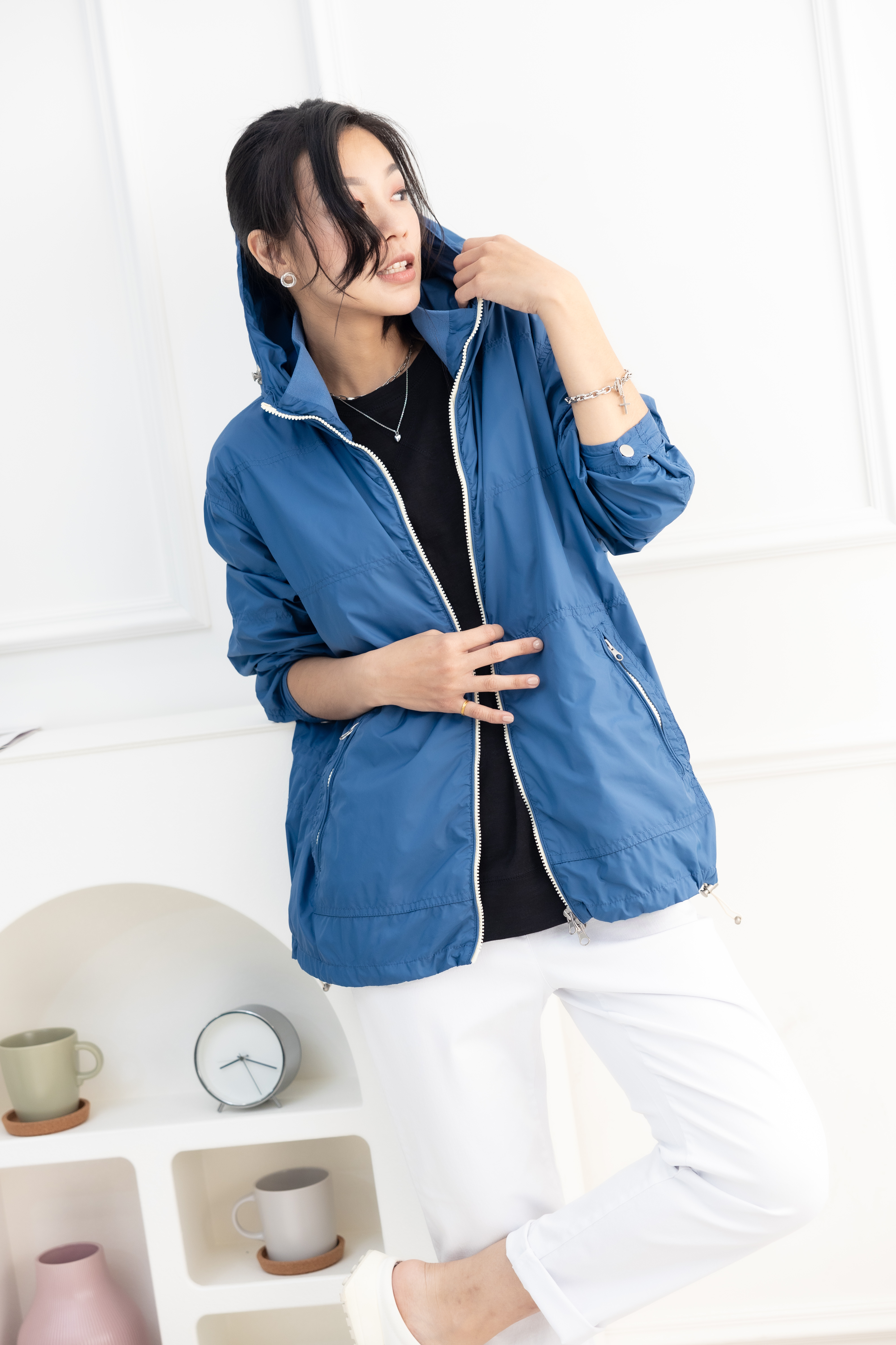 코트 多層次連帽長袖外套 / 藍色