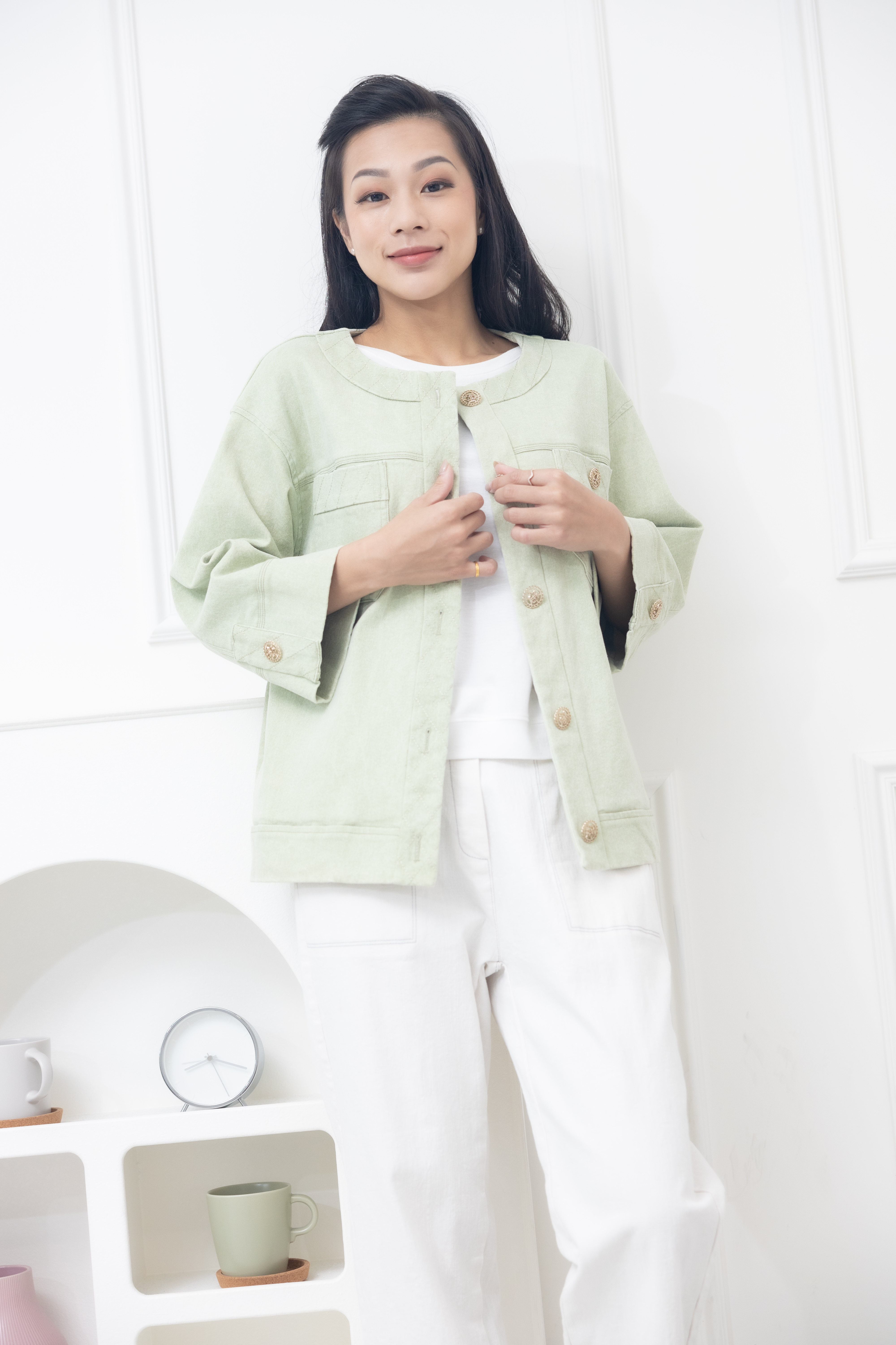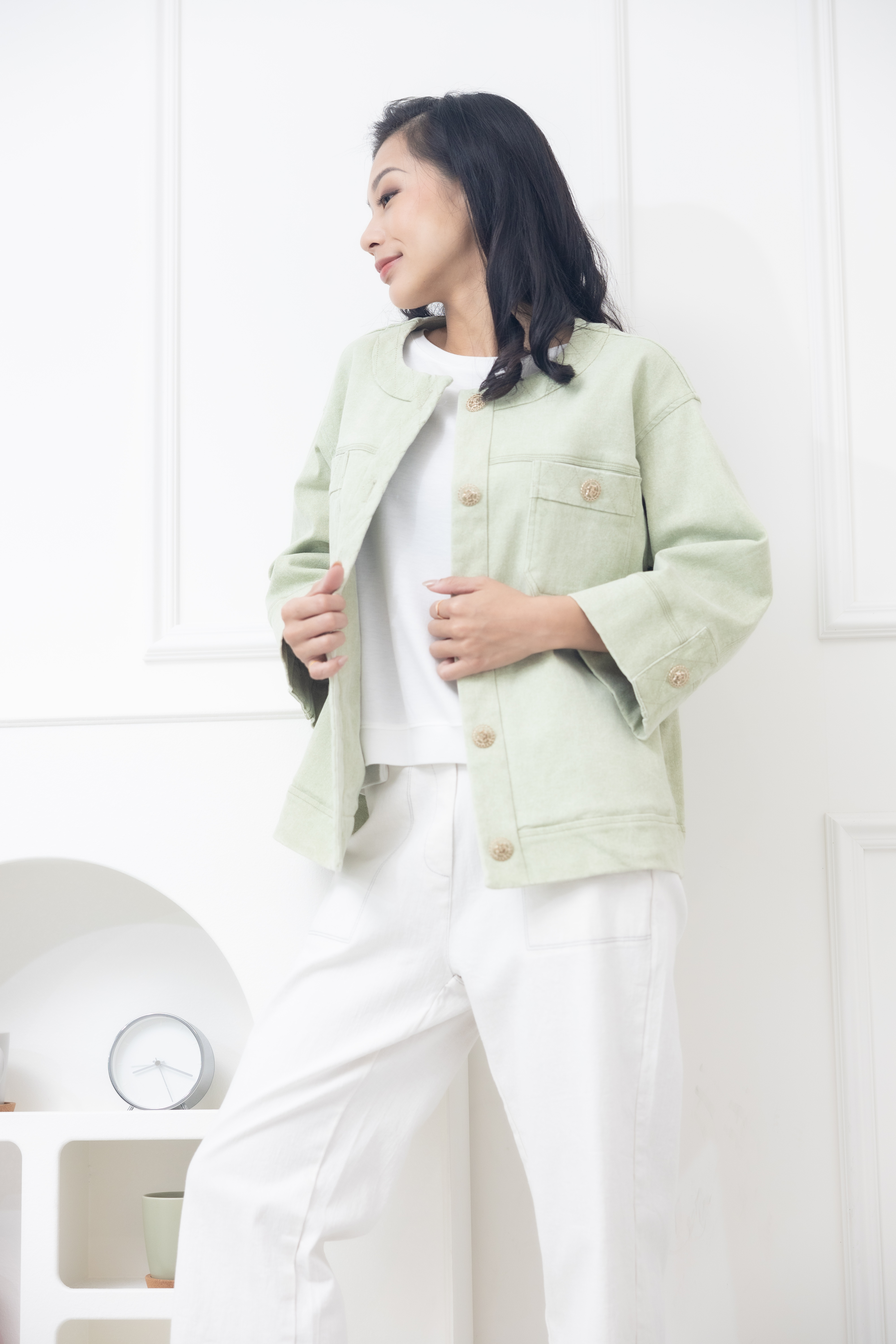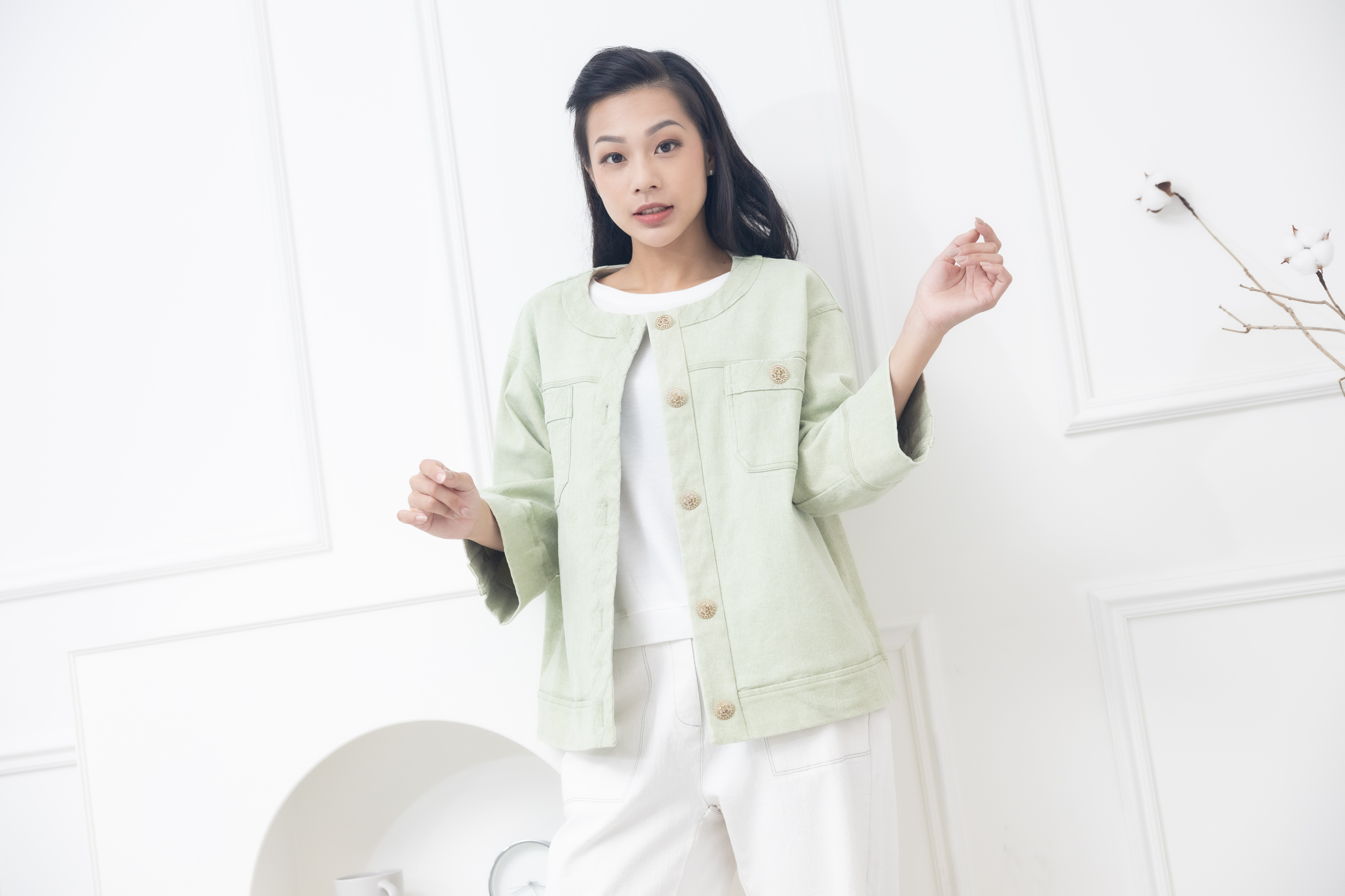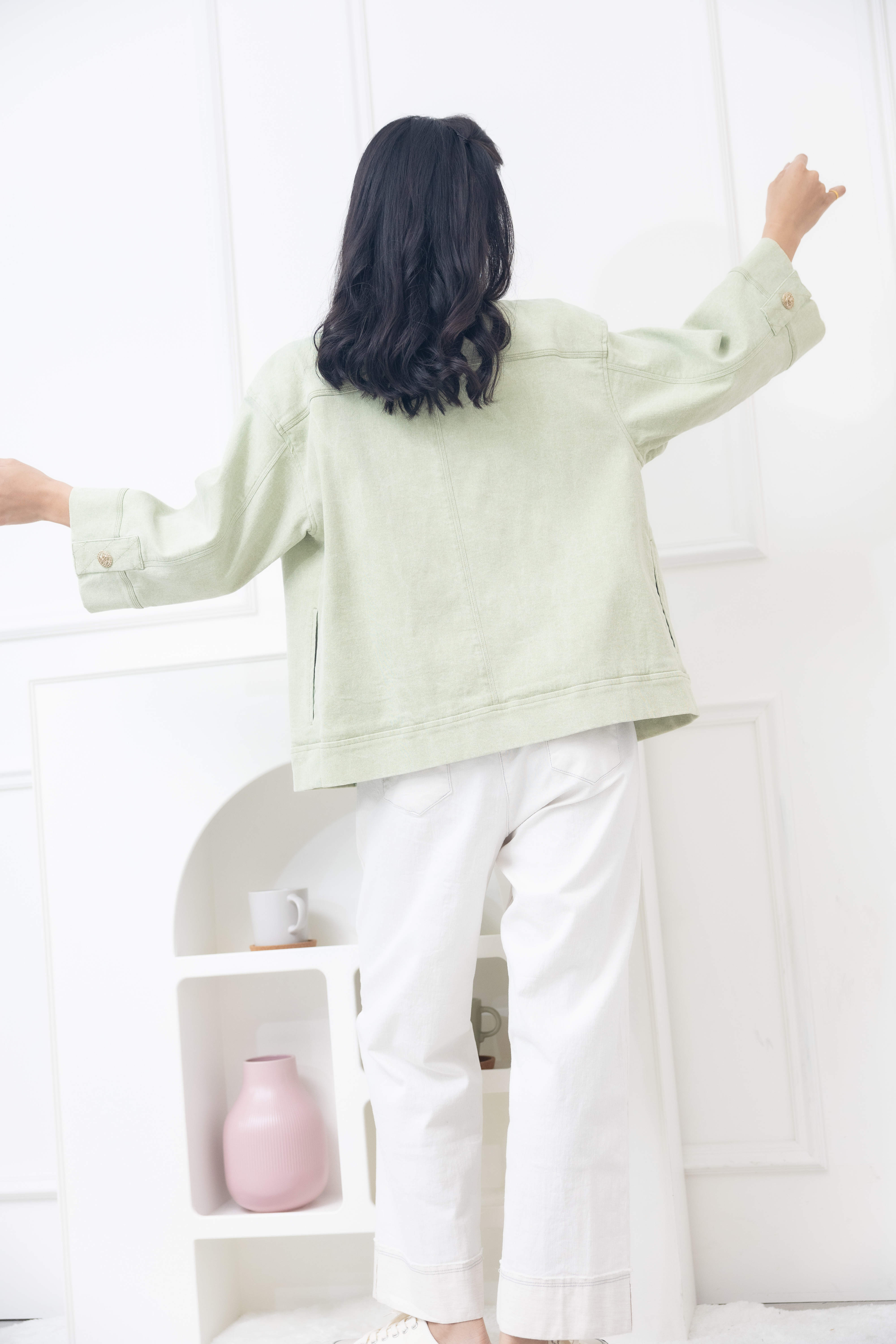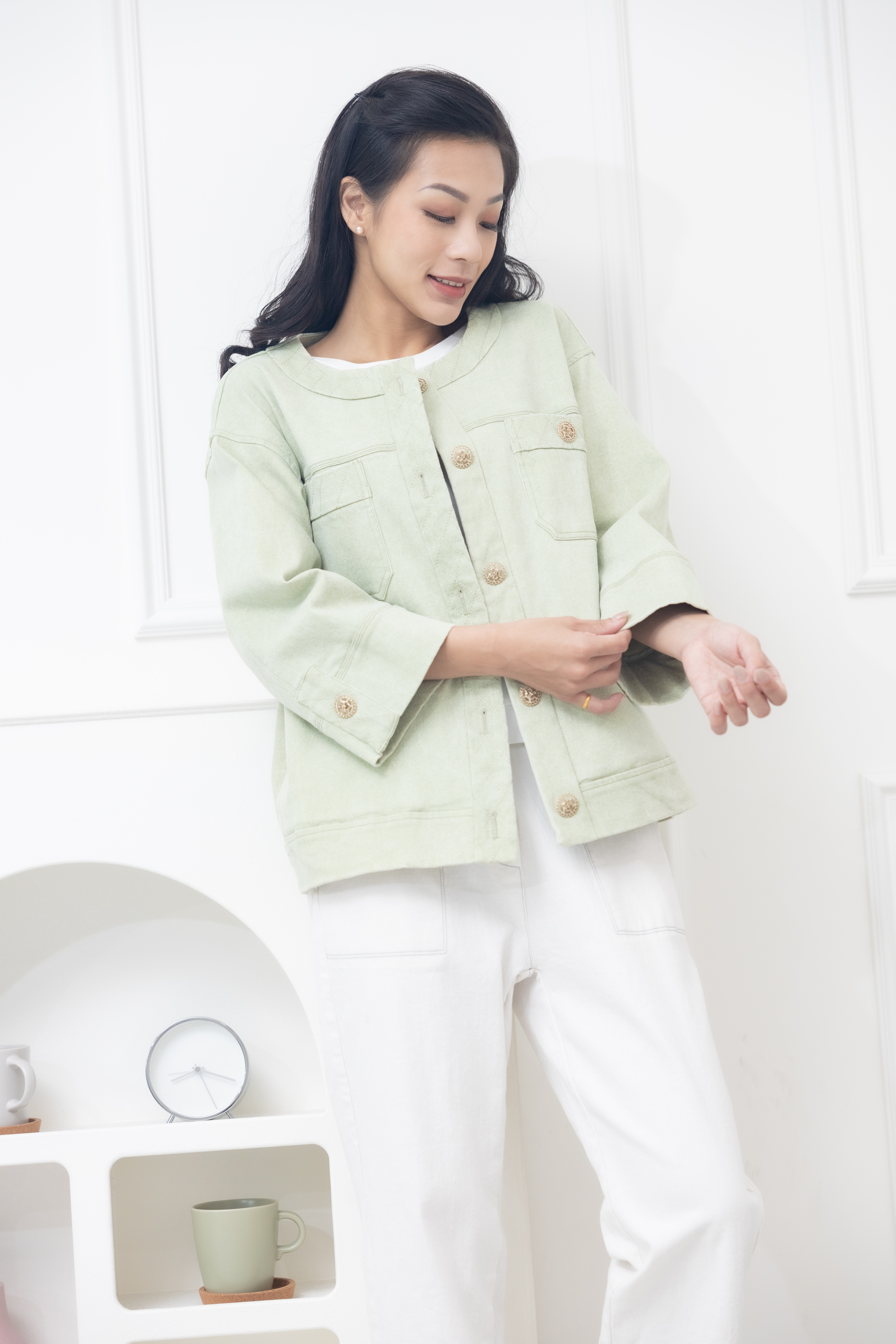 코트 大鈕扣胸兩側口袋外套 / 蘋果綠色