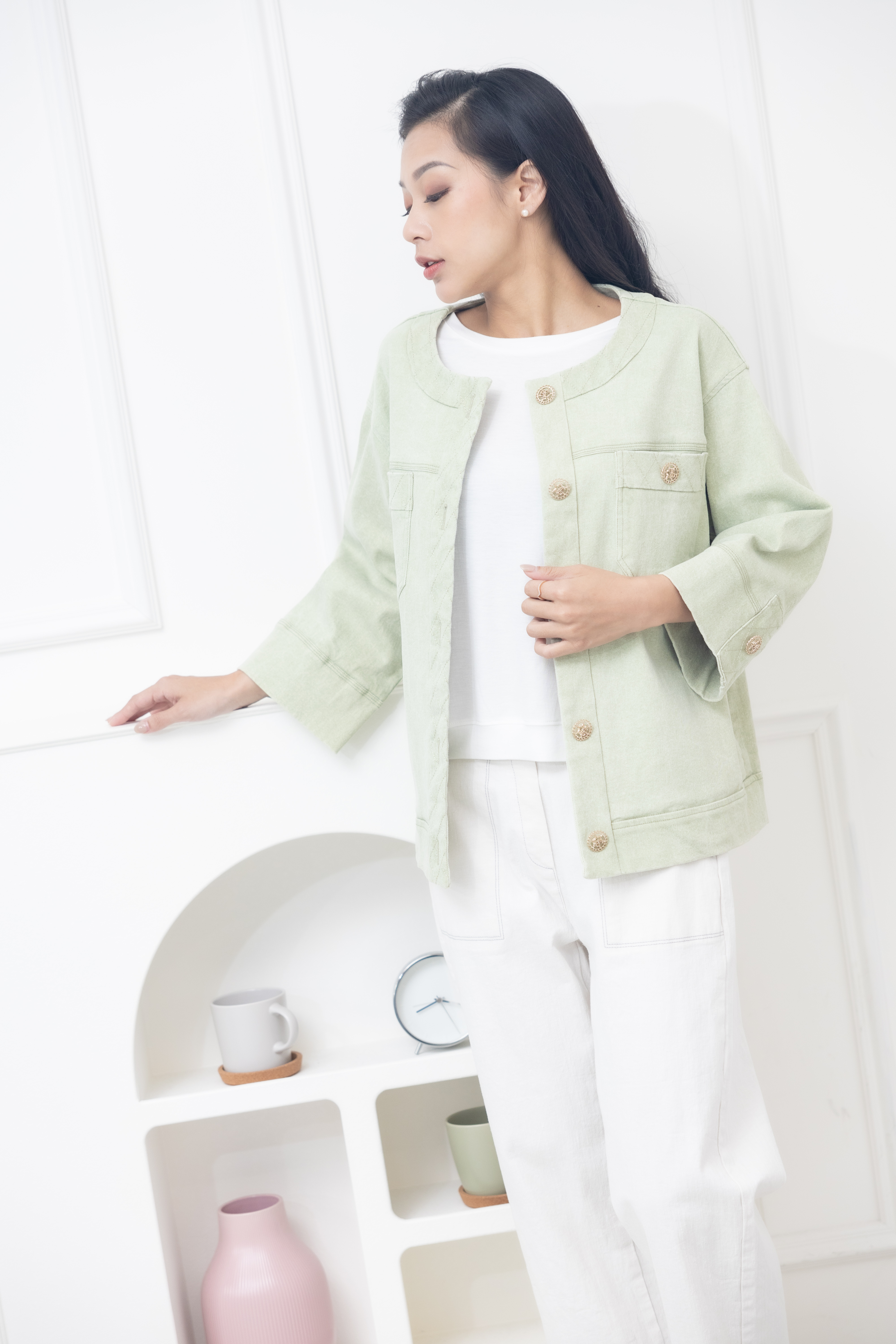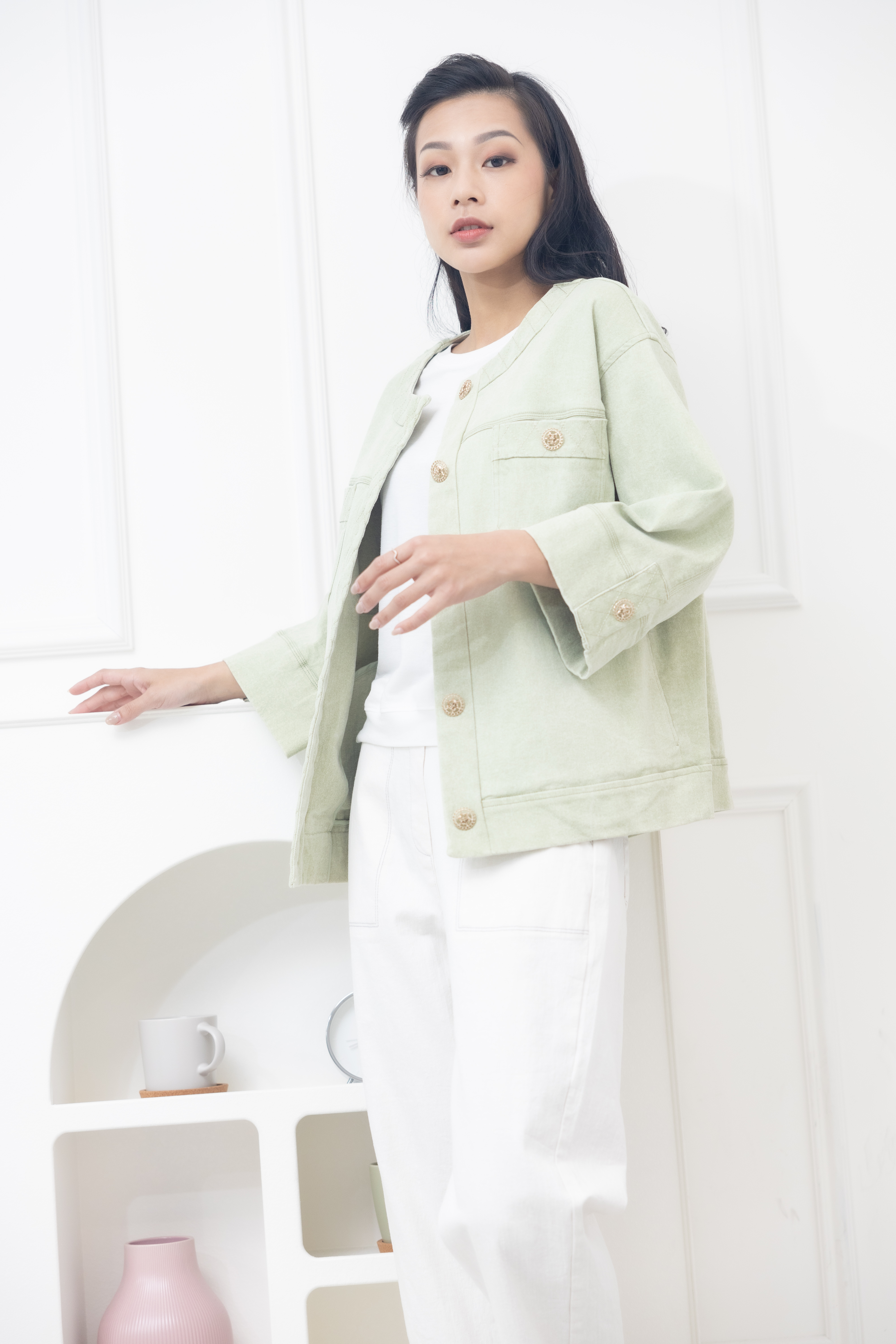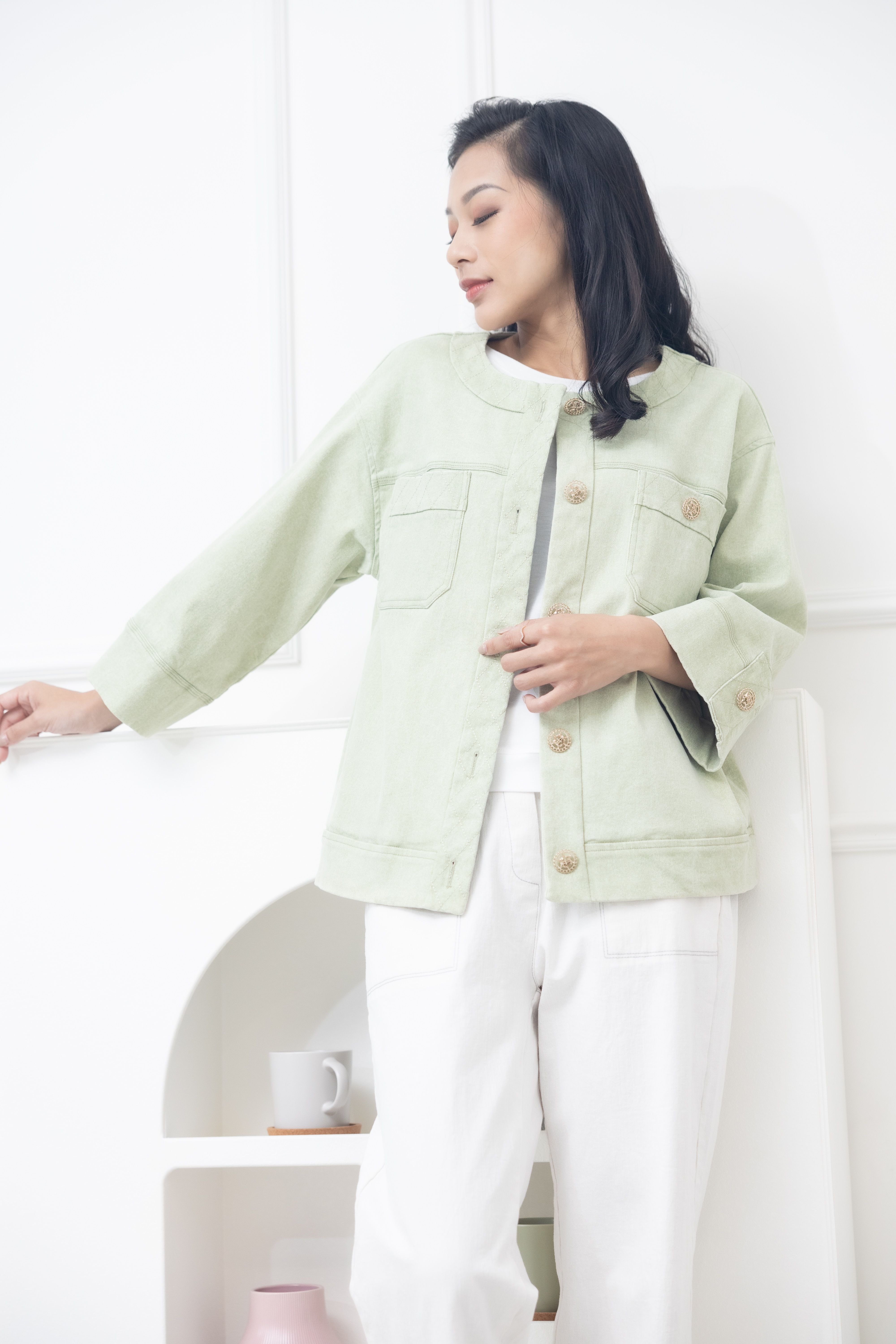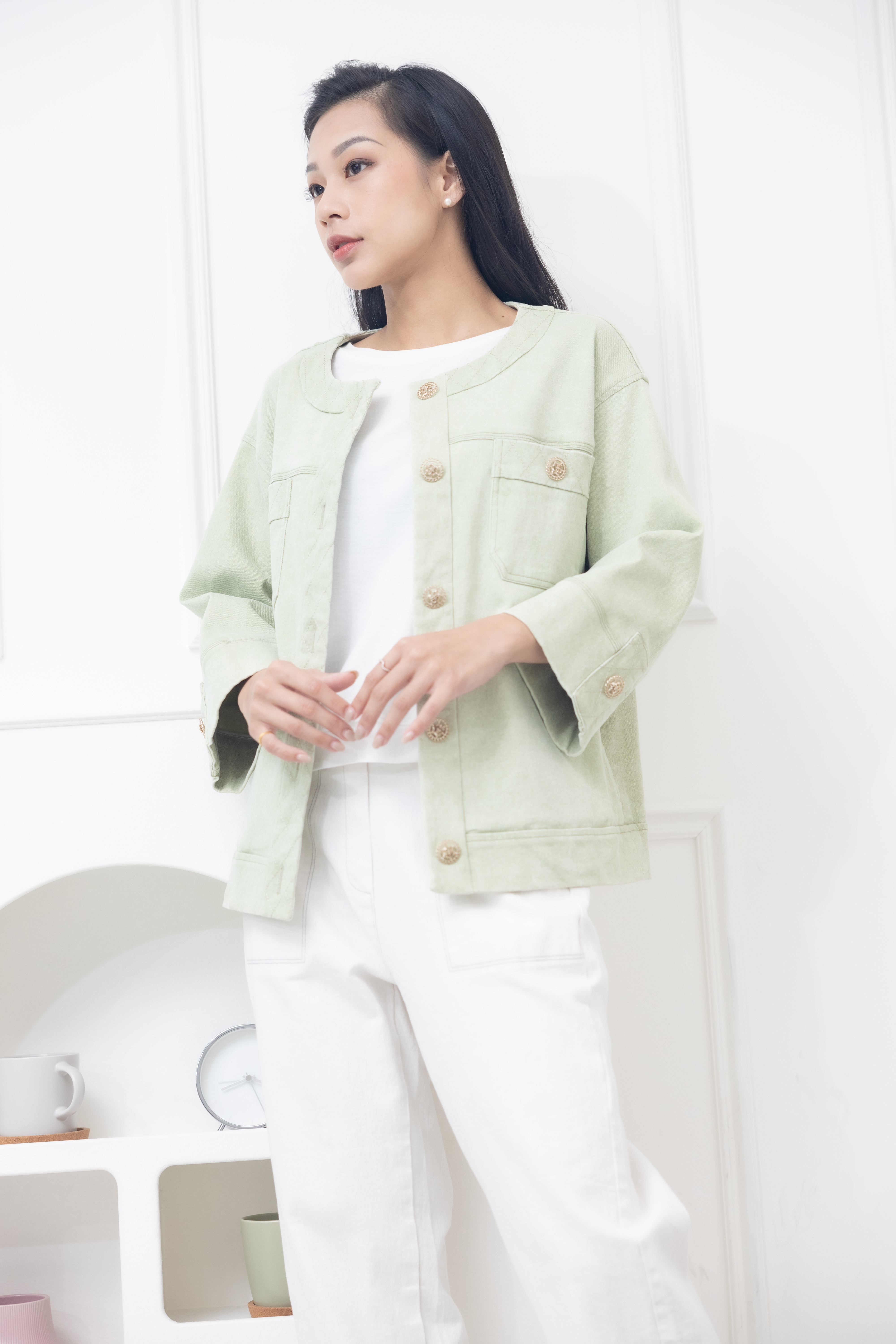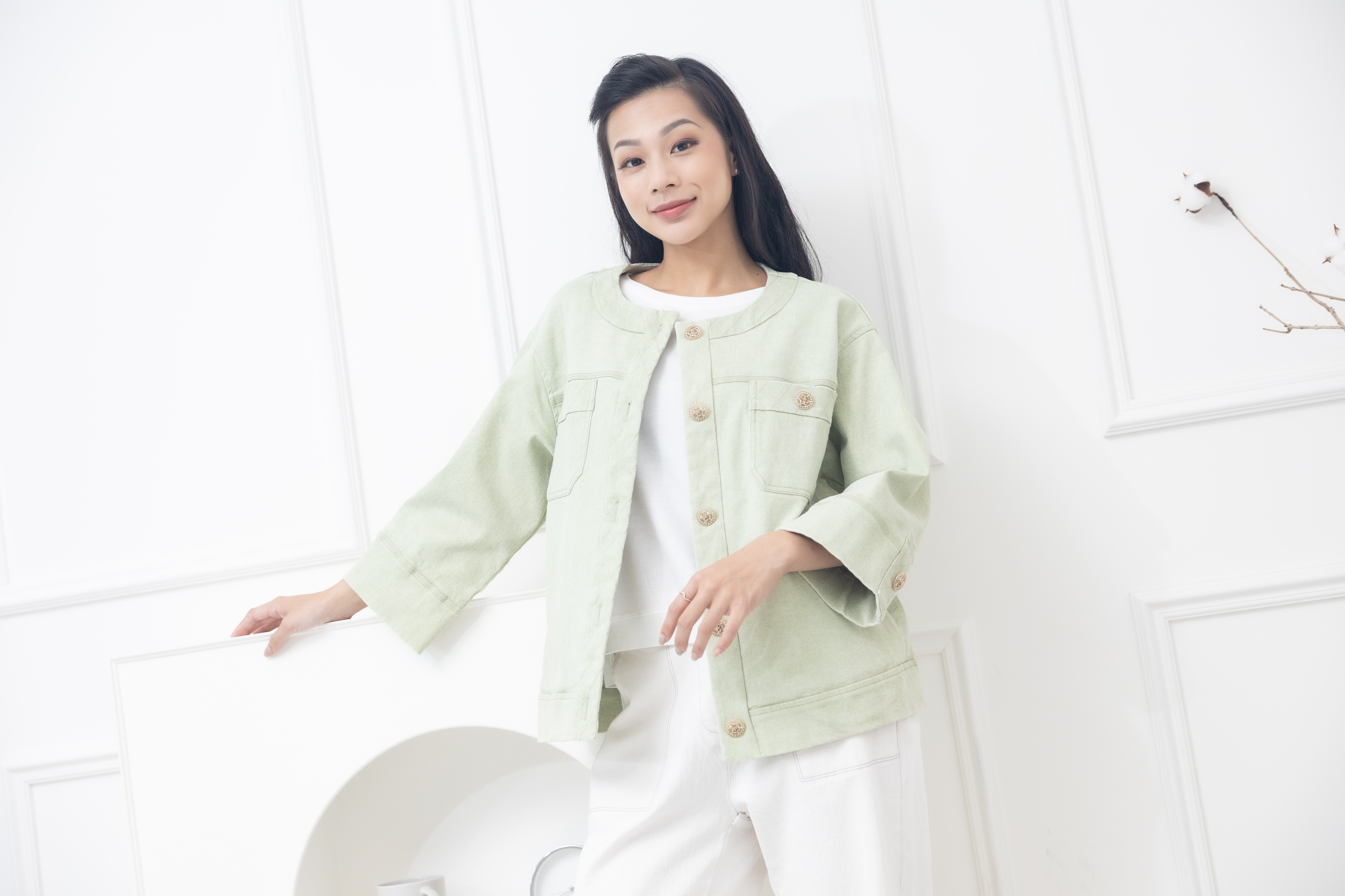 코트 大鈕扣胸兩側口袋外套 / 蘋果綠色