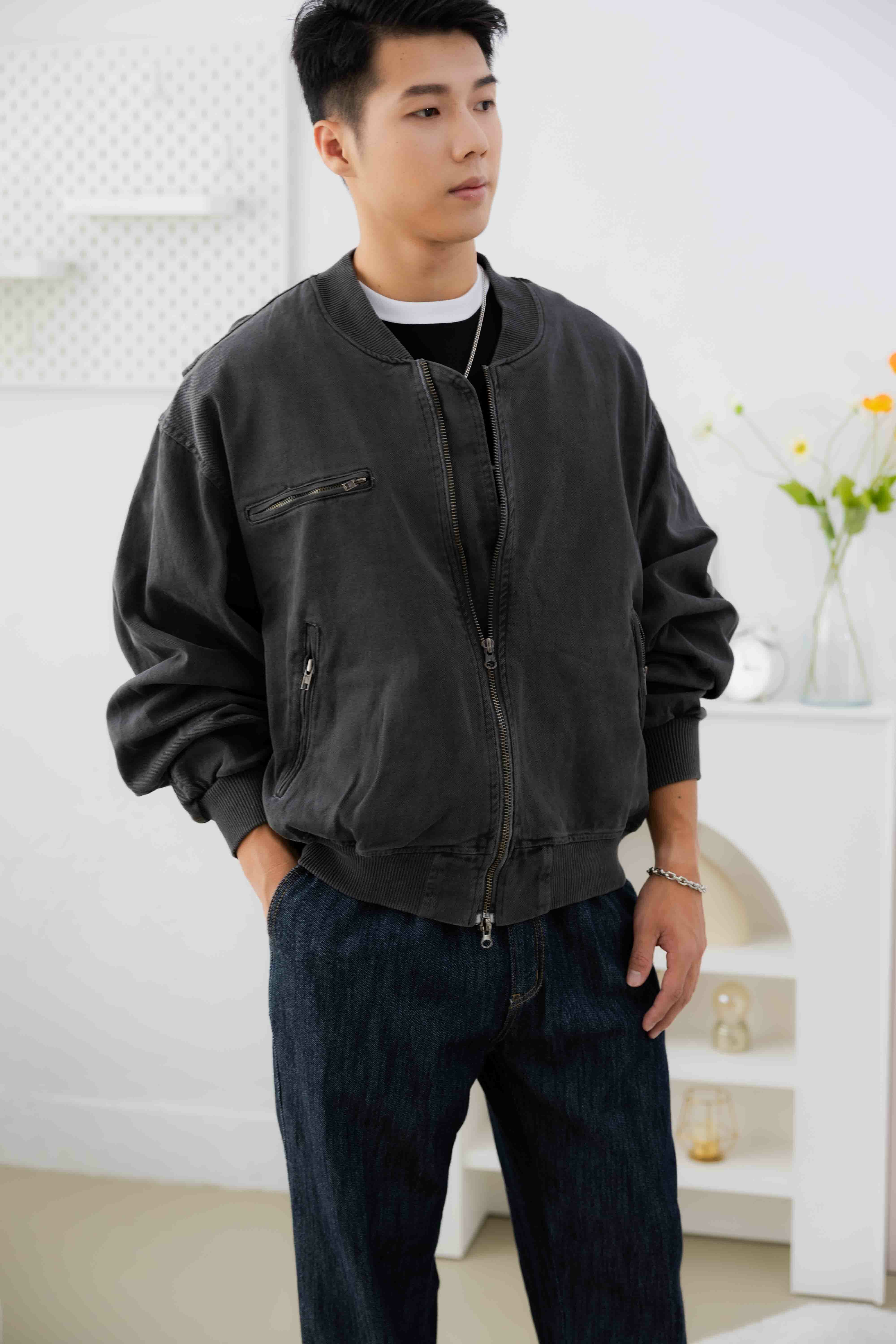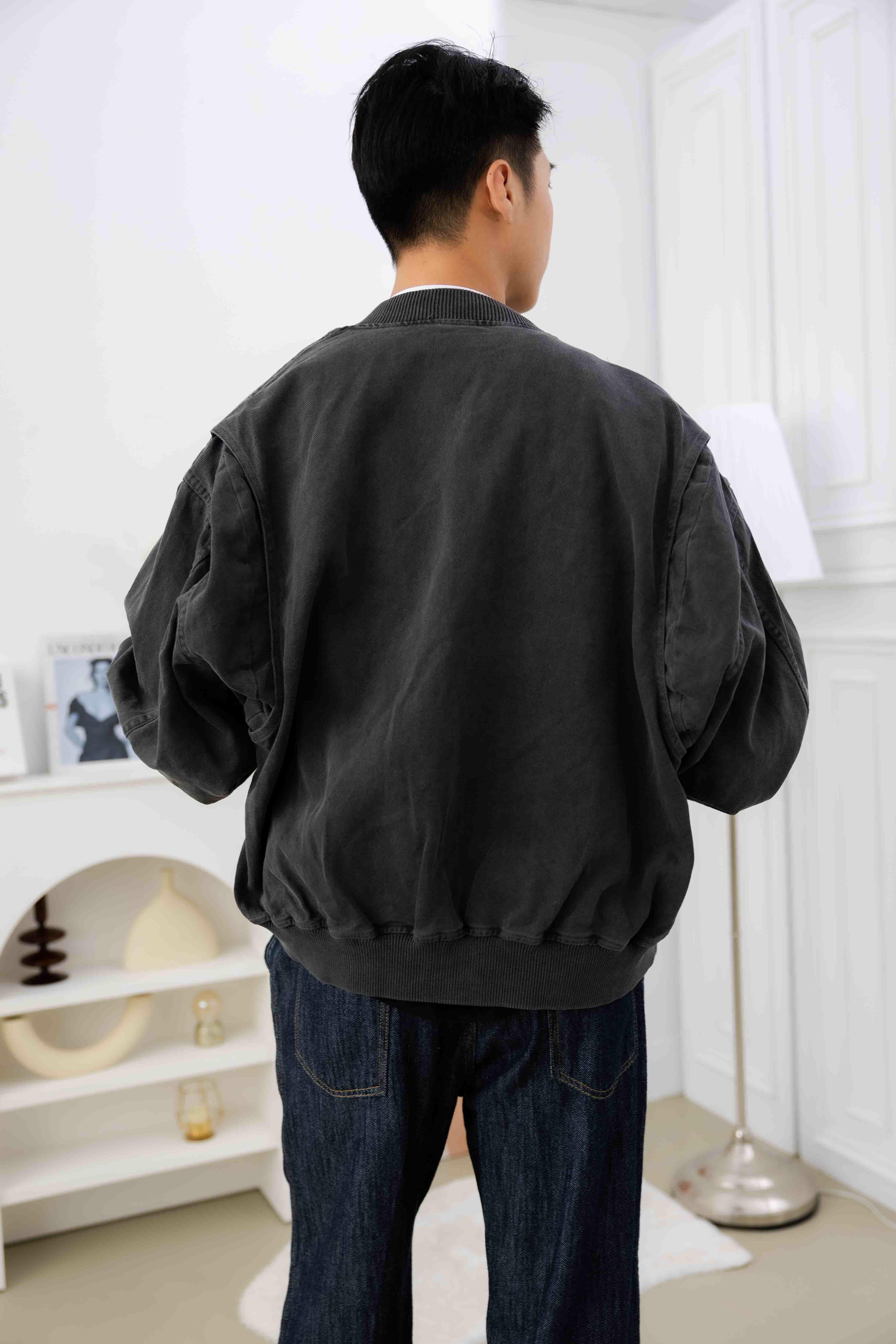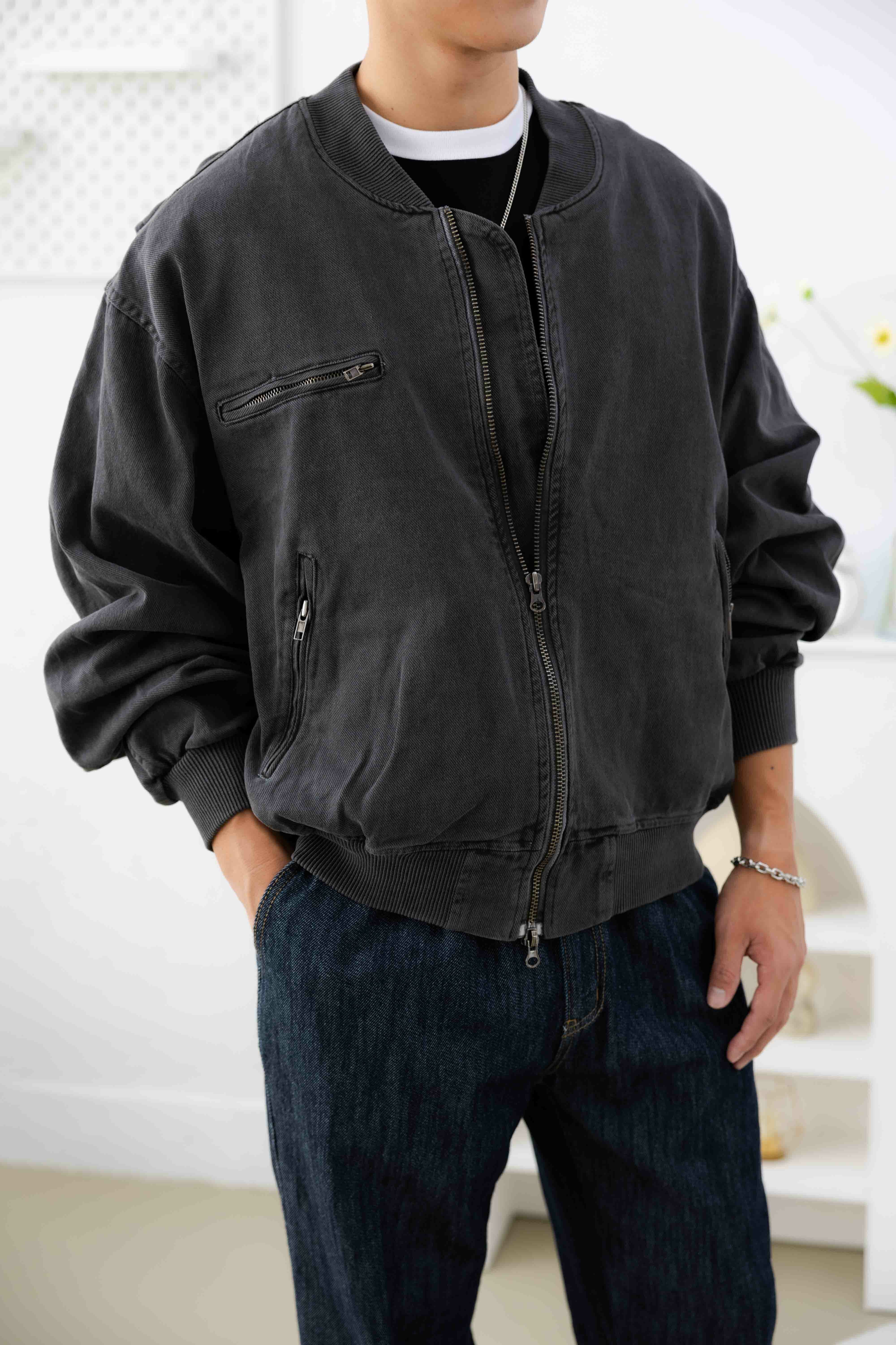 코트 立領羅紋長袖外套/深灰色