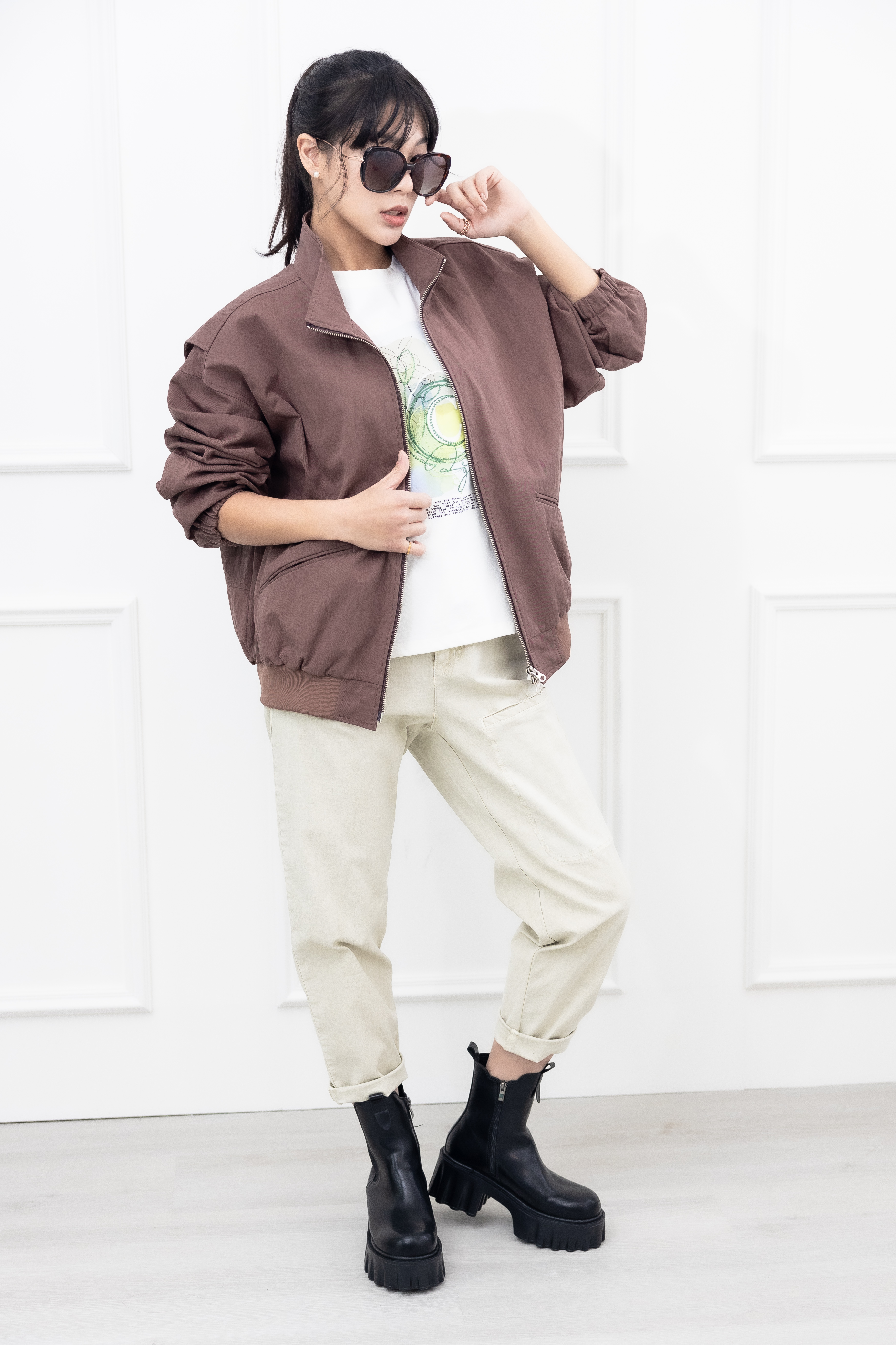 코트 肩線設計長袖外套/咖啡色
