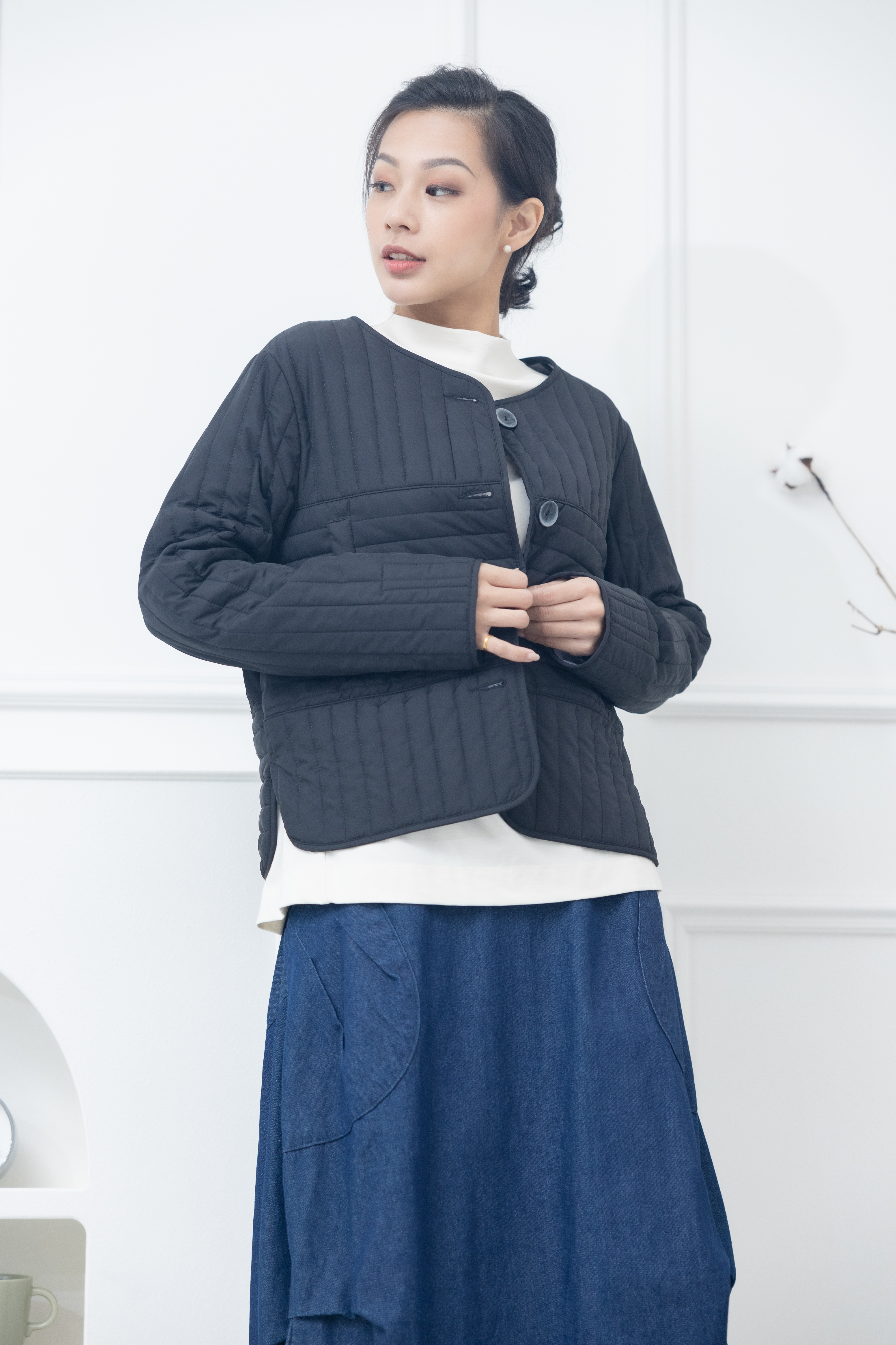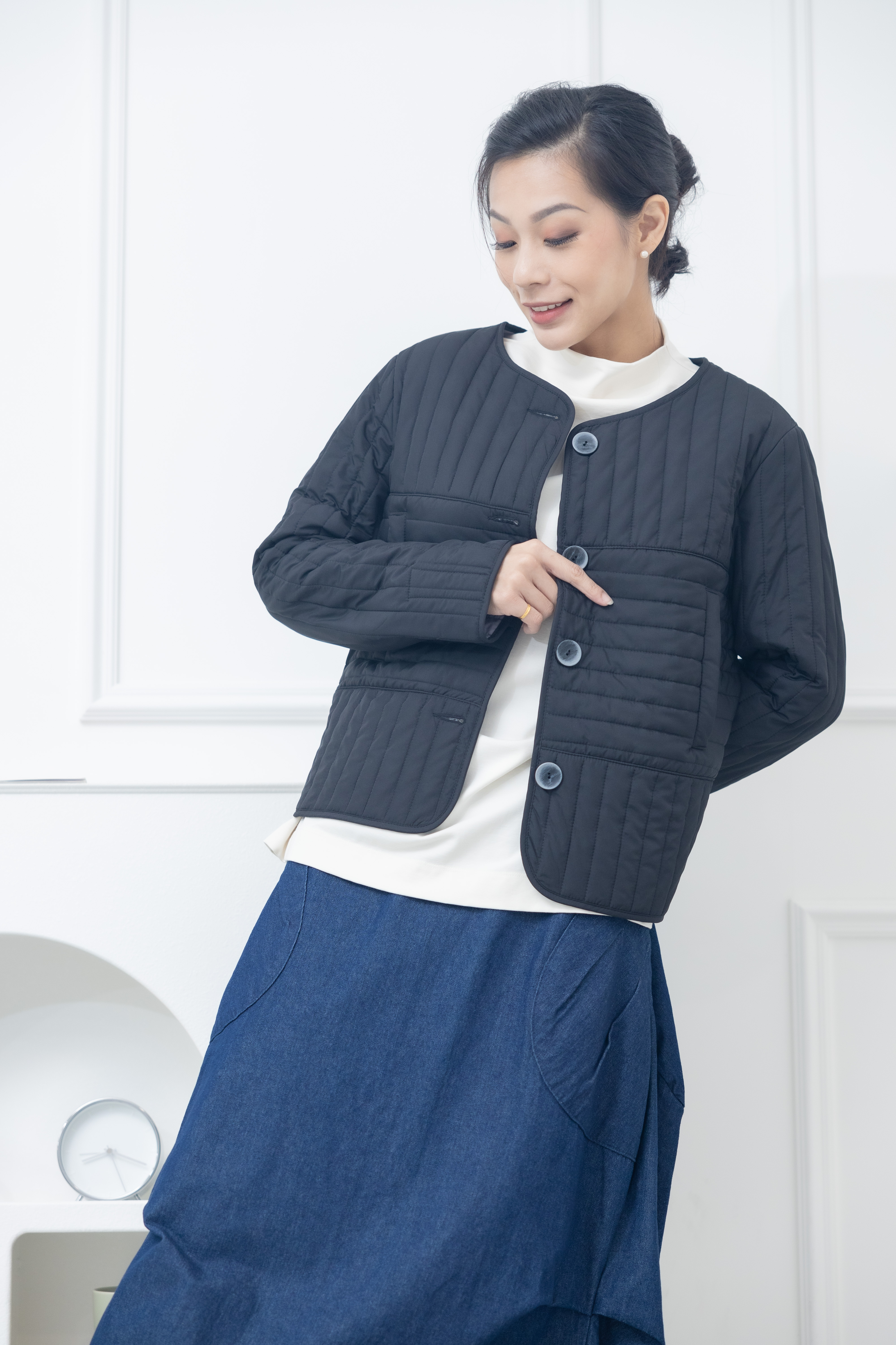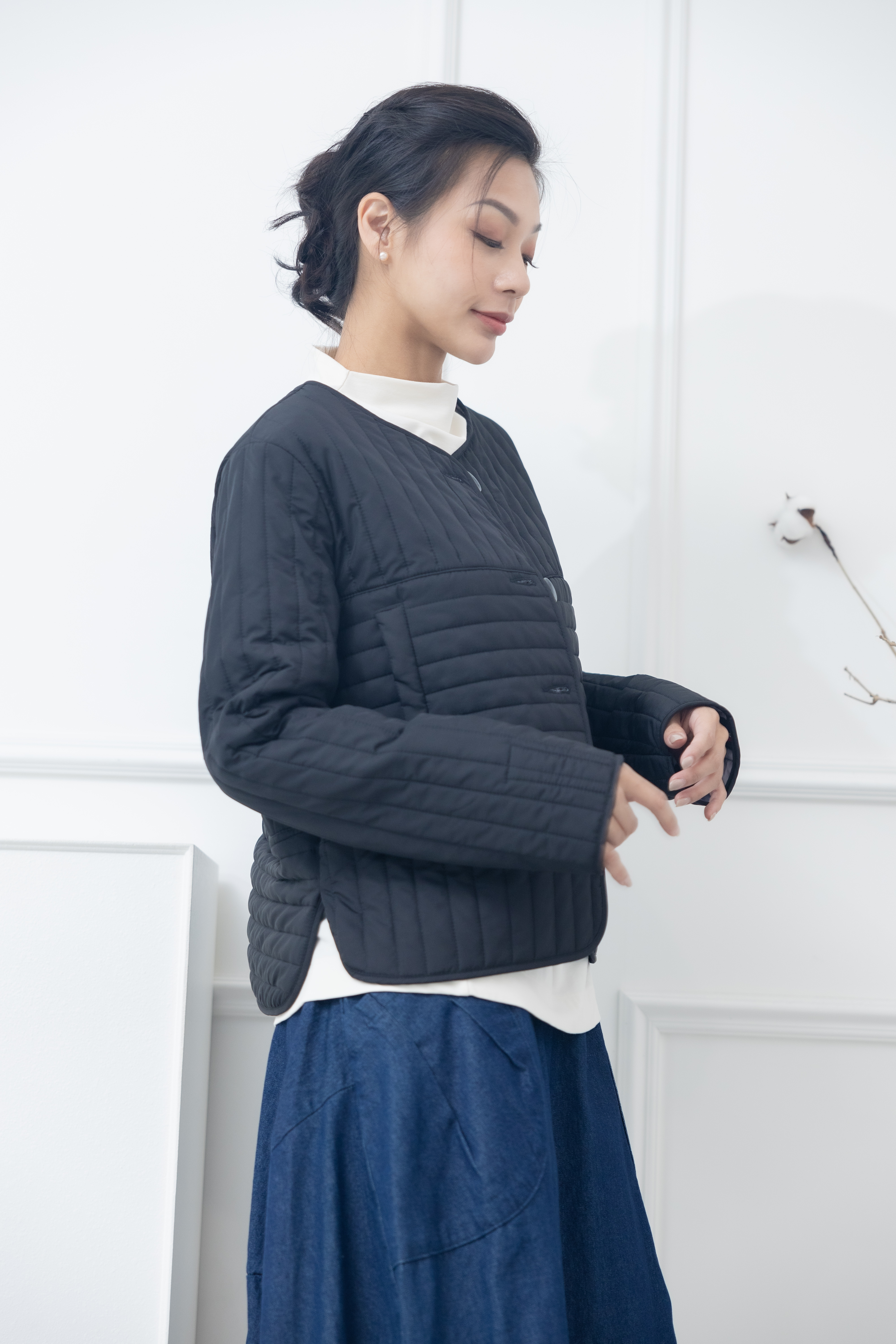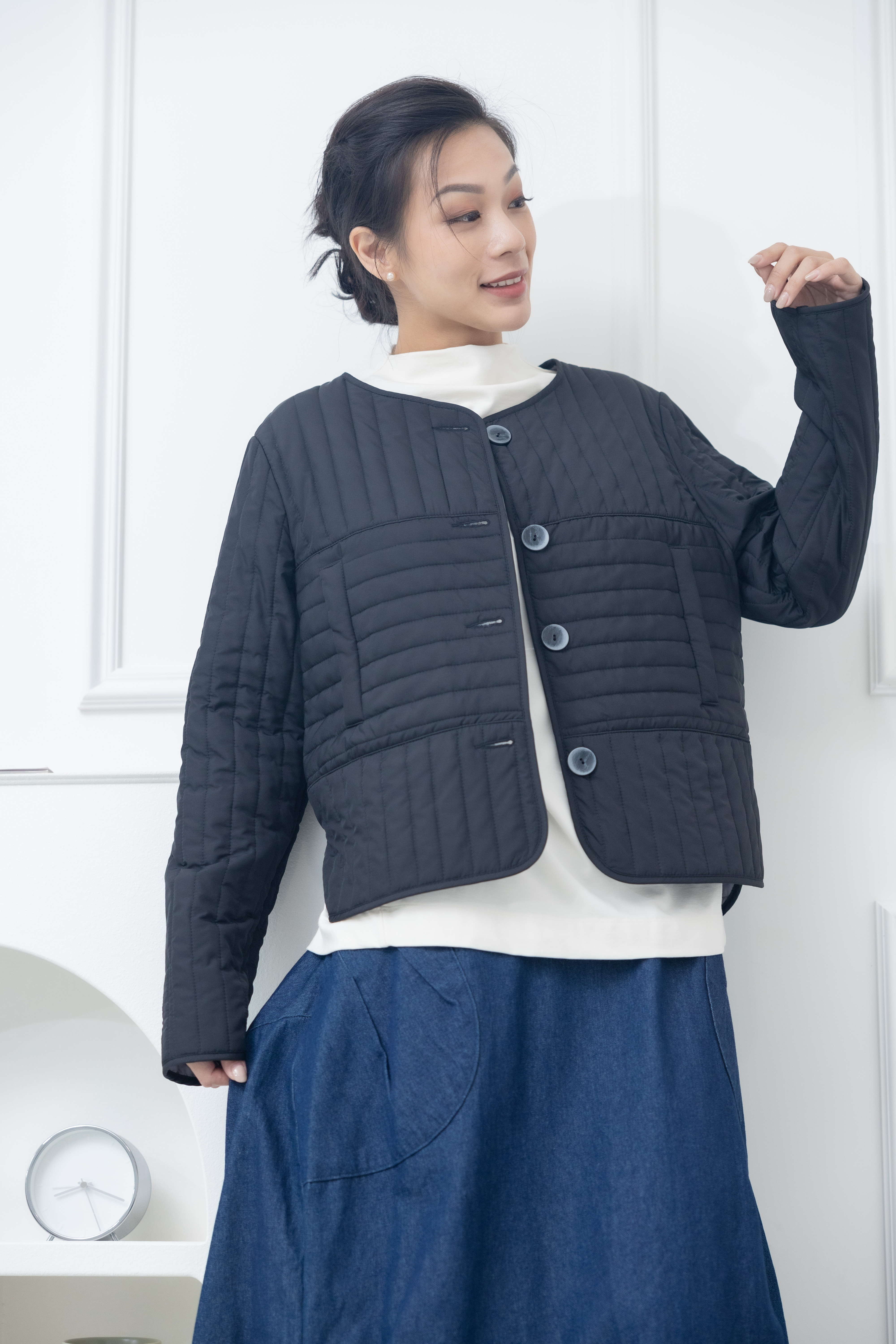 코트 表面長方形壓紋短版外套 / 黑色