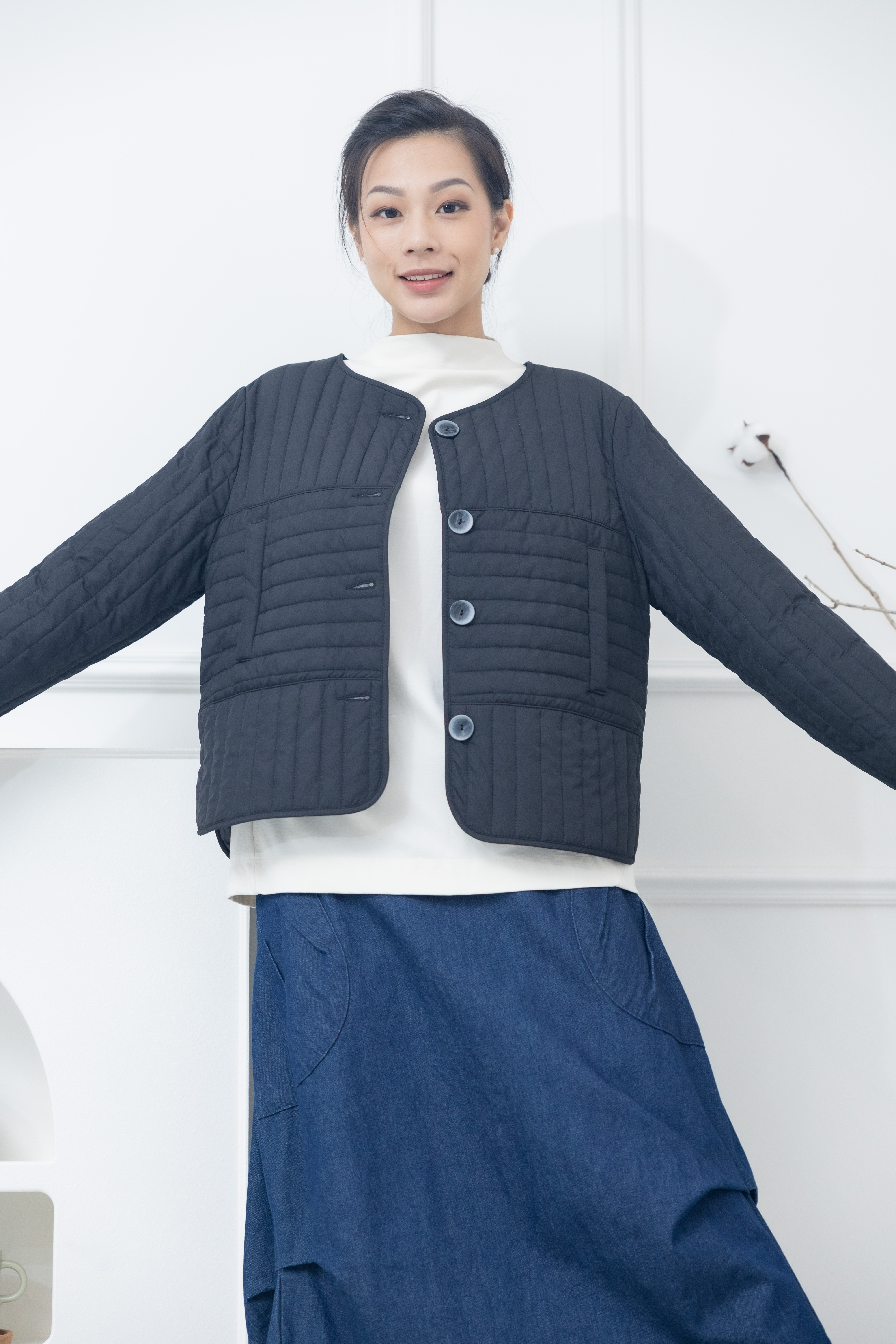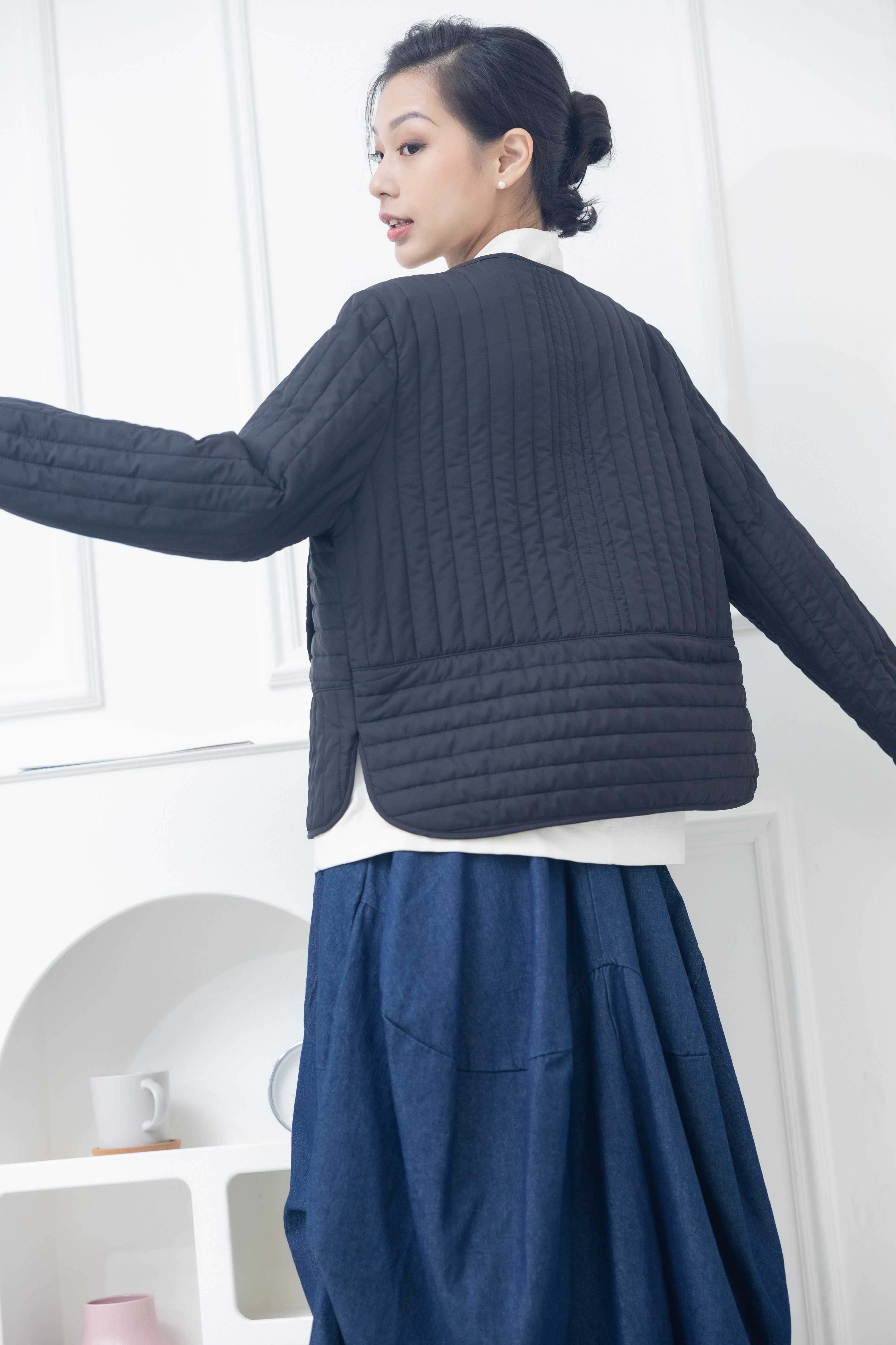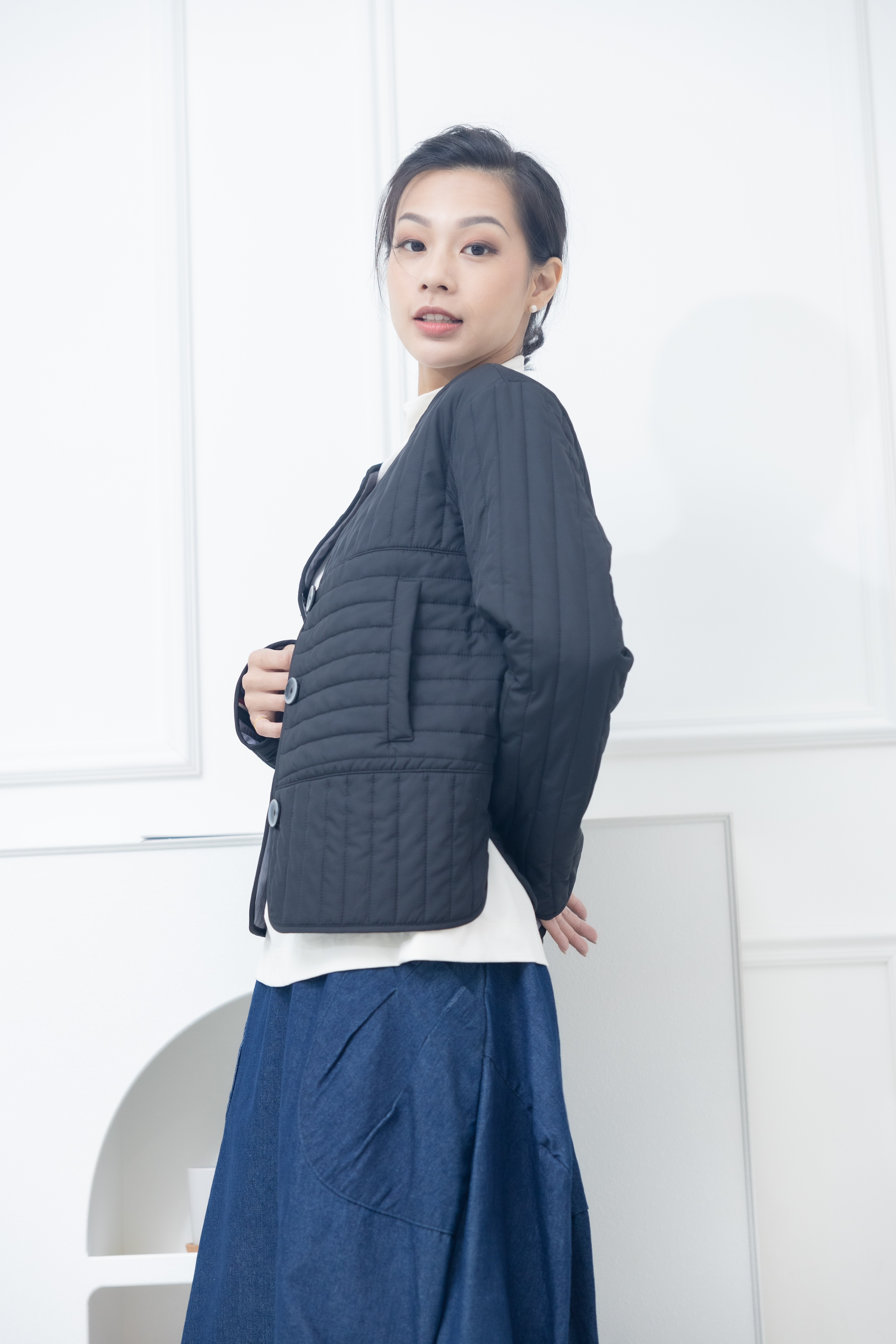 코트 表面長方形壓紋短版外套 / 黑色