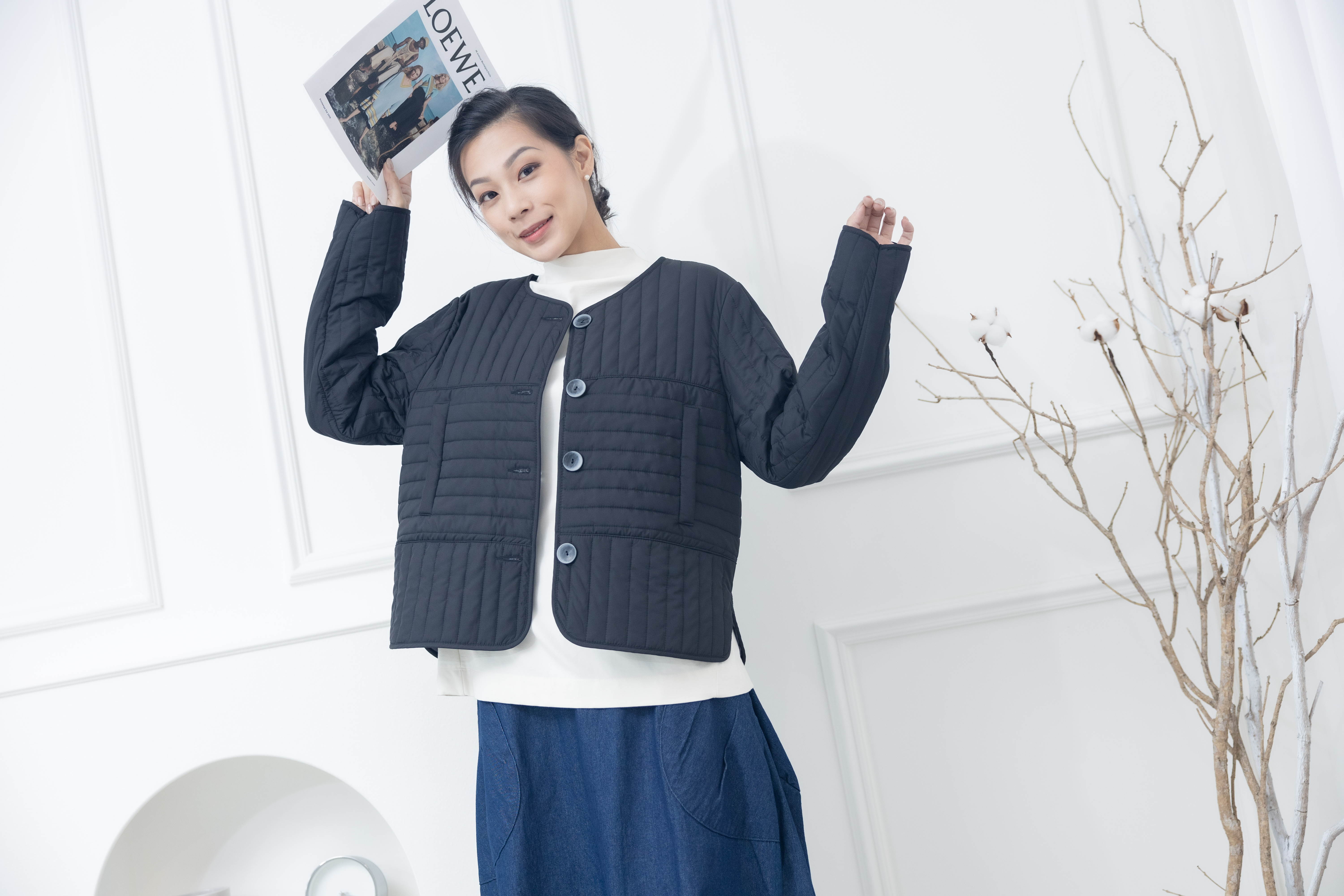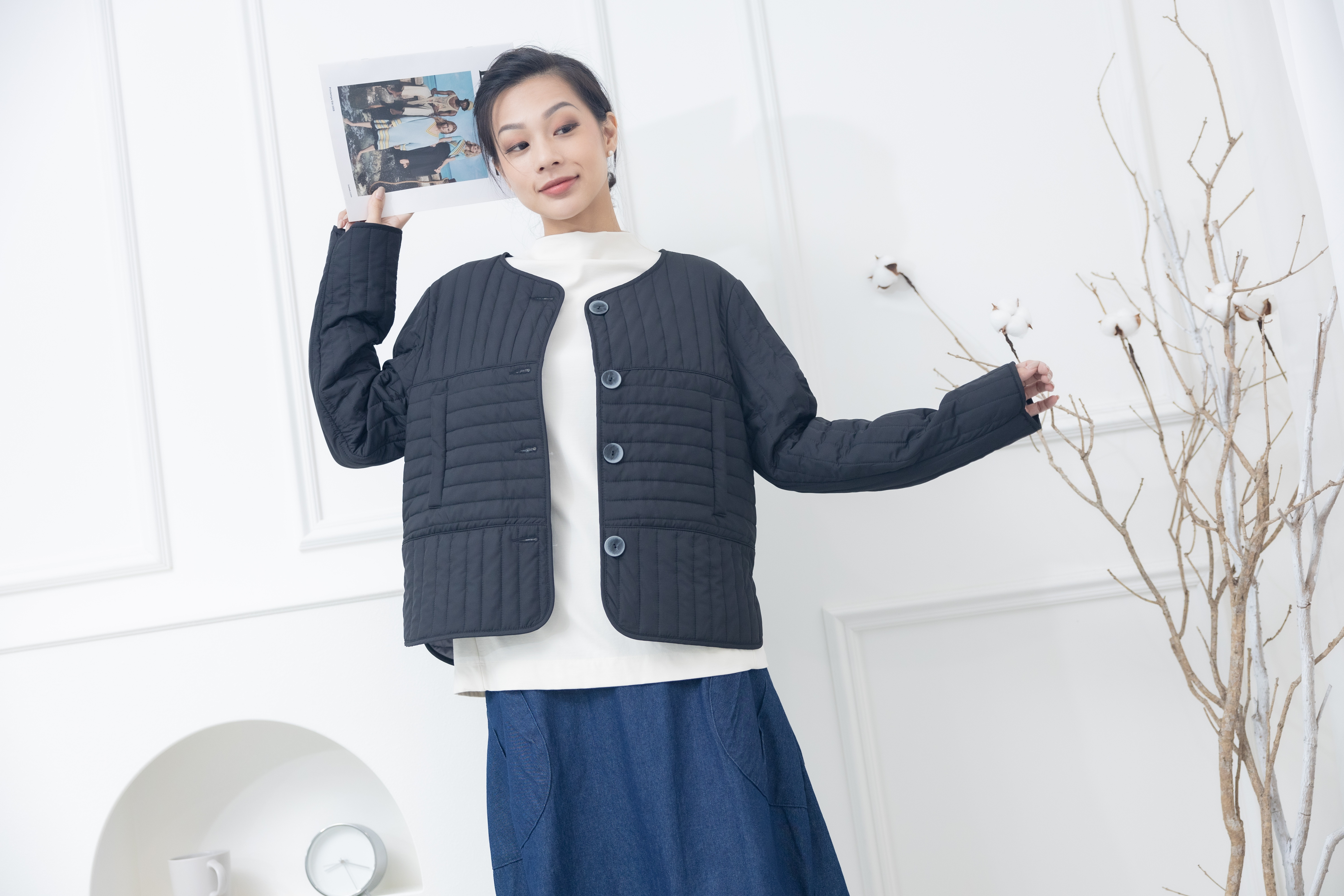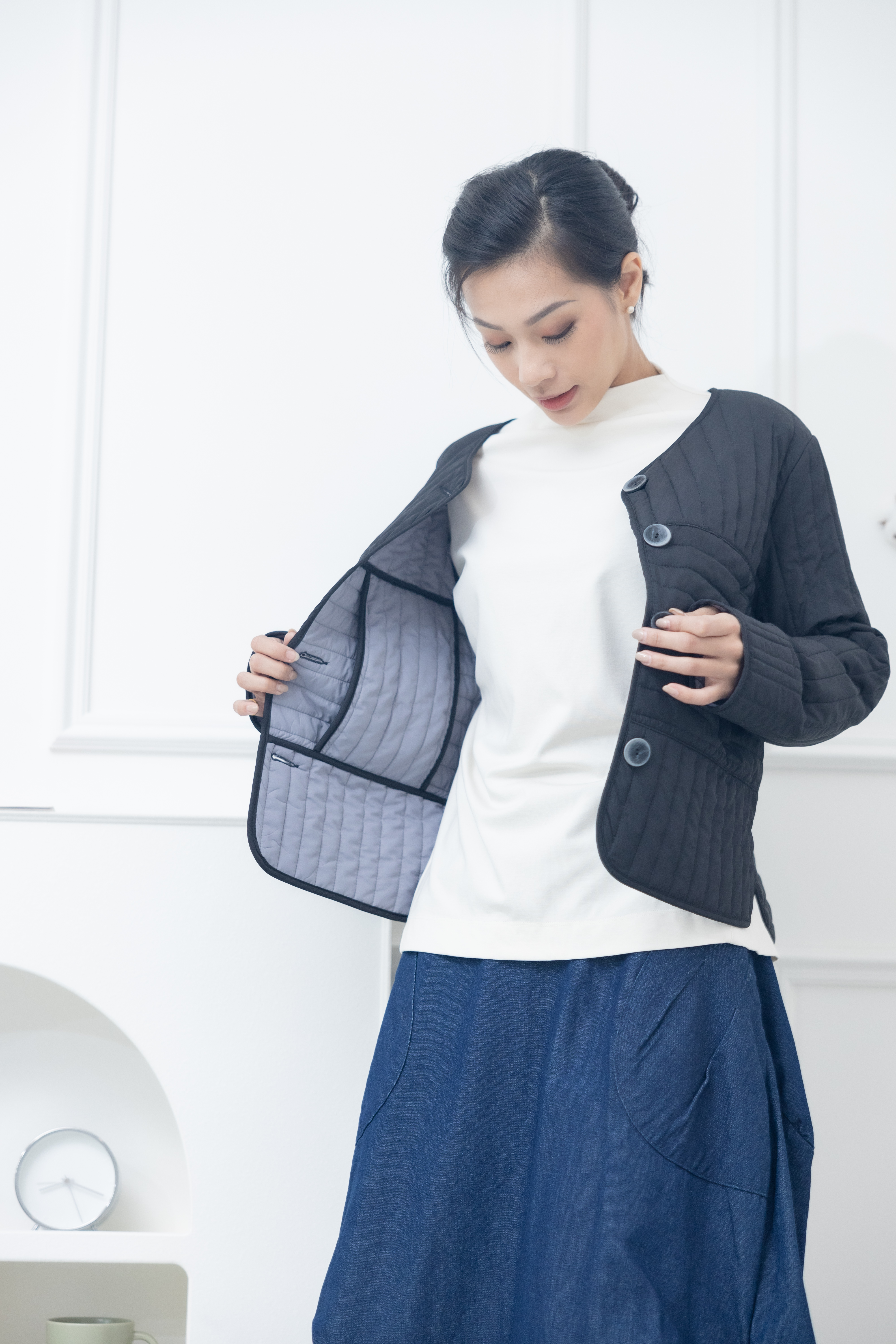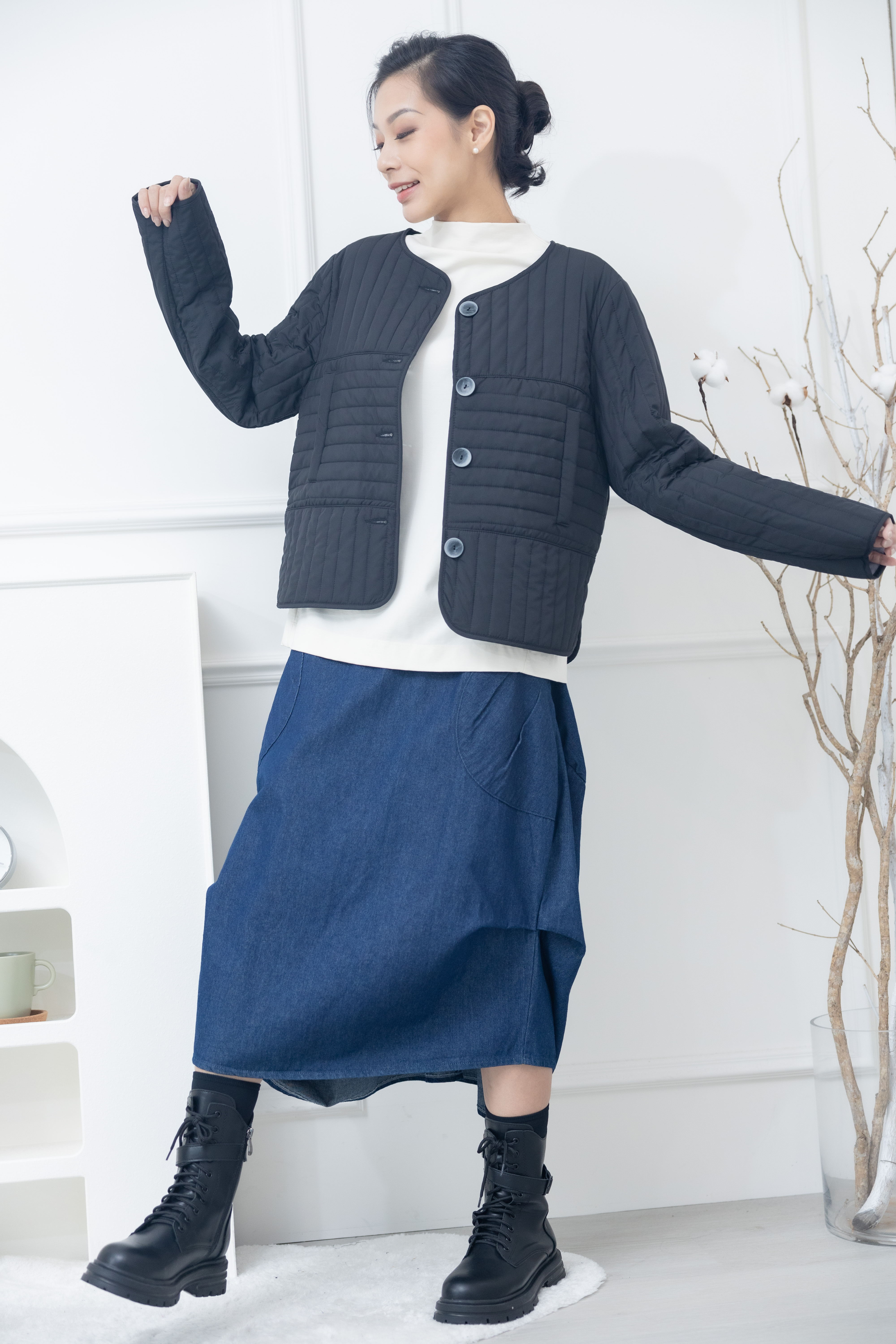 코트 表面長方形壓紋短版外套 / 黑色