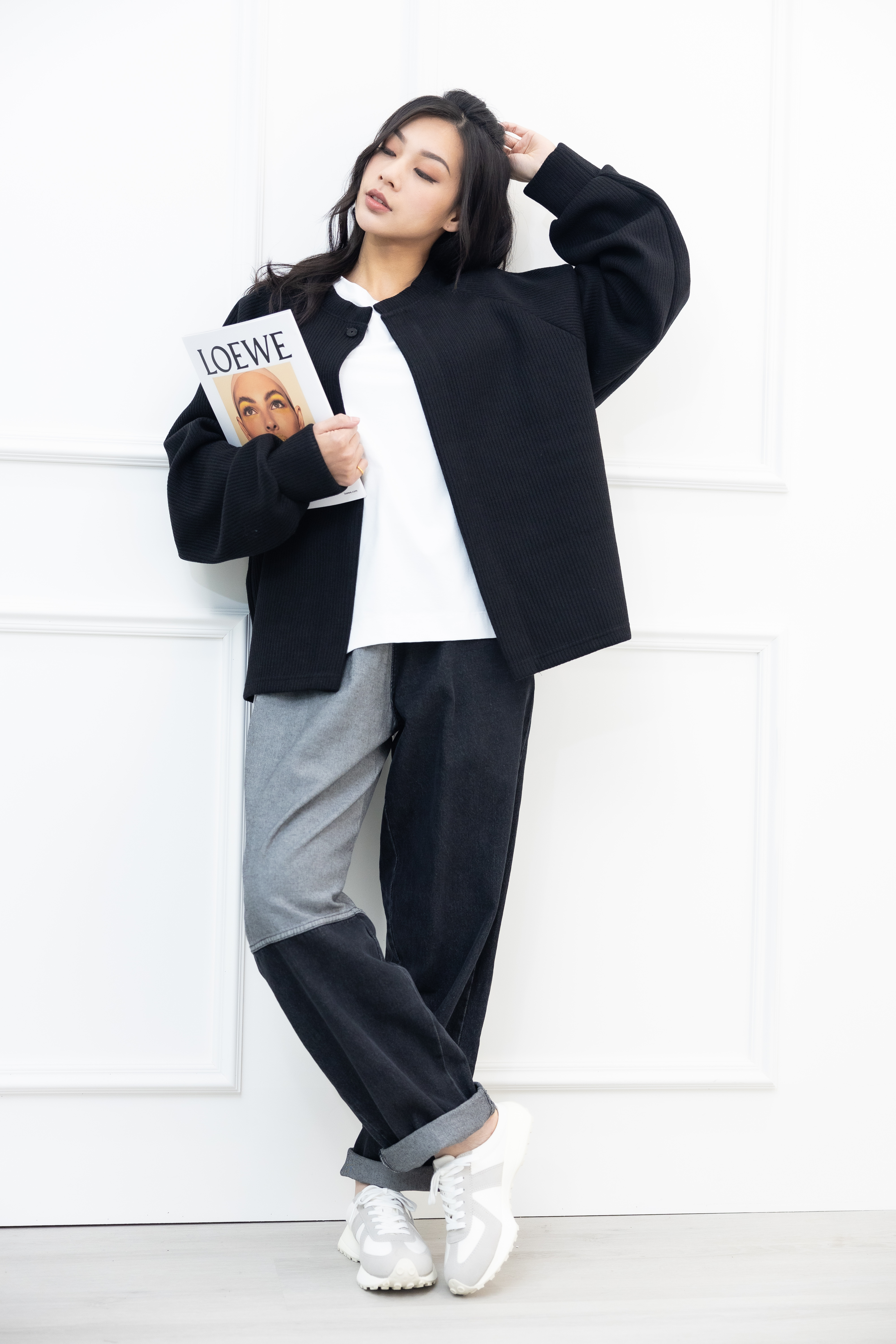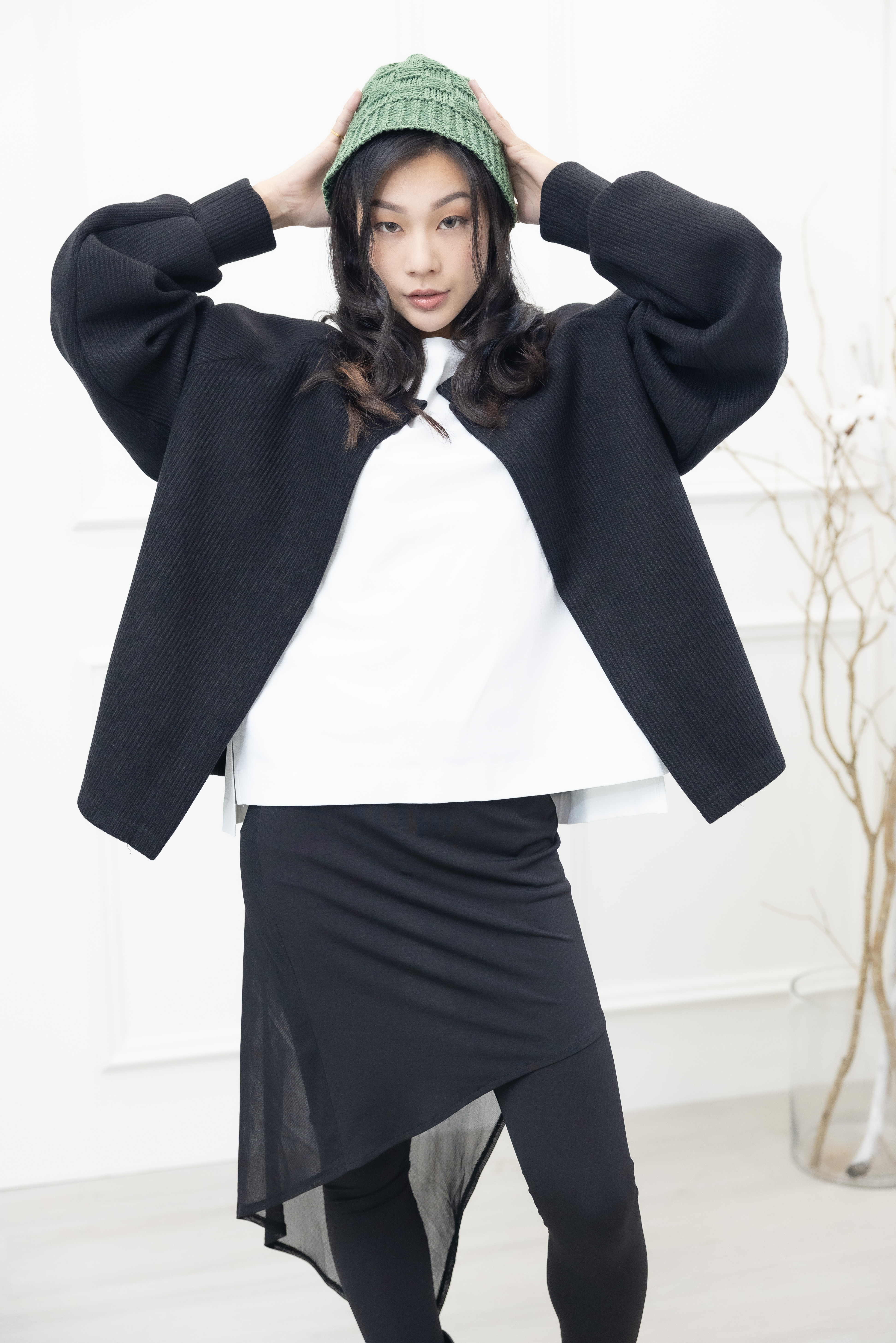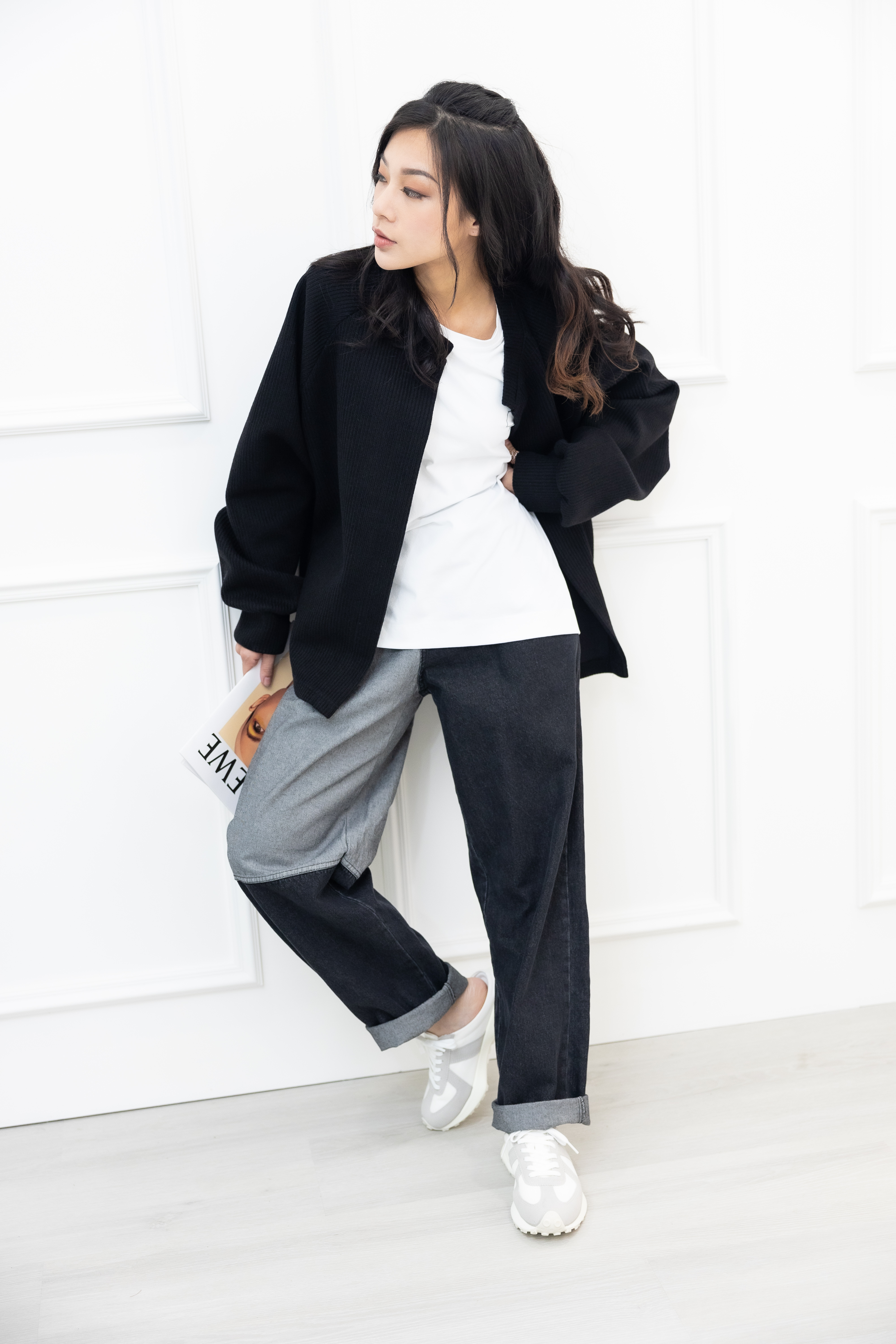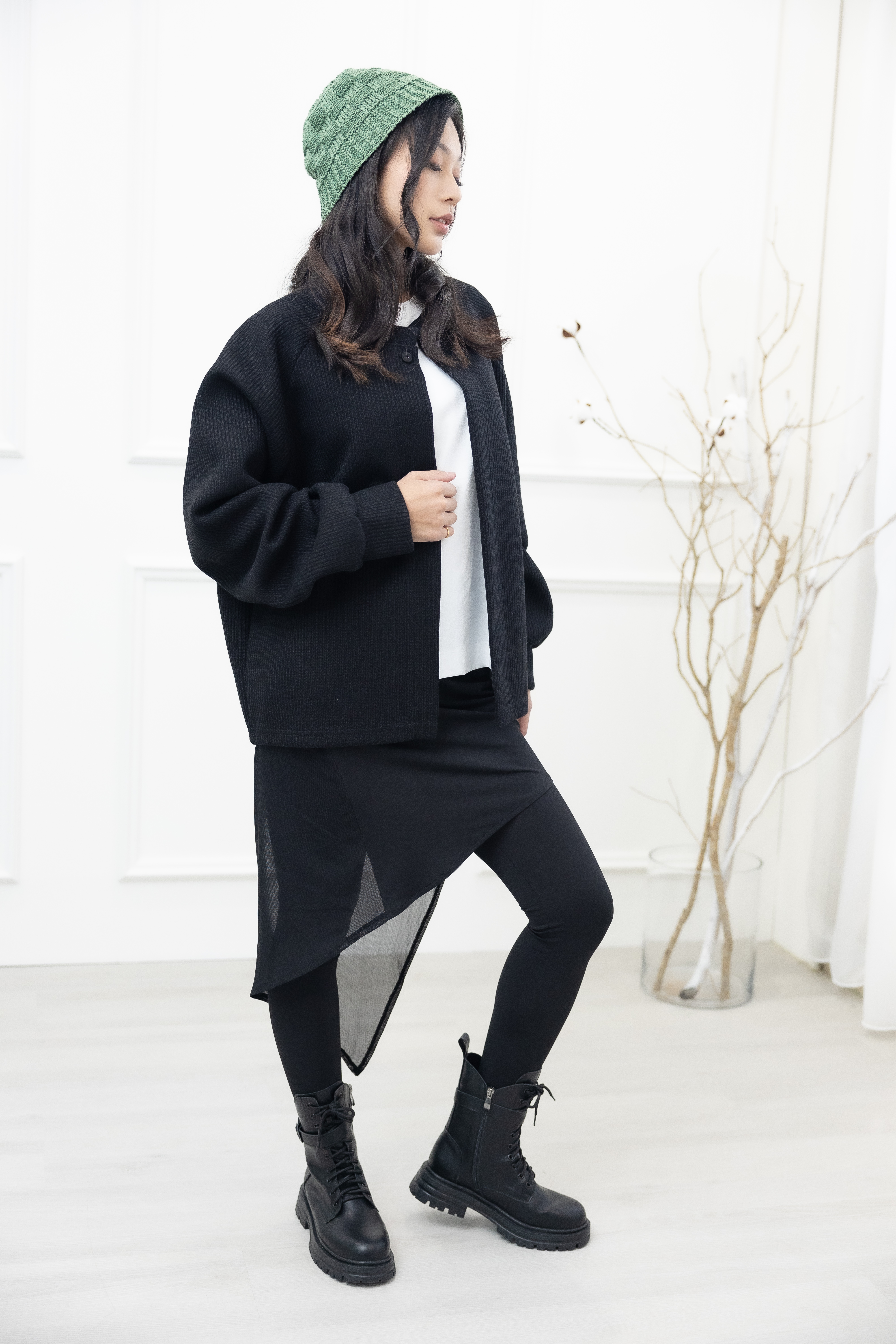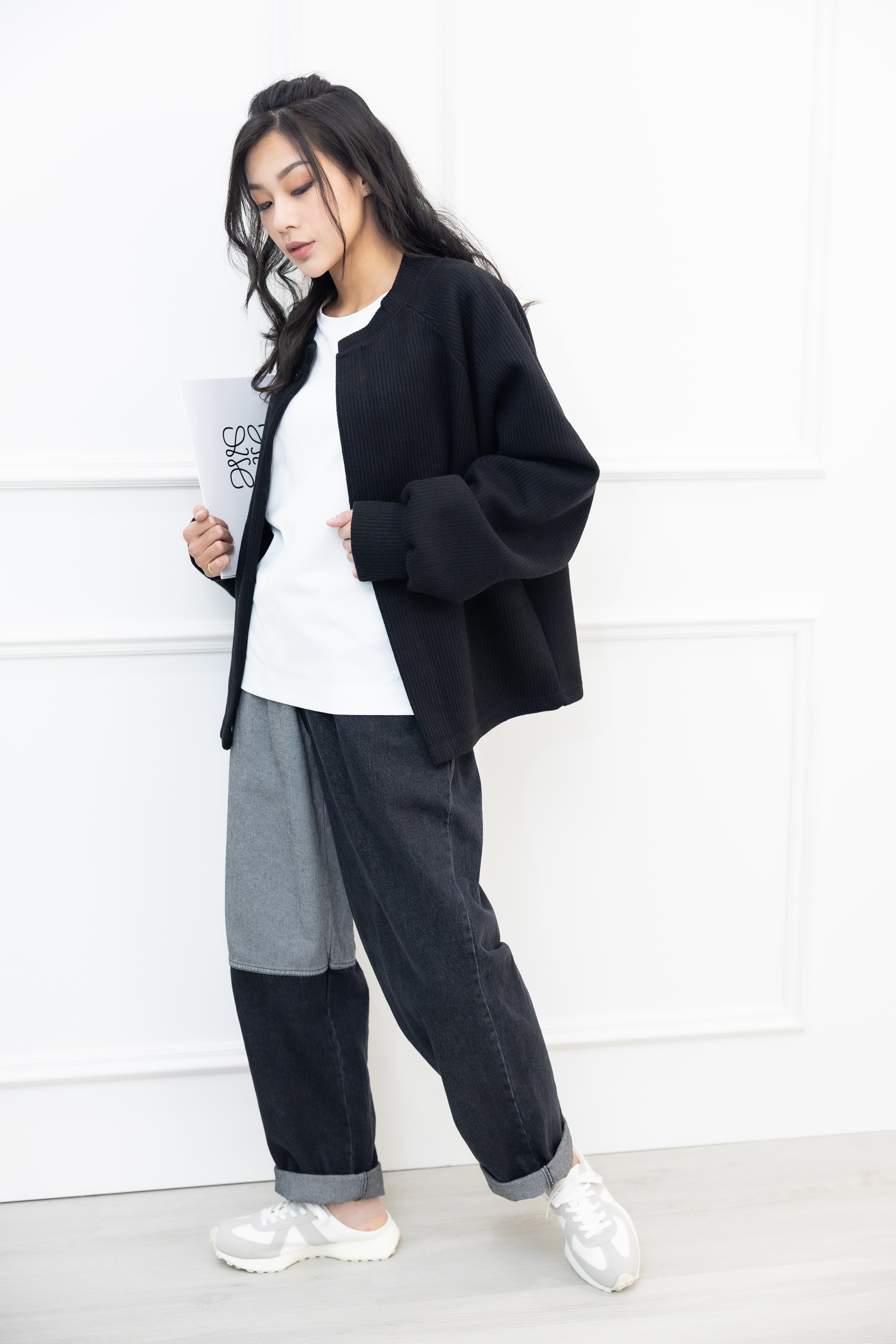 코트 開襟單暗扣針織外套/黑色