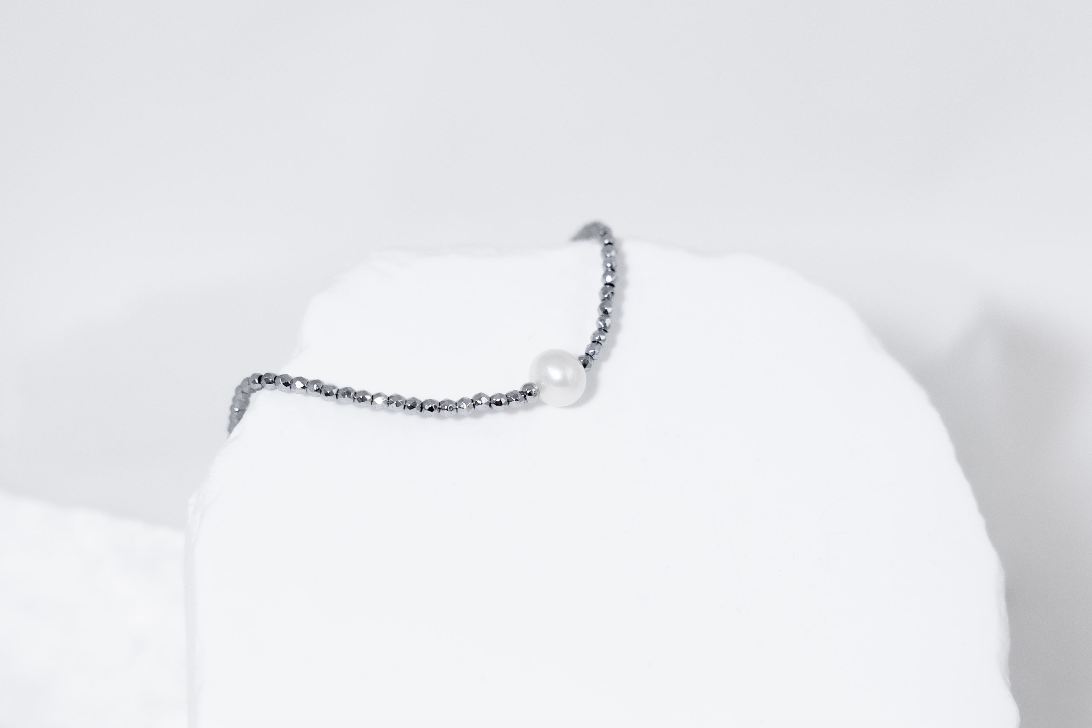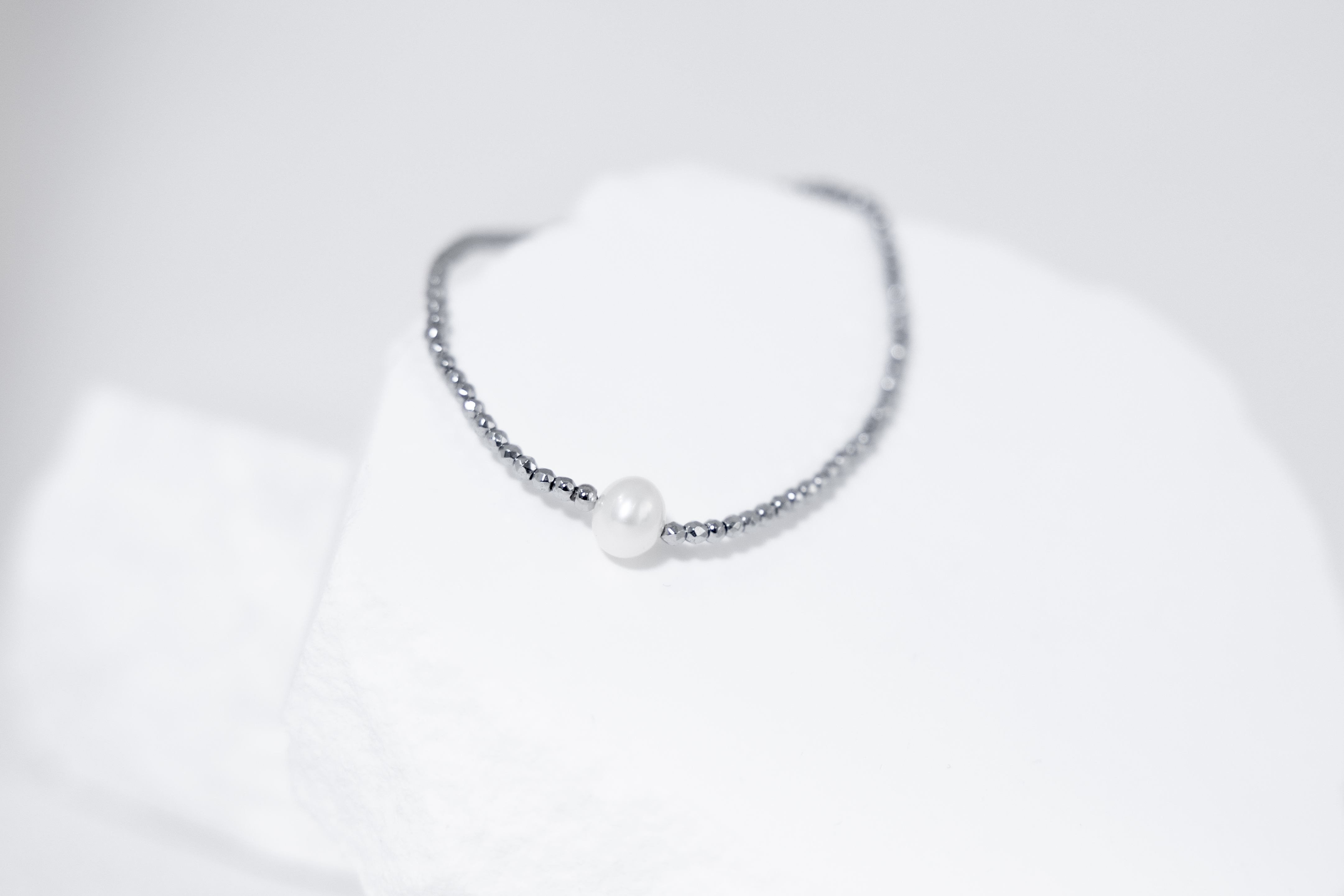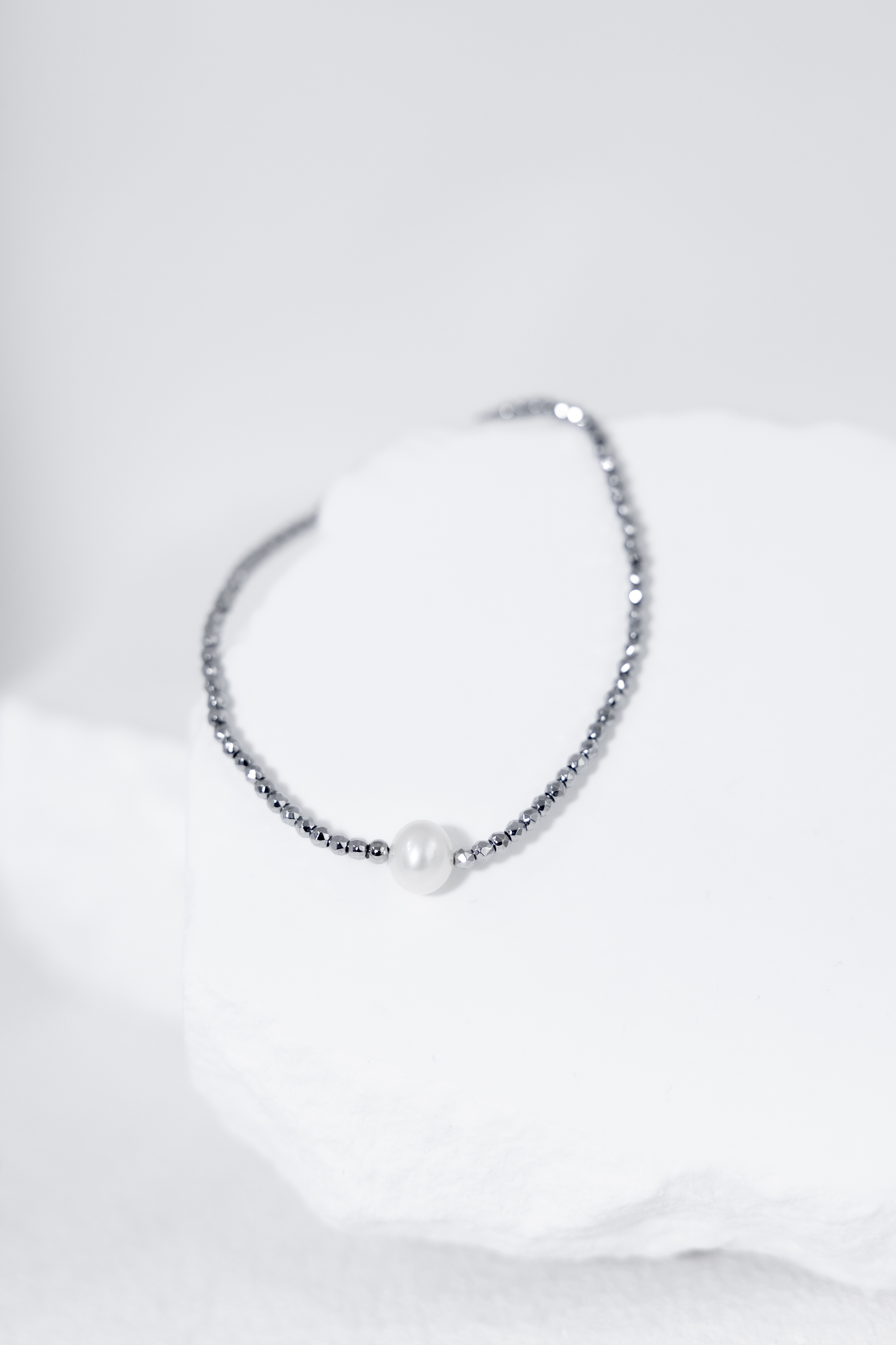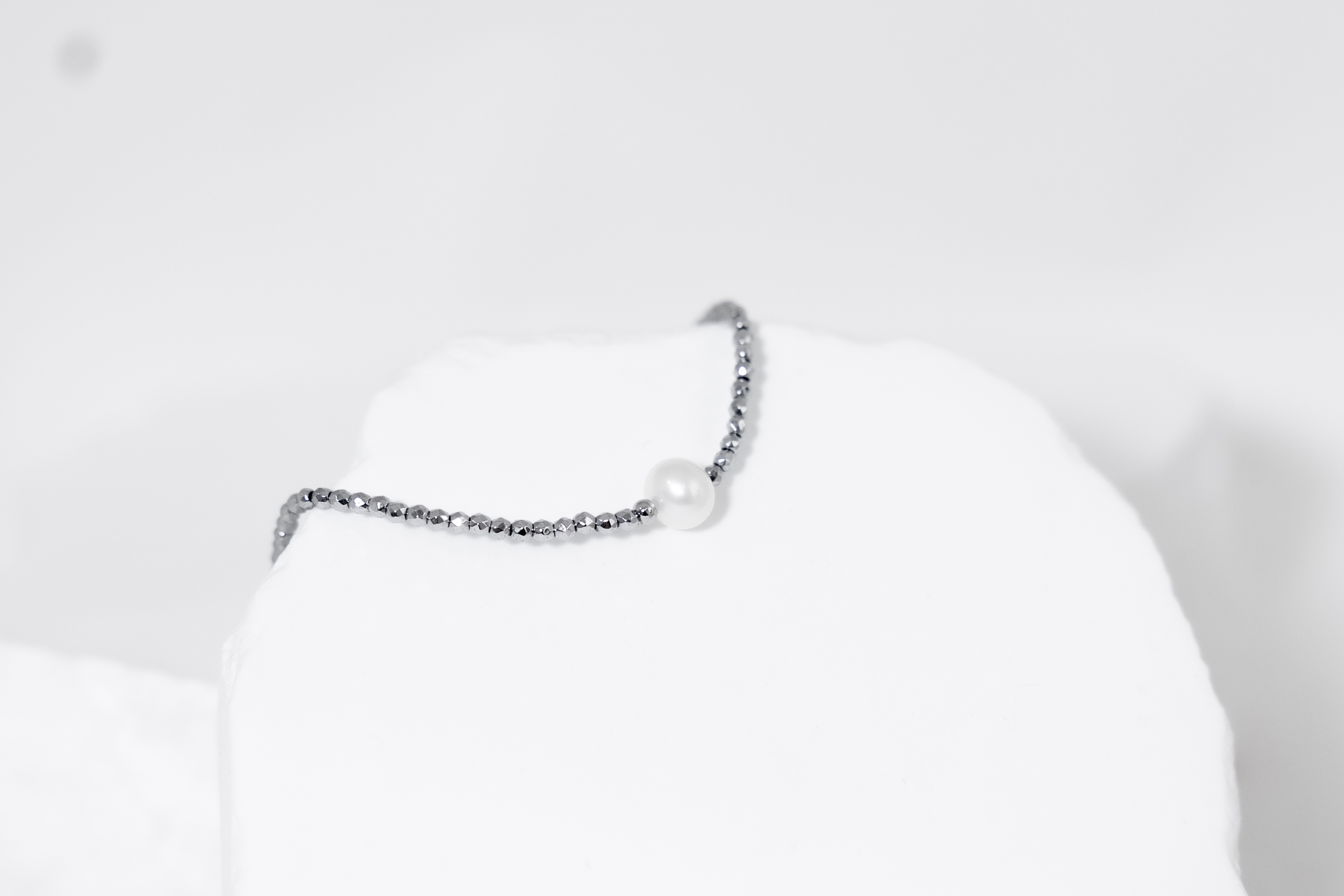 팔찌 不規則圓珠單顆珍珠彈性繩手鍊 / 銀色