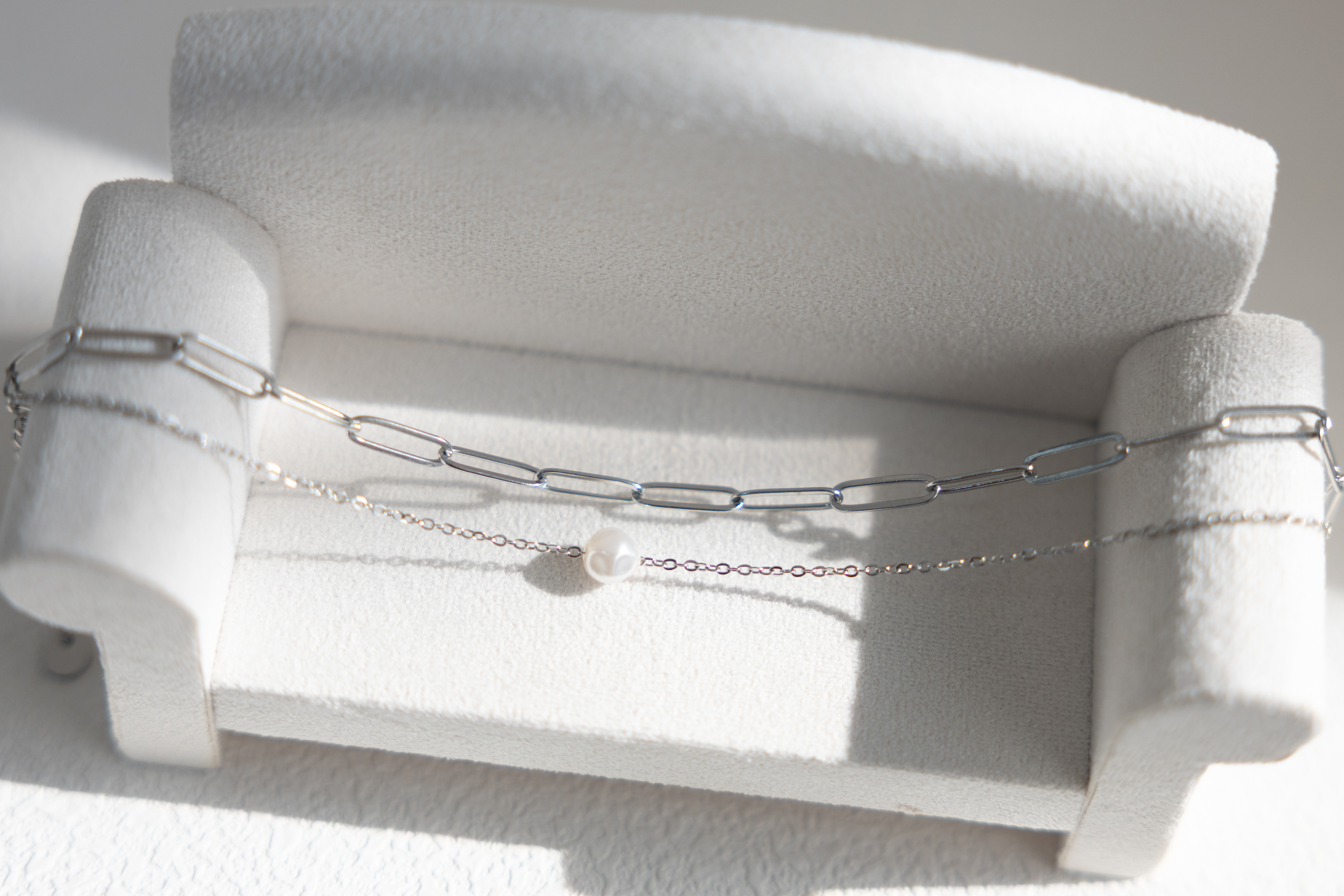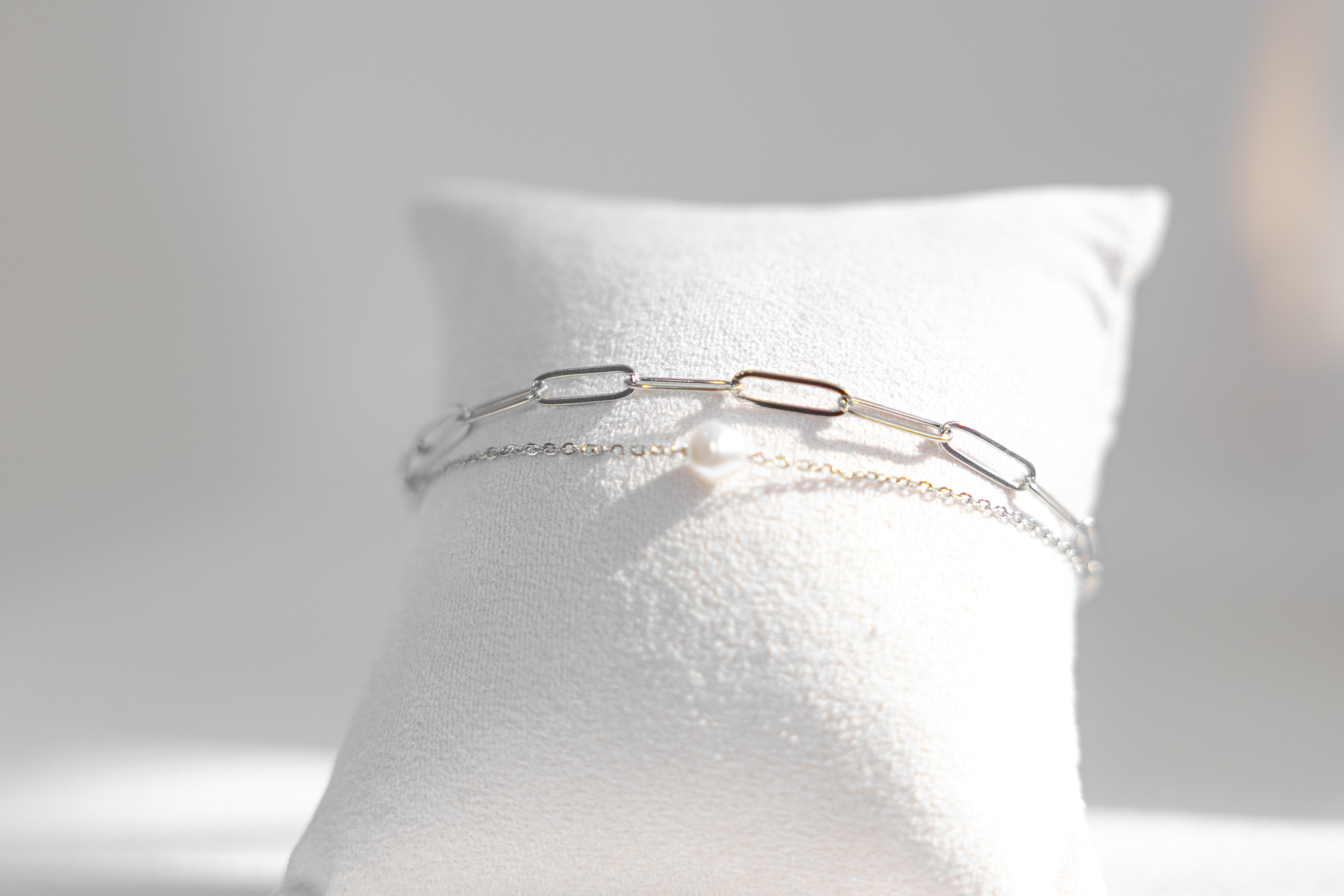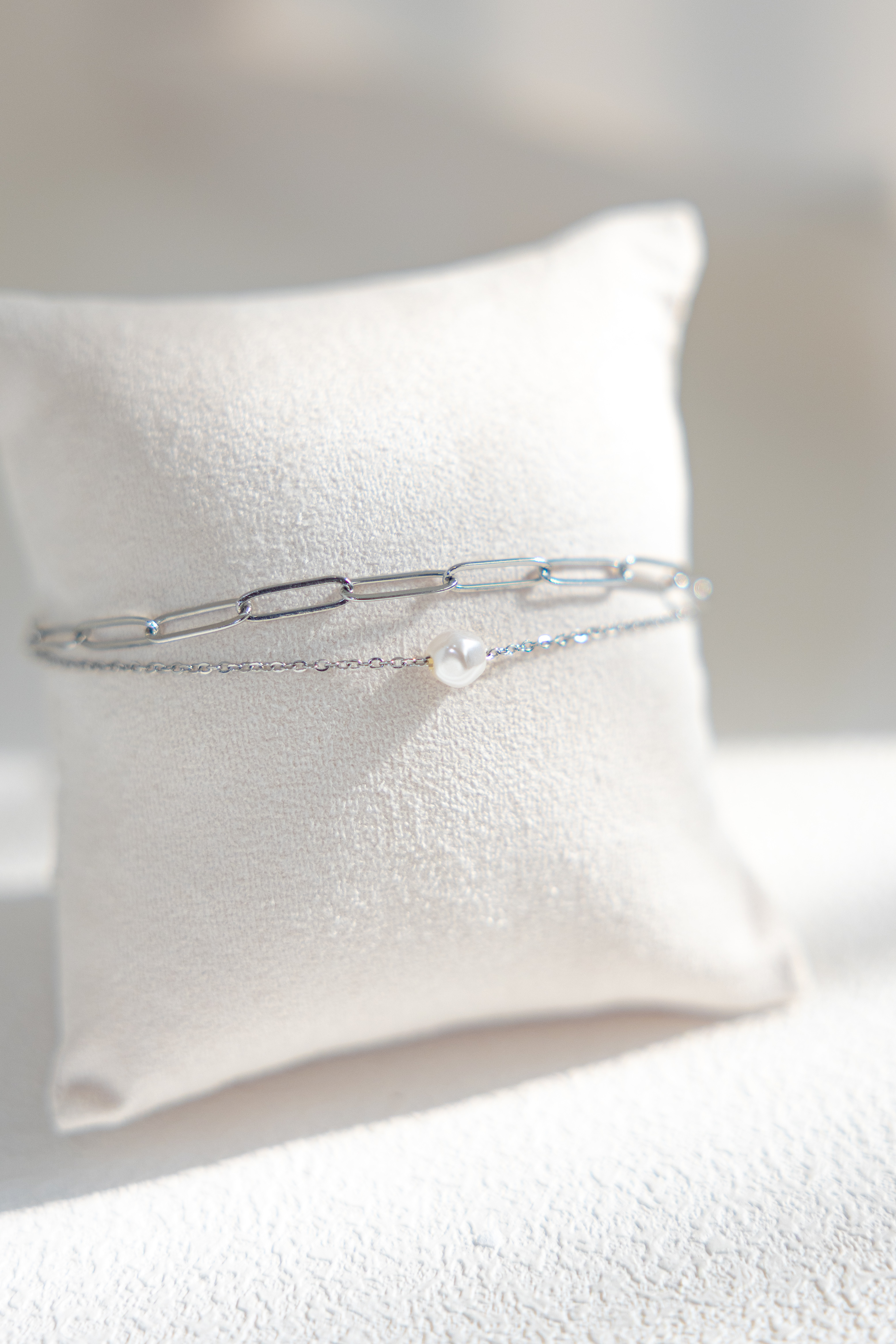 팔찌 單顆珍珠橢圓鍊雙層鍊 / 銀色