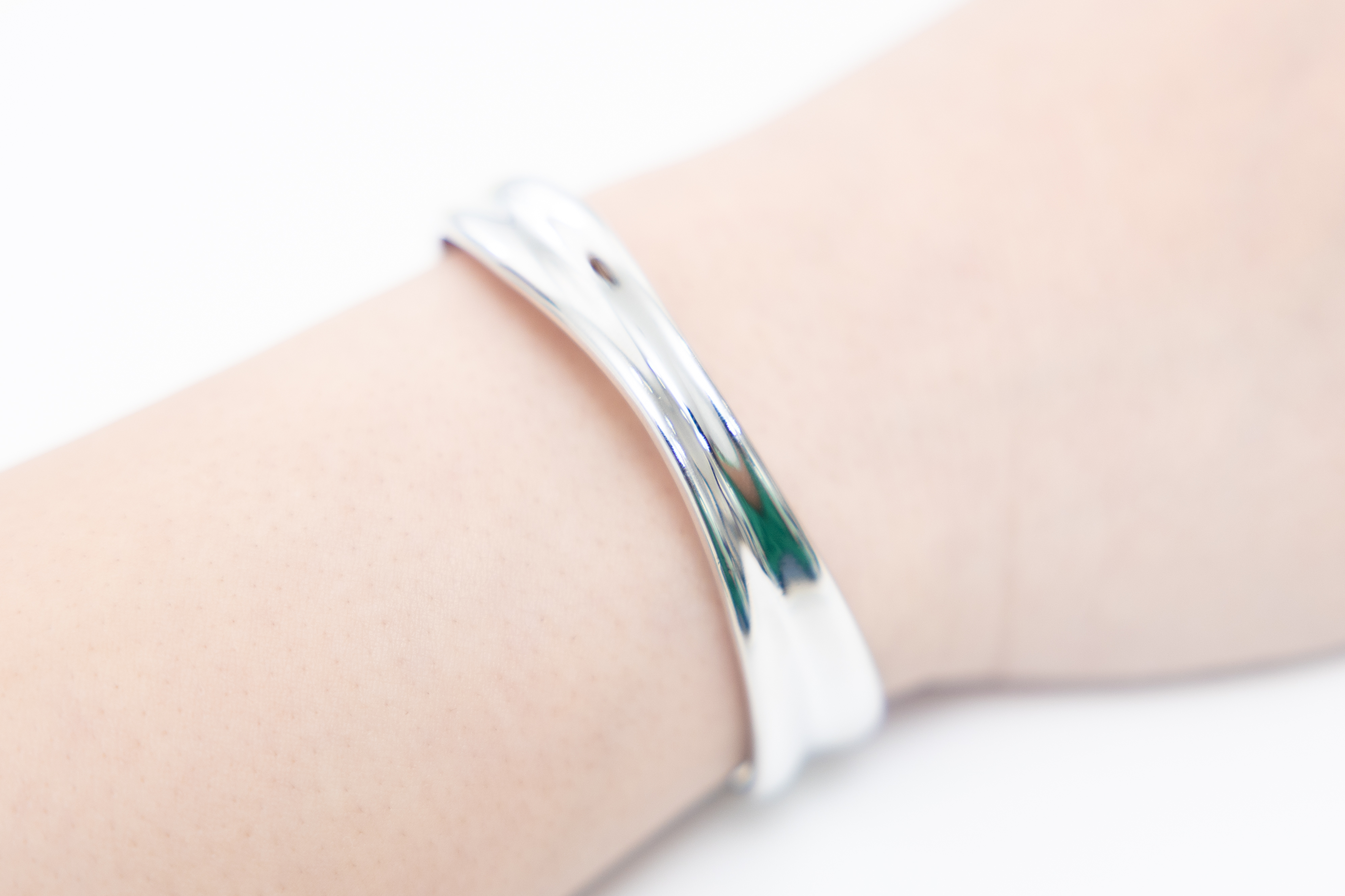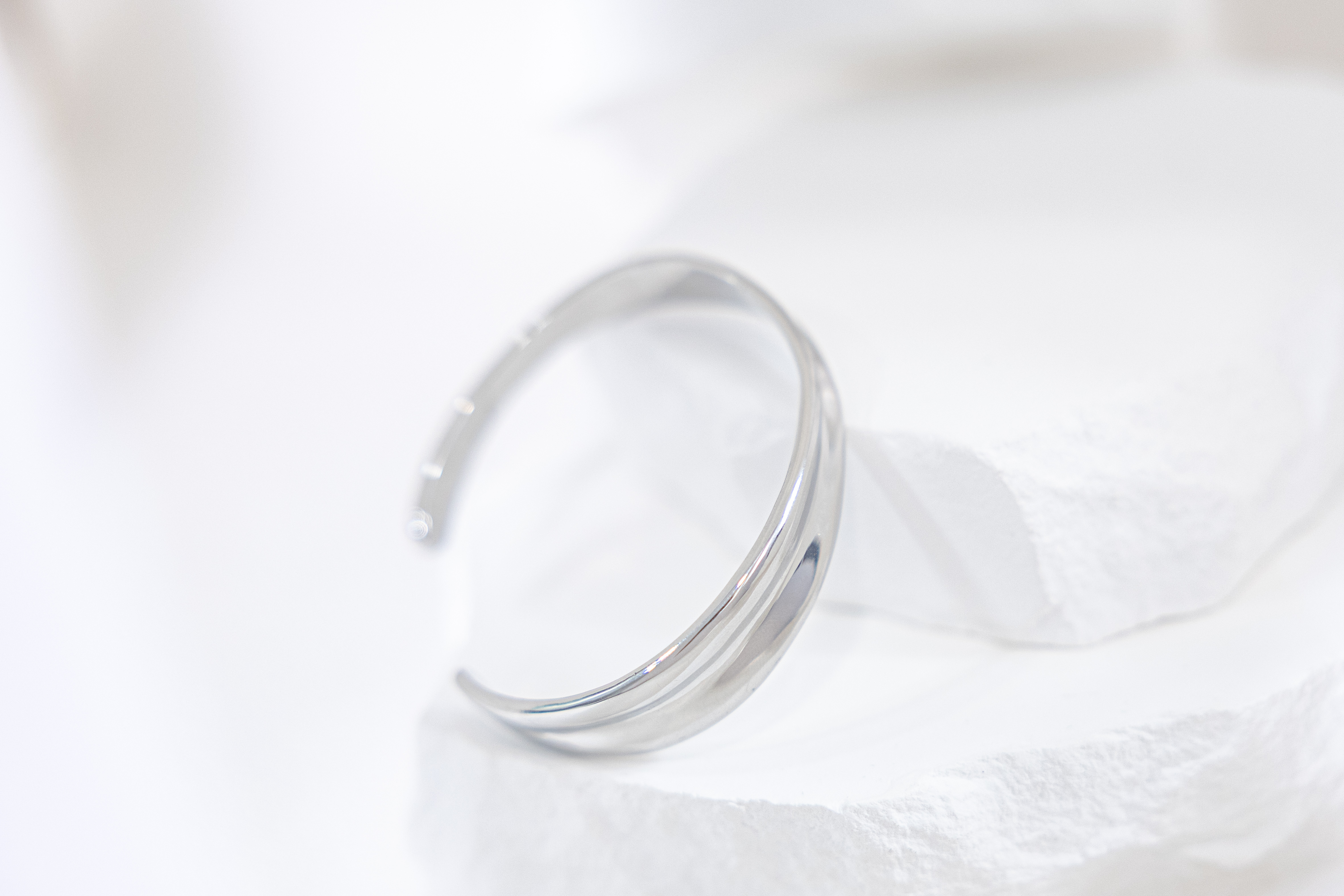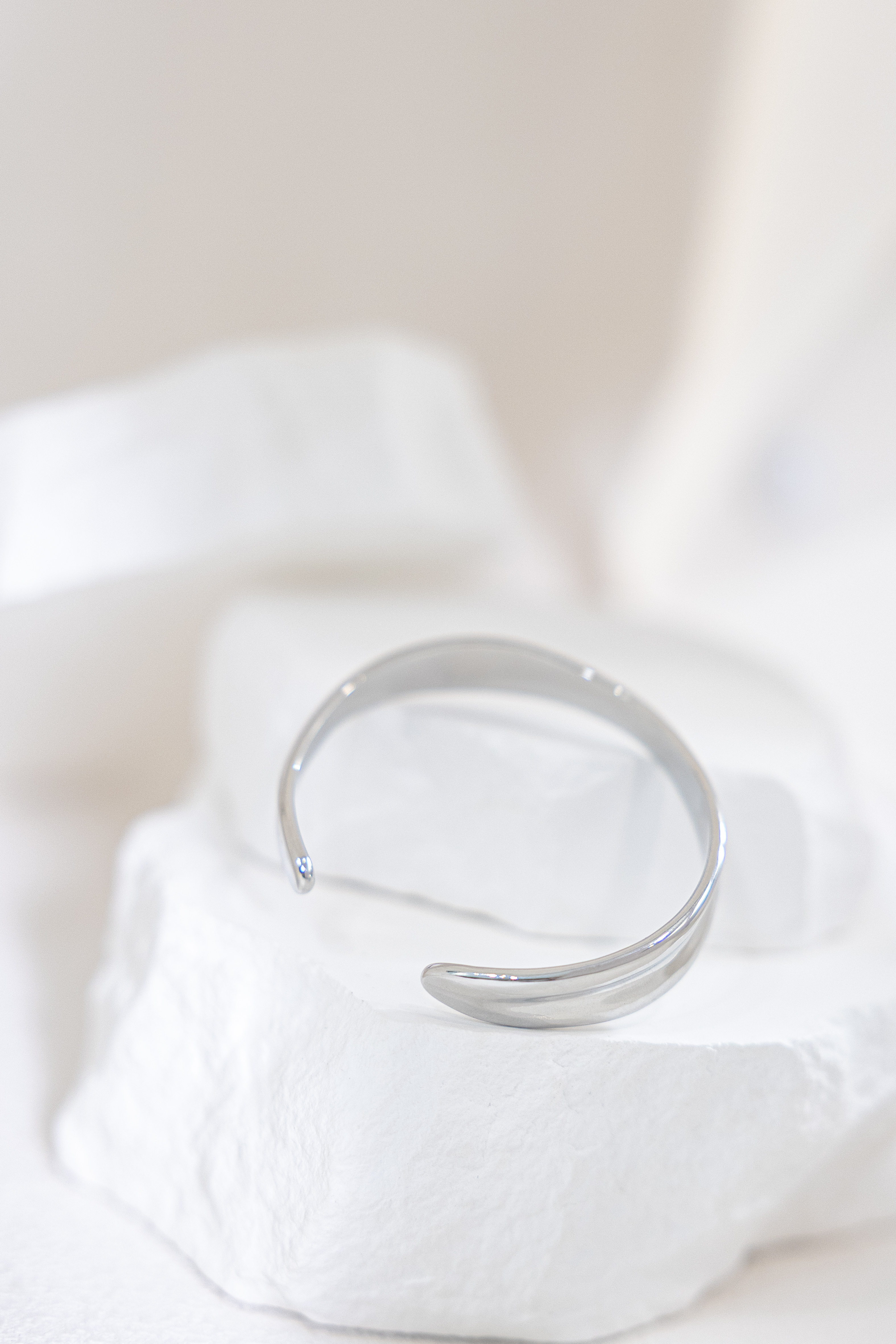 팔찌 緞帶設計前寬厚窄開口式手環 / 銀色