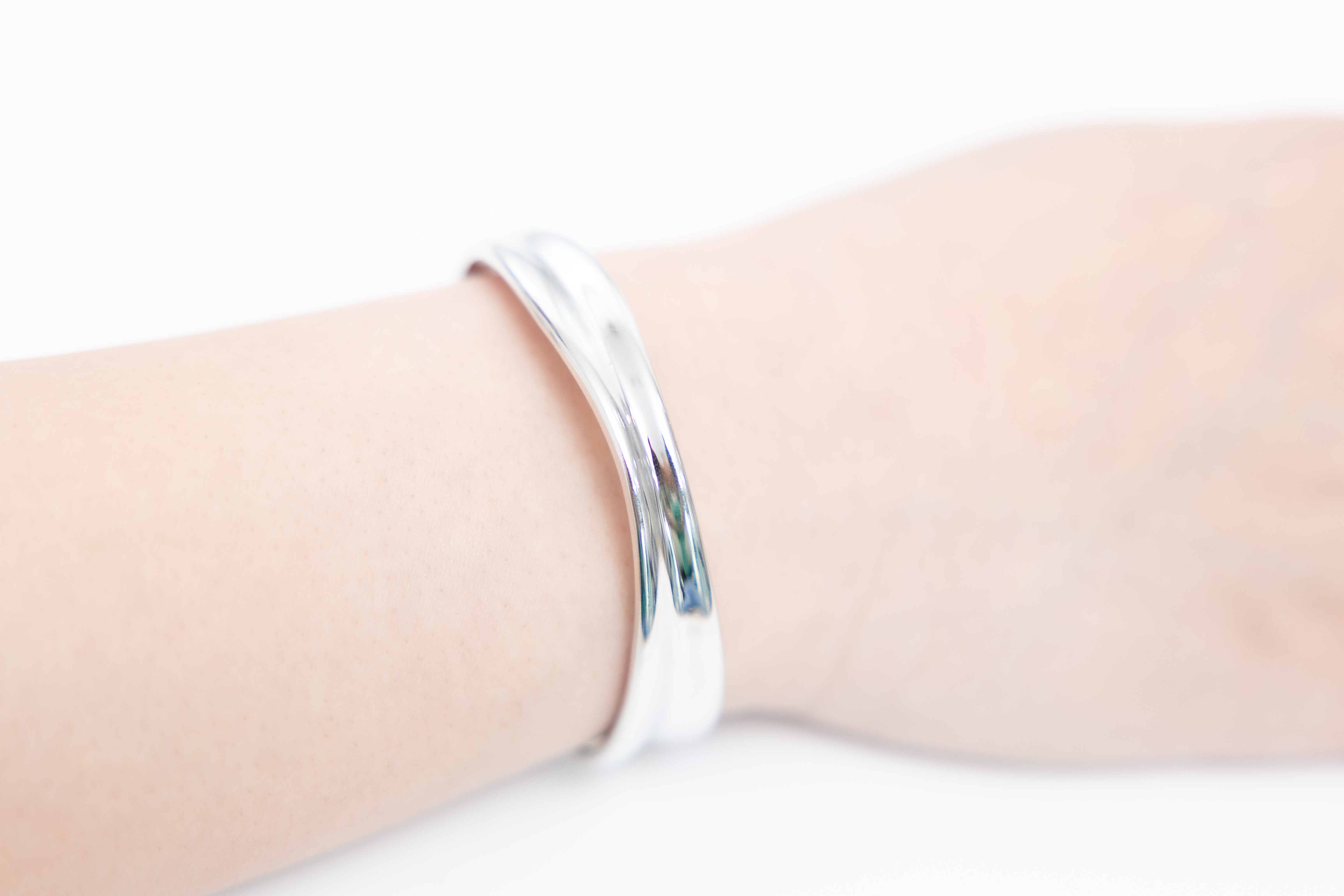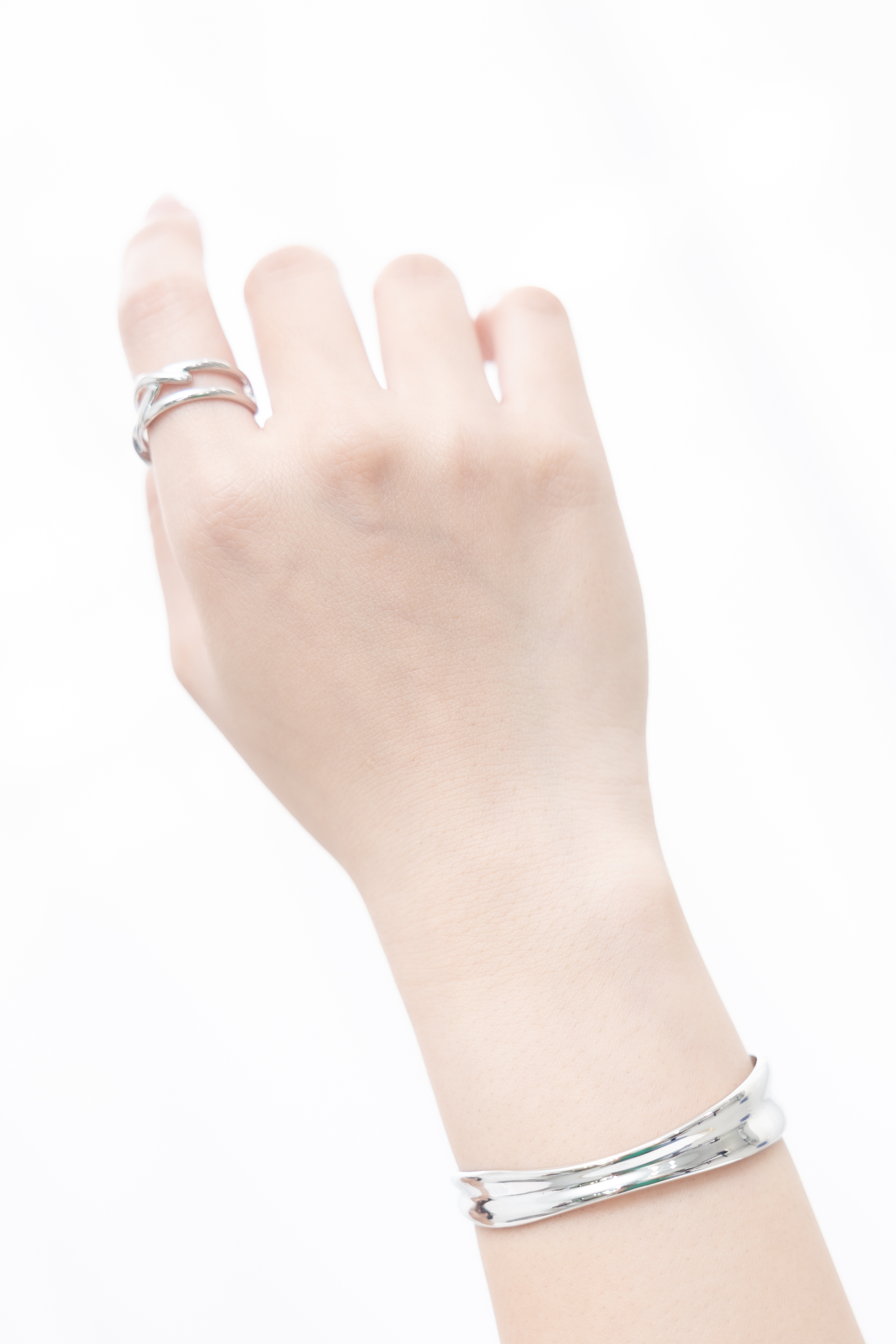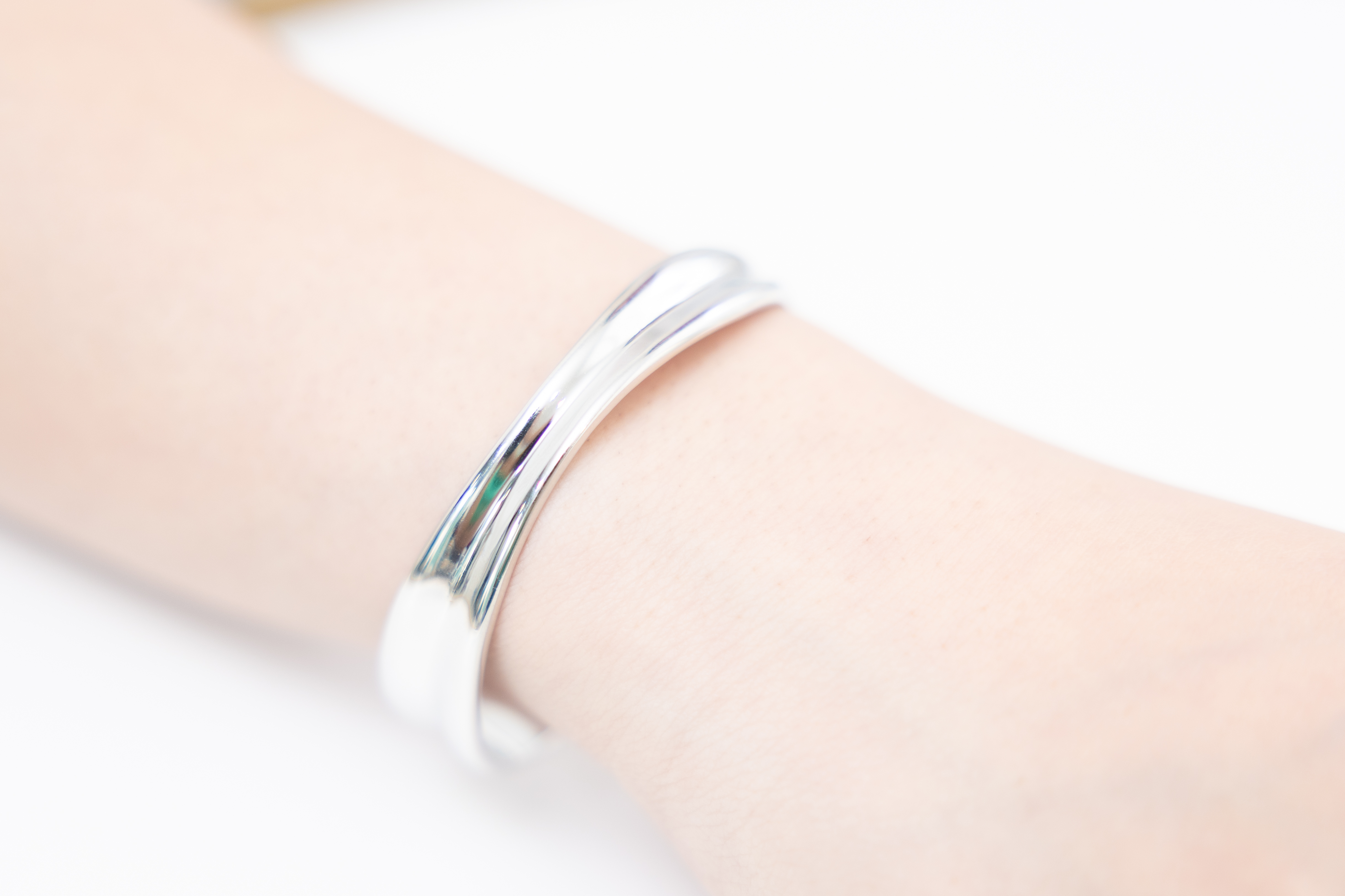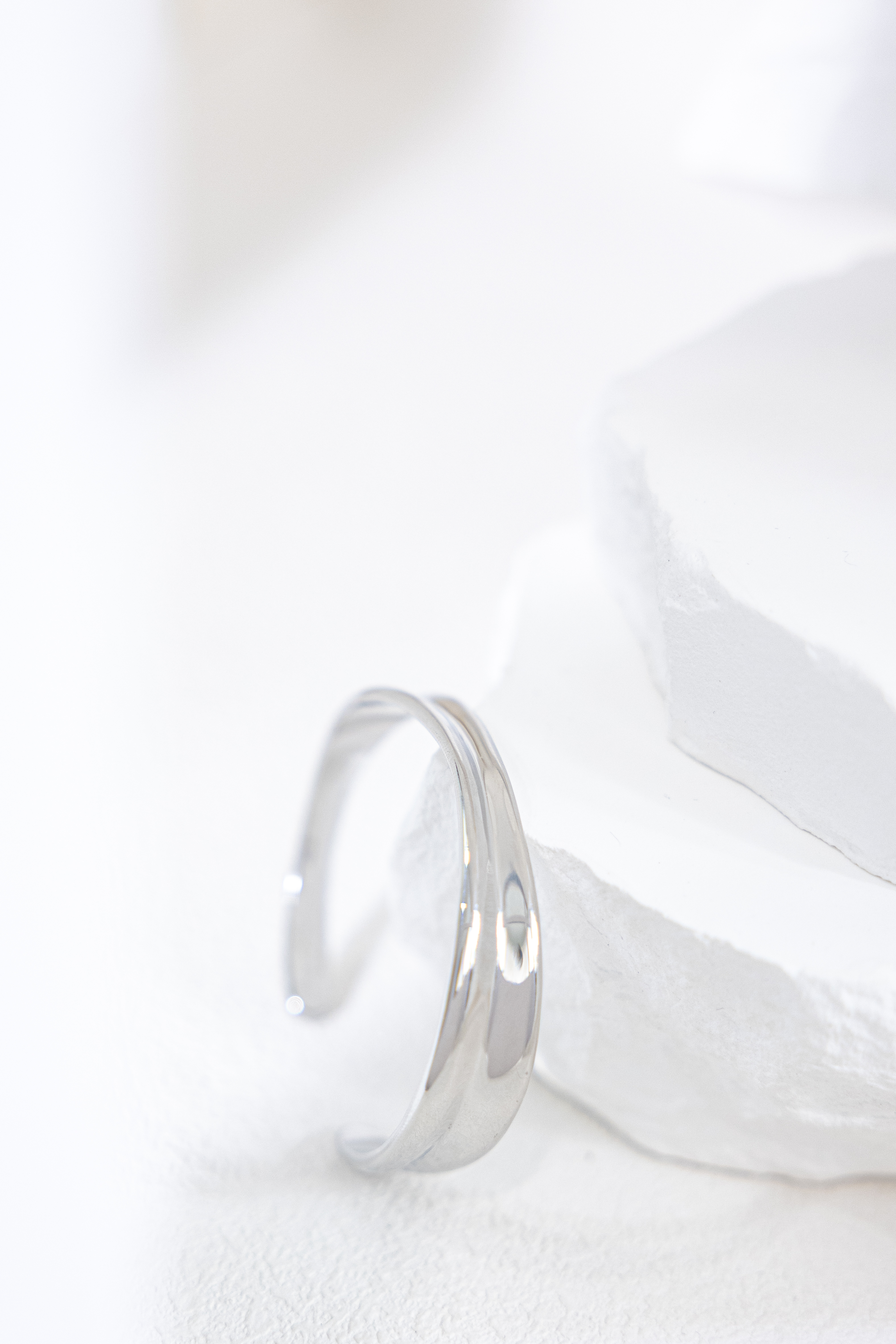 팔찌 緞帶設計前寬厚窄開口式手環 / 銀色