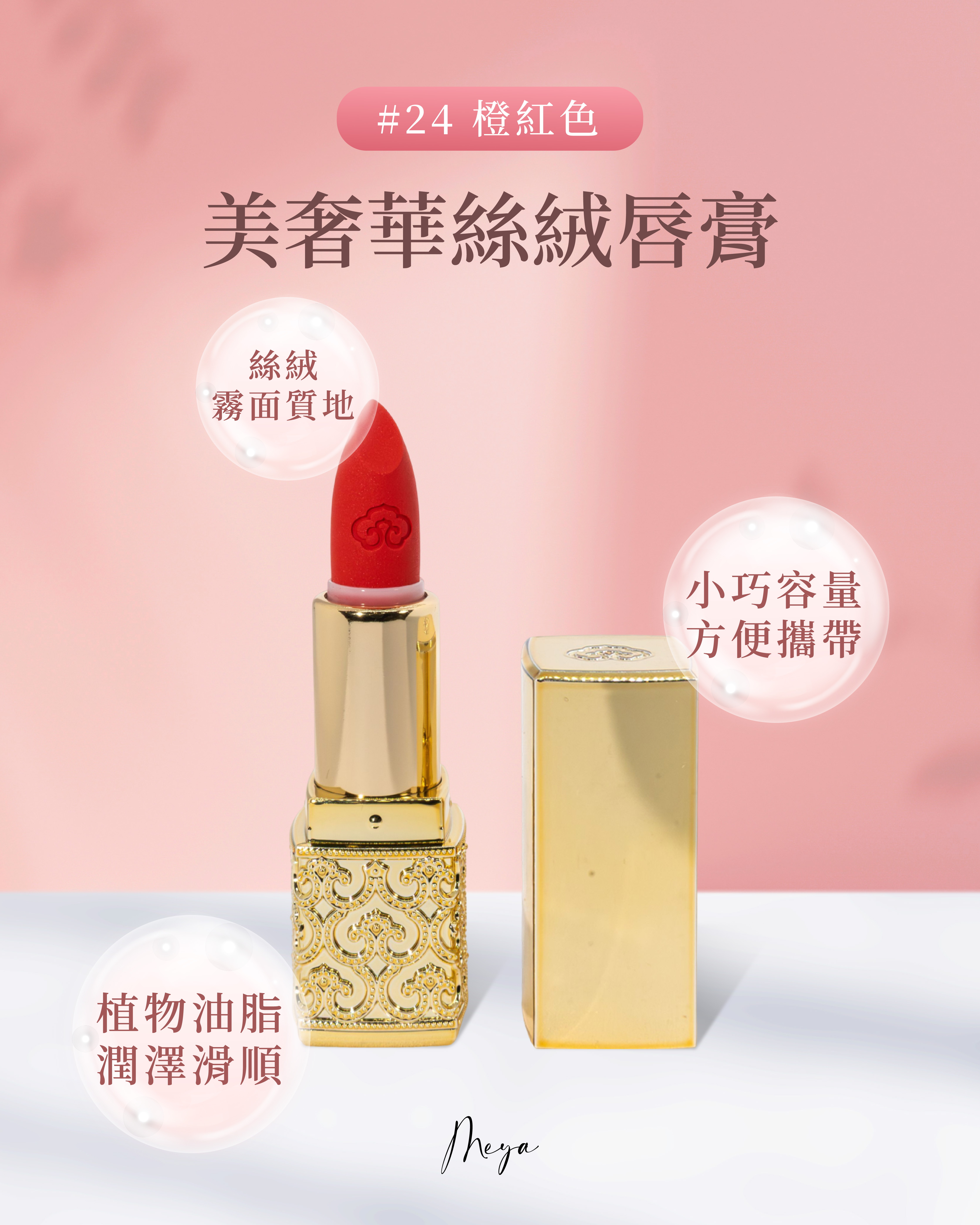 -美奢華絲絨唇膏|#24 橙紅色• 透明粉紅色調,為雙唇增添自然好氣色